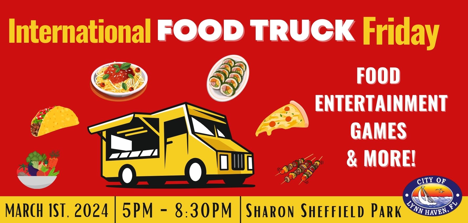 Head down to Sharon Sheffield for the City of Lynn Haven’s inaugural International Food Truck event. Explore some diverse flavors from more than 20 food trucks offering cuisines from around the world. Experience an evening of culturally diverse performances, along with lawn games and face painting. Visit the City of Lynn Haven’s Facebook