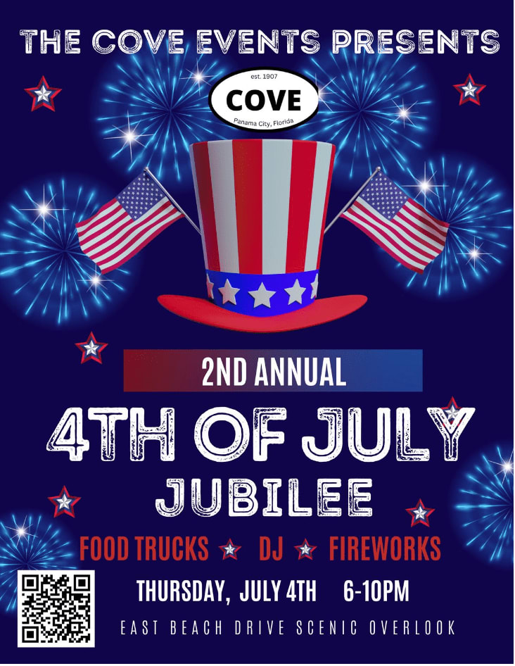The Cove neighborhood is celebrating 4th of July with a block party. Join in the fun at E. Beach Drive! Bring your own lawn chairs and enjoy the food trucks and Panama City fireworks which will begin at 9 p.m. Learn more HERE.
