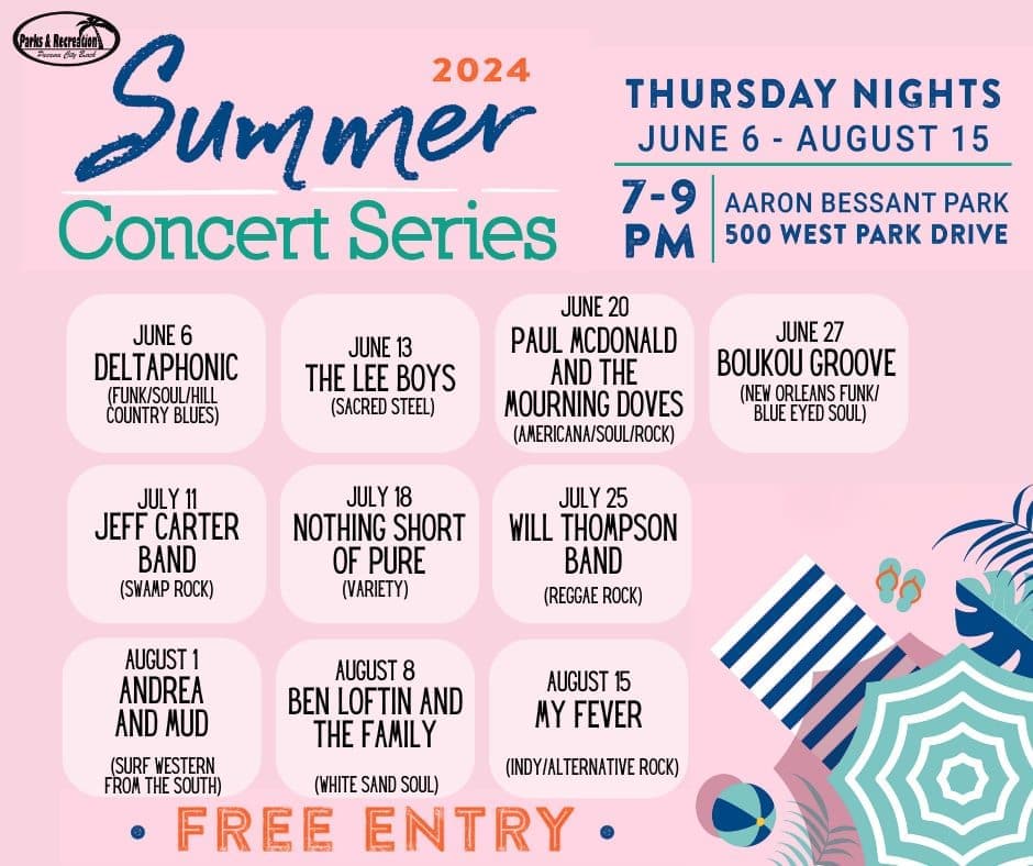 Hot summer nights are made for music, and the Summer Concert Series has become a beloved summertime tradition in Panama City Beach. Enjoy a free concert in the park every Thursday at Aaron Bessant Park Amphitheater all summer. Bring your own lawn chairs and blankets. Coolers, pets and food are welcome. Deltaphonic (Funk/Soul/Hill Country Blues), The Lee Boys (Sacred Steel), Paul McDonald and the Mourning Doves (Americana/Soul/Rock), Boukou Groove (New Orleans Funk/Blue Eyed Soul) are scheduled each week in June. For the full lineup visit HERE.
