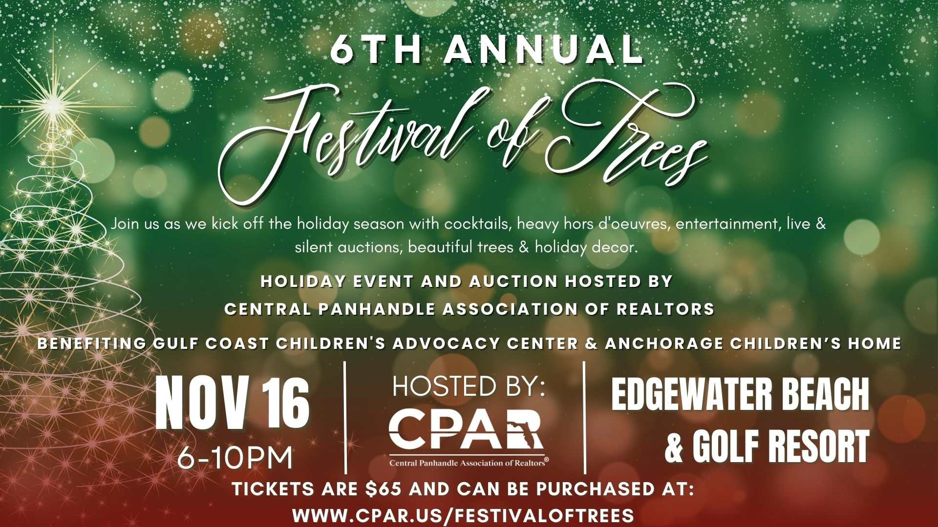 The Central Panhandle Association of Realtors (CPAR) hosts a holiday formal event for local children in need. Kick off the season and support this event and tree auction benefiting two local non-profits - the Gulf Coast Children’s Advocacy Center and Anchorage Children’s Home. There will be cocktails, hor d’oeuvre, a performance by The Nutcracker Ballet, live and silent auctions, beautifully decorated Christmas trees, and a DJ. For tickets and more information, register HERE.