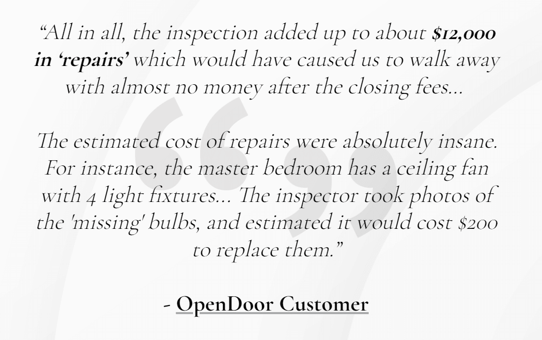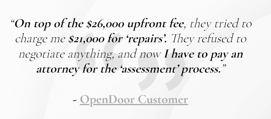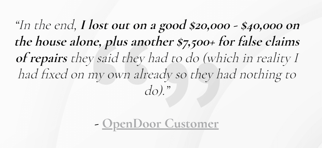 It doesn’t stop there. One seller reviewing their experience with Opendoor reported being hit with repair costs and other hidden fees,