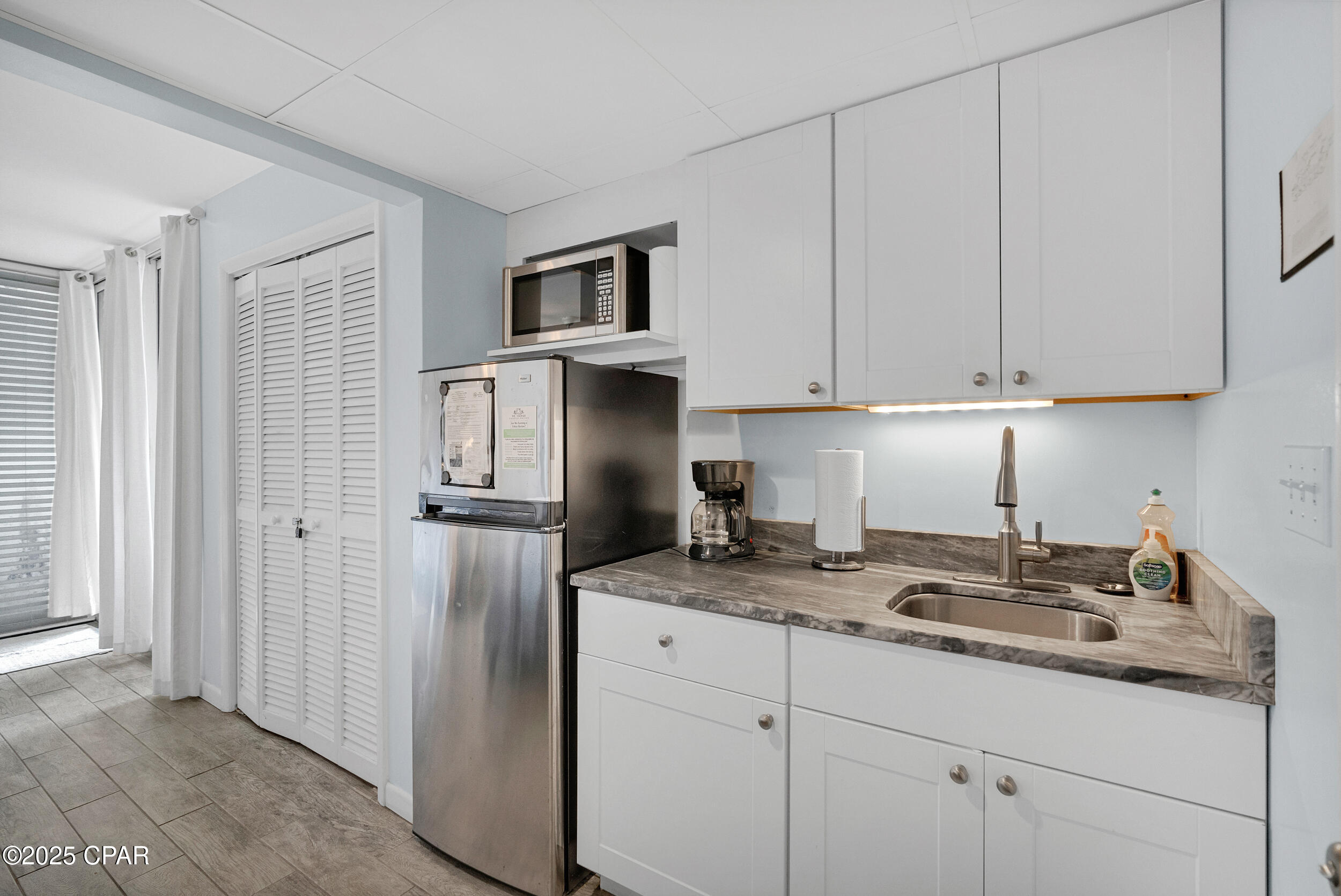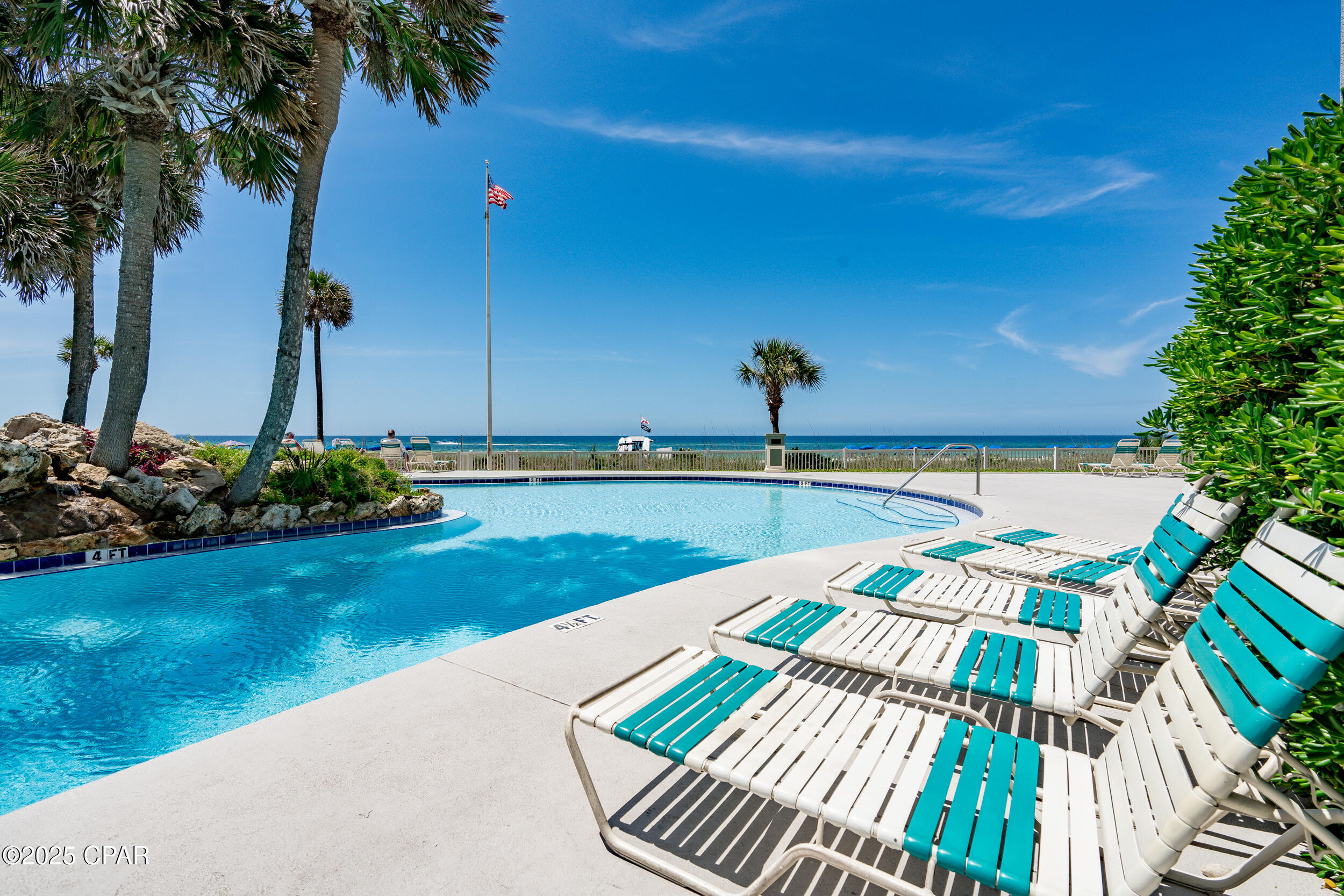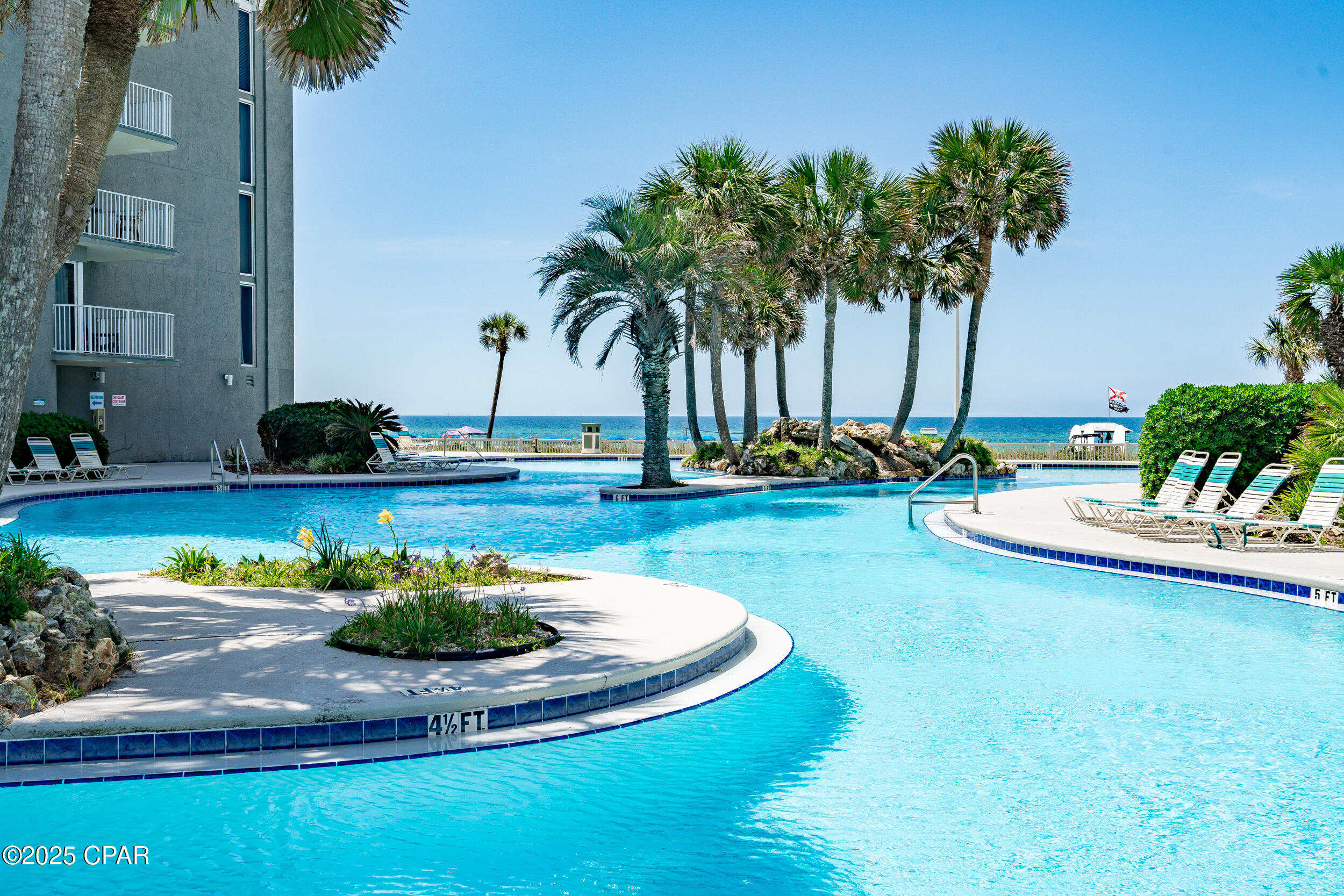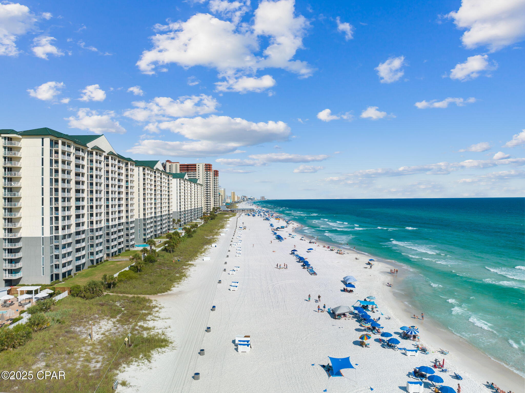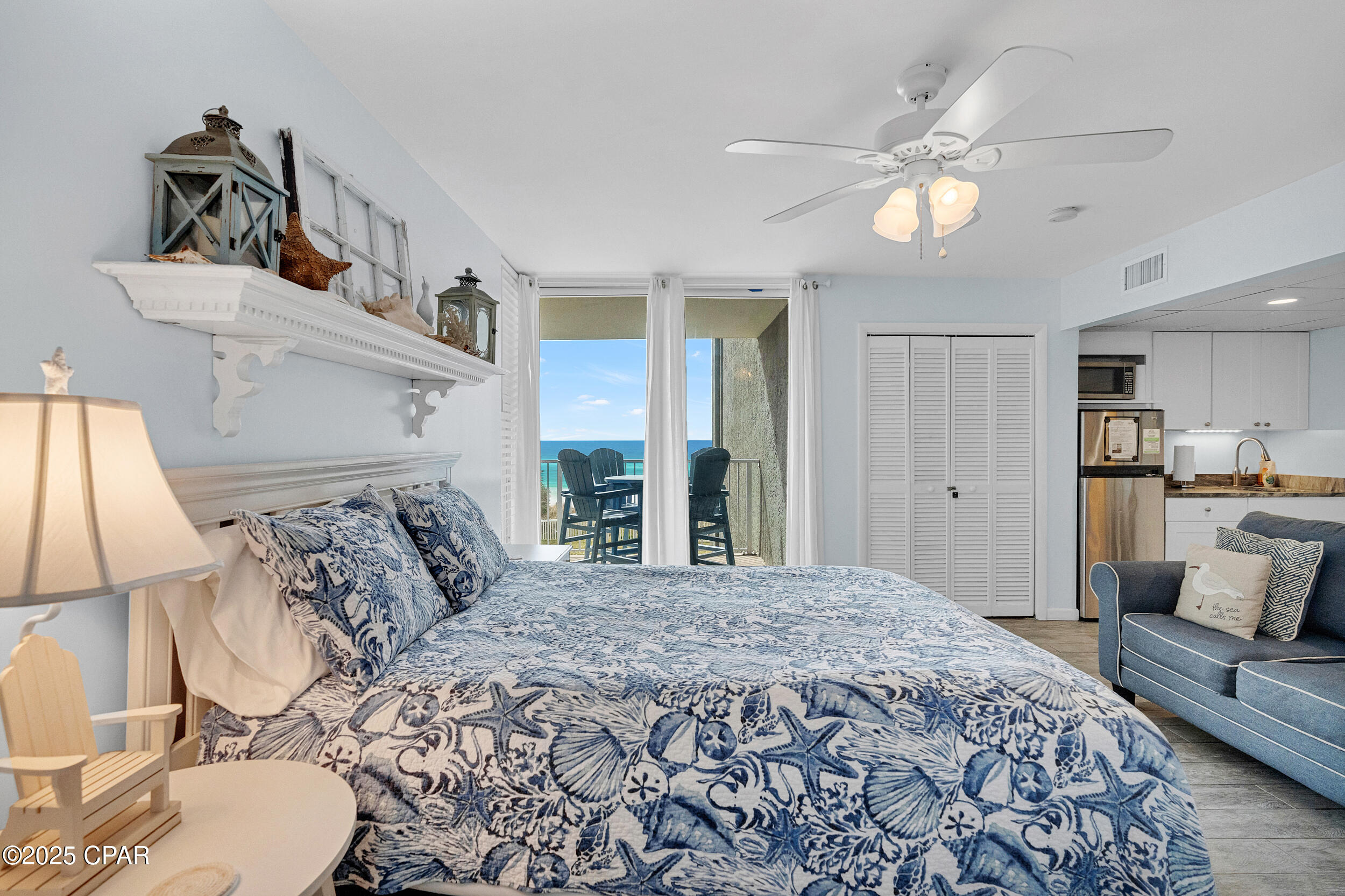This updated gulf-front studio in Long Beach Resort offers stunning views, effortless convenience, and direct access to everything that makes Panama City beach popular. Located on the first floor of Tower I, this unit puts you just steps away from the sugar-white sand beaches, pools, and resort amenities - no elevators required. Inside, the open living space serves as a relaxing retreat with a queen bed, sofa, and dining space, while floor-to-ceiling sliding glass doors bring the beauty of the Gulf of Mexico inside. The private corner balcony offers you the perfect spot to soak in the views and relax. The kitchenette is outfitted with a stainless steel refrigerator and microwave, perfect for preparing meals or snacks after a day in the sun. The spacious bathroom features a walk-in shower and single-sink vanity, with a separate laundry area that includes a stacked washer and dryer. Durable tile flooring throughout ensures effortless upkeep, especially after sandy adventures. Long Beach Resort is renowned for its outstanding amenities and prime location, with over 1,300 feet of private beach and resort-style features, including three pools - highlighted by a 7,500 sq. ft. Polynesian lagoon pool - hot tubs, indoor tennis courts, BBQ pits, a fitness center, a poolside bar and grill, 24/7 onsite security, and lush tropical landscaping. With shopping, restaurants, and attractions just steps away - many within walking distance - you'll find everything you need for the perfect beach lifestyle. Don't miss this incredible opportunity to own an updated gulf-front condo in Panama City Beach at an unbeatable price. Schedule your showing today!