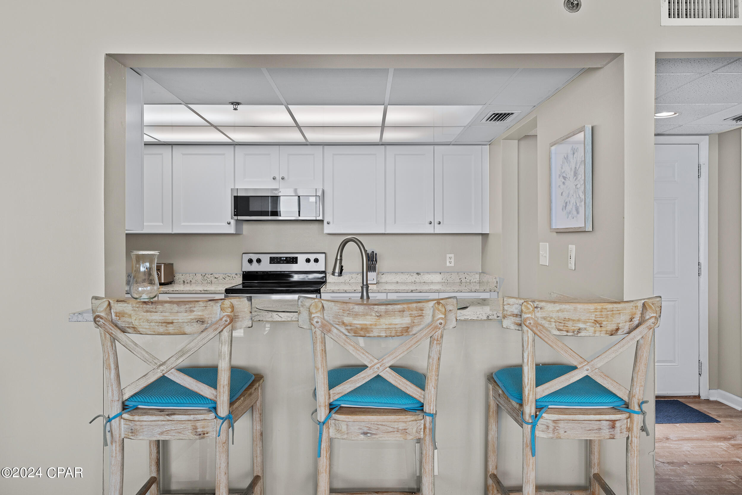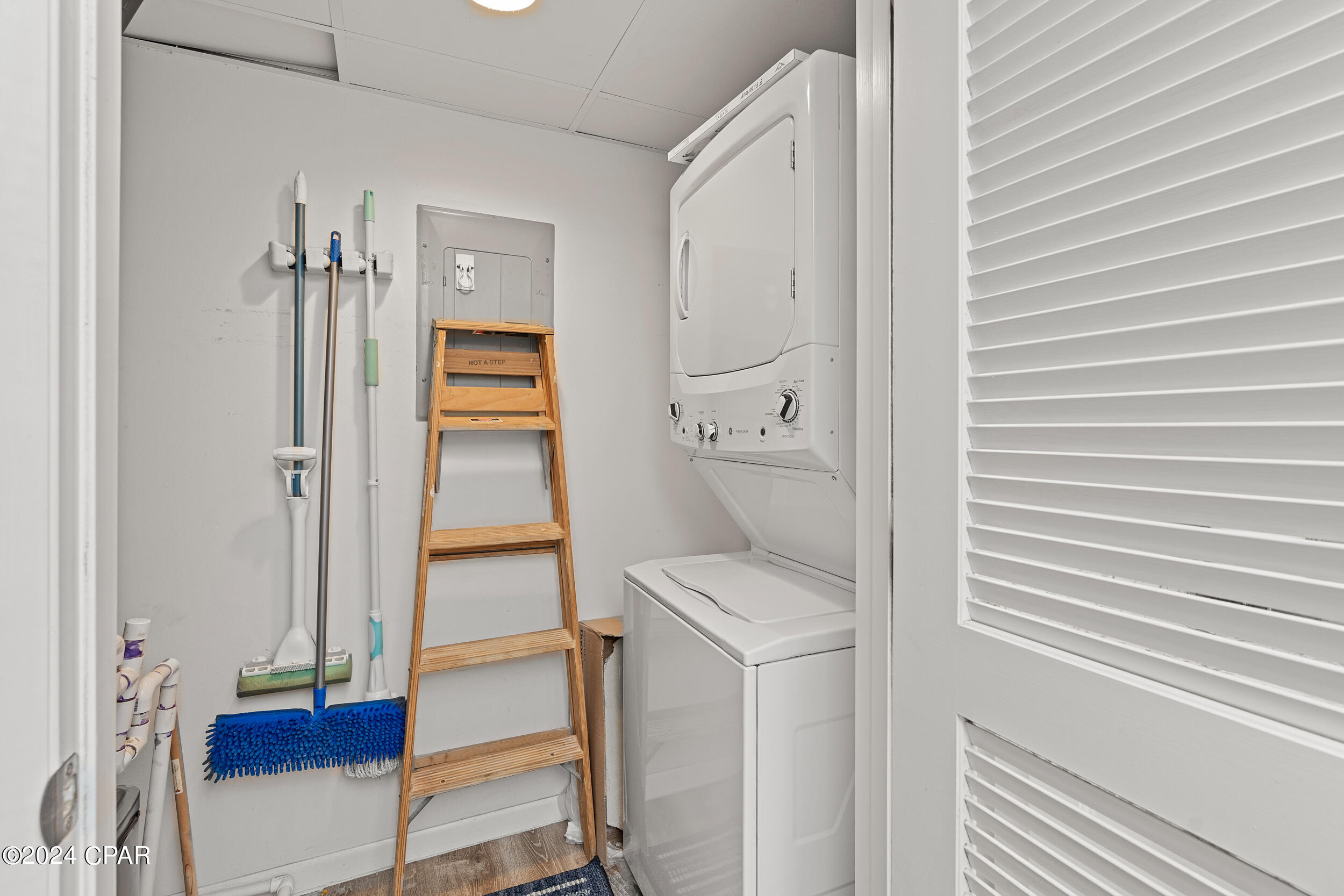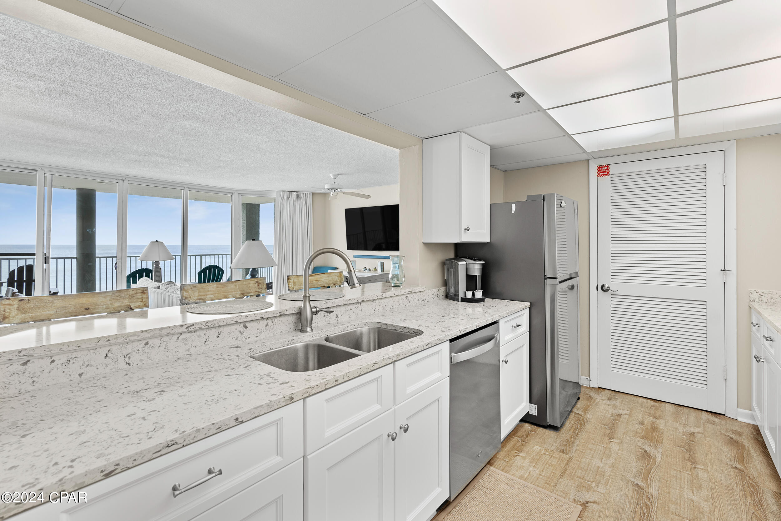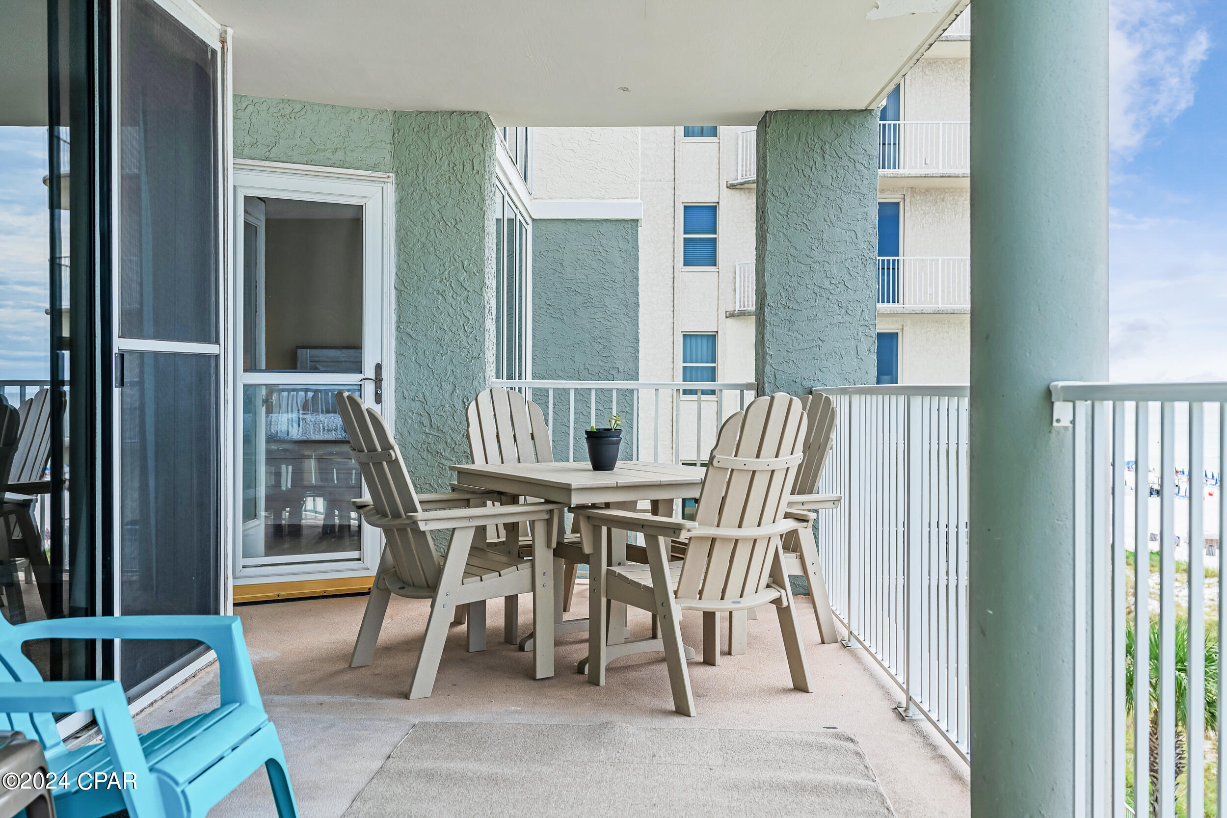 The spacious living/dining area comes with new tables and chairs and includes a sleeper sofa for additional guests.The 2022 kitchen update brought new cabinets, quartz countertops, sinks and fixtures, complemented by stainless appliances installed in 2019. The HVAC system was replaced the same year and a new hot water heater was added in 2023. A separate laundry room features a washer and dryer that were replaced in 2022. You will love kicking back and relaxing on the extra large balcony, complete with durable polywood table and chairs, while enjoying the view below.