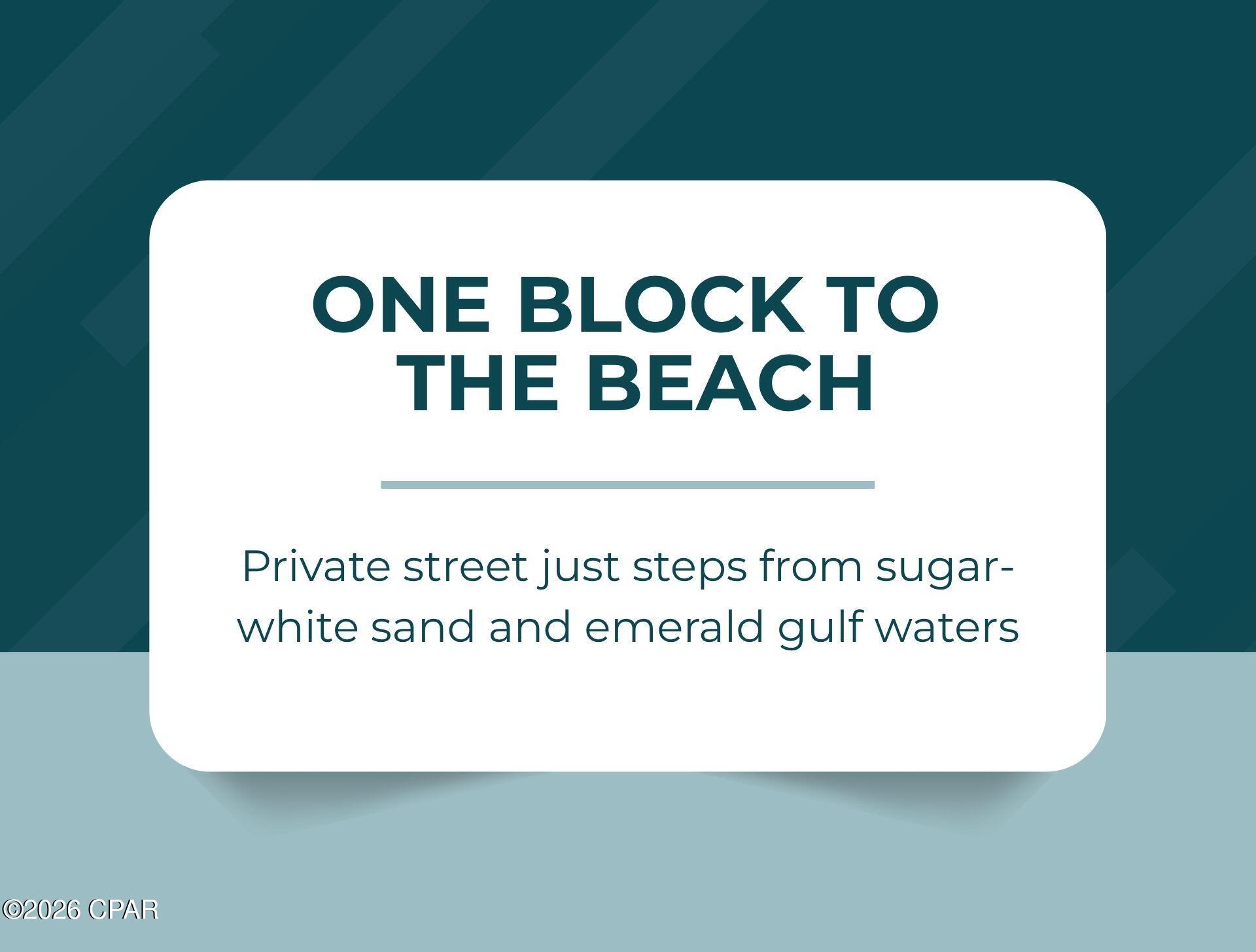 Just steps from the sugar-white sands and emerald Gulf waters, this updated Panama City Beach home offers an exceptional blend of location and comfort - set on a private street just one block from the beach.