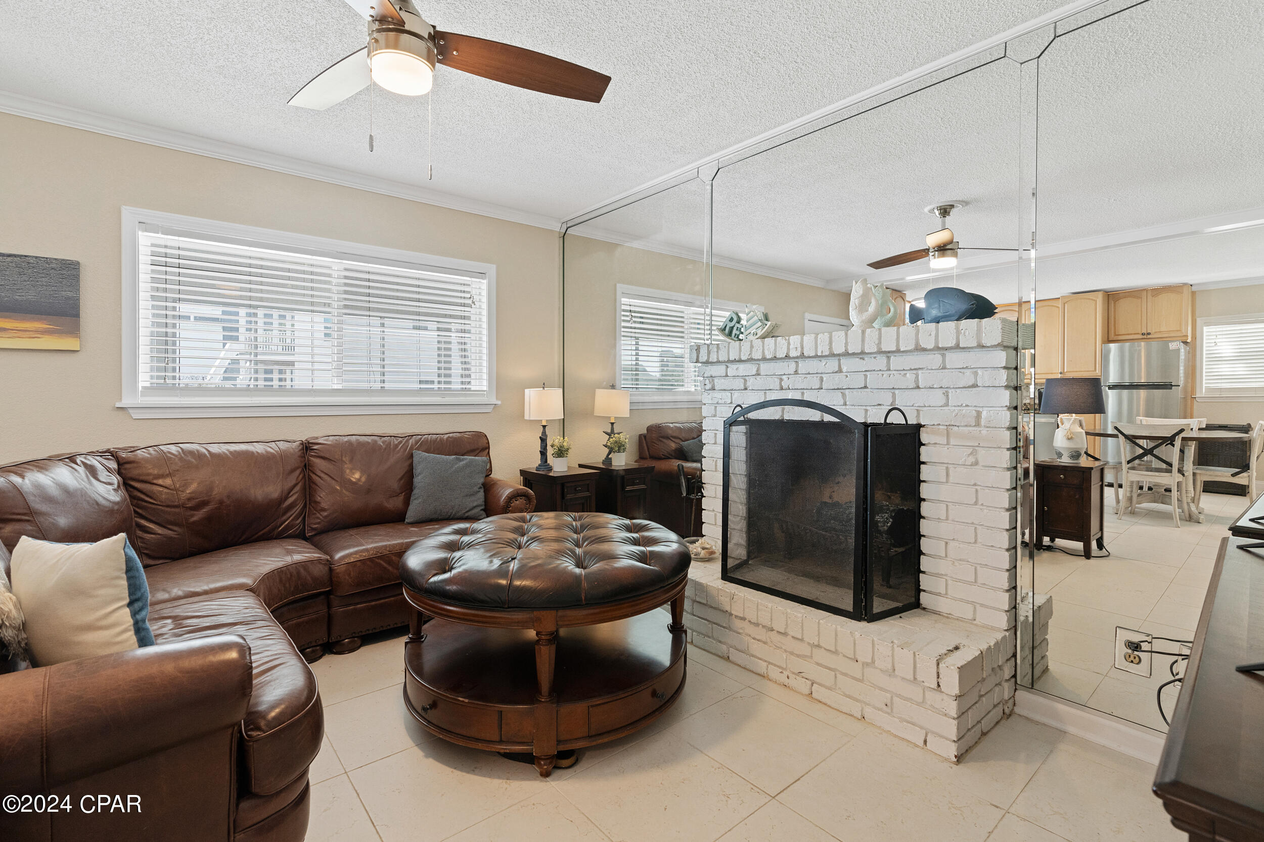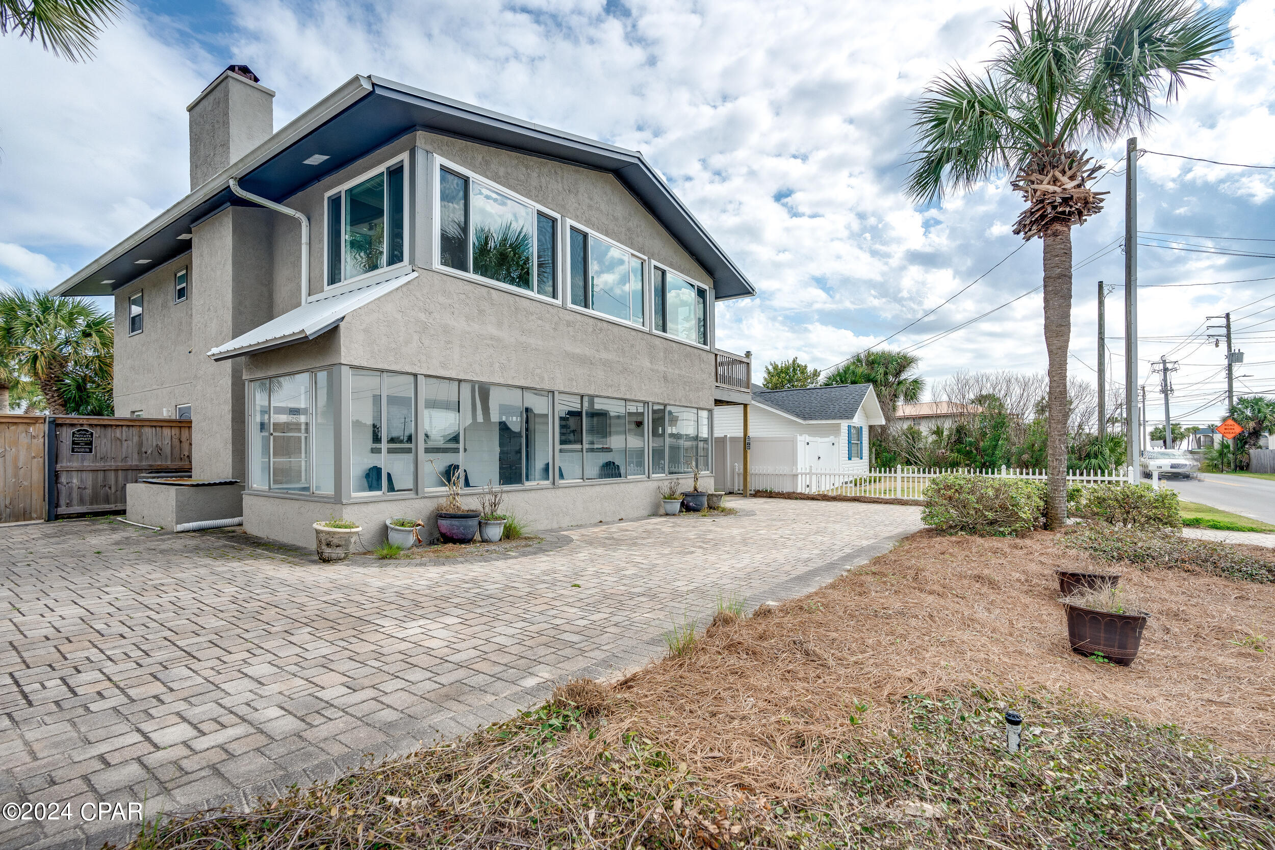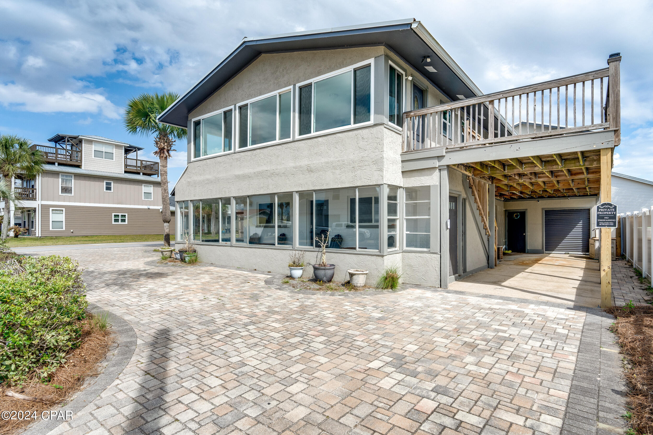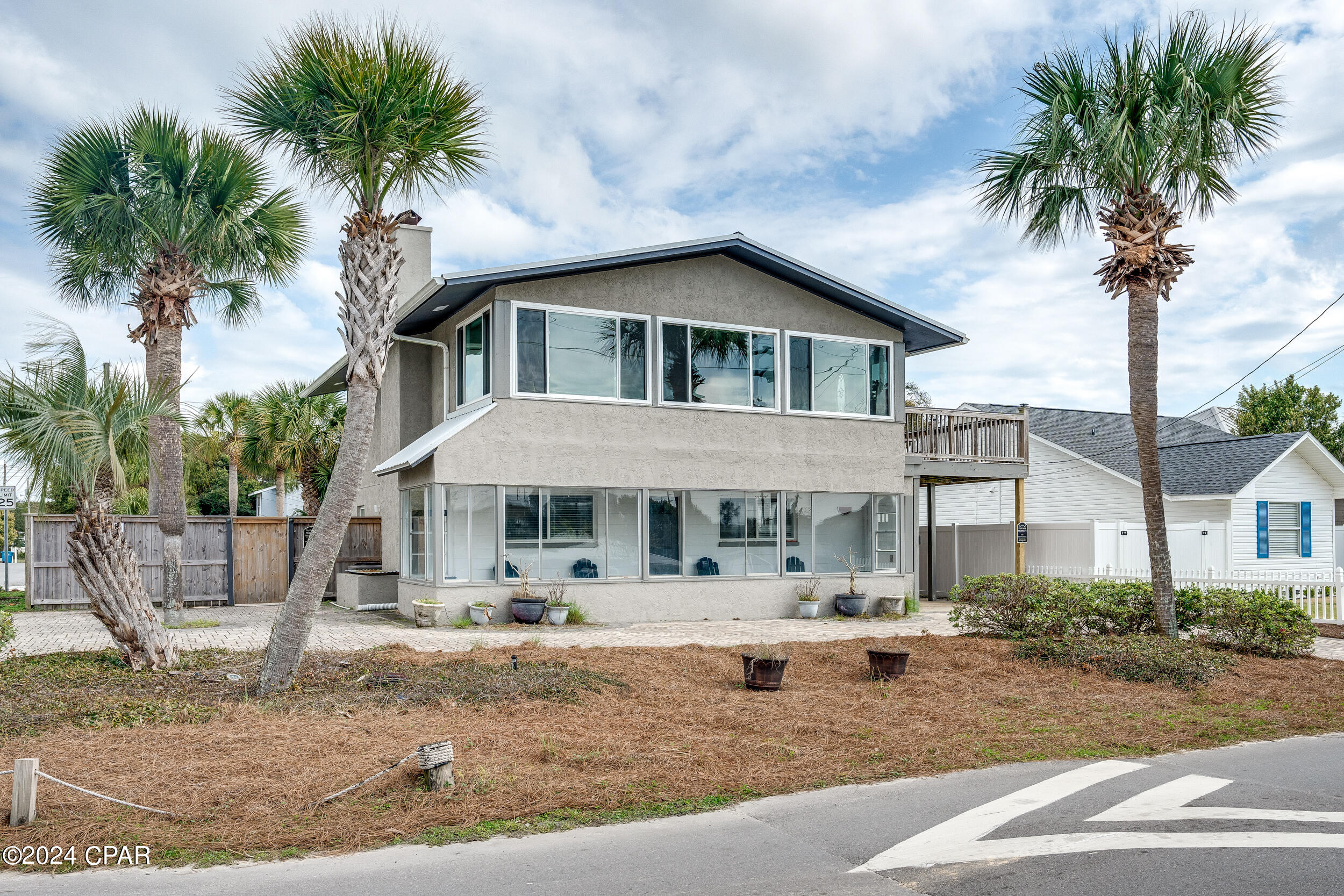 This property has sold! Discover similar listings by reaching out to us for an updated list of available properties that match your preferences. **PRICED TO SELL...SELLER MOTIVATED**ONE BLOCK TO THE BEACH** Nestled just a block from the shimmering sands of Panama City Beach, this captivating home invites you to imagine the endless possibilities that await. With its unique blend of charm and potential, this property offers a canvas upon which your dream beach lifestyle can come to life. Featuring four bedrooms spread across two levels, each equipped with their own kitchen and a cozy fireplace in the living area, this home is a testament to comfort and versatility. The first floor opens into a sunlit Florida room, an ideal spot for quiet mornings or leisurely afternoons, while the second floor extends out to a spacious deck, where glimpses of the Gulf and spectacular sunsets await.