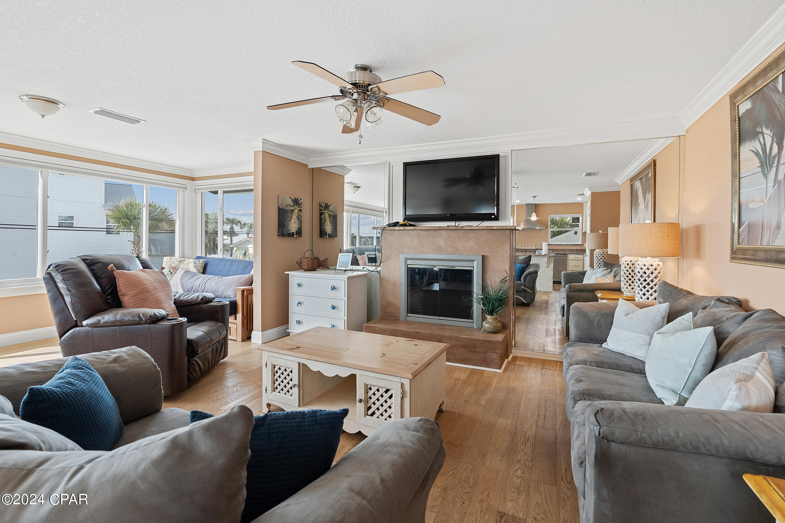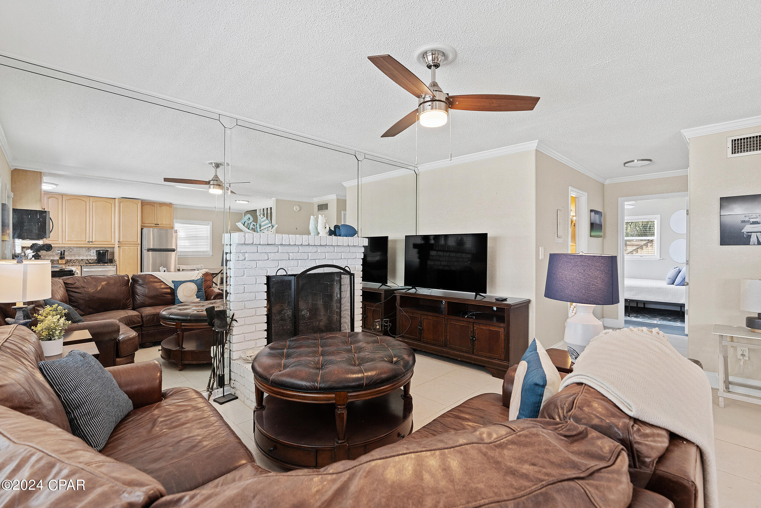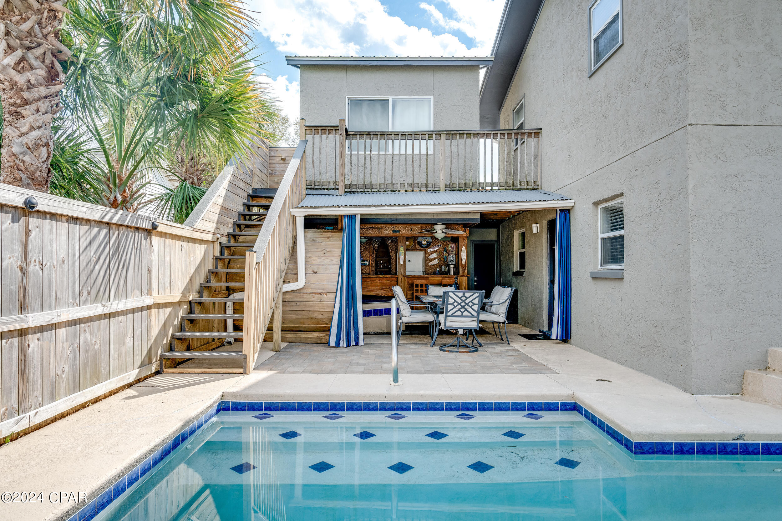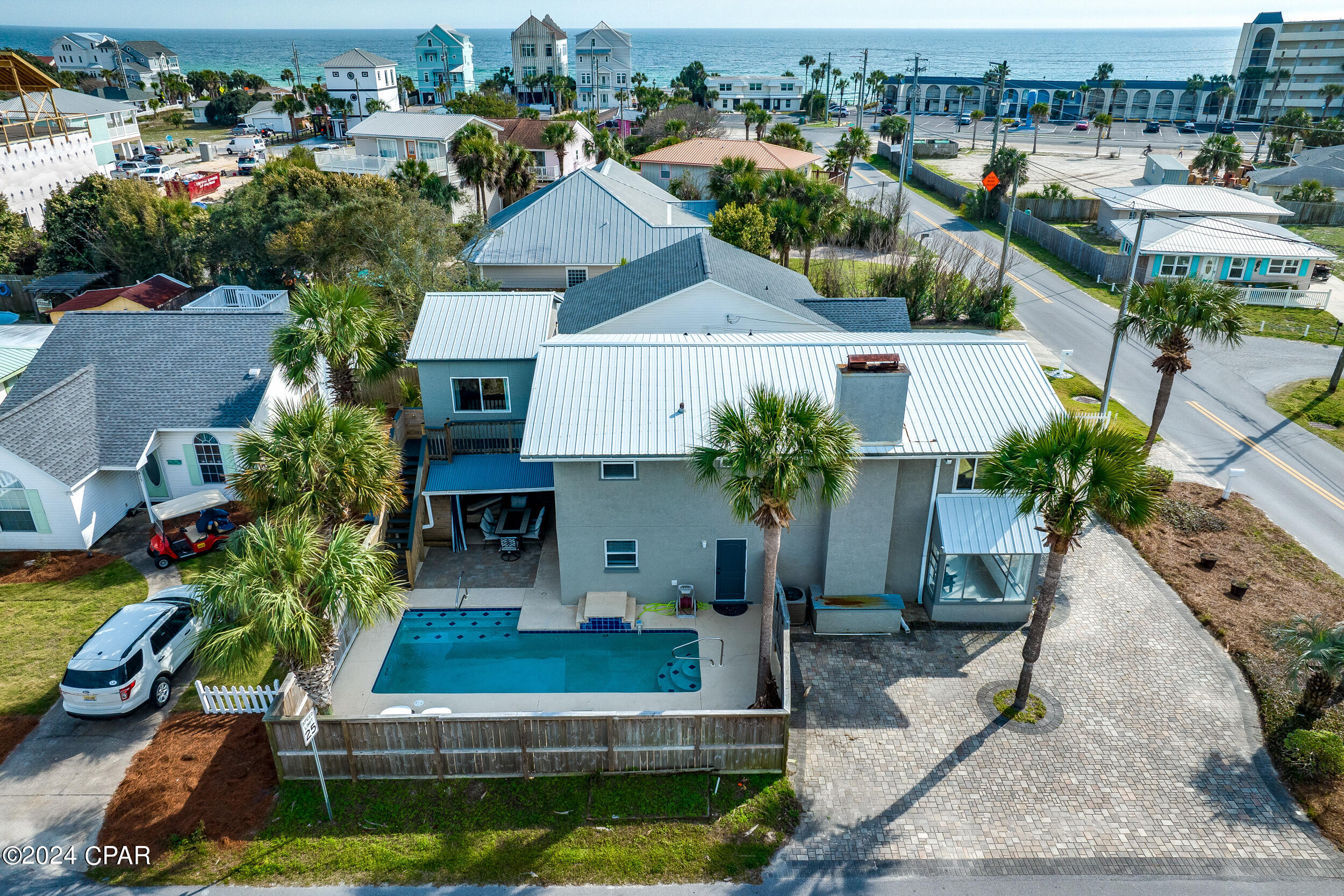 This property has sold! Discover similar listings by reaching out to us for an updated list of available properties that match your preferences. **PRICED TO SELL...SELLER MOTIVATED**ONE BLOCK TO THE BEACH** Nestled just a block from the shimmering sands of Panama City Beach, this captivating home invites you to imagine the endless possibilities that await. With its unique blend of charm and potential, this property offers a canvas upon which your dream beach lifestyle can come to life. Featuring four bedrooms spread across two levels, each equipped with their own kitchen and a cozy fireplace in the living area, this home is a testament to comfort and versatility. The first floor opens into a sunlit Florida room, an ideal spot for quiet mornings or leisurely afternoons, while the second floor extends out to a spacious deck, where glimpses of the Gulf and spectacular sunsets await.