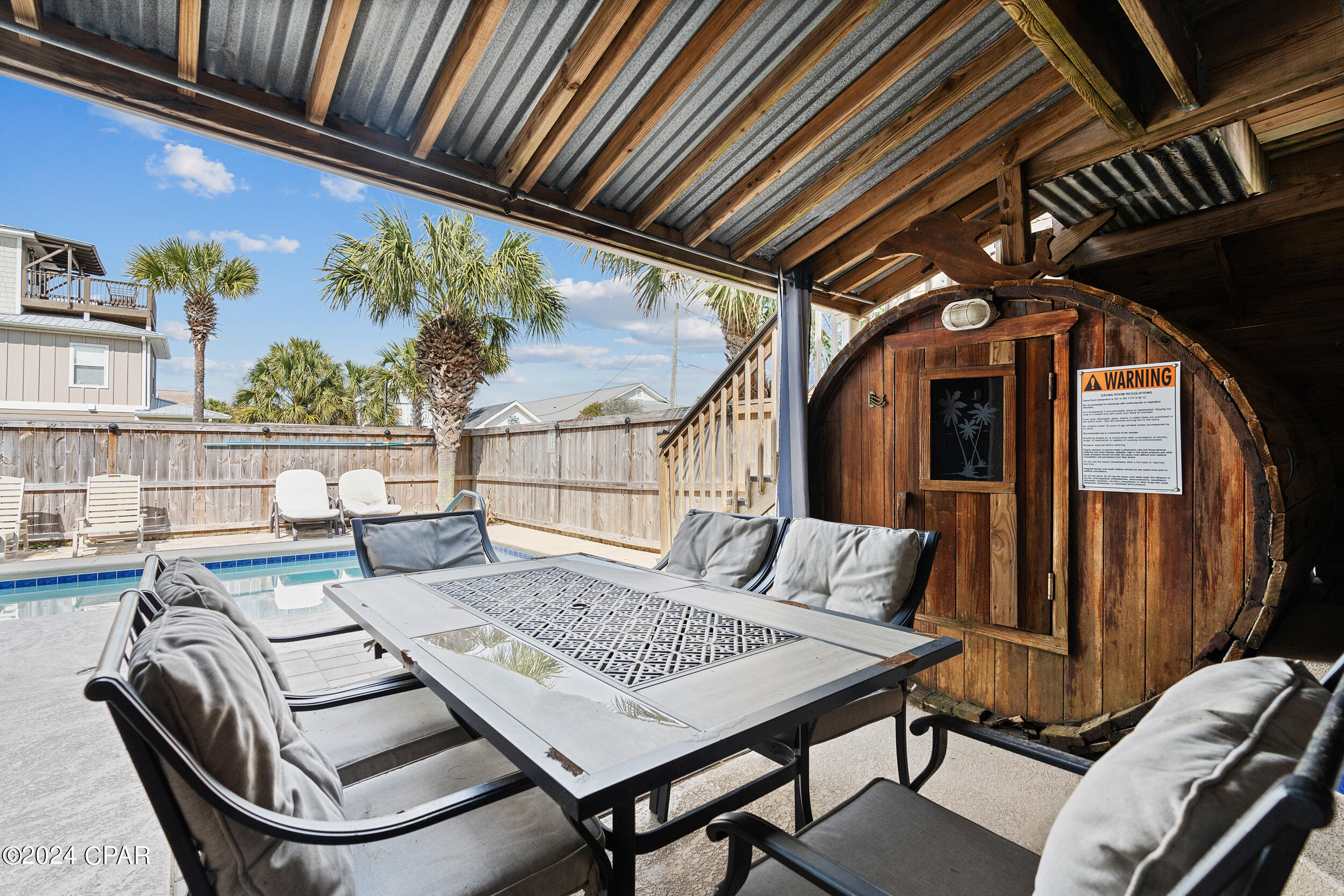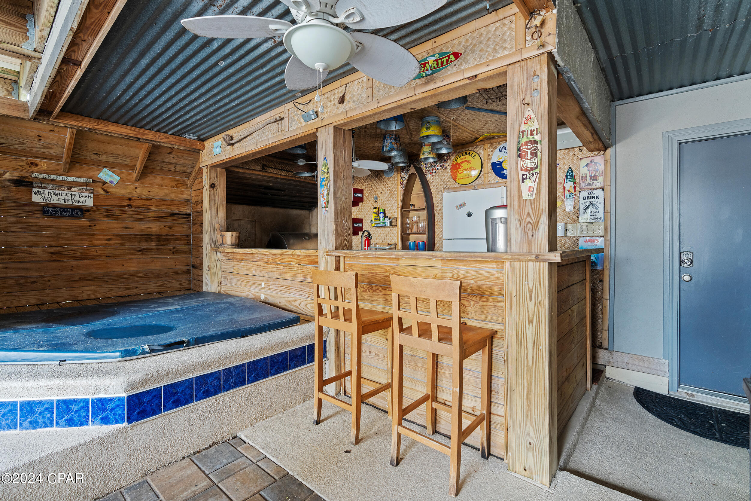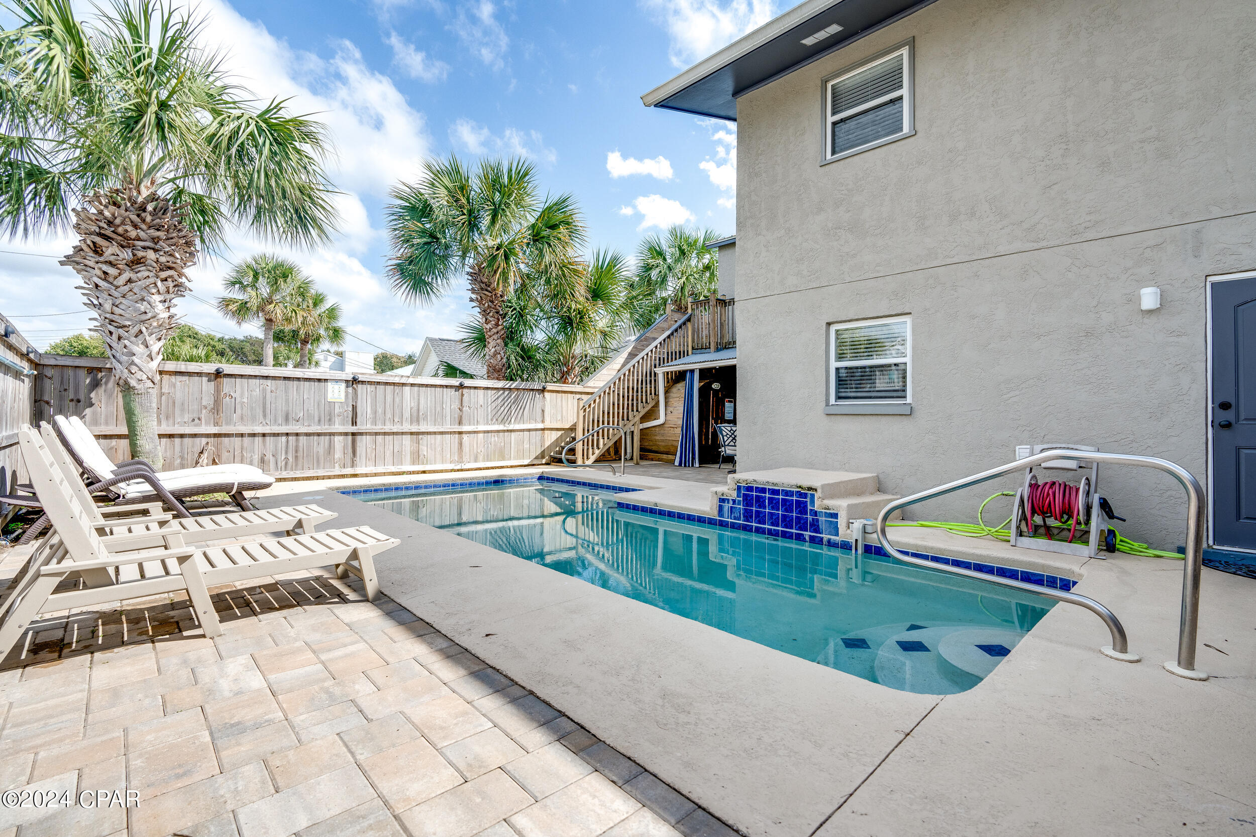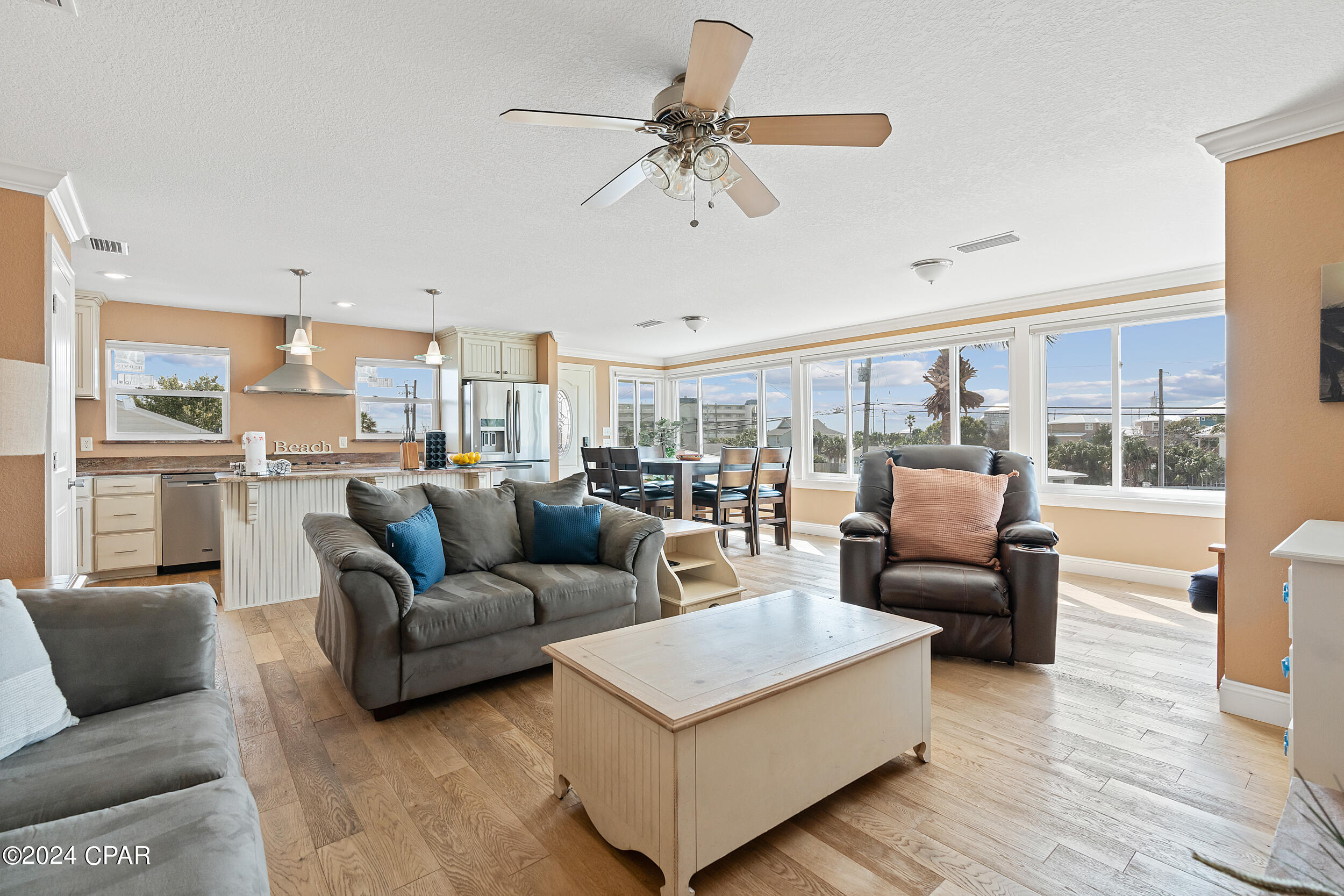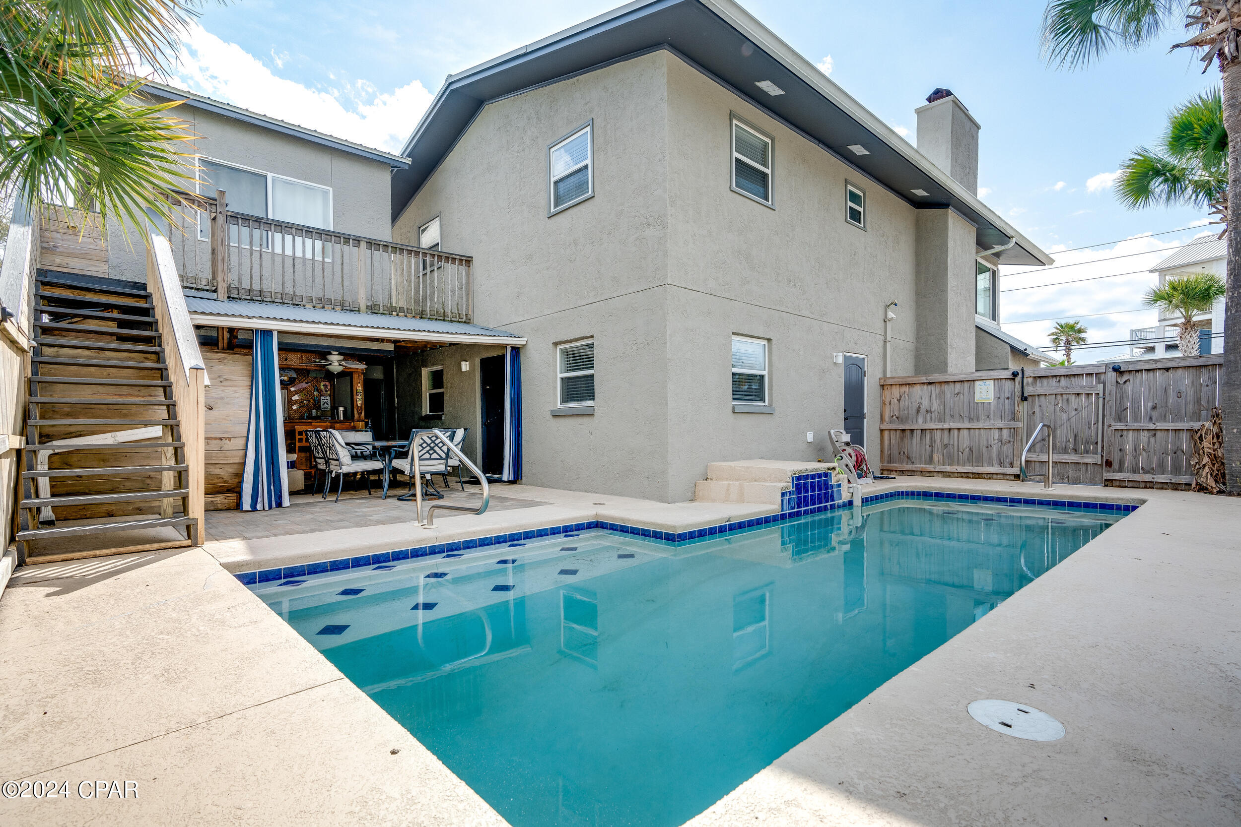 This property has sold! Discover similar listings by reaching out to us for an updated list of available properties that match your preferences. **PRICED TO SELL...SELLER MOTIVATED**ONE BLOCK TO THE BEACH** Nestled just a block from the shimmering sands of Panama City Beach, this captivating home invites you to imagine the endless possibilities that await. With its unique blend of charm and potential, this property offers a canvas upon which your dream beach lifestyle can come to life. Featuring four bedrooms spread across two levels, each equipped with their own kitchen and a cozy fireplace in the living area, this home is a testament to comfort and versatility. The first floor opens into a sunlit Florida room, an ideal spot for quiet mornings or leisurely afternoons, while the second floor extends out to a spacious deck, where glimpses of the Gulf and spectacular sunsets await.