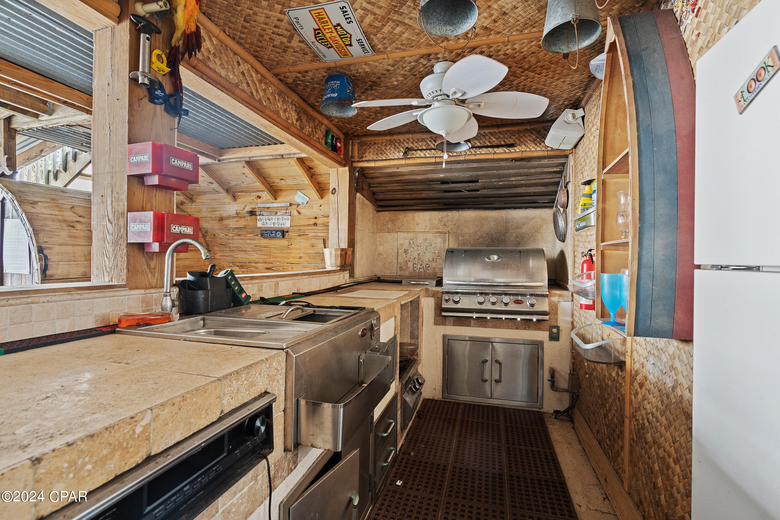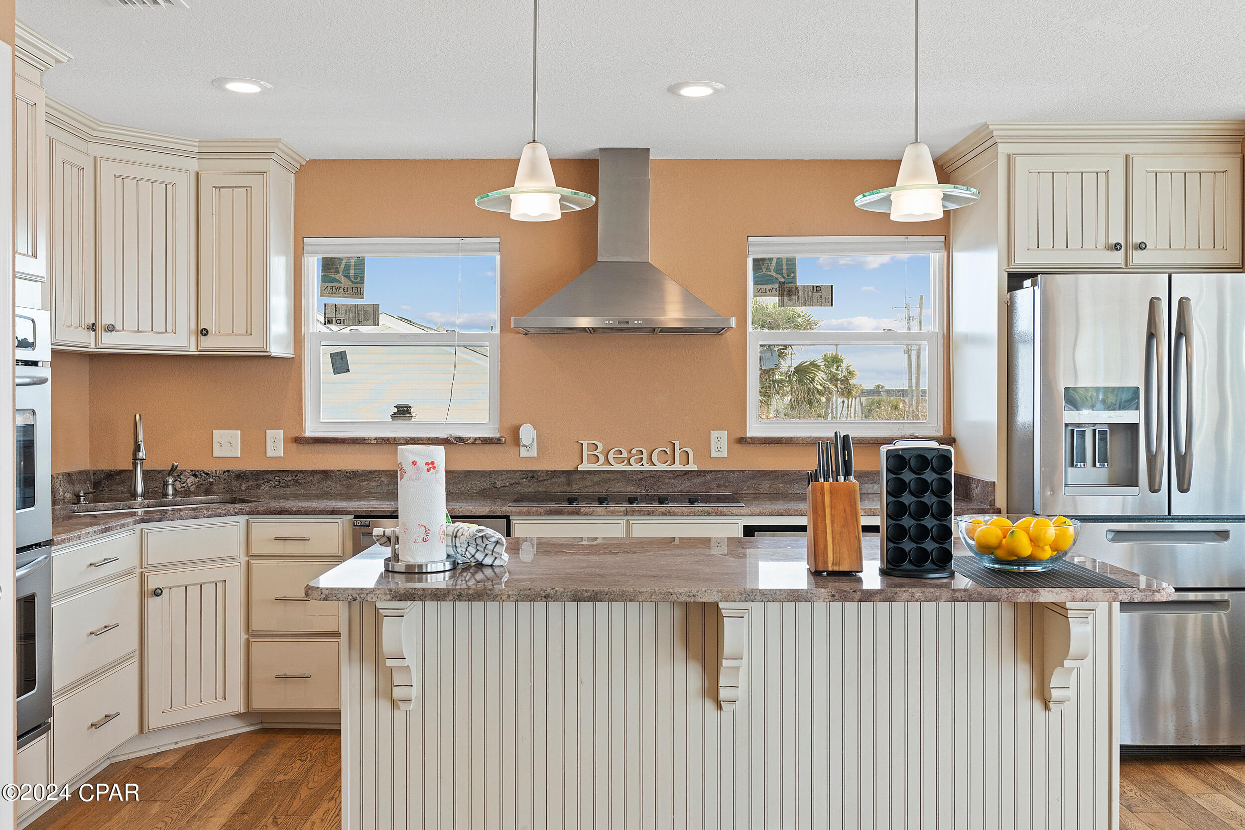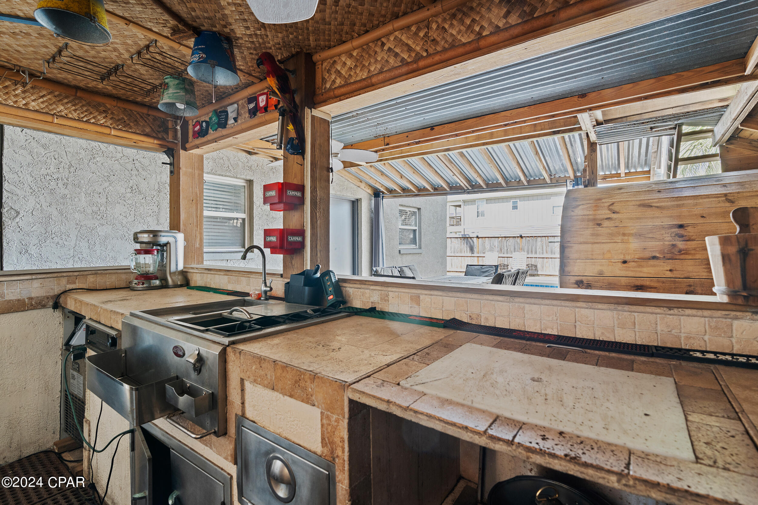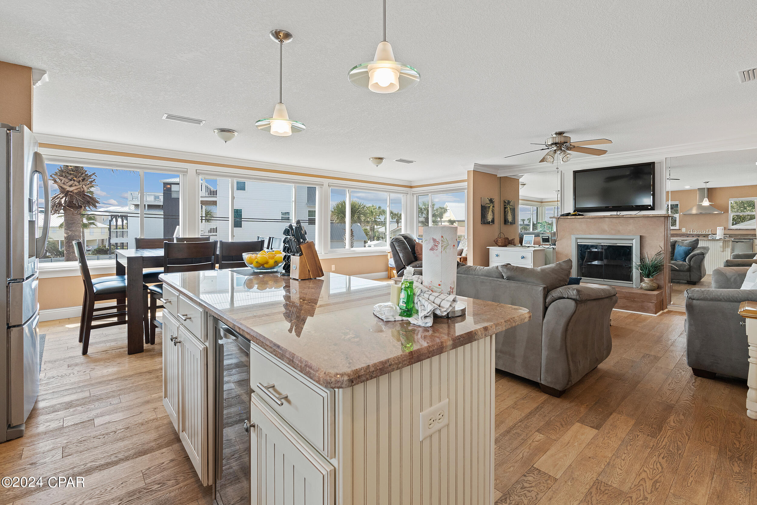 This property has sold! Discover similar listings by reaching out to us for an updated list of available properties that match your preferences. **PRICED TO SELL...SELLER MOTIVATED**ONE BLOCK TO THE BEACH** Nestled just a block from the shimmering sands of Panama City Beach, this captivating home invites you to imagine the endless possibilities that await. With its unique blend of charm and potential, this property offers a canvas upon which your dream beach lifestyle can come to life. Featuring four bedrooms spread across two levels, each equipped with their own kitchen and a cozy fireplace in the living area, this home is a testament to comfort and versatility. The first floor opens into a sunlit Florida room, an ideal spot for quiet mornings or leisurely afternoons, while the second floor extends out to a spacious deck, where glimpses of the Gulf and spectacular sunsets await.