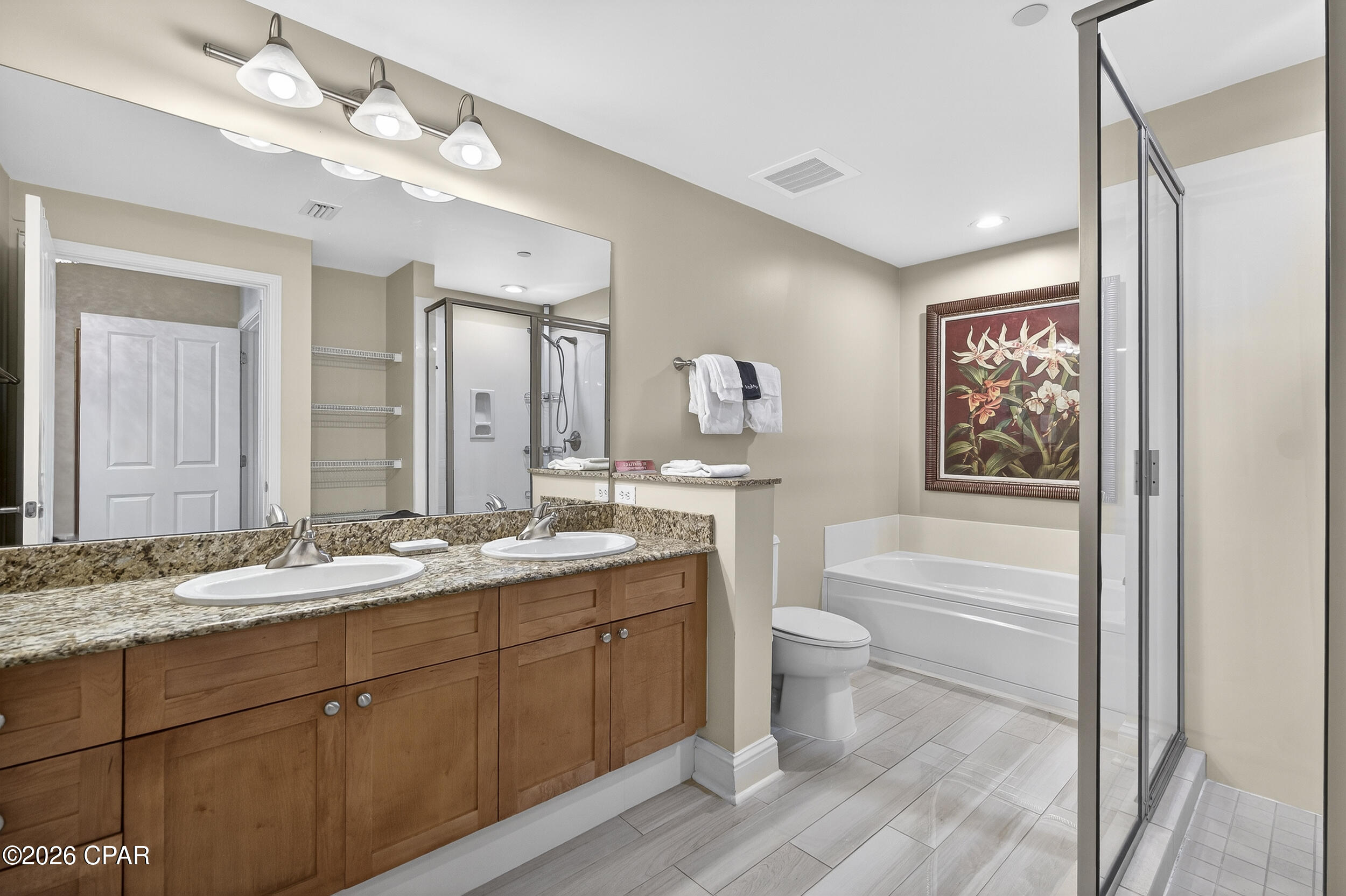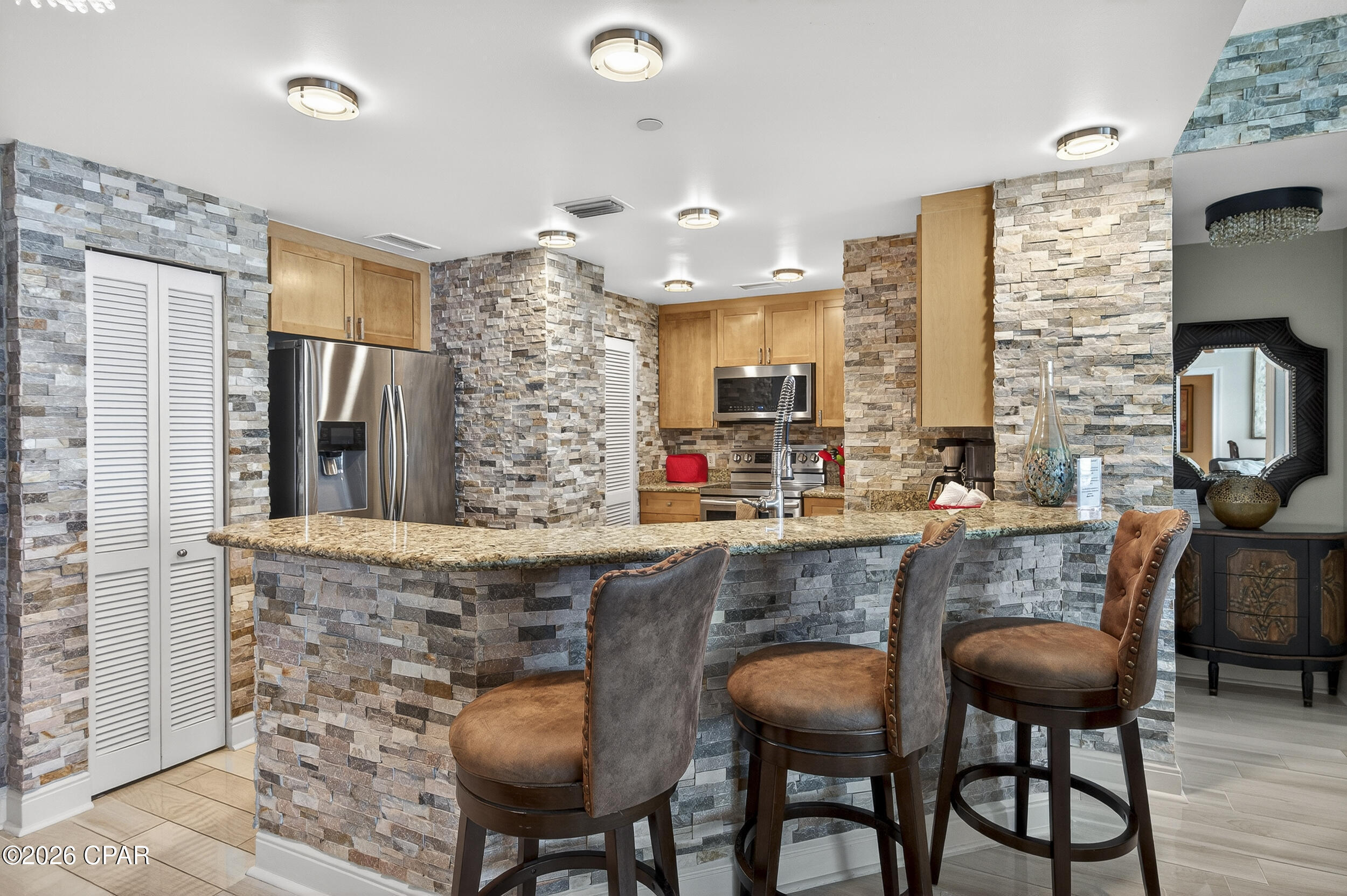 The gourmet kitchen is both stylish and functional, with granite countertops, large breakfast bar, stainless appliances, and a tucked-away stackable washer/dryer. Both the primary and second bedrooms features stunning gulf views, king-size beds, as well as private ensuite baths with tubs and double vanities, providing comfort and privacy for everyone. The primary suite also offers direct balcony access and a separate walk-in shower. The third bedroom provides flexible accommodations for family or guests. Flat-screen TVs in every room lets everyone relax and enjoy their own entertainment after a day on the beach.
