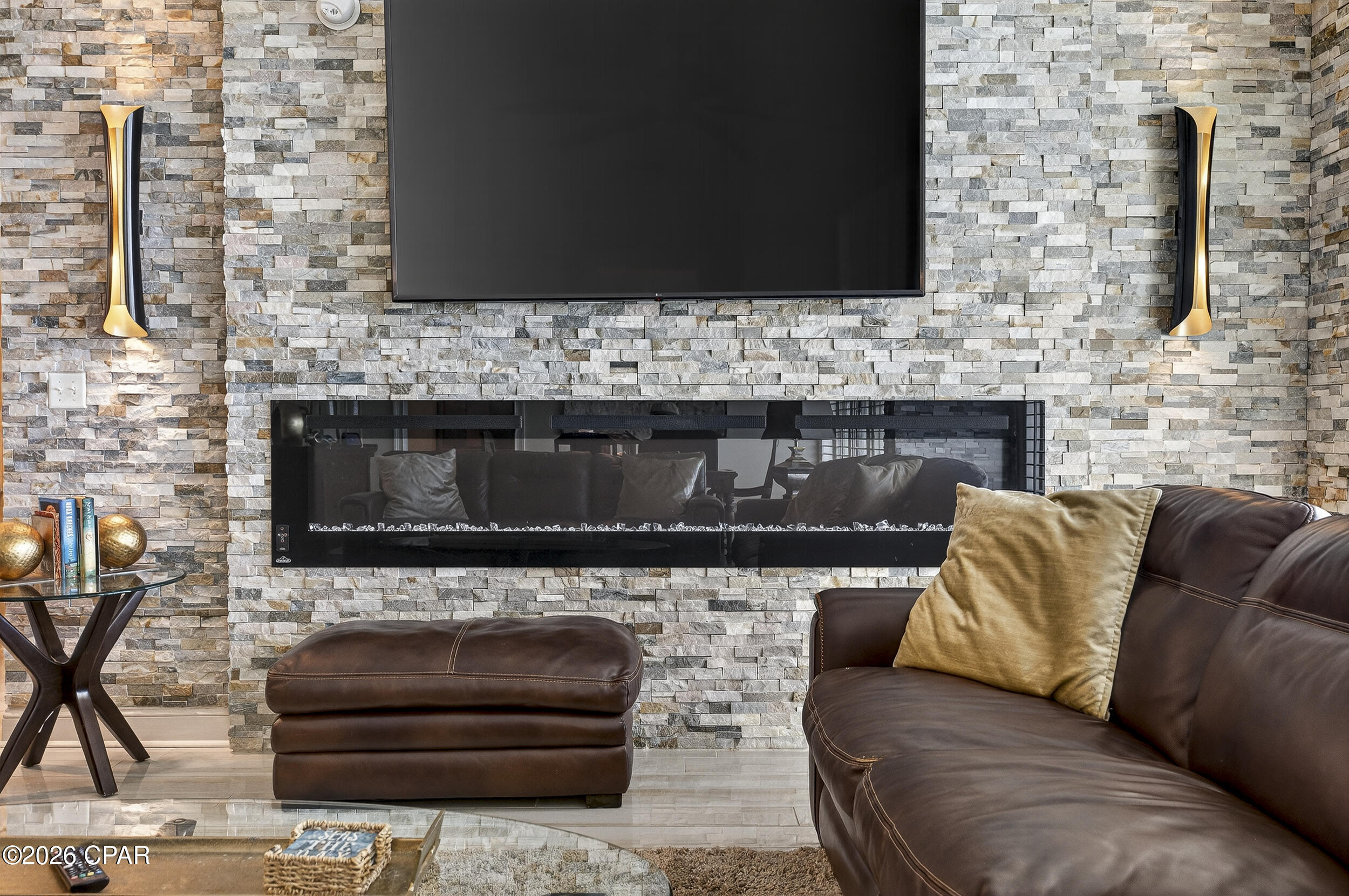 No detail has been overlooked in this fully upgraded 3BR/3BA penthouse at Aqua featuring over 1,700 sq. ft. of luxurious living space. The moment you step inside, you'll notice one-of-a-kind porcelain flooring throughout, unique stone feature walls, and interchangeable ambient lighting - details that make this home truly stand out. Floor-to-ceiling windows and a private curved balcony showcase breathtaking gulf views while custom plantation blinds in the living area add a sleek, elevated touch that complements the light-filled, coastal ambiance.