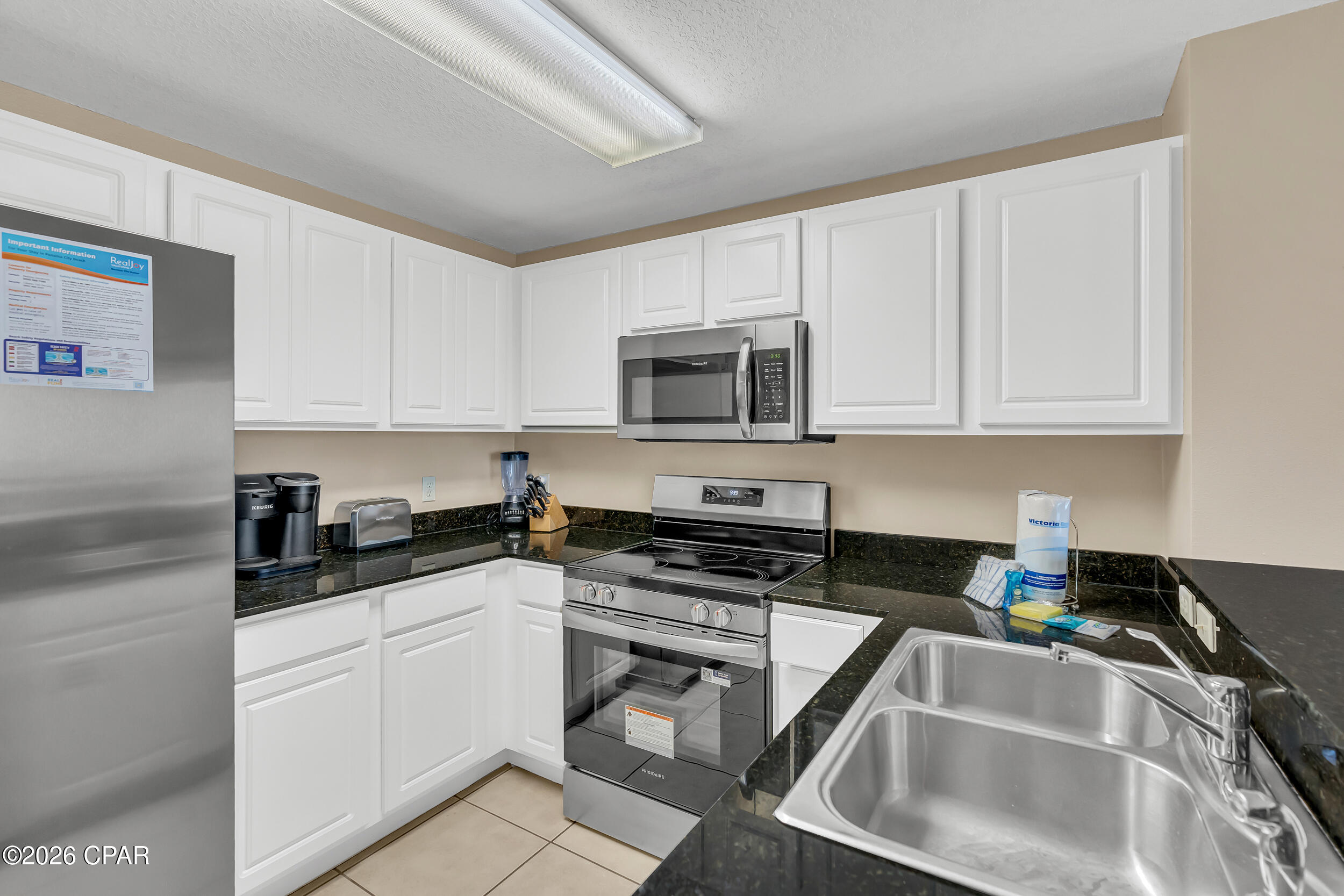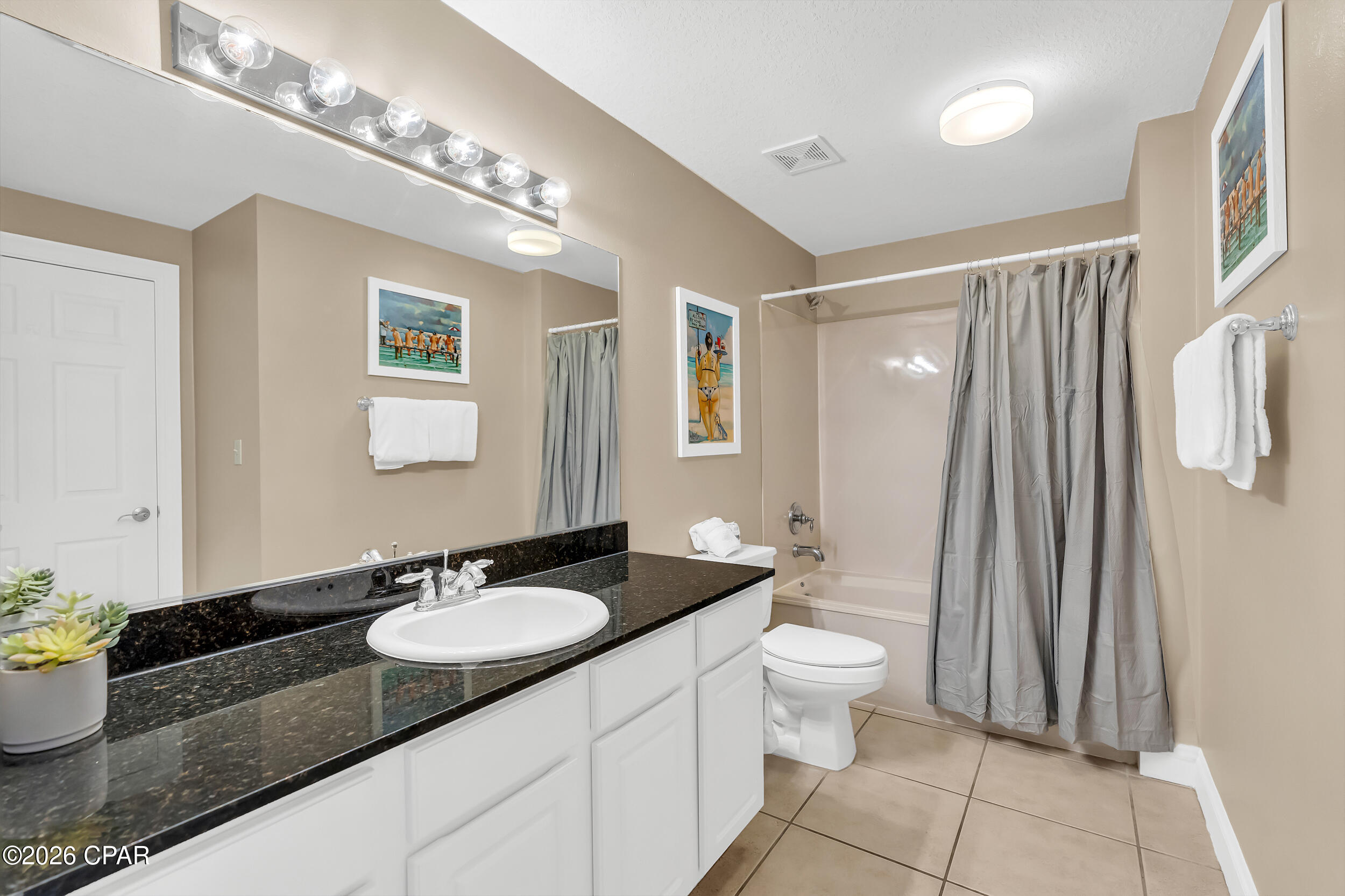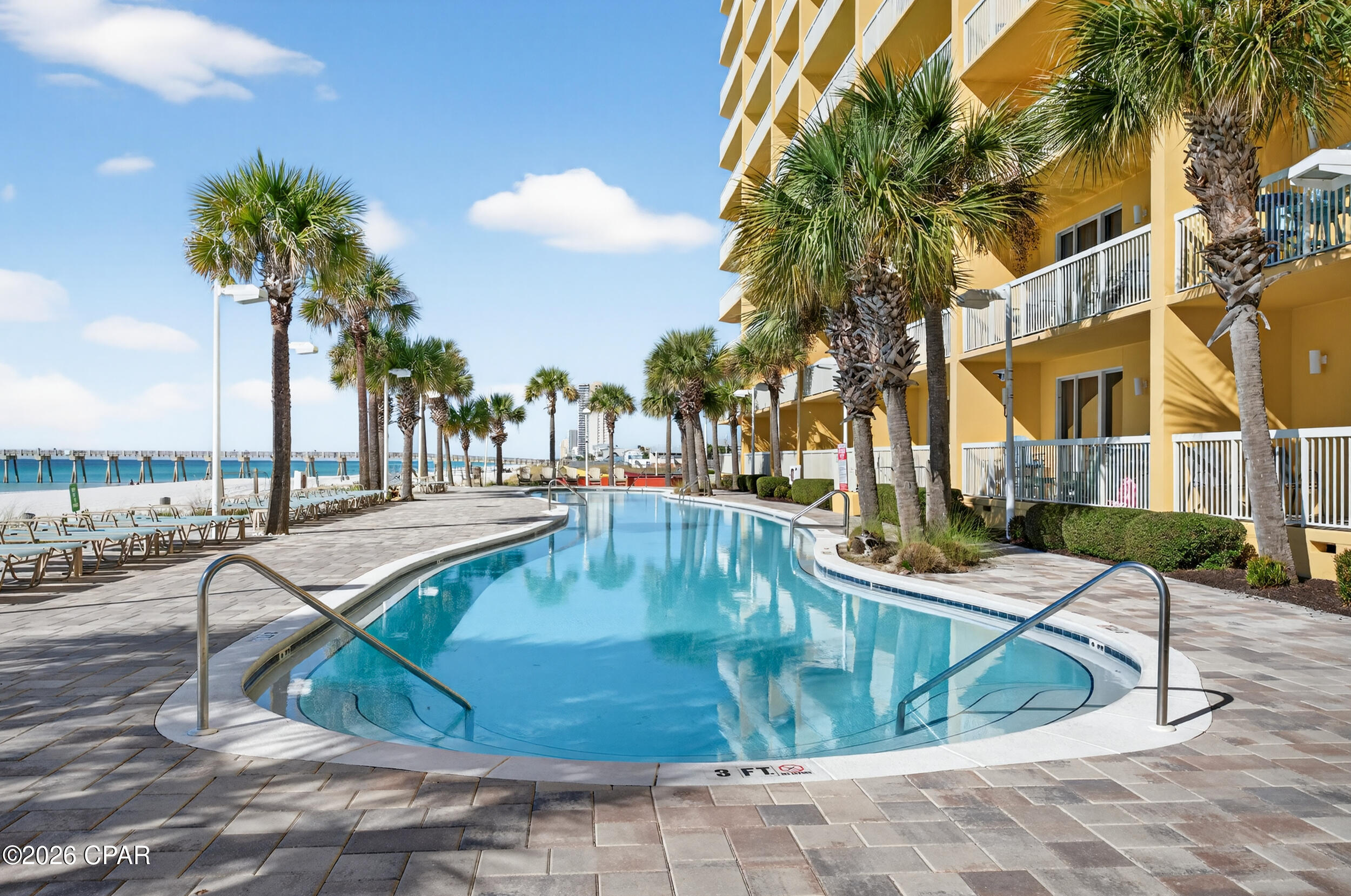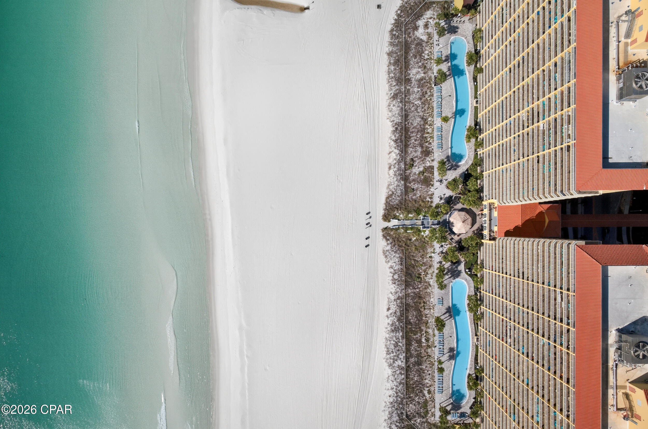 Enjoy breathtaking gulf views, a desirable floor plan, and exceptional resort amenities in this 2BR/2BA+BUNKS at Calypso. Perfect for short-term rentals or as a vacation home, this spacious getaway features a gulf-front primary suite with balcony access and a bonus bunk room that gives it the feel of a 3-bedroom unit. High above the crowds, you'll appreciate the peaceful privacy, gorgeous water vistas, and relaxing sounds of the surf - all while being just steps away from the area's top attractions. Inside, durable tile flooring runs throughout, ideal for beach living and effortless upkeep. The open living and dining areas are filled with natural light, with floor-to-ceiling sliding glass doors that lead out to your private balcony where the views stretch for miles. The fully-stocked kitchen features granite countertops and brand new stainless steel appliances. A walk-in laundry room and wet bar adds extra convenience. Full furnished and rental ready, this condo comfortably sleeps 8 guests. Calypso Resort offers more than just a place to stay. Spend days lounging by one of the two beachfront pools, grabbing a drink at the tiki bar, or working out at the fitness center. And when you're ready to explore, Pier Park, with its vast offering of dining, shopping and entertainment, is right across the street. New attractions like Topgolf and Dolly Parton's pirate-themed dinner theater will also being more excitement to the area when they open this year. Its location puts everything within easy reach. This condo is a great opportunity for someone looking to own in one of Panama City Beach's favorite resorts - come take a look and see why Calypso remains a top pick year after year.