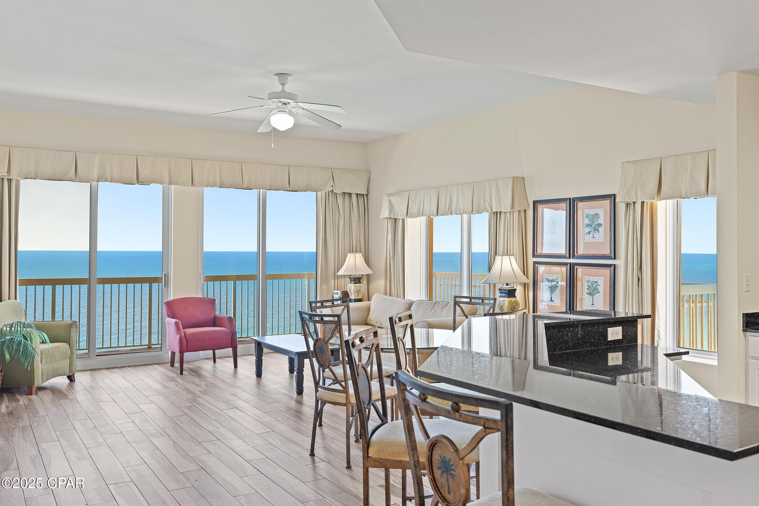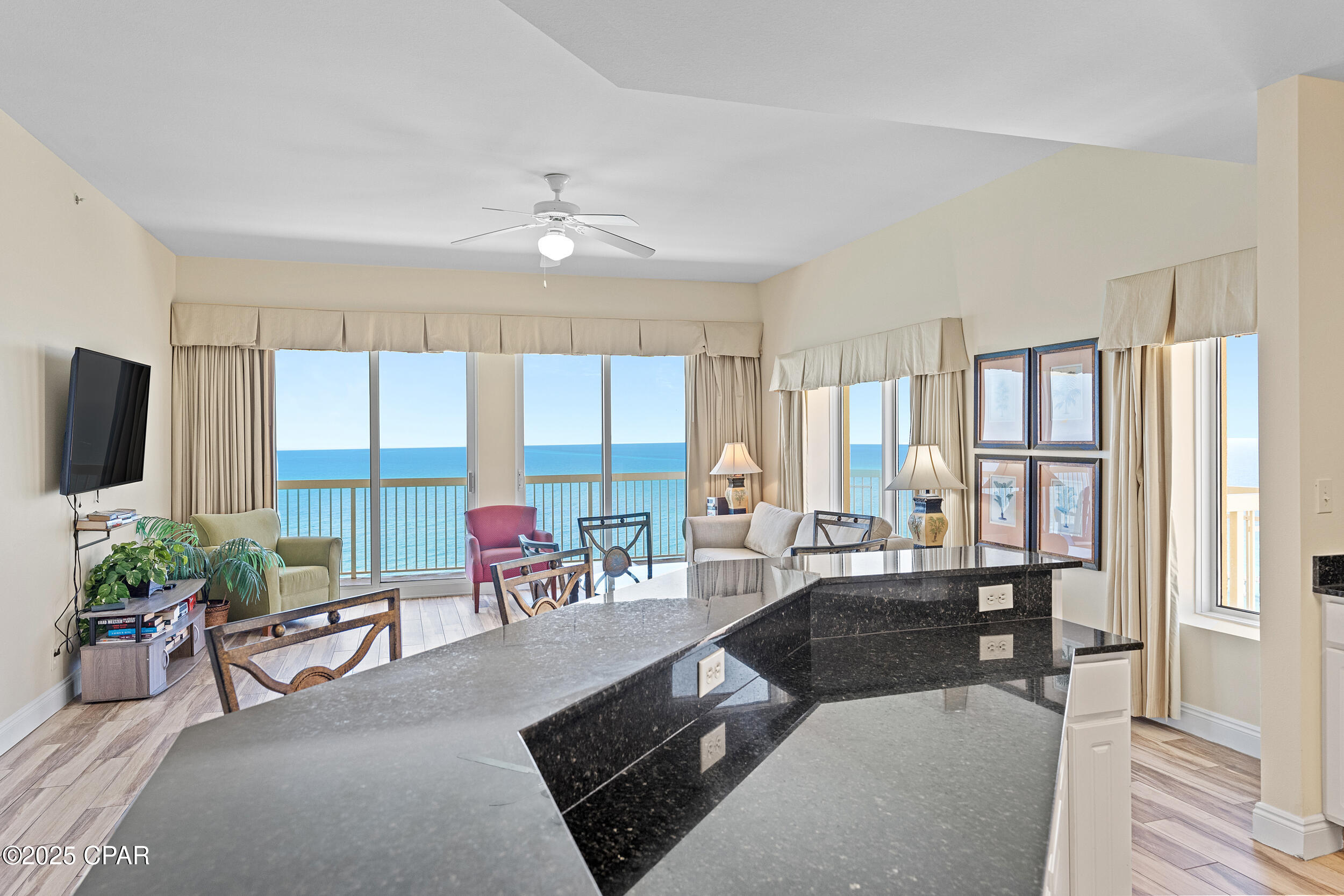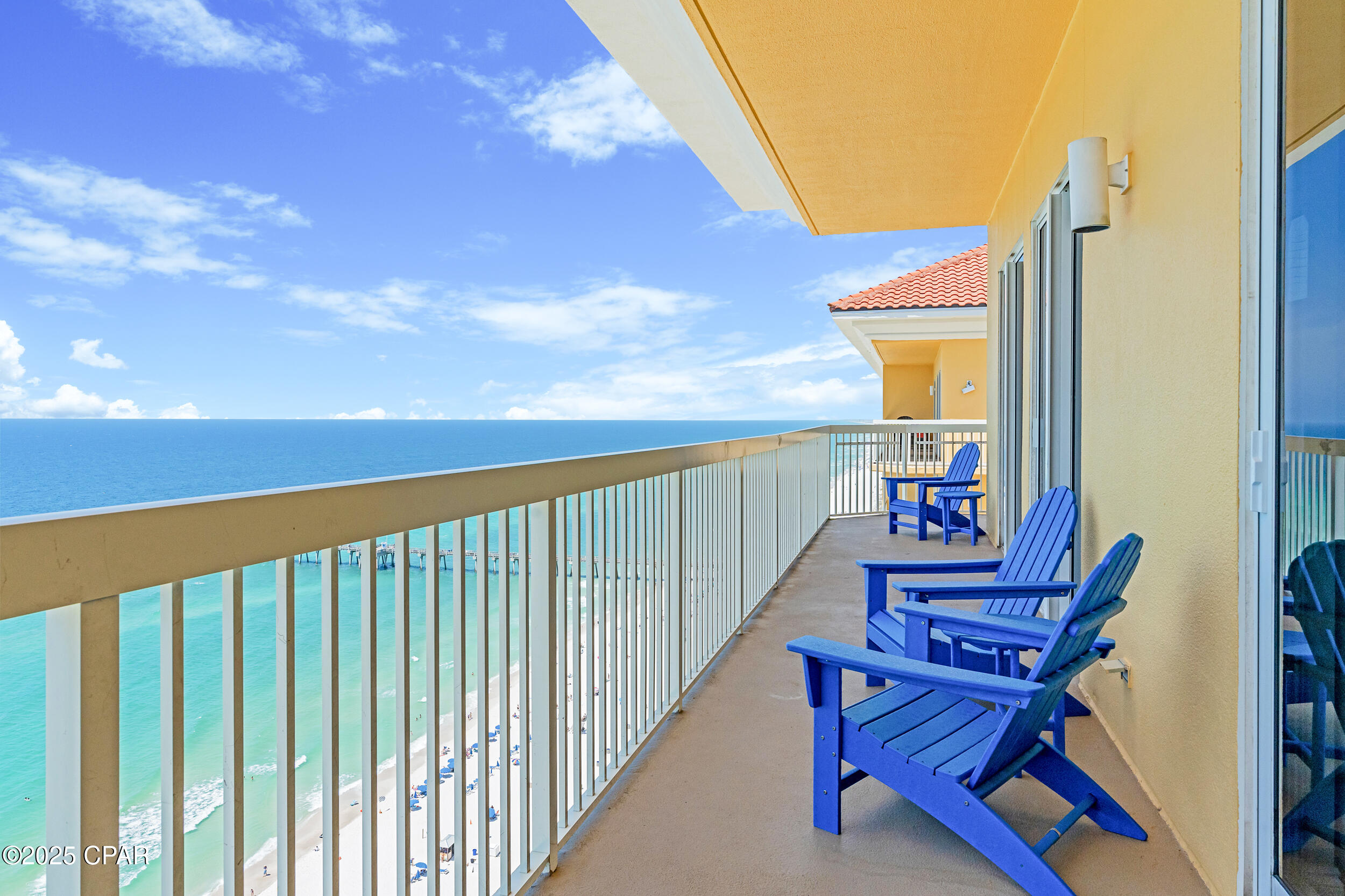 Calypso I-2309 is a beautifully updated 2BR/2BA Gulf-front corner condo, perched on the top floor with one of the most impressive balconies on the beach. This west-facing, end-unit layout features a massive wraparound balcony that captures sweeping, unobstructed views of the shoreline, Pier Park, and spectacular sunsets year-round. Inside, the condo has been freshly painted and offers a bright, open-concept design that's ideal for both personal enjoyment and vacation rental use. The Gulf-front primary suite provides direct balcony access and floor-to-ceiling views that make every morning feel like a getaway. Calypso is one of Panama City Beach's premier resorts, with beachfront pools, a seasonal tiki bar, fitness center, covered parking, and direct beach access. Located just steps from Pier Park's shops, dining, and entertainment, this property also sits near several major projects shaping the future of PCB, including Topgolf, Dolly Parton's Pirates Voyage Dinner Show, and a state-of-the-art medical research campus. Whether you're looking for a relaxing second home, a rental-friendly beach escape, or both, Calypso I-2309 delivers location, lifestyle, and long-term appeal.