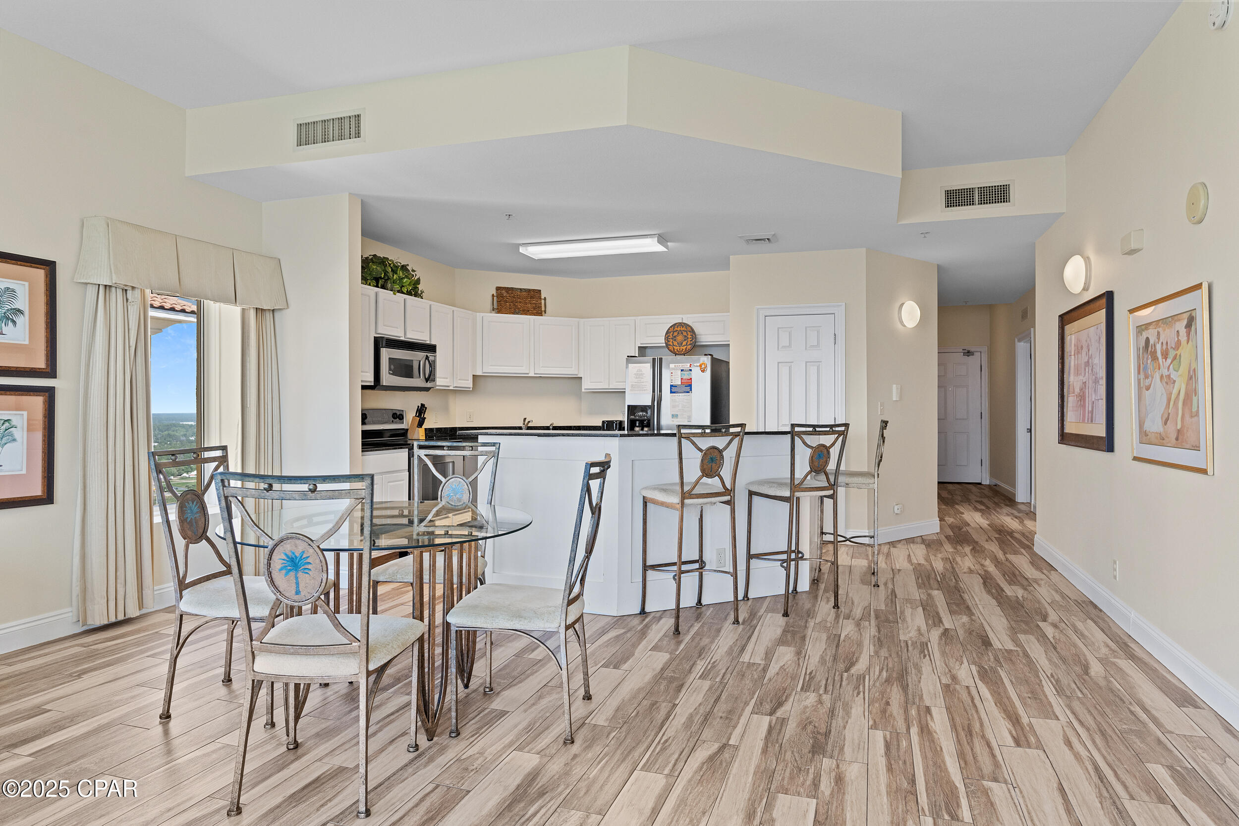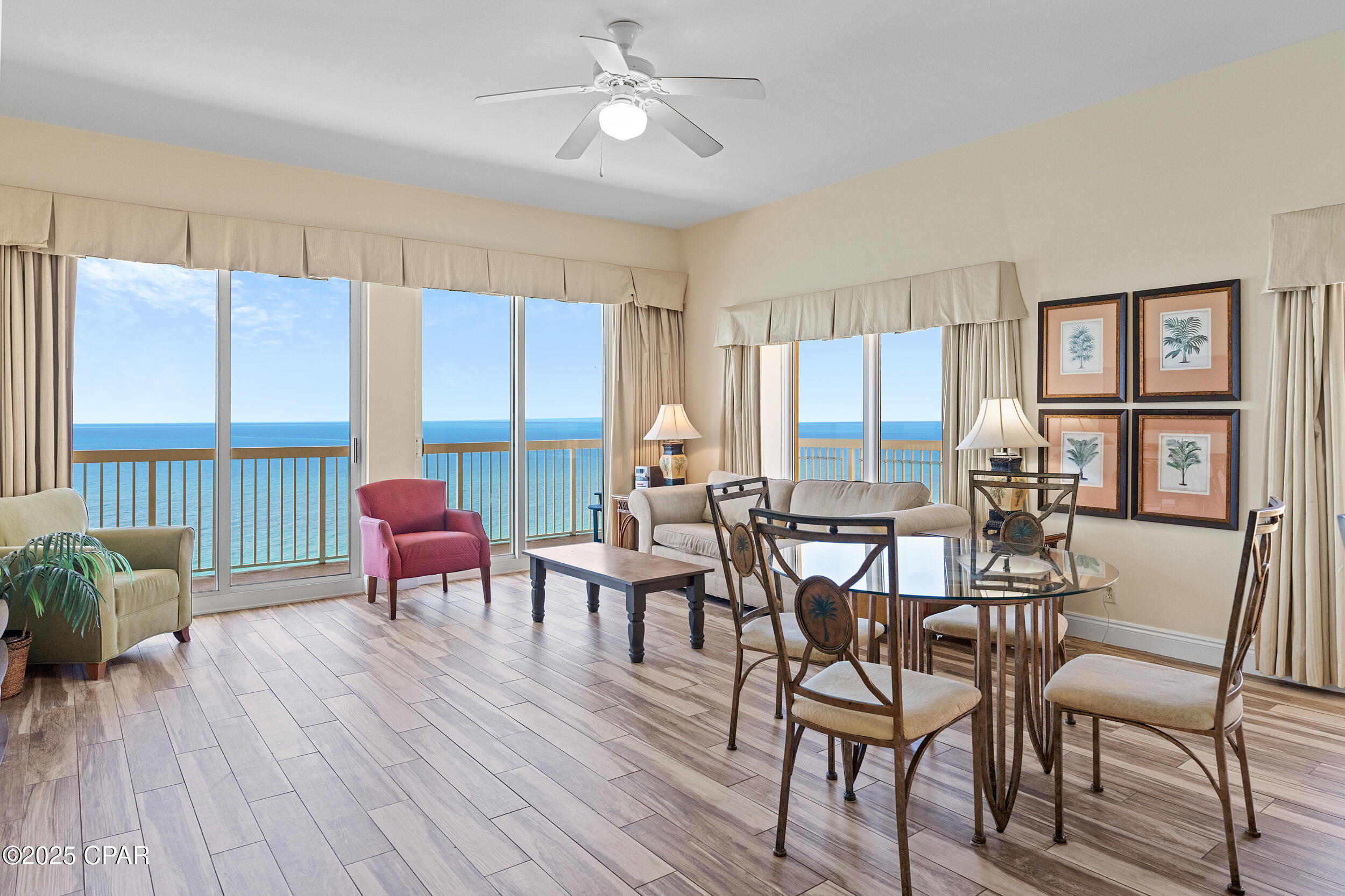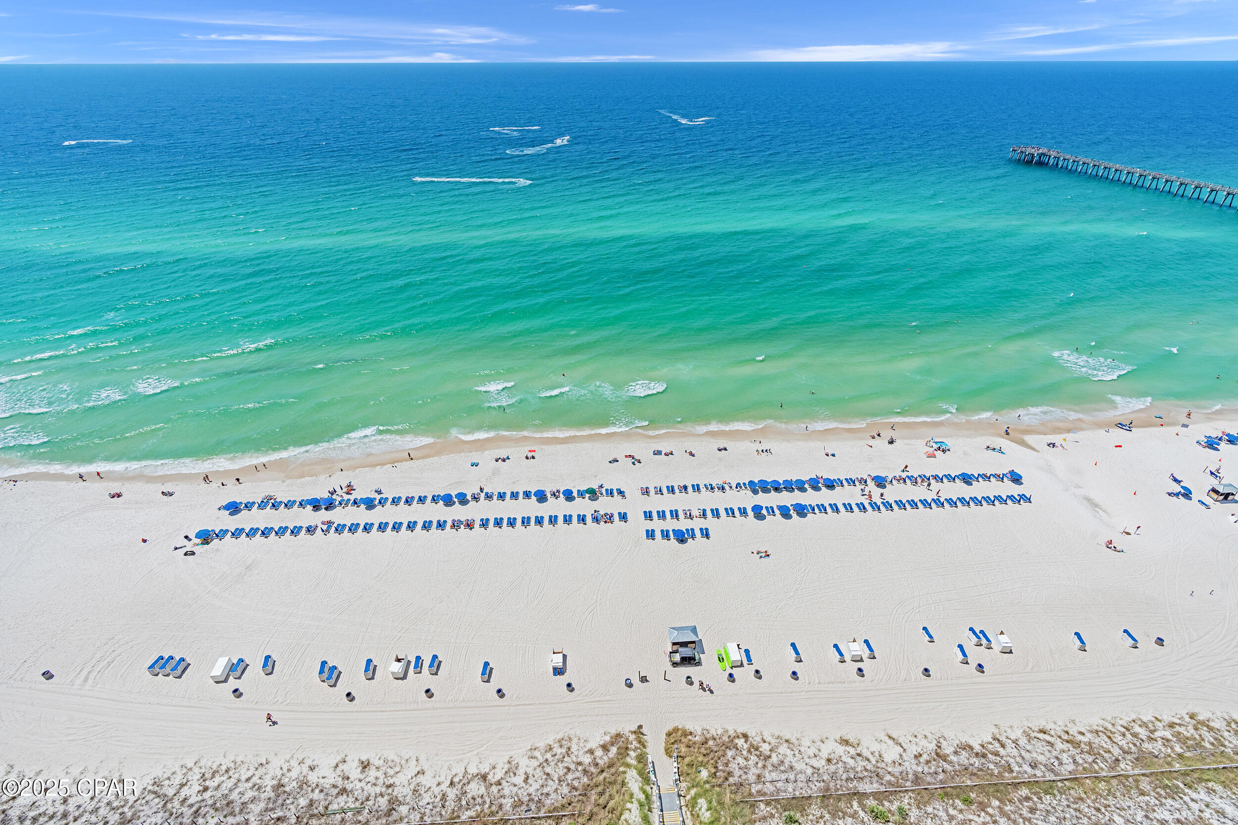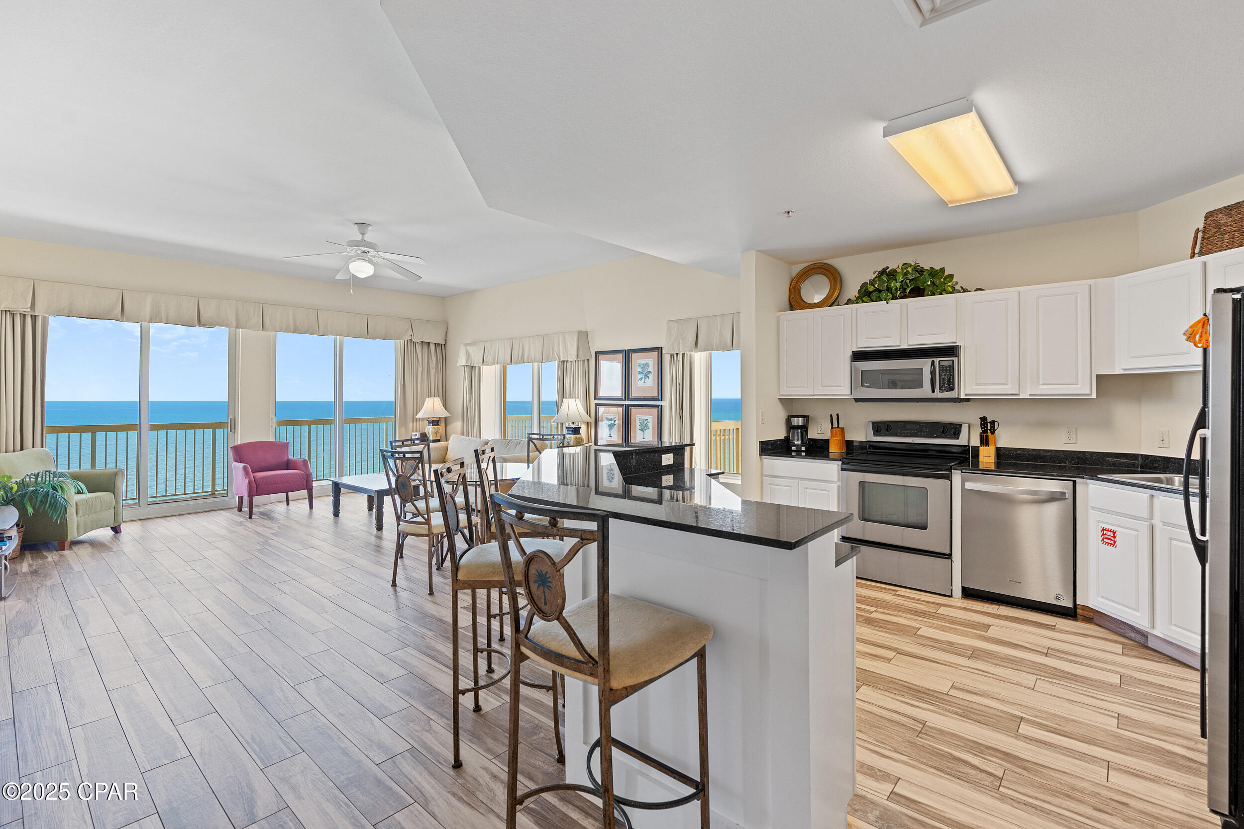 Calypso I-2309 is a beautifully updated 2BR/2BA Gulf-front corner condo, perched on the top floor with one of the most impressive balconies on the beach. This west-facing, end-unit layout features a massive wraparound balcony that captures sweeping, unobstructed views of the shoreline, Pier Park, and spectacular sunsets year-round. Inside, the condo has been freshly painted and offers a bright, open-concept design that's ideal for both personal enjoyment and vacation rental use. The Gulf-front primary suite provides direct balcony access and floor-to-ceiling views that make every morning feel like a getaway. Calypso is one of Panama City Beach's premier resorts, with beachfront pools, a seasonal tiki bar, fitness center, covered parking, and direct beach access. Located just steps from Pier Park's shops, dining, and entertainment, this property also sits near several major projects shaping the future of PCB, including Topgolf, Dolly Parton's Pirates Voyage Dinner Show, and a state-of-the-art medical research campus. Whether you're looking for a relaxing second home, a rental-friendly beach escape, or both, Calypso I-2309 delivers location, lifestyle, and long-term appeal.