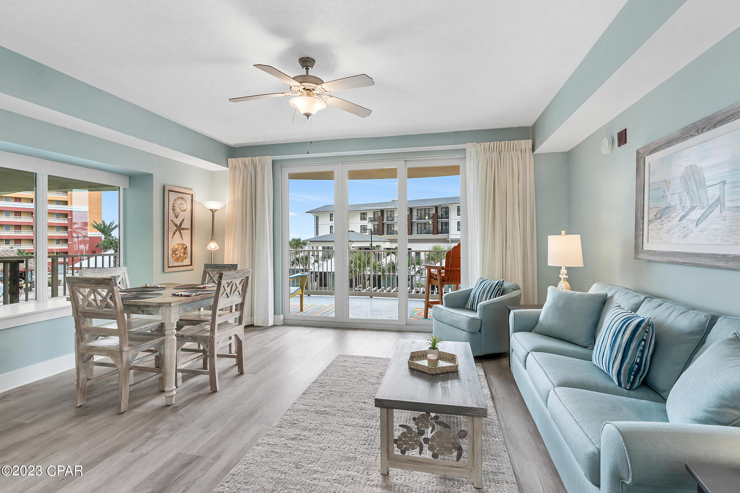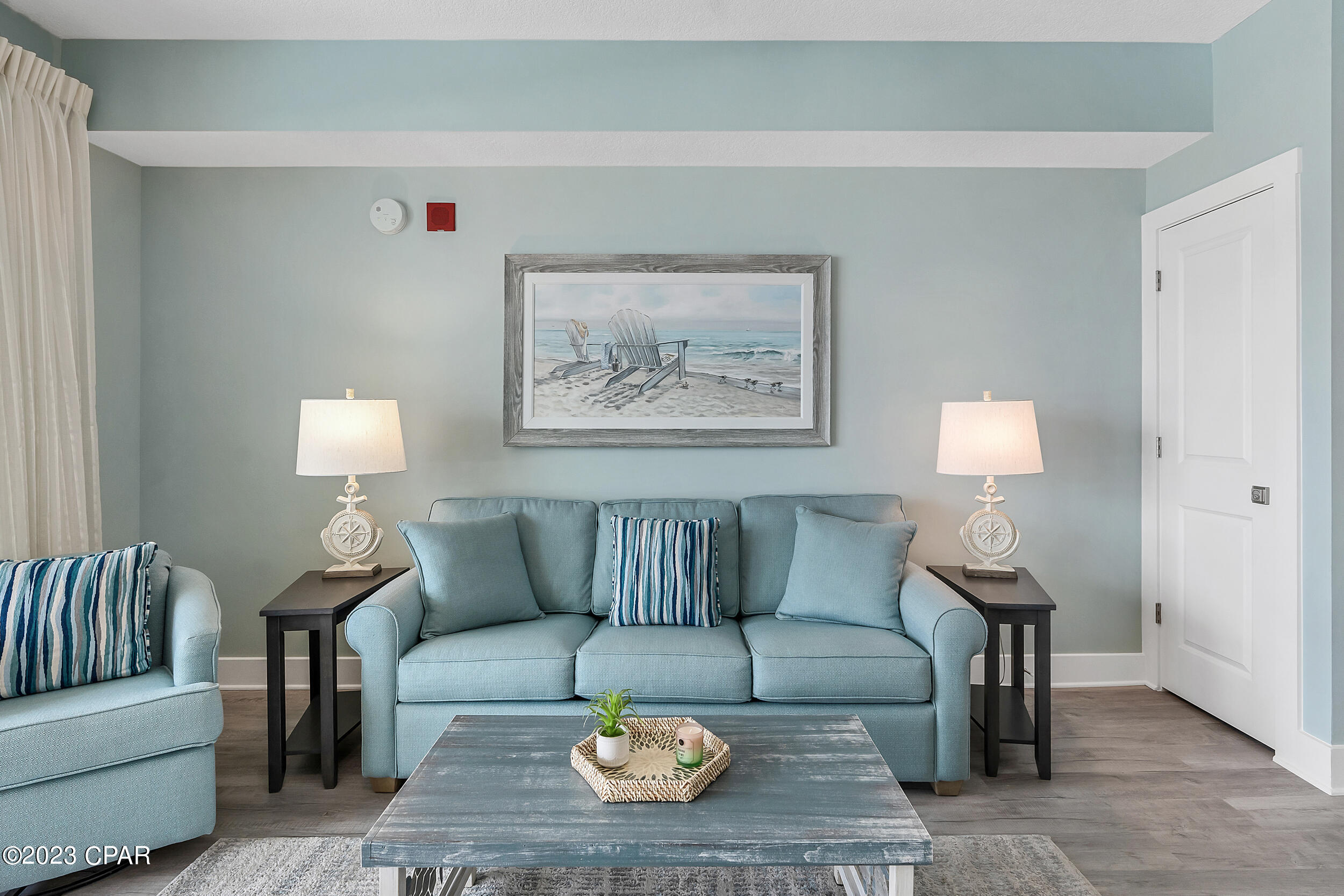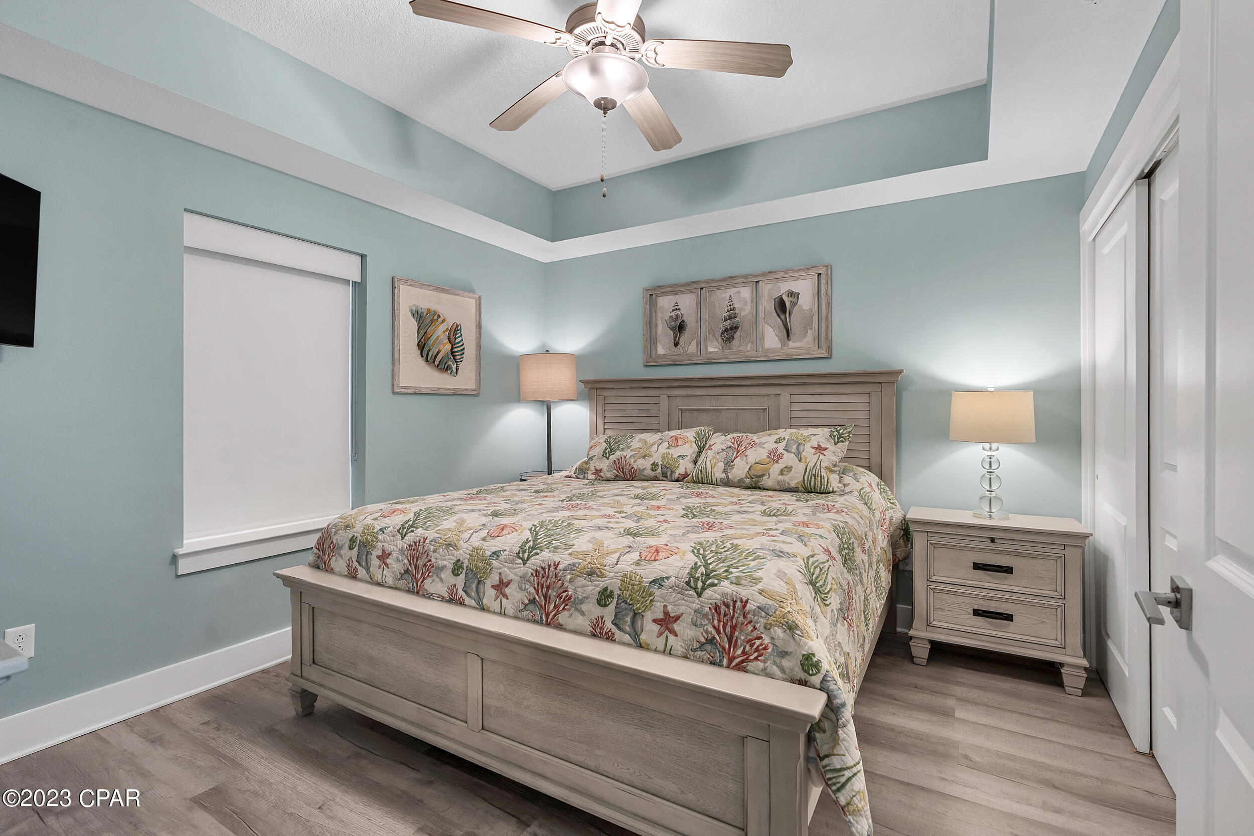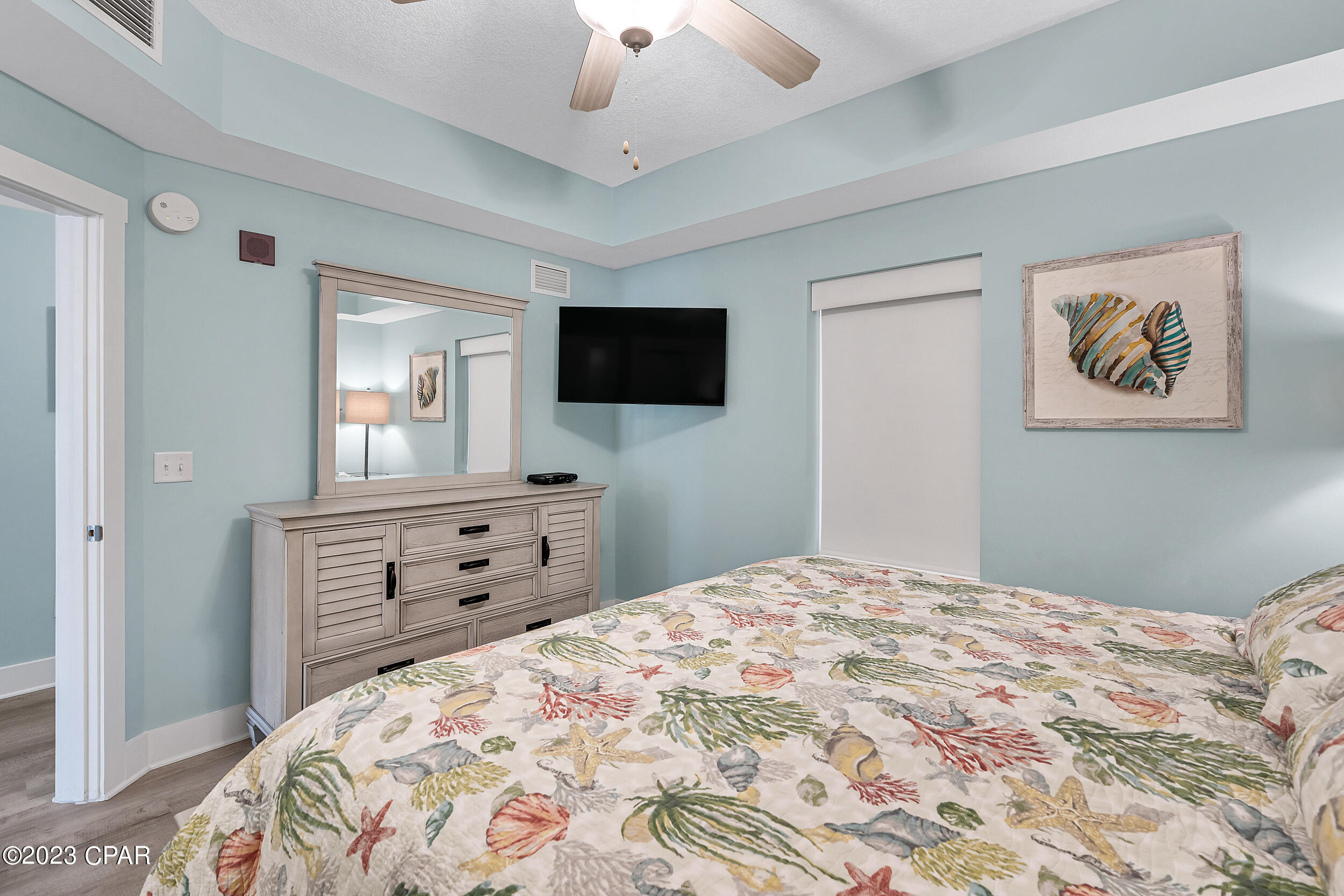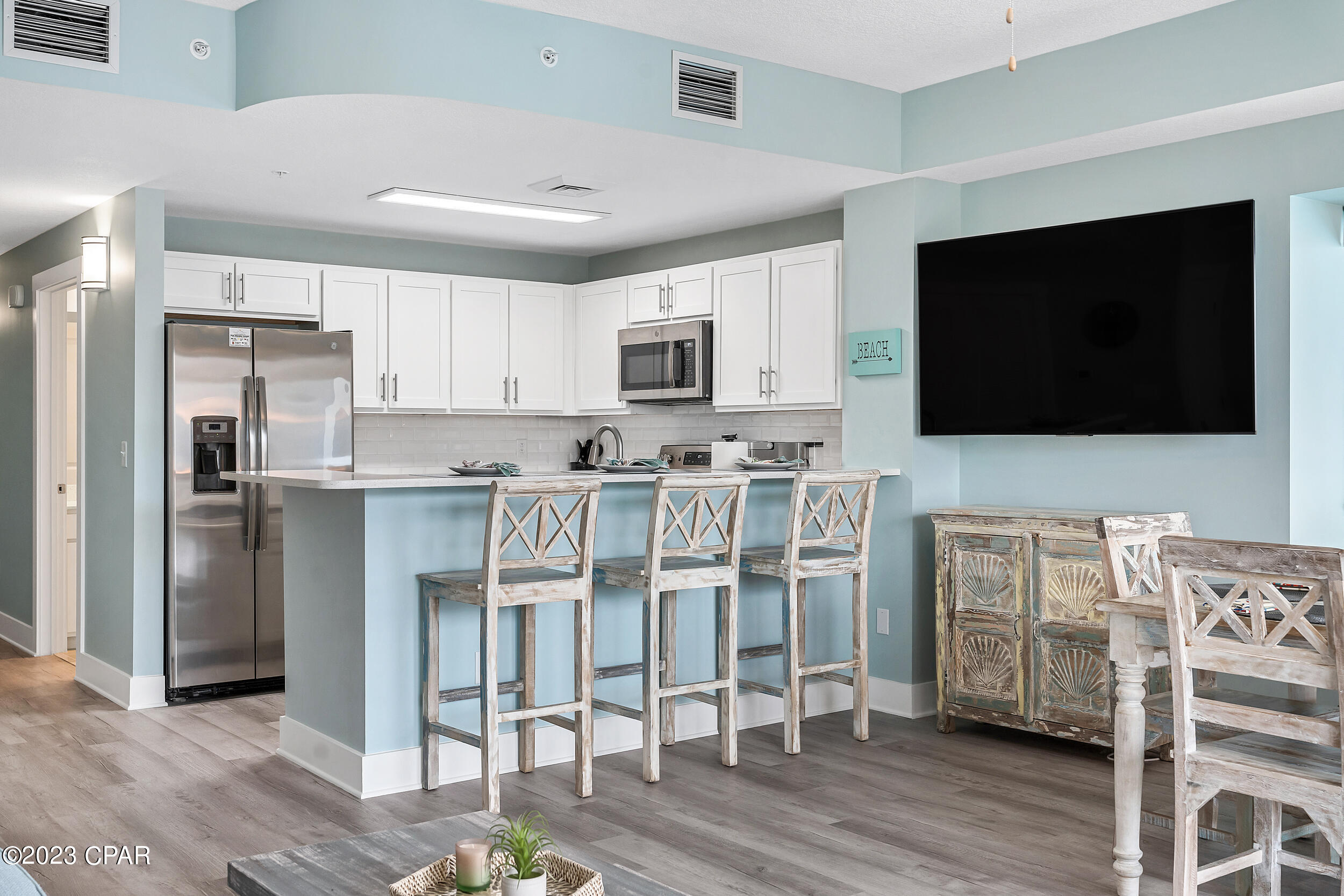 This property has sold! Discover similar listings by reaching out to us for an updated list of available properties that match your preferences. **SELLER WILL REVIEW OFFERS IN THE ORDER THAT THEY ARE RECEIVED** Priced to sell, this incredible 1BR/2BA + Bunks condo is one of only two units like it in the entire Calypso project! Located in Panama City Beach's newest development, Calypso Tower 3, and completed in 2020, this condo is 13 years newer than any other building on the beach, offering modern amenities and an unbeatable location near Pier Park. Tastefully decorated, this unit features upgraded commercial-grade LVP floors, custom bunks, and a unique side window that floods the space with natural light. One of only two 1BR units with a wrap-around balcony, it provides expansive room and stunning views of the resort, beach, water, and pier from the kitchen, living area, and balcony. Calypso Tower 3 amenities include poolside cabanas, a hot tub, on-site food service (with room delivery), a beach shop, a poolside bar, and a fitness center. Enjoy the luxury of poolside lounging and the convenience of nearby attractions. Don't miss out on this beautifully appointed condo--schedule a viewing today!