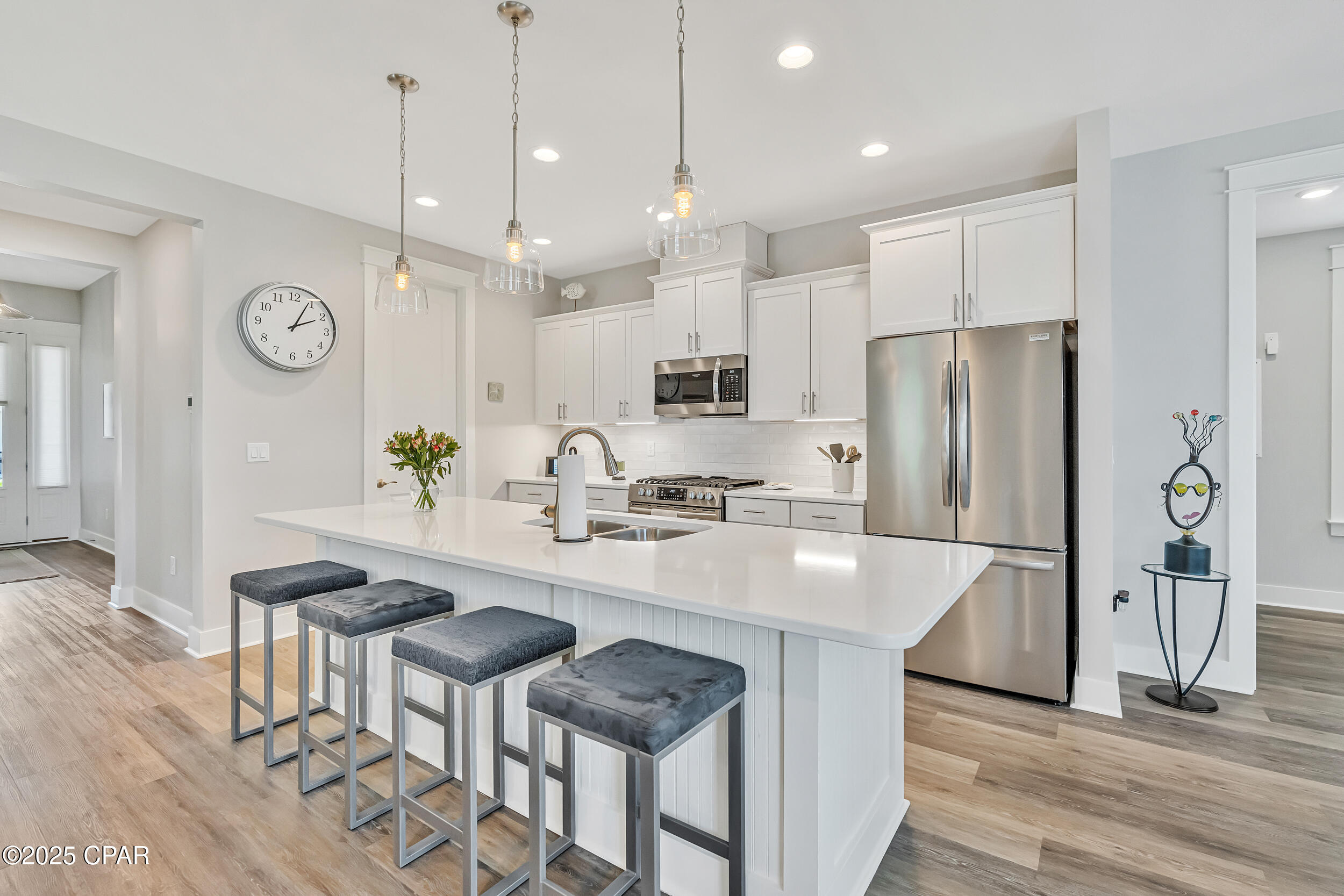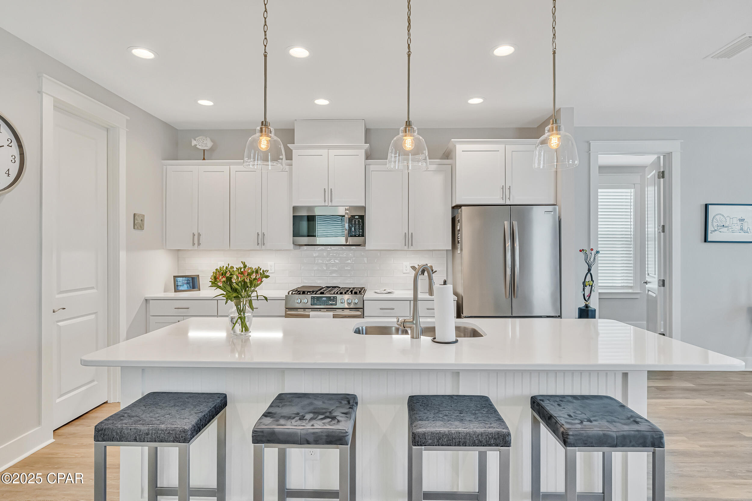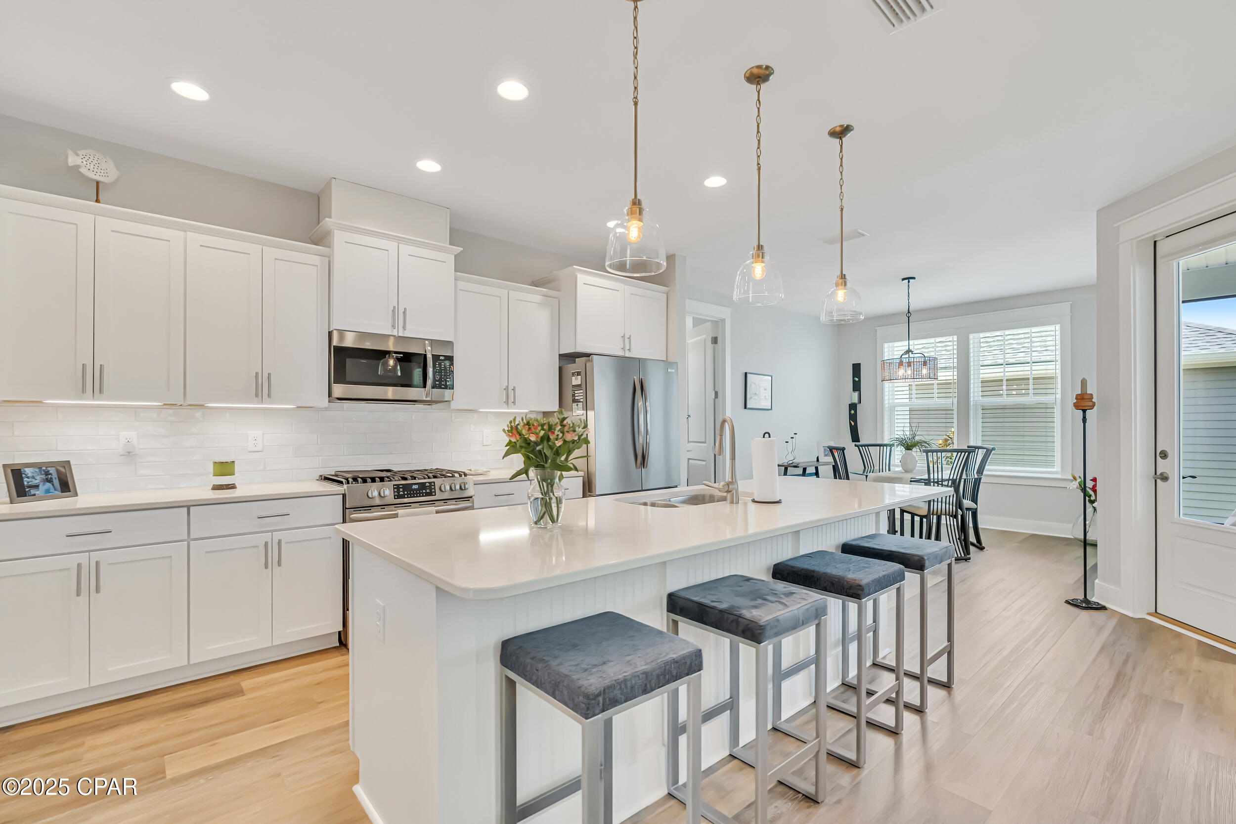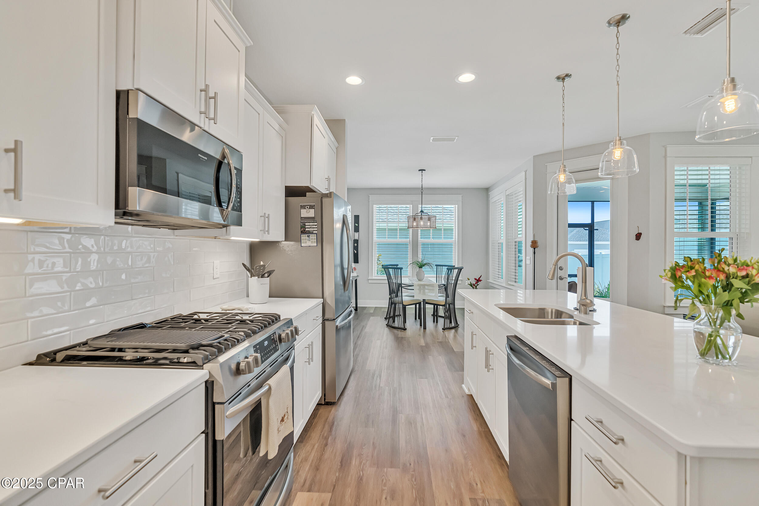This property has sold! Discover similar listings by reaching out to us for an updated list of available properties that match your preferences. Seller to credit Buyer, $10,000 at Closing for Buyer's Closing Costs and Pre-Paid Items. **GOLF CART INCLUDED**This thoughtfully designed Orchid plan 3BR/2BA by Samuel Taylor offers a bright, comfortable space where you can truly feel at home. This no pets, no smoking home has been maintained with care to ensure a clean, comfortable environment. The layout brings the kitchen, dining, and living areas together for easy, open living - perfect for family dinners, movie nights, or entertaining. The kitchen features quartz countertops, a custom backsplash, under-cabinet lights, soft-close cabinets, stainless steel appliances including a gas range, a large walk-in pantry, and an island that becomes the center of everything from quick breakfasts to longer evening conversations. Throughout the home, custom blinds, paddle switches, and thoughtfully installed ceiling fans enhance both style and comfort. The guest bath features a tiled shower surround with glass doors. The primary suite is set apart from the other bedrooms, offering a quiet retreat with a tray ceiling, a walk-in tiled shower, a double vanity, and a spacious walk-in closet. Practical touches include a dedicated laundry area with a washer and dryer that stay with the home. Outdoor living is just as inviting with a screened-in lanai, gas stub, and backyard fencing that create a private sanctuary for relaxing evenings or weekend barbecues. The parking pavers make daily convenience a breeze, while gutters for both the house and garage and fabric hurricane covers offer peace of mind. SweetBay is more than just a neighborhood...it's a vibrant community. Miles of trails wind through green spaces, while the dock offers access to kayaking, paddle boarding, and fishing. Private beaches, pools, sports courts, and playgrounds invite you to get outside, and a future marina and Publix-anchored town center promise even more convenience and activity. Families also will appreciate having University Academy, a top-rated K-8 school, right within the community. A golf cart comes with the home, making it easy to get around the neighborhood and explore all that SweetBay and its surrounding area offer - including quick trips to the new resort-style pool just around the corner. Ready to see if this is the right fit for your next chapter? Schedule a tour today and experience firsthand why SweetBay is such a special place to call home.
