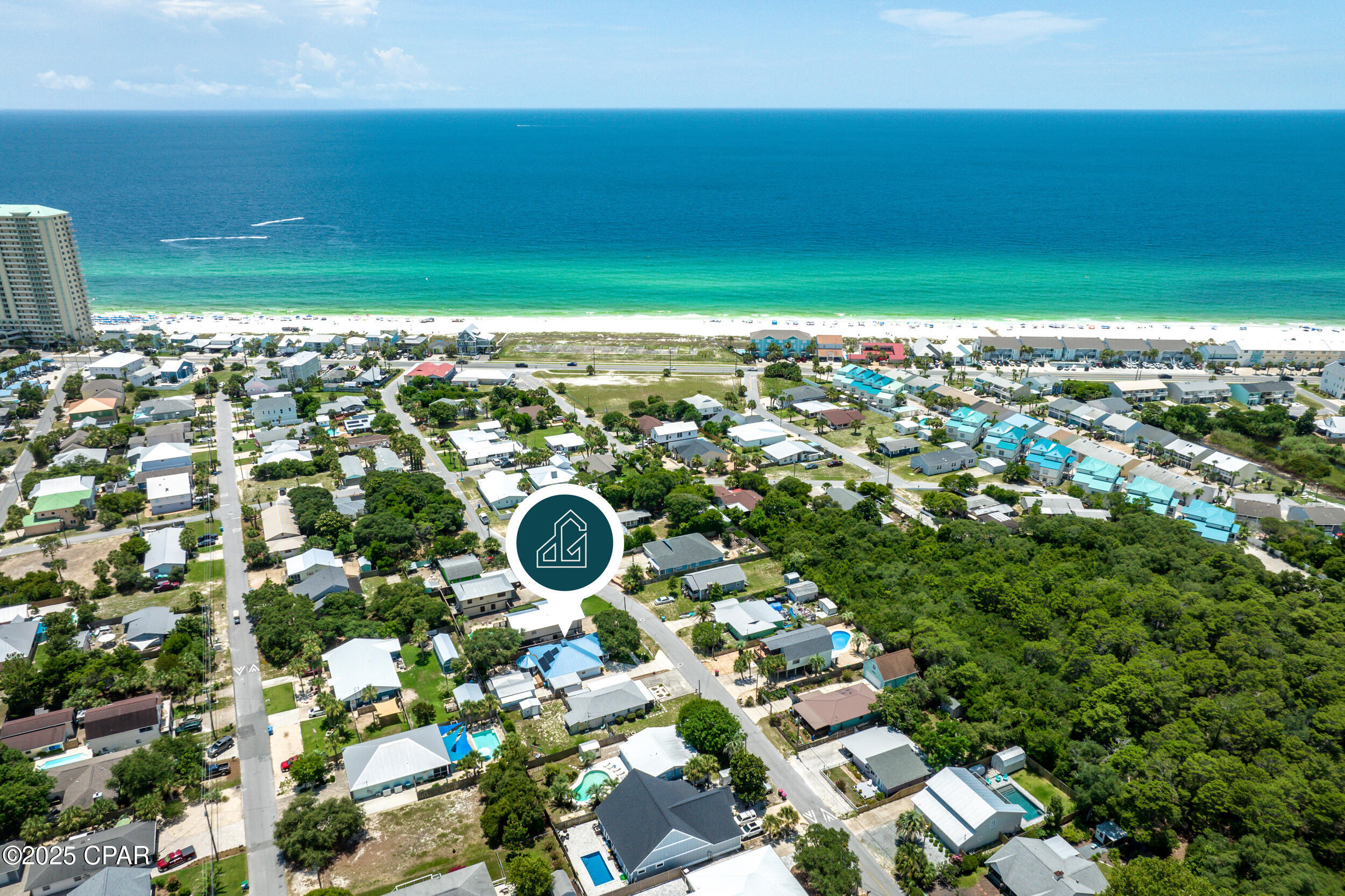 This property has sold! Discover similar listings by reaching out to us for an updated list of available properties that match your preferences. Just 1.5 blocks from the sugar-white sands and emerald waters that define Panama City Beach, this charming 3BR/2.5BA home blends coastal living with everyday comfort. Whether you're looking for a laid-back primary residence or a vacation getaway, this property offers flexibility, easy living, and a prime west-end location. Situated in a golf-cart friendly neighborhood with no HOA, you're just a short stroll or quick ride to the beach and local favorites like Thomas Donuts and Carousel Supermarket. What's more, it's only a short 10-minute drive to Pier Park or 30A, making it easy to enjoy everything the area has to offer. Inside, the home features a light and open living space with tray ceilings, tile and LVP flooring throughout the main areas, and carpeted bedrooms for added comfort. The large screened front porch invites you to unwind after a day in the sun, while a backyard gazebo offers a shaded space to relax or entertain. Behind the home, a 20x12 air-conditioned shed provides endless possibilities - use it as a workshop, home office, storage, or flex space. The home also features a Tesla Powerwall and fully paid-off solar panels, helping you significantly reduce monthly electric bills ($30-$40/month on average). Other highlights include a new metal roof (2022), HVAC replaced in recent years, and kitchen appliances installed in 2018. Well cared for and thoughtfully equipped, this beachside property makes coastal living both simple and stress-free. Reach out today for a private tour.