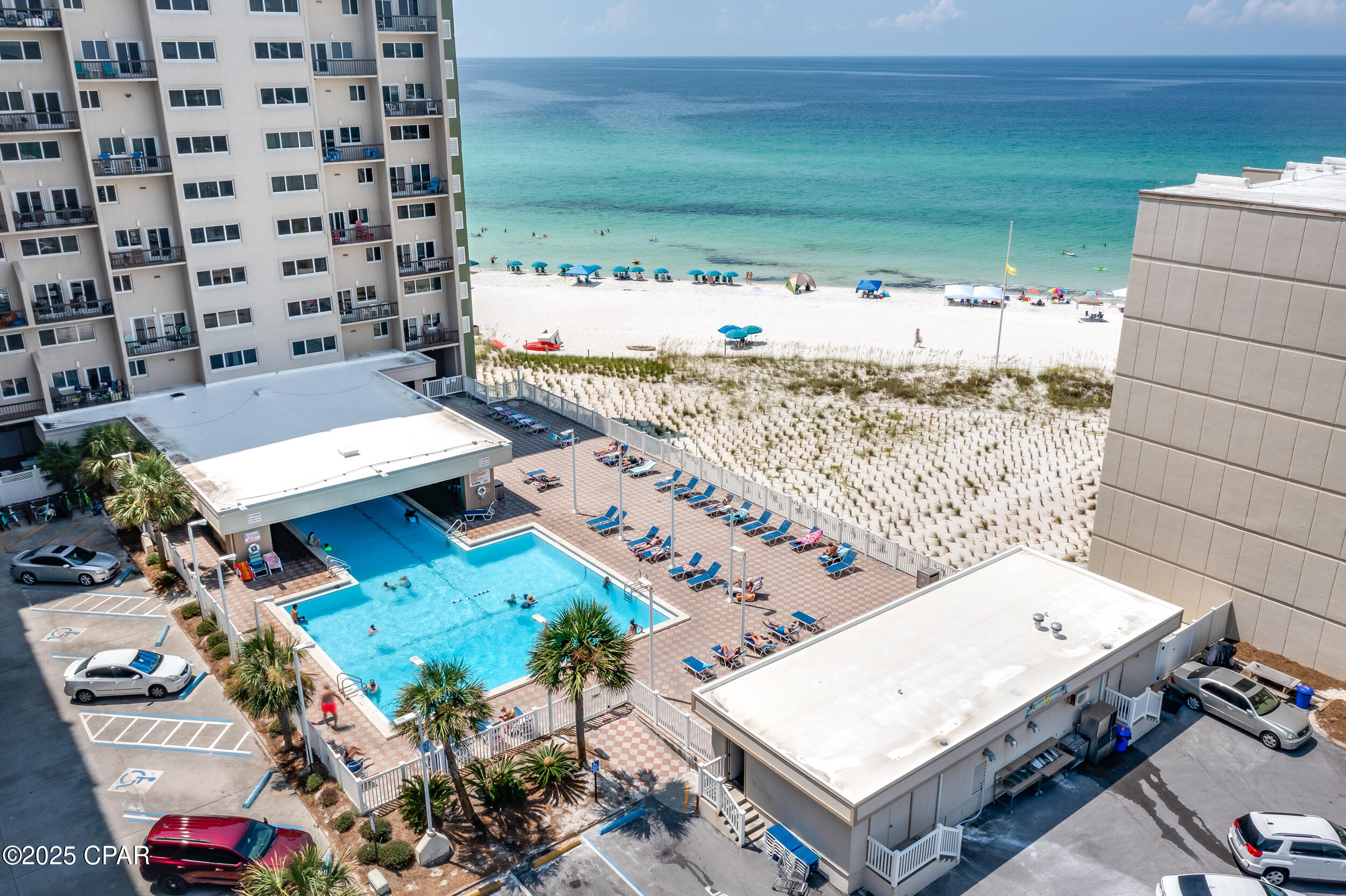 CURRENTLY UNDER CONTRACT, SELLER WILL CONSIDER BACKUP OFFERS. With some of the best gulf views at Pinnacle Port, this 3BR/3BA corner condo captures the beauty of the coast from sunrise to sunset. Situated in one of the community's more private, low-density buildings, it offers a quieter atmosphere and fewer neighbors per floor than the larger towers. From the wraparound balcony, you can see the coast stretching endlessly to the south and the pristine waters of Lake Powell to the north. Gulf-facing windows in both the primary suite and a guest bedroom fill the home with natural light. The HOA fee includes electricity for heating, cooling, and hot water, as well as water, trash, grounds maintenance, and exterior insurance. Owners are responsible only for their electric use related to lighting and appliances which helps to keep monthly bills low and predictable. Pinnacle Port is a one-of-a-kind, 25+ acre gated resort located near the western end of Panama City Beach. Bordered by the Gulf to the south, Lake Powell to the north, and Carillon Beach to the east, it offers over a quarter-mile of sugar-white beach frontage. Enjoy two pools (one heated indoor/outdoor), tennis and pickleball courts, shuffleboard, basketball, sauna/steam room, fitness room, a boat ramp and docks, picnic areas, grilling stations, and more. Enjoy the best of both worlds here - a quiet retreat nestled in nature with convenient proximity to local hotspots.