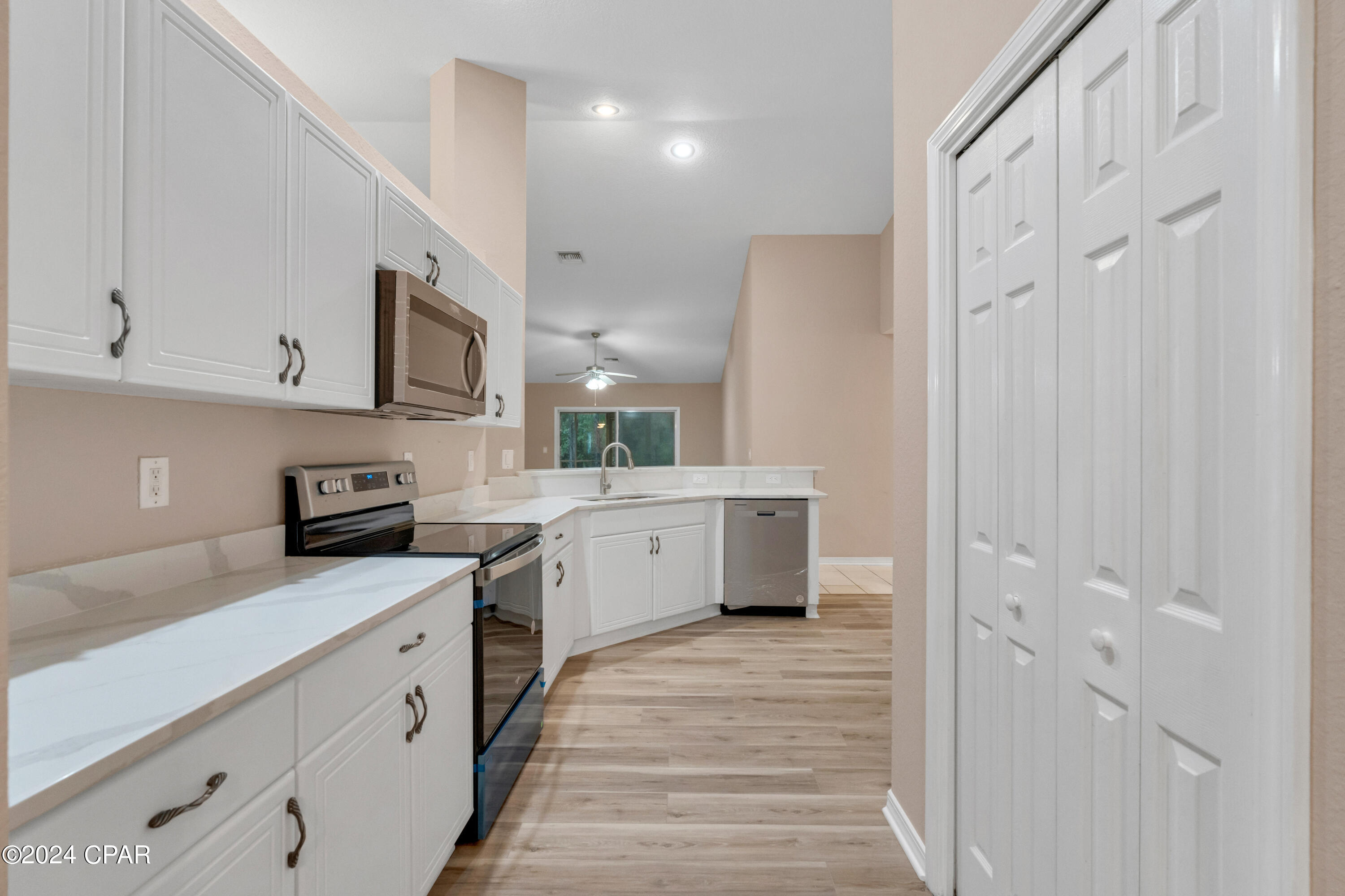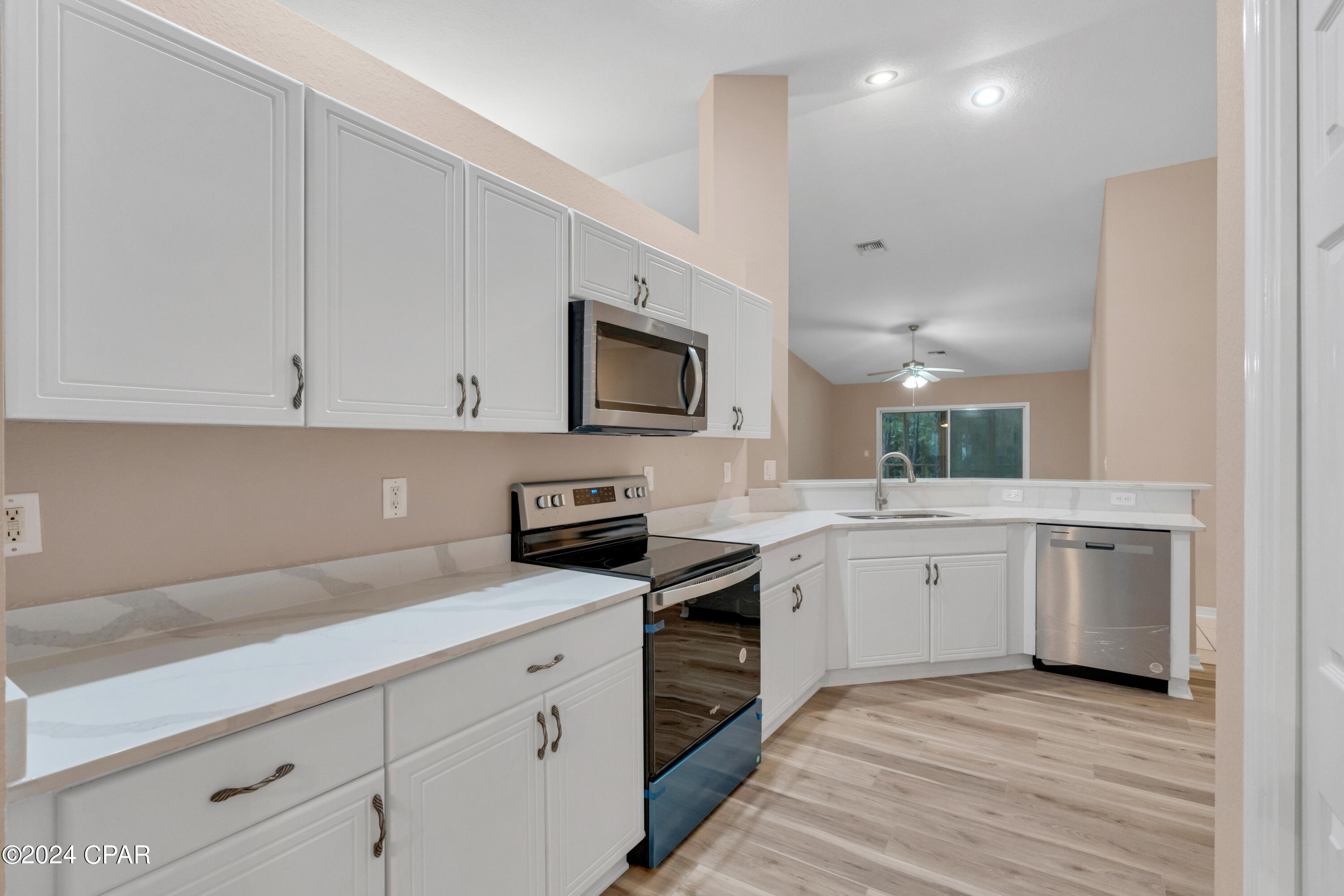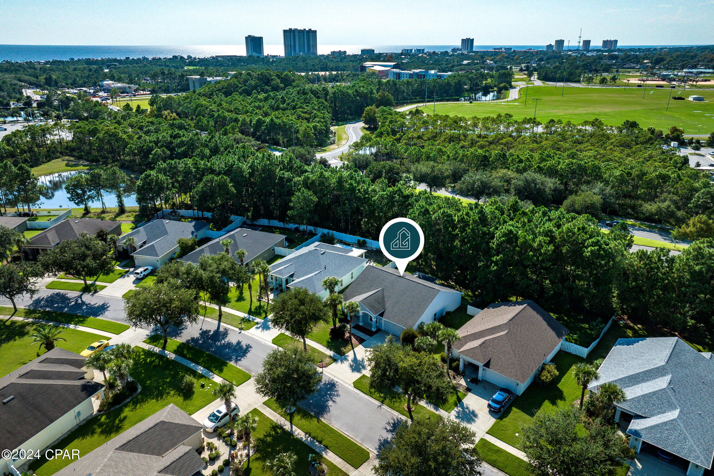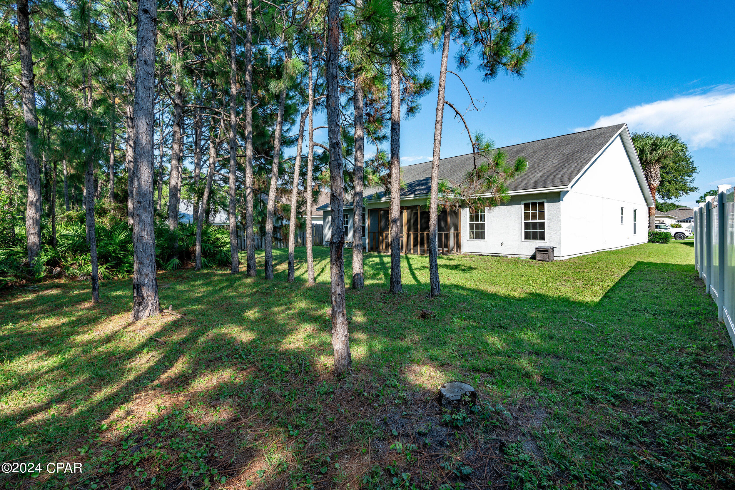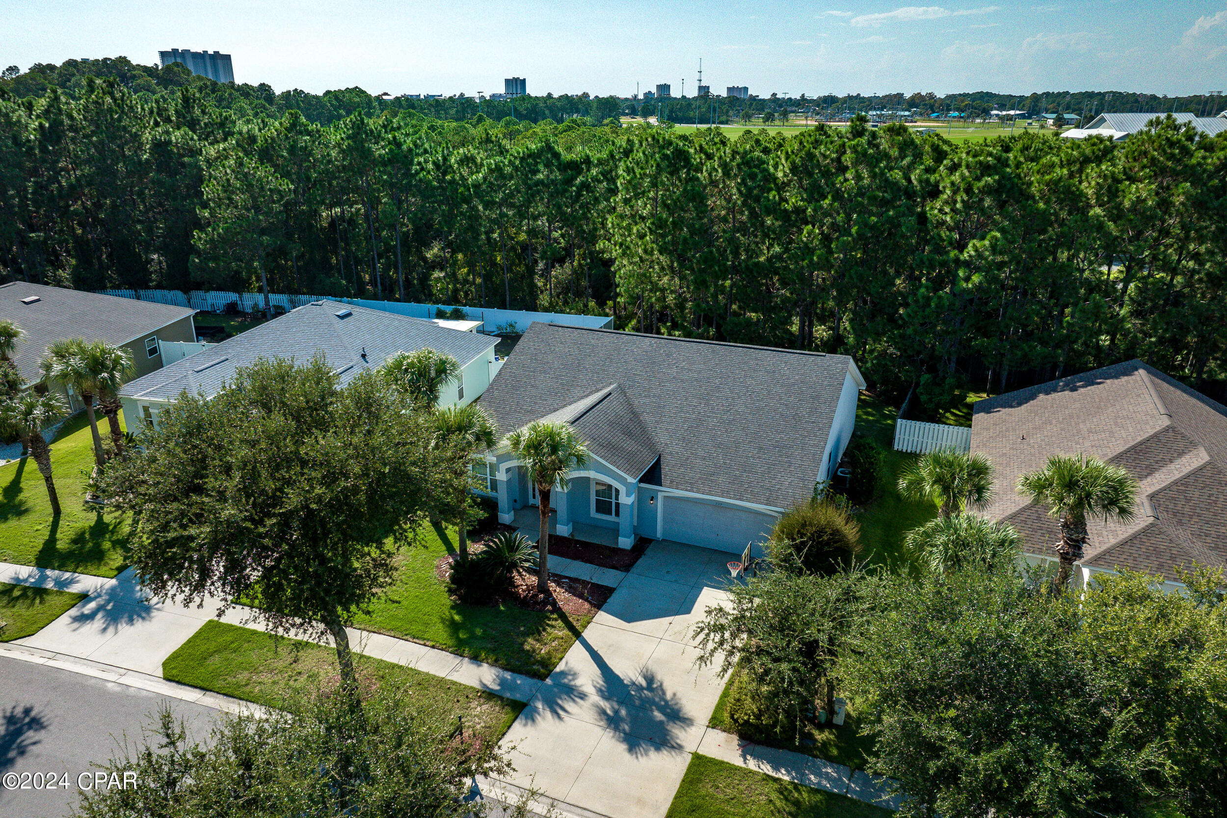This property has sold! Discover similar listings by reaching out to us for an updated list of available properties that match your preferences. Located in the heart of the highly desirable Palmetto Trace neighborhood, this beautiful 4BR/2.5BA home offers the perfect blend of convenience and tranquility. If you are looking for a central location with easy access to all the best that Panama City Beach has to offer, while still enjoying a peaceful retreat, this home delivers on both. Inside, it has been tastefully updated with fresh paint along with brand new luxury vinyl plank floors throughout the bedrooms and living areas (complemented by tile in the hallway and bathrooms). The kitchen boasts modern upgrades, including brand new appliances - stove, microwave, refrigerator and dishwasher - alongside sleek quartz countertops and a new sink and faucet. The open-concept layout, 10' ceilings and large sliding glass doors flood the space with natural light, creating a bright and airy ambiance. The kitchen flows into the dining and living areas, making it the ideal setup for family time and entertaining. Outside, relax in the screened-in porch overlooking a private, wooded backyard - no rear neighbors in sight! The community is golf cart friendly, has two pools, and access to Gayle's Trails, perfect for outdoor enthusiasts. Located just minutes from Pier Park, Frank Brown Park, Aaron Bessant Park, and the beautiful beaches Panama City Beach is known for, this home is truly at the center of it all. Embrace the laid-back, coastal lifestyle. Schedule a showing today!