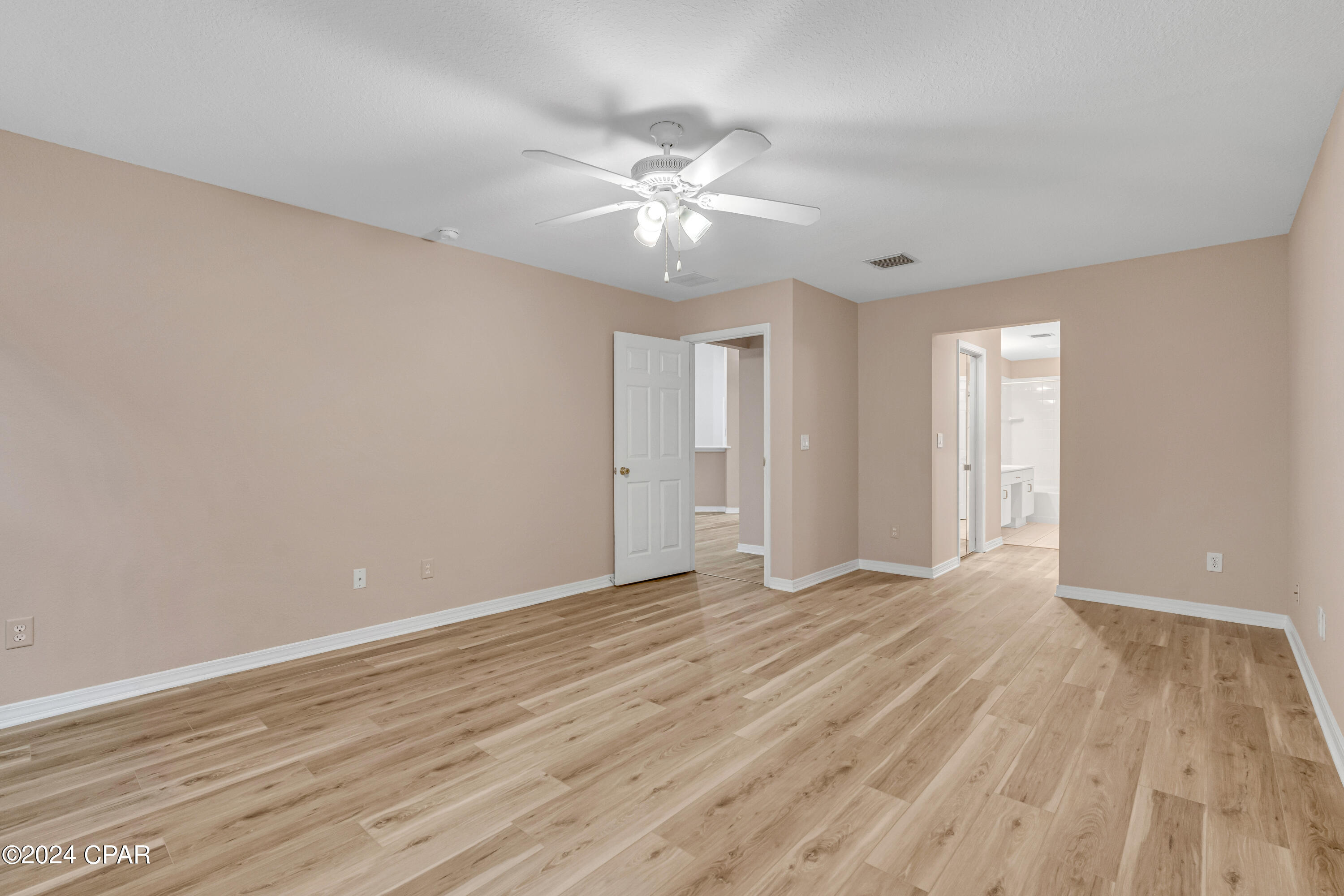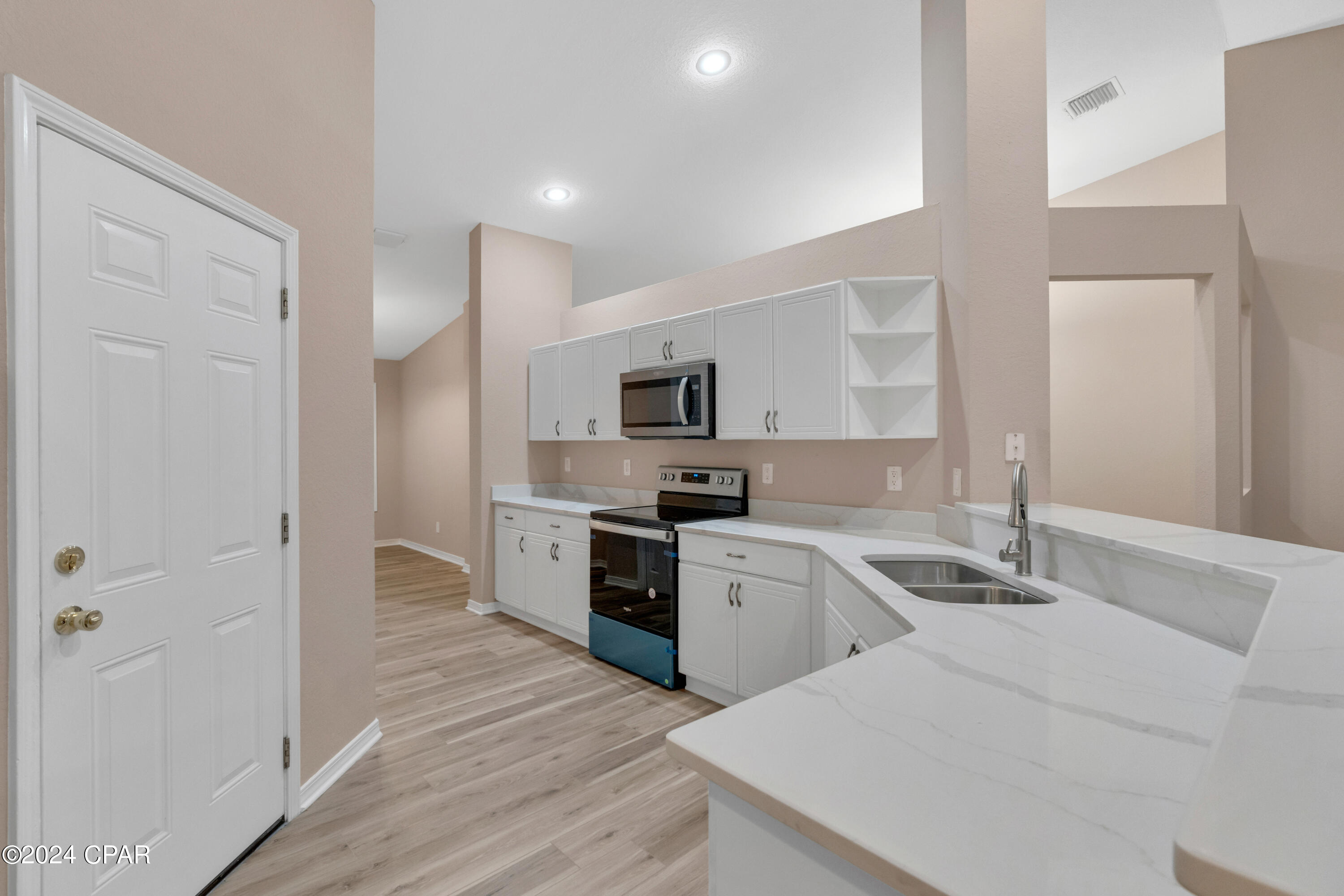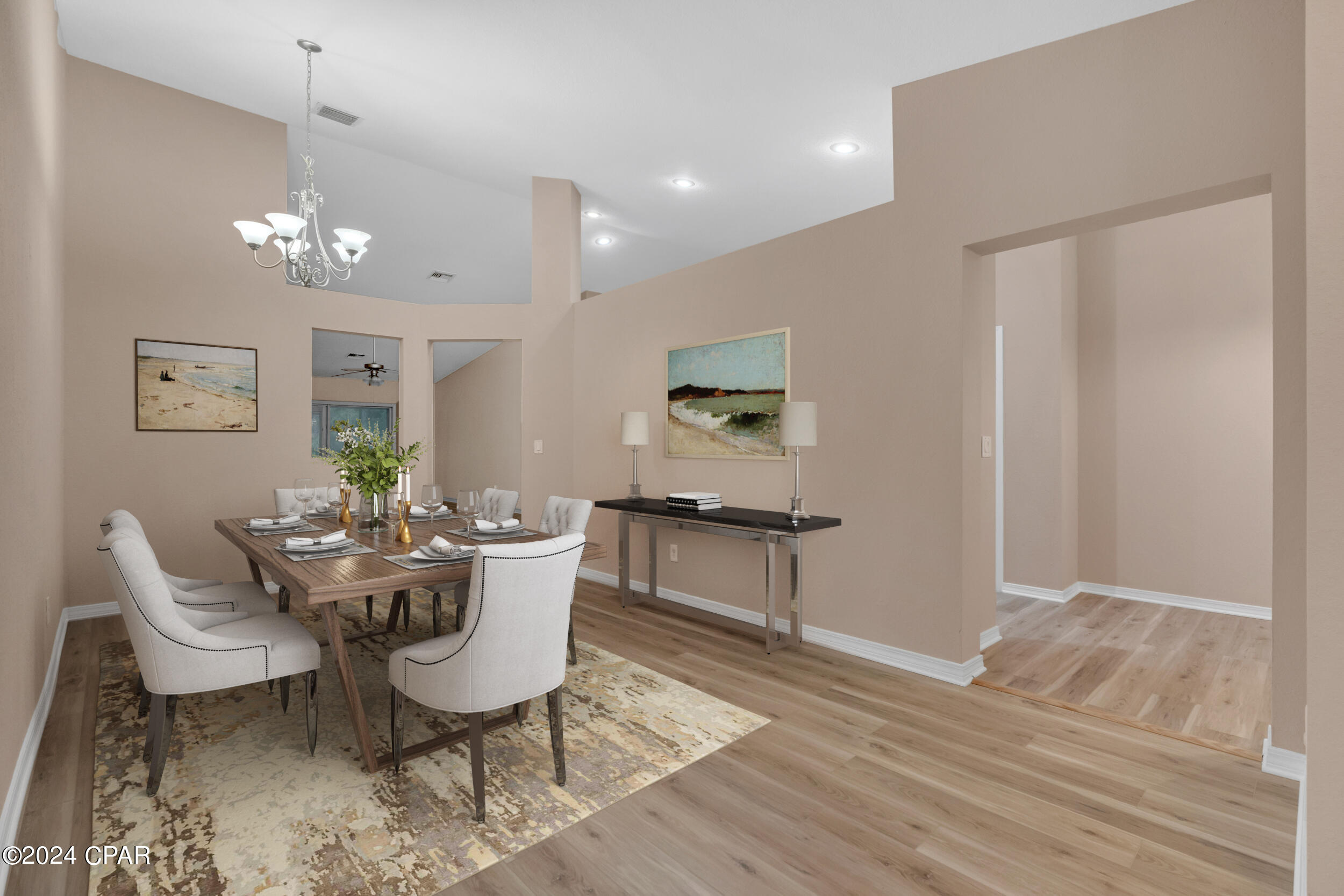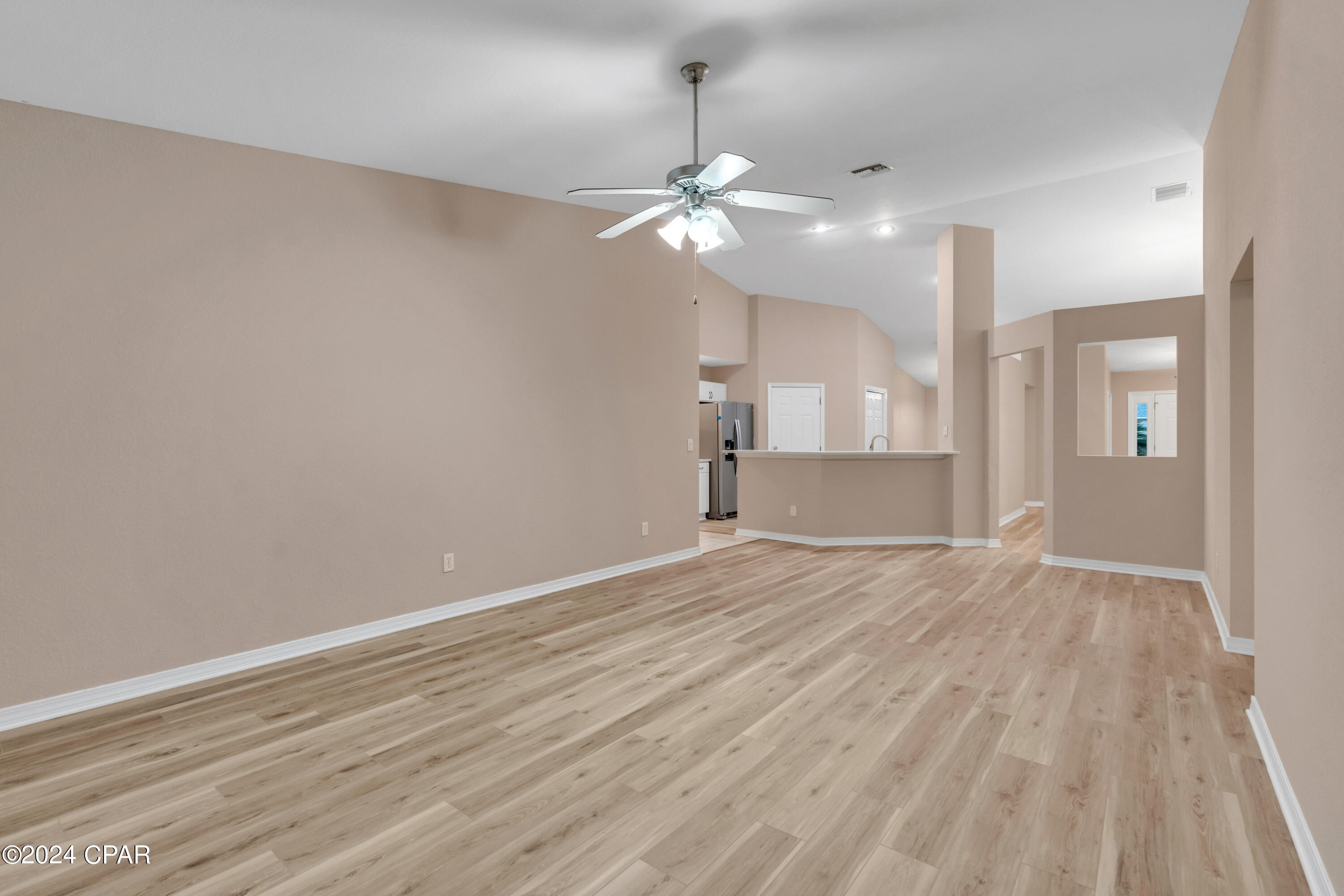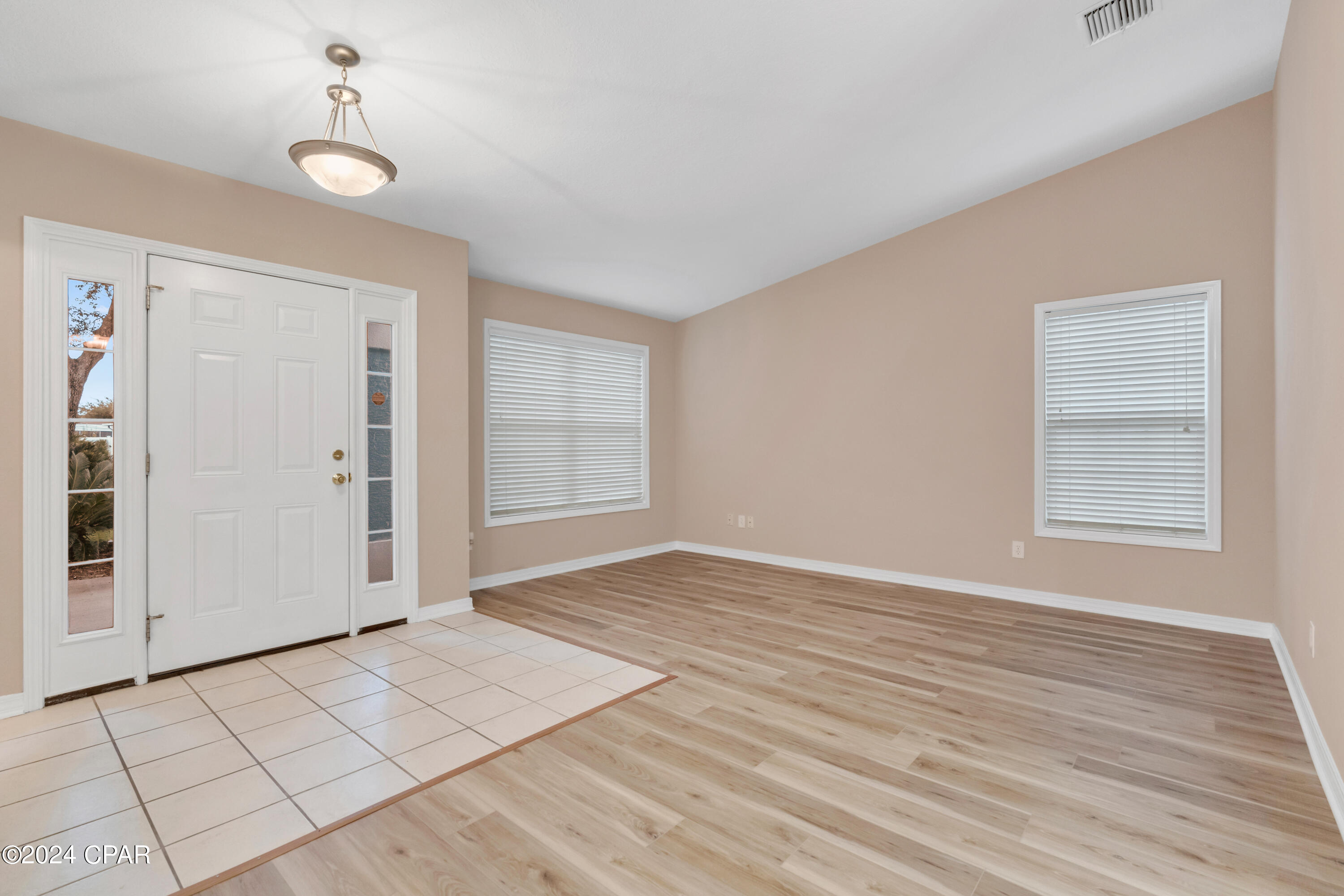 This property has sold! Discover similar listings by reaching out to us for an updated list of available properties that match your preferences. Located in the heart of the highly desirable Palmetto Trace neighborhood, this beautiful 4BR/2.5BA home offers the perfect blend of convenience and tranquility. If you are looking for a central location with easy access to all the best that Panama City Beach has to offer, while still enjoying a peaceful retreat, this home delivers on both. Inside, it has been tastefully updated with fresh paint along with brand new luxury vinyl plank floors throughout the bedrooms and living areas (complemented by tile in the hallway and bathrooms). The kitchen boasts modern upgrades, including brand new appliances - stove, microwave, refrigerator and dishwasher - alongside sleek quartz countertops and a new sink and faucet. The open-concept layout, 10' ceilings and large sliding glass doors flood the space with natural light, creating a bright and airy ambiance. The kitchen flows into the dining and living areas, making it the ideal setup for family time and entertaining. Outside, relax in the screened-in porch overlooking a private, wooded backyard - no rear neighbors in sight! The community is golf cart friendly, has two pools, and access to Gayle's Trails, perfect for outdoor enthusiasts. Located just minutes from Pier Park, Frank Brown Park, Aaron Bessant Park, and the beautiful beaches Panama City Beach is known for, this home is truly at the center of it all. Embrace the laid-back, coastal lifestyle. Schedule a showing today!