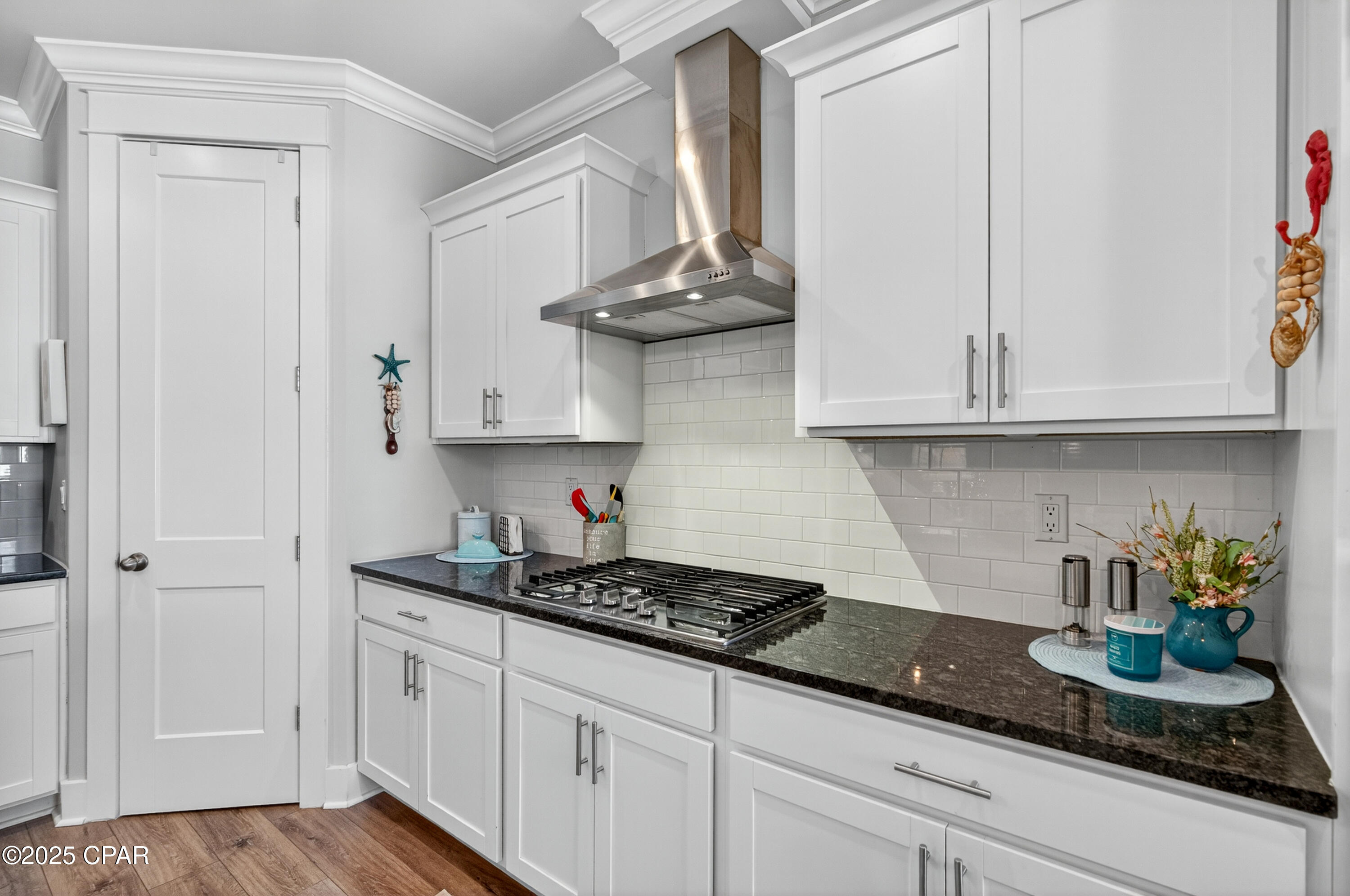 The kitchen features a 4-burner gas cooktop, stainless appliances, custom soft-close cabinetry, and an island with a breakfast bar -- perfect for casual dining or weekend get-togethers. The primary suite offers a relaxing retreat with a tray ceiling, tile shower, soaking tub, double vanity, and generous walk-in closet. Two additional bedrooms and a full bath provide comfortable accommodations for family or guests.