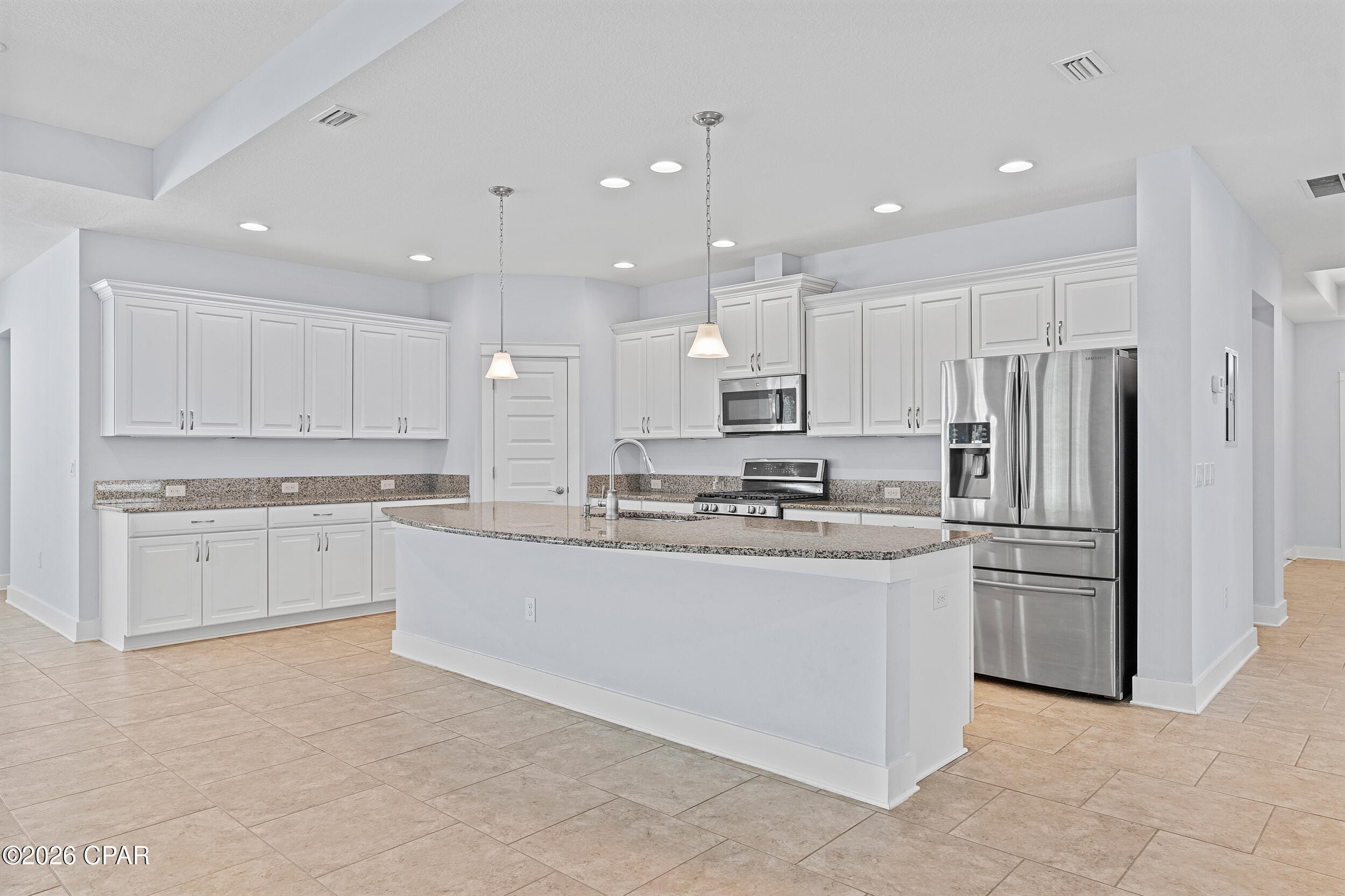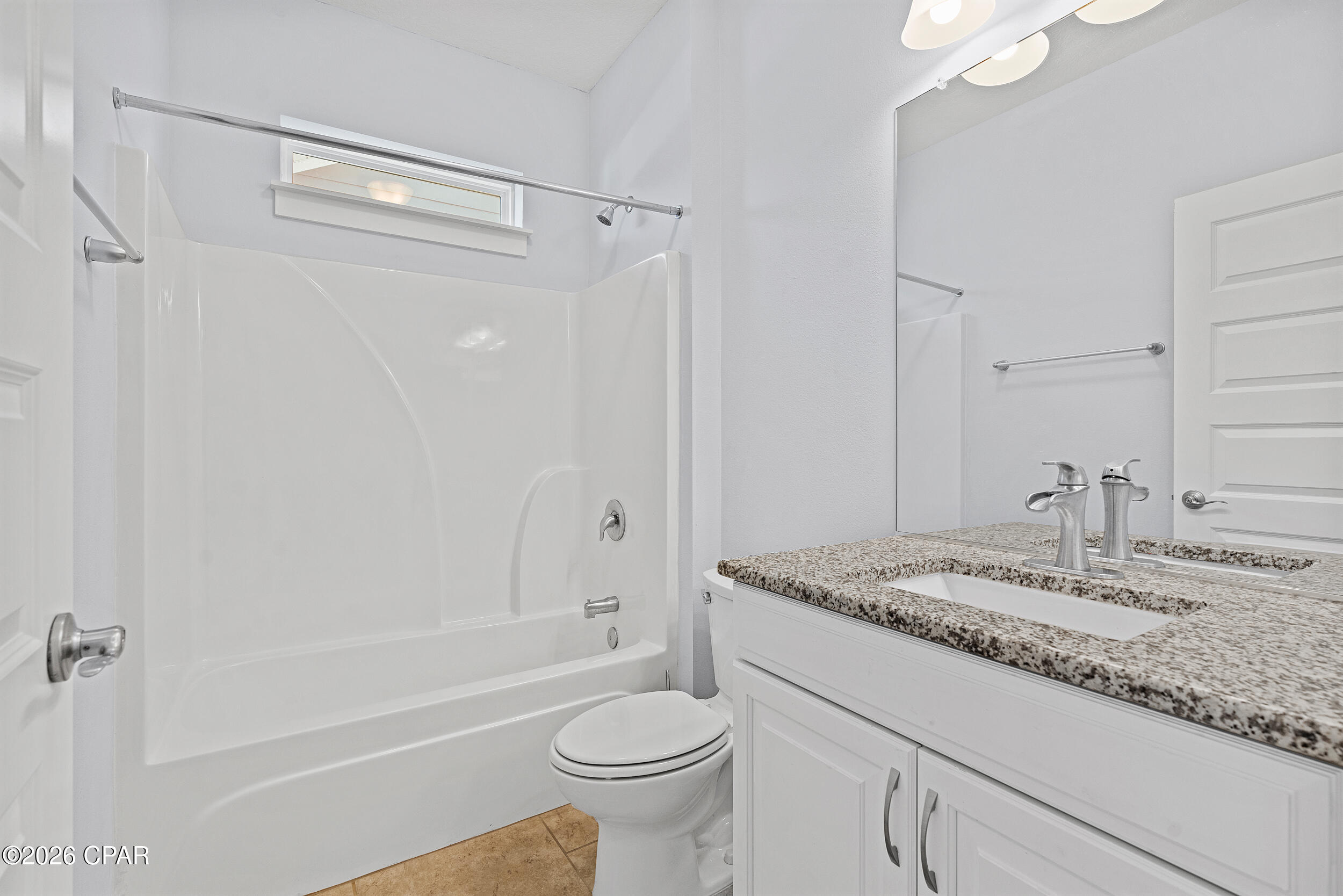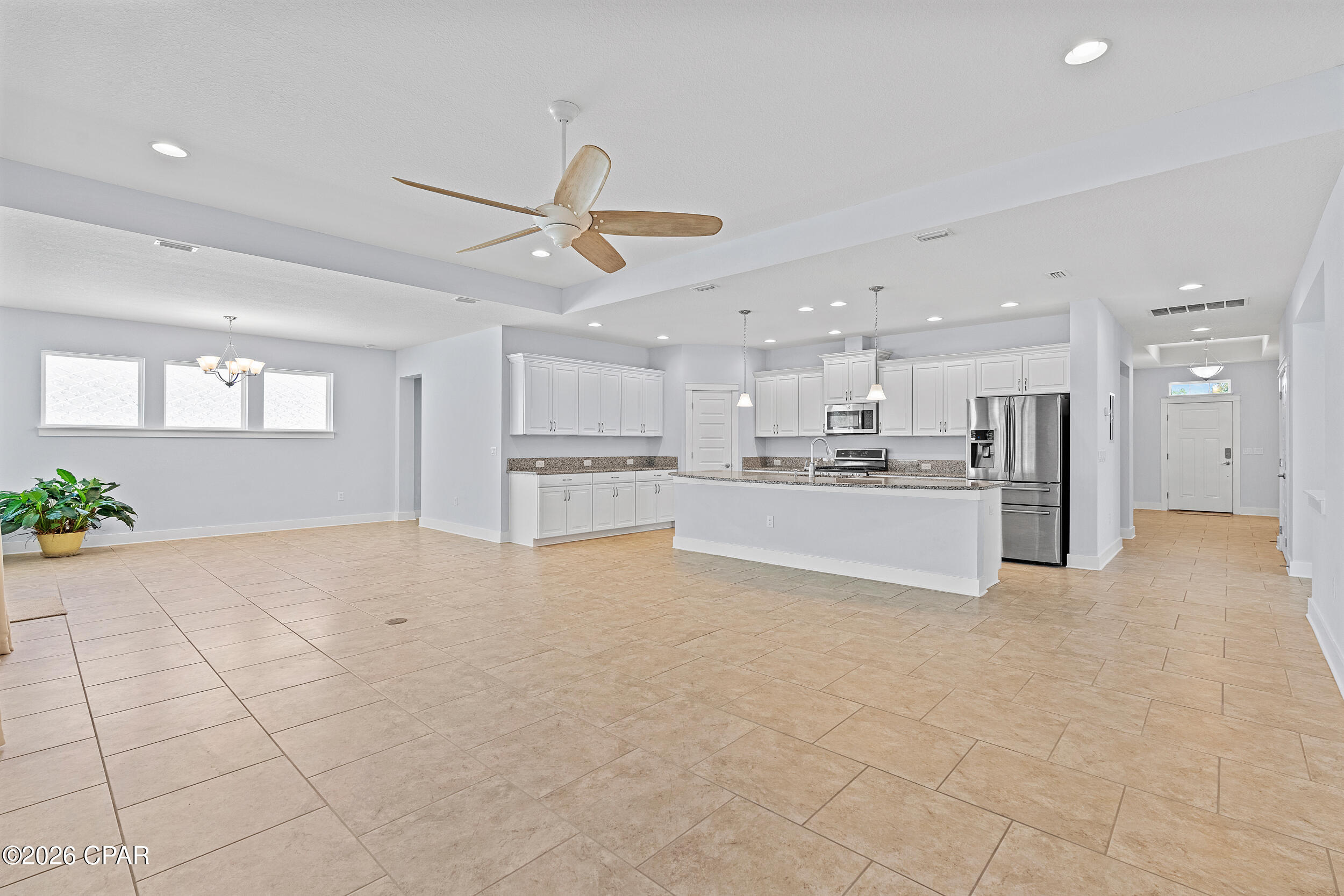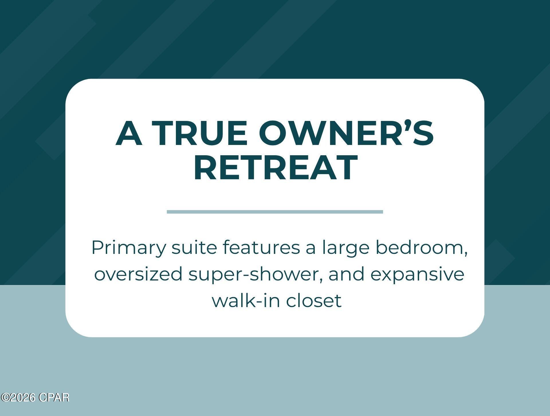 The kitchen serves as the heart of the home with abundant cabinetry, generous counter space, and a spacious breakfast bar that naturally becomes the gathering spot. A secondary bedroom with its own private bath provides flexibility for guests, multigenerational living, or a teen suite -- a feature not found in every Breakfast Point floor plan. The primary retreat includes a spacious bedroom, oversized super-shower, and an expansive walk-in closet.