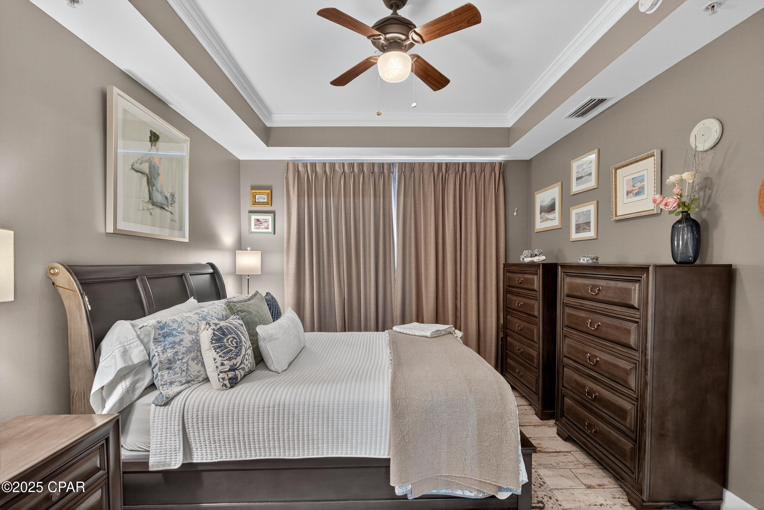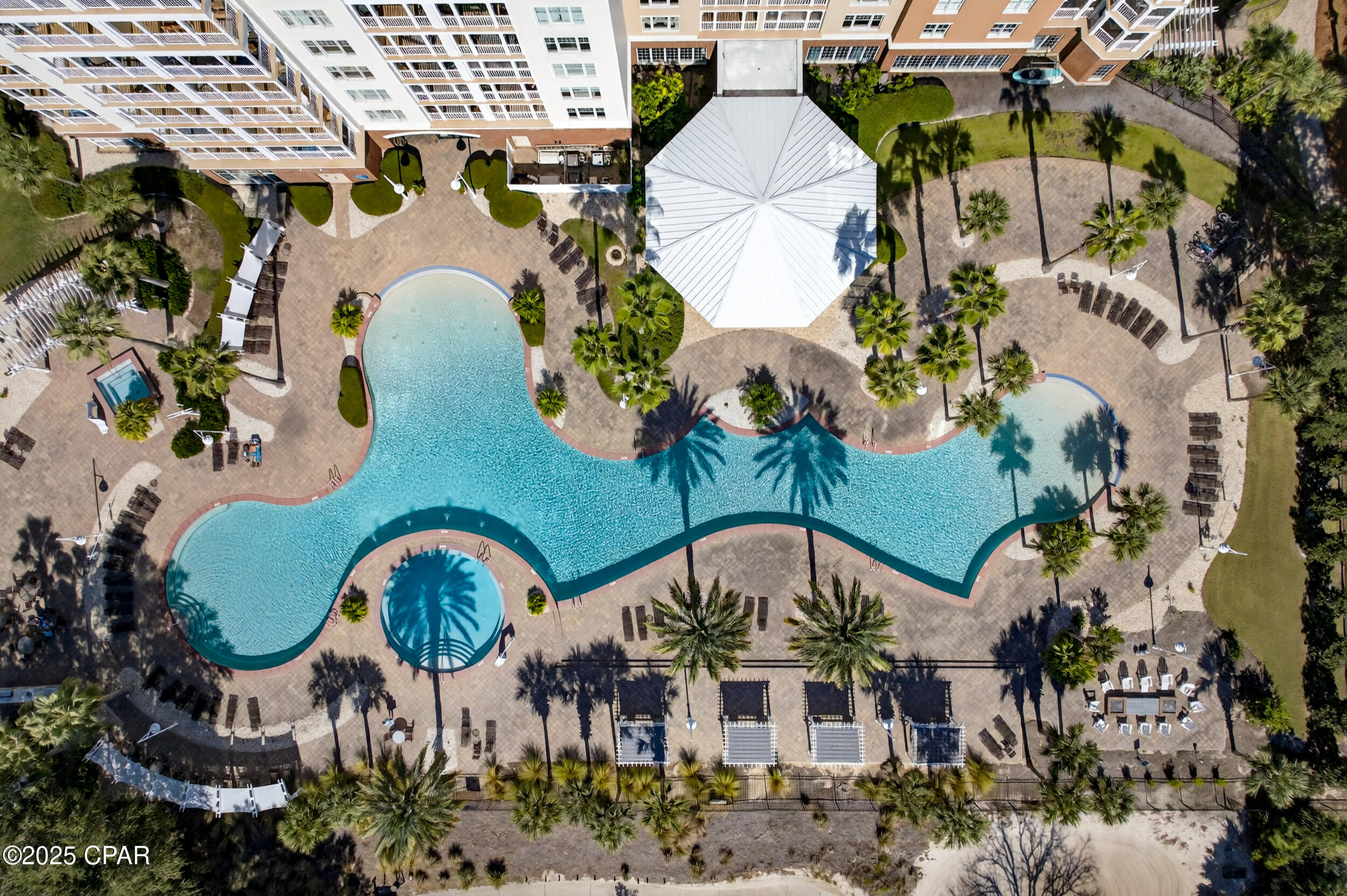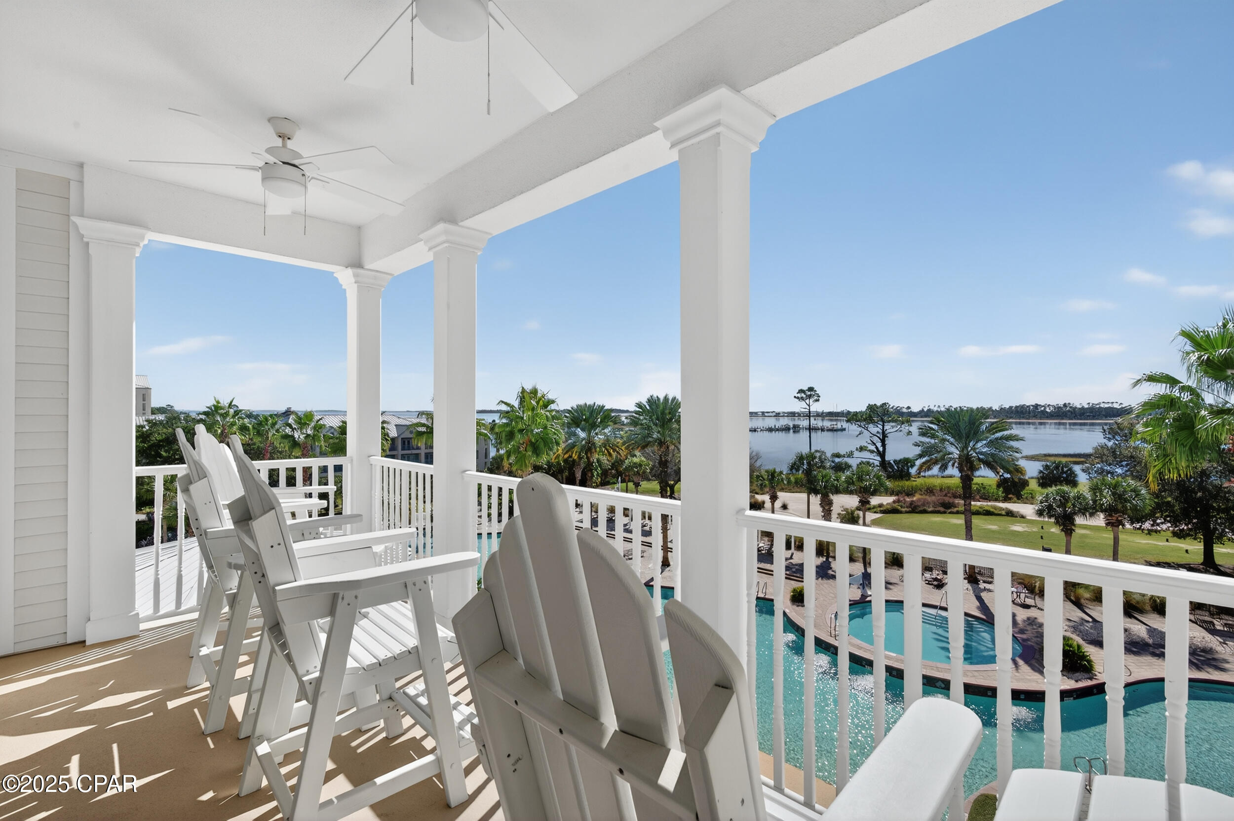 This tropical retreat features 200 feet of pristine beach frontage in Panama City Beach’s east end, away from the hustle and bustle of the city.