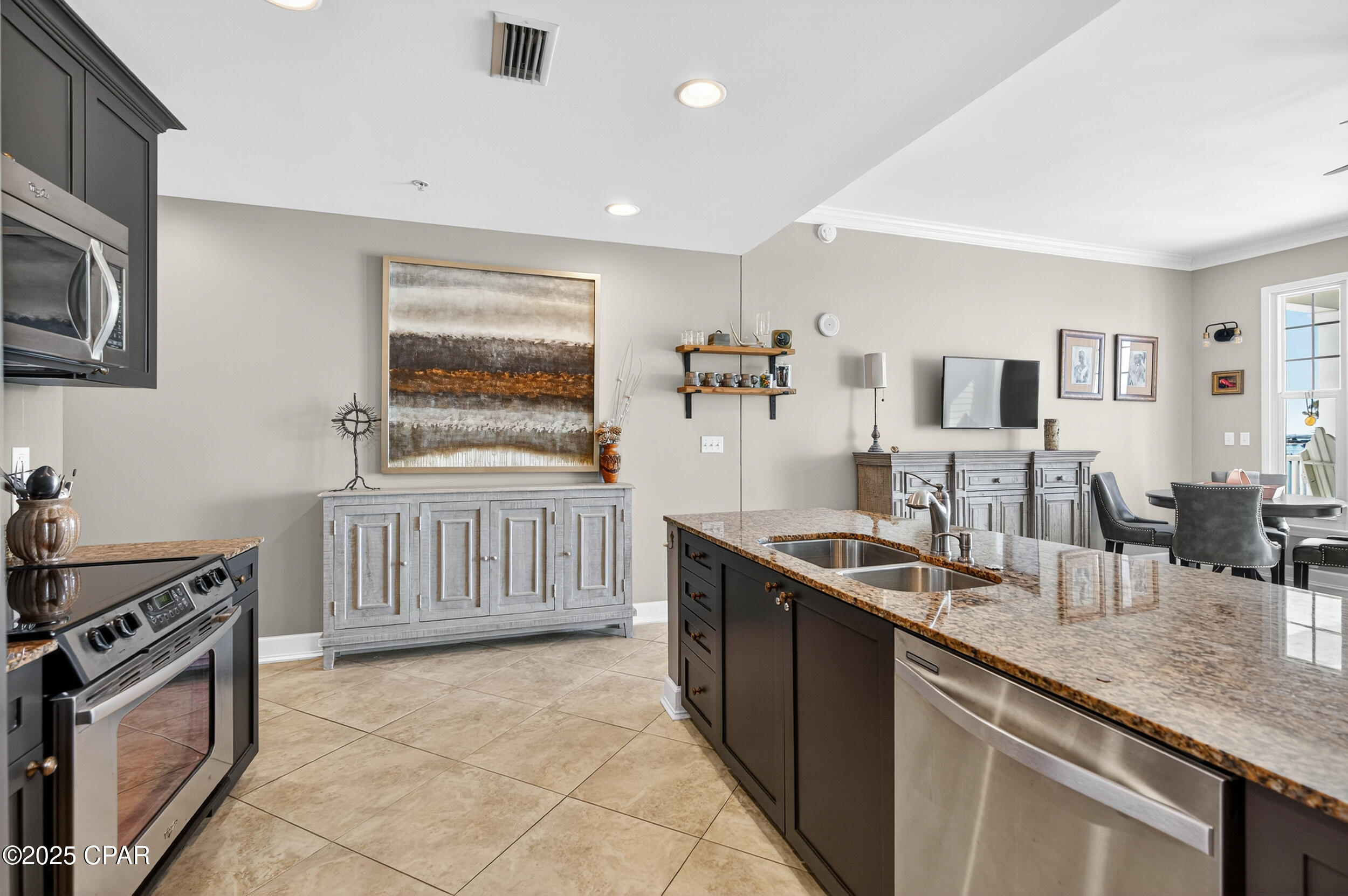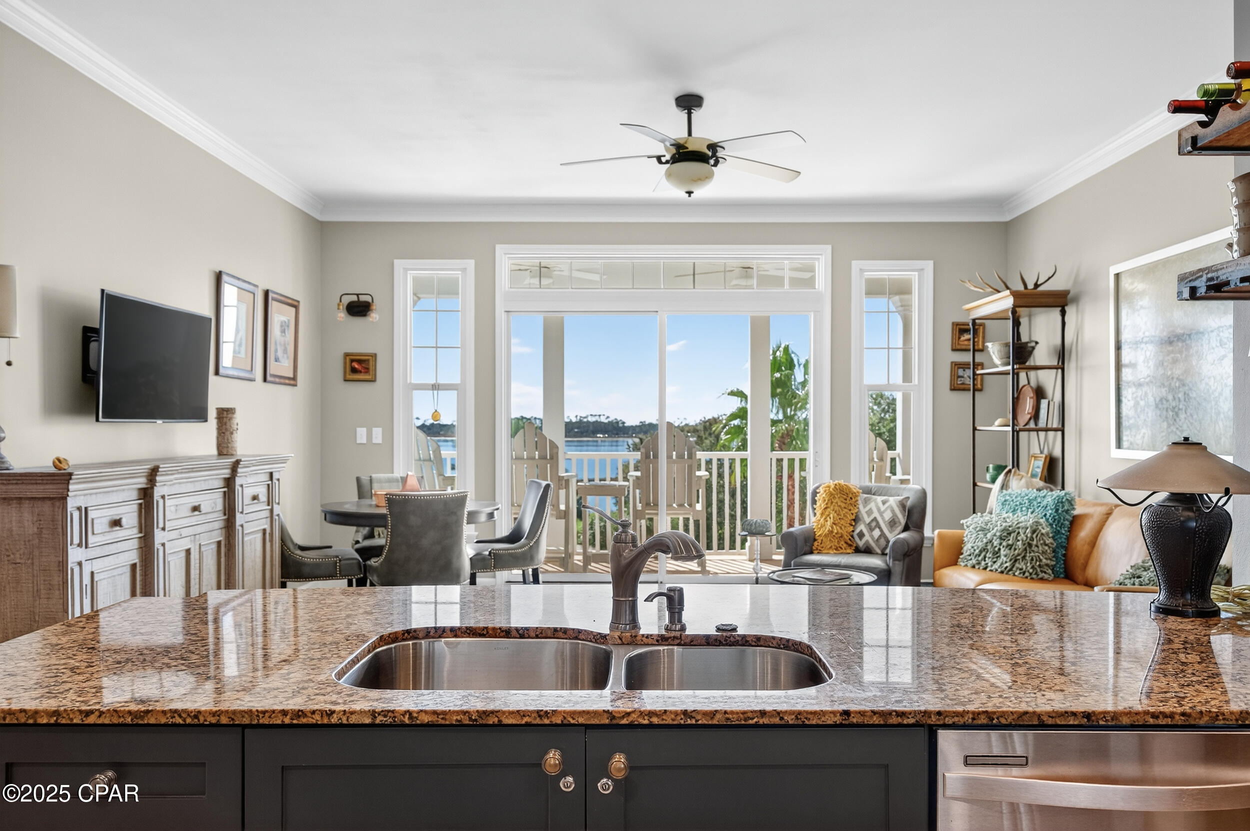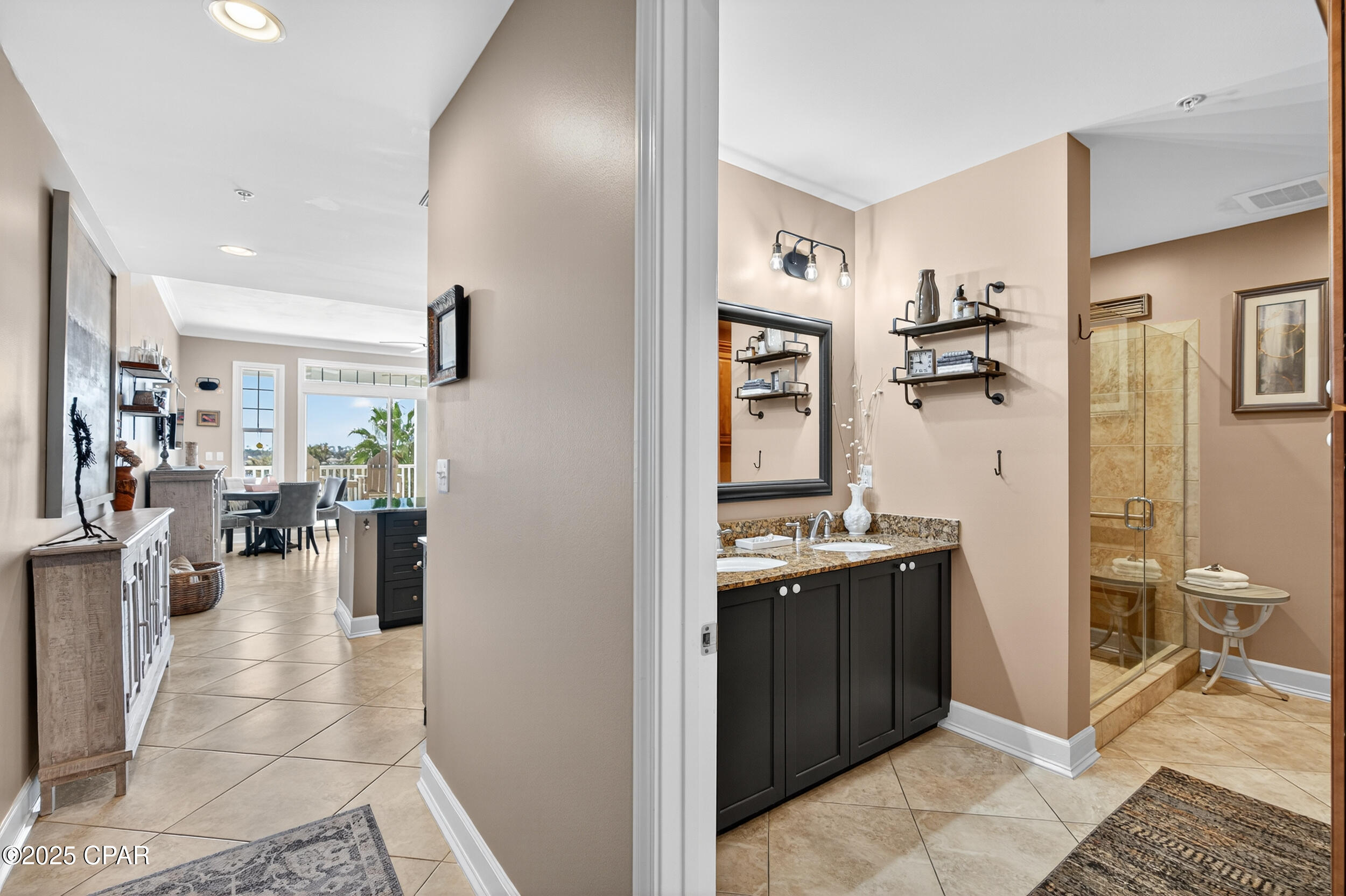 This tropical retreat features 200 feet of pristine beach frontage in Panama City Beach’s east end, away from the hustle and bustle of the city.