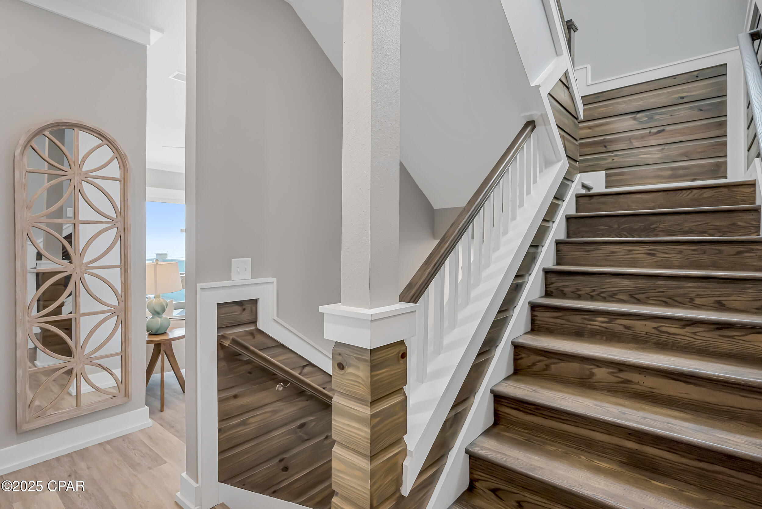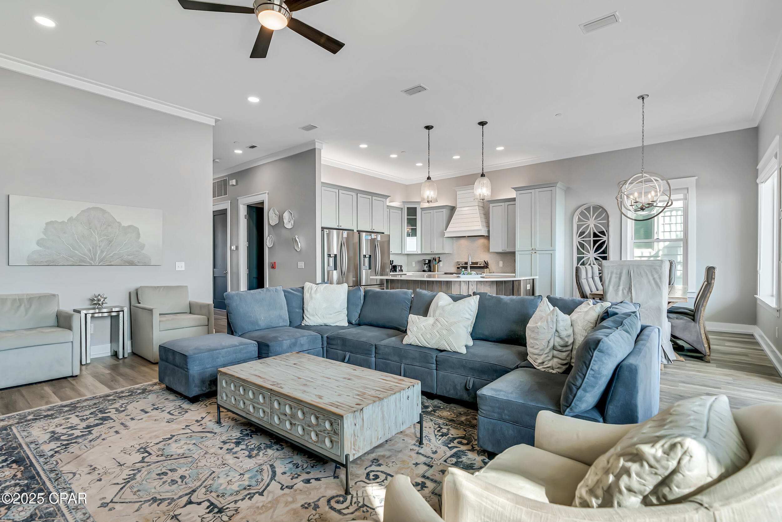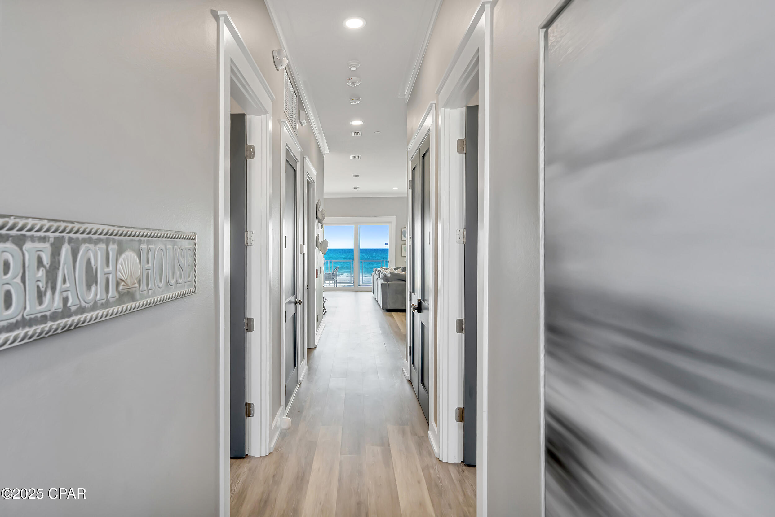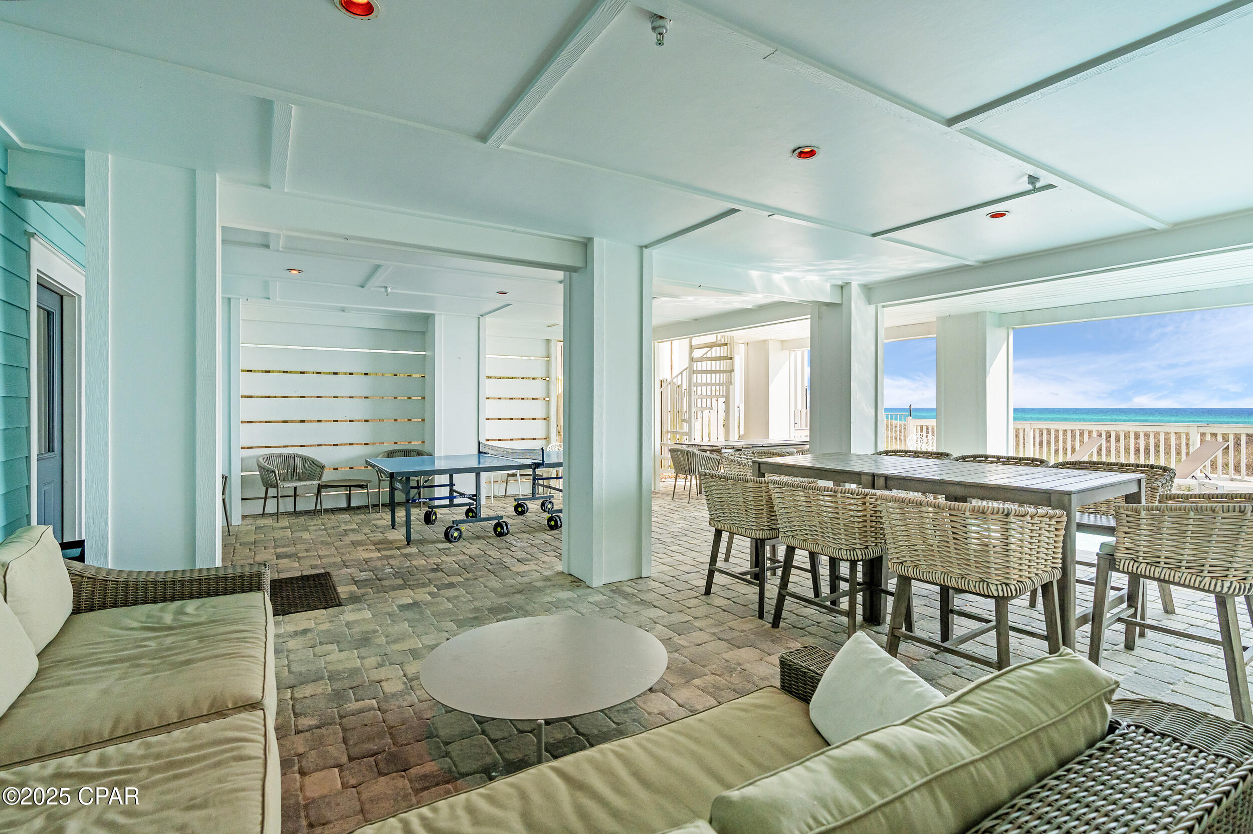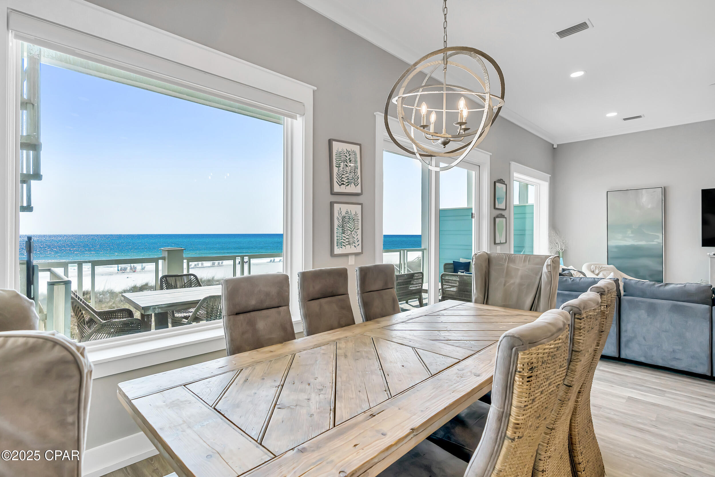 Welcome to Stay Salty, a Gulf-front luxury home located in one of the most desirable and peaceful stretches of Panama City Beach. Offered fully furnished and professionally designed, this extraordinary coastal residence delivers over 5,600 square feet of refined living space across four levels, with seven spacious bedrooms and seven and a half bathrooms. Built with longevity and comfort in mind, the home features hardwood, luxury vinyl plank, and tile flooring throughout--no carpet--and includes carefully selected furnishings, artwork, lighting, and decor that complement its elevated coastal style.