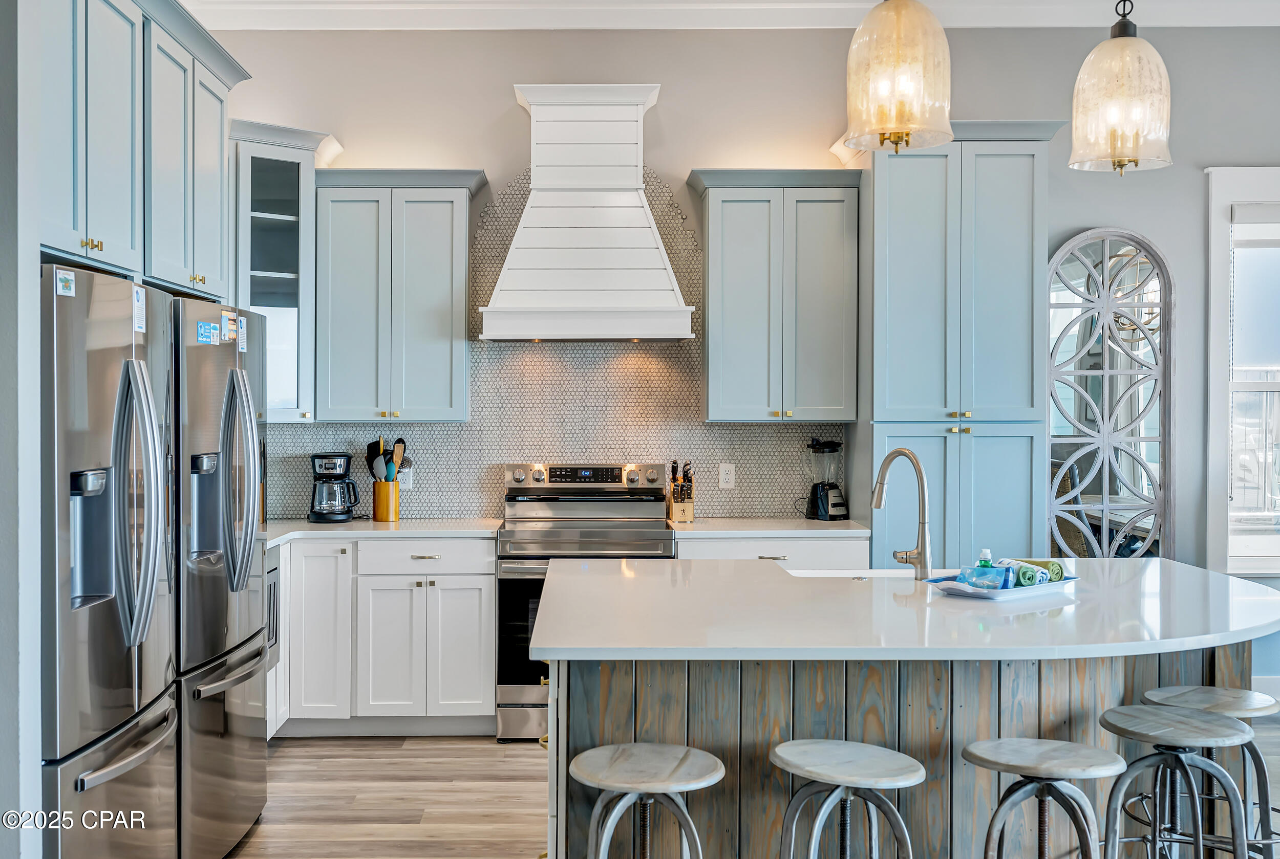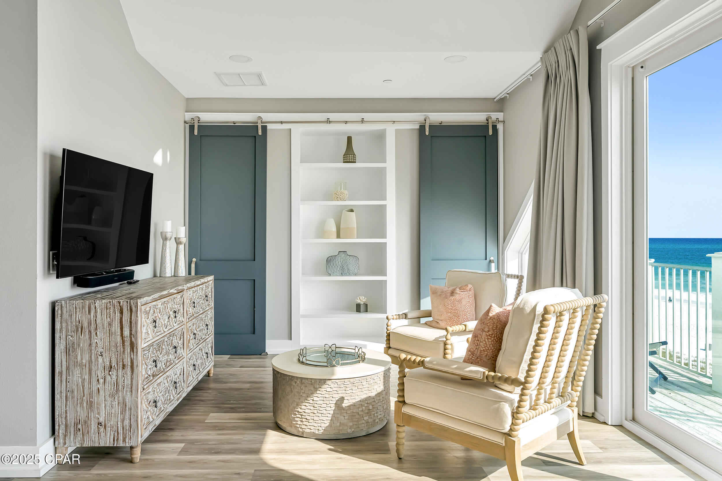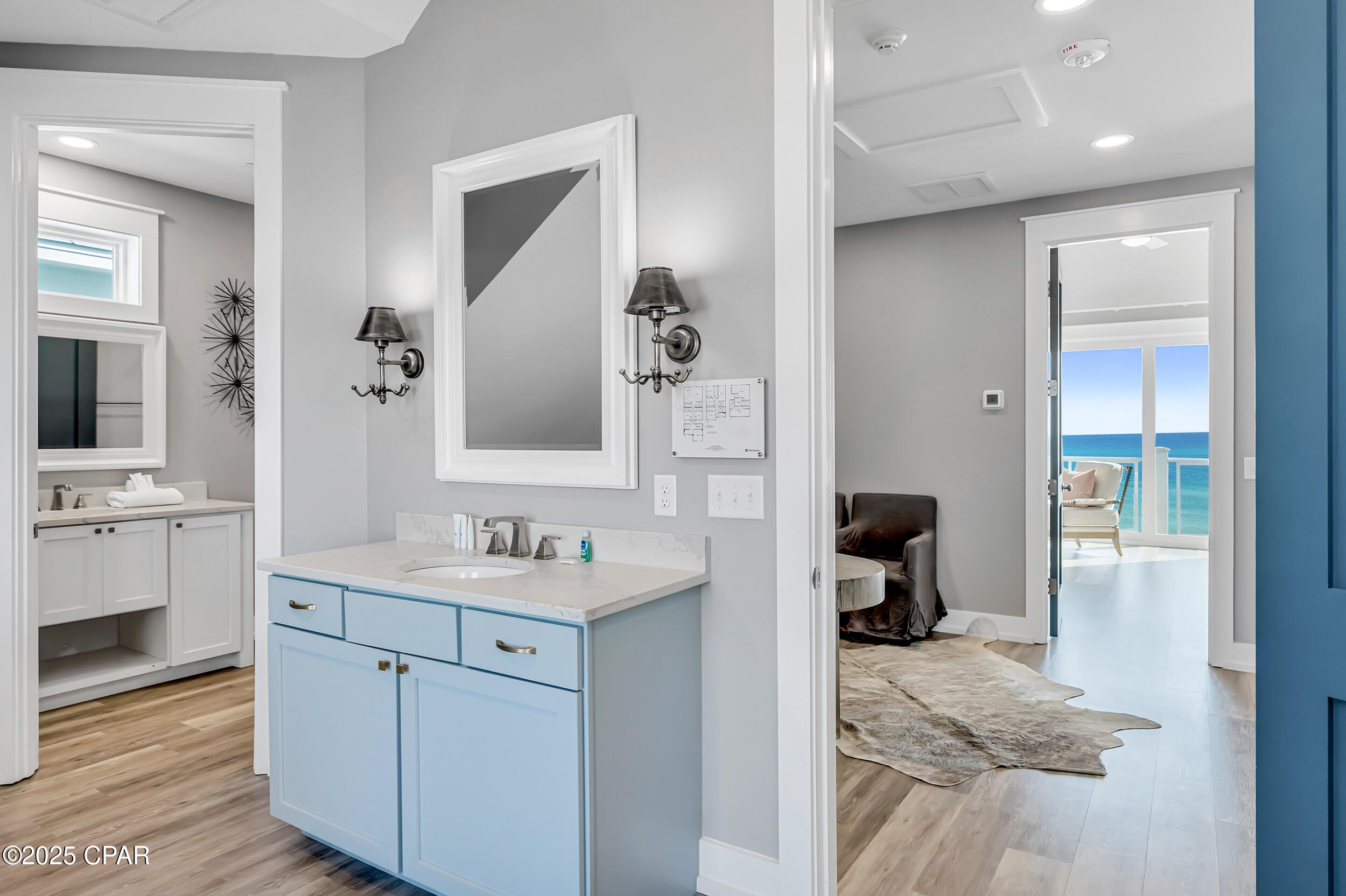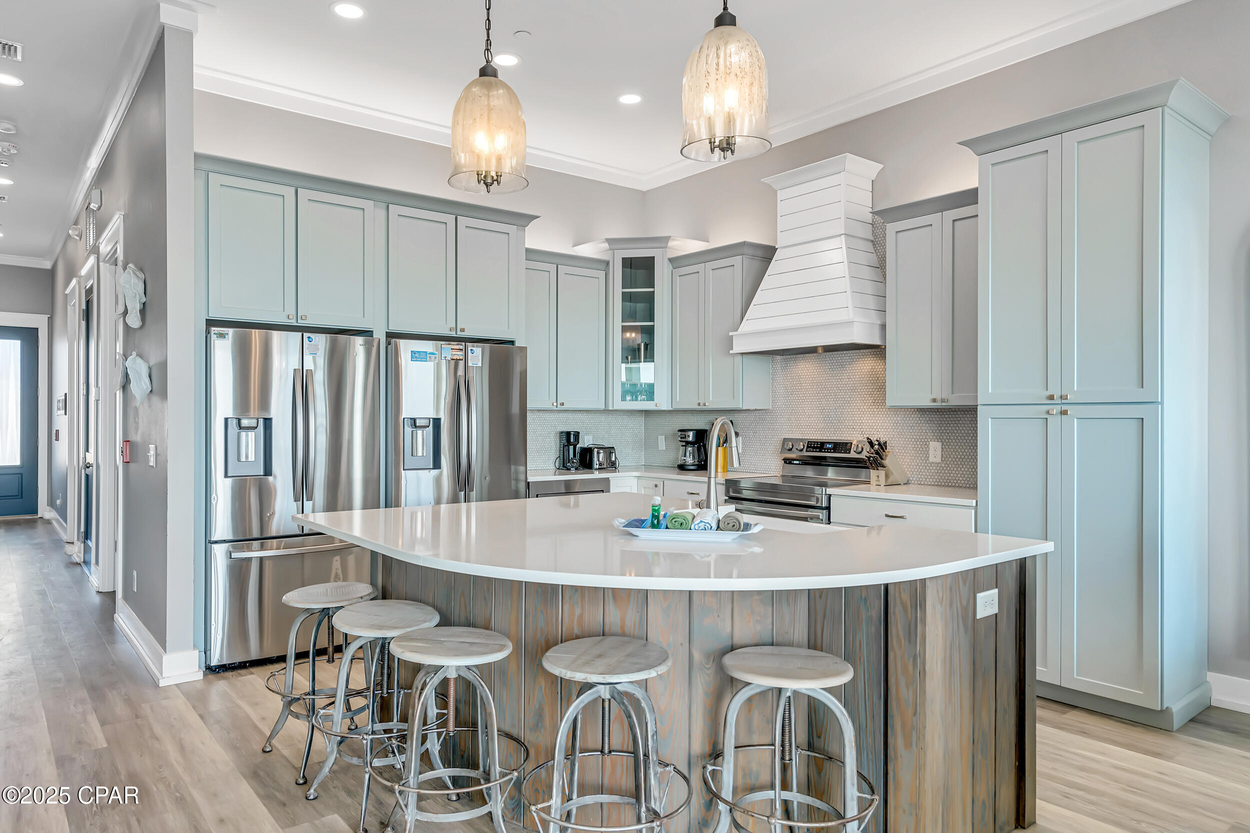 Welcome to Stay Salty, a Gulf-front luxury home located in one of the most desirable and peaceful stretches of Panama City Beach. Offered fully furnished and professionally designed, this extraordinary coastal residence delivers over 5,600 square feet of refined living space across four levels, with seven spacious bedrooms and seven and a half bathrooms. Built with longevity and comfort in mind, the home features hardwood, luxury vinyl plank, and tile flooring throughout--no carpet--and includes carefully selected furnishings, artwork, lighting, and decor that complement its elevated coastal style.