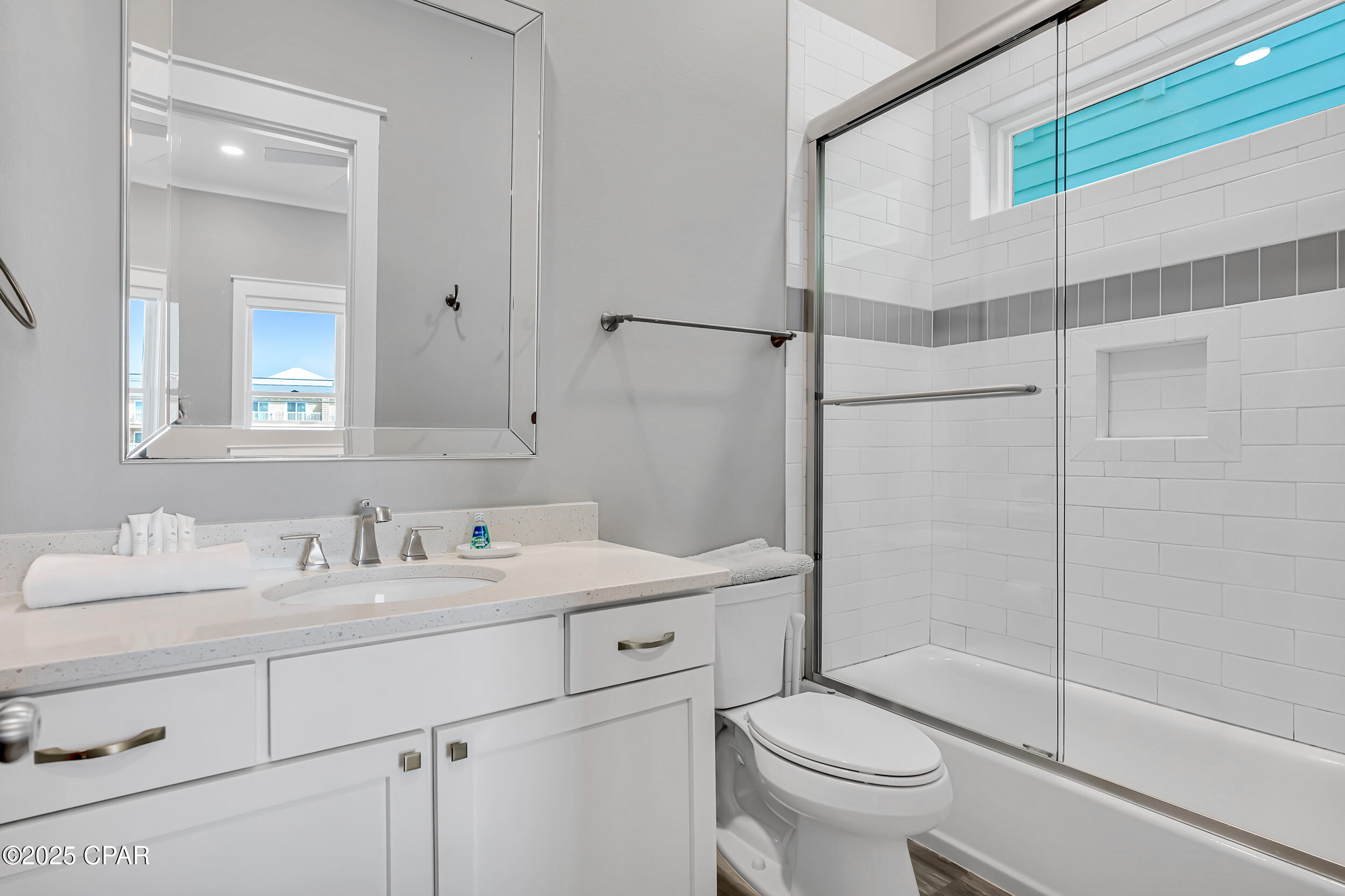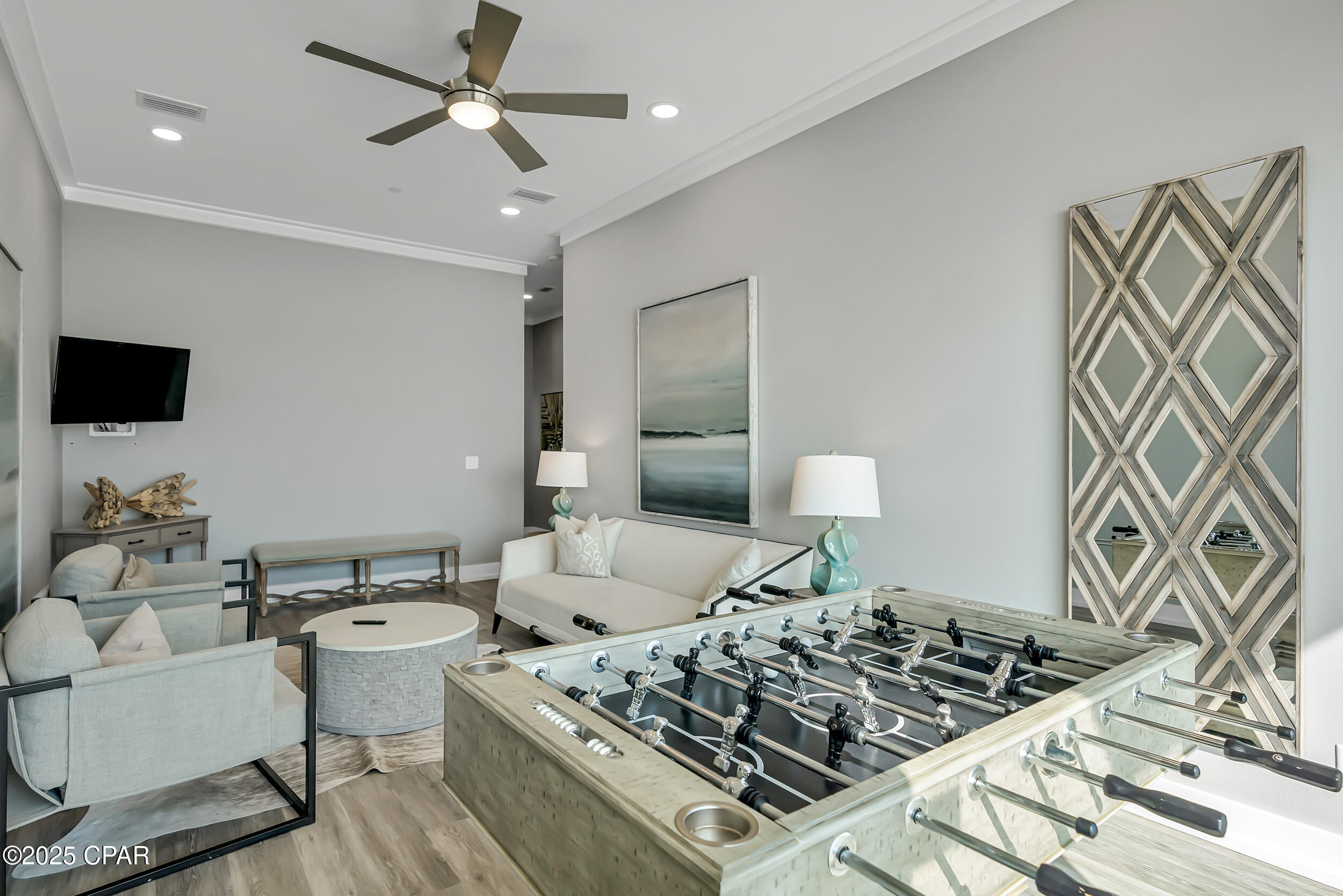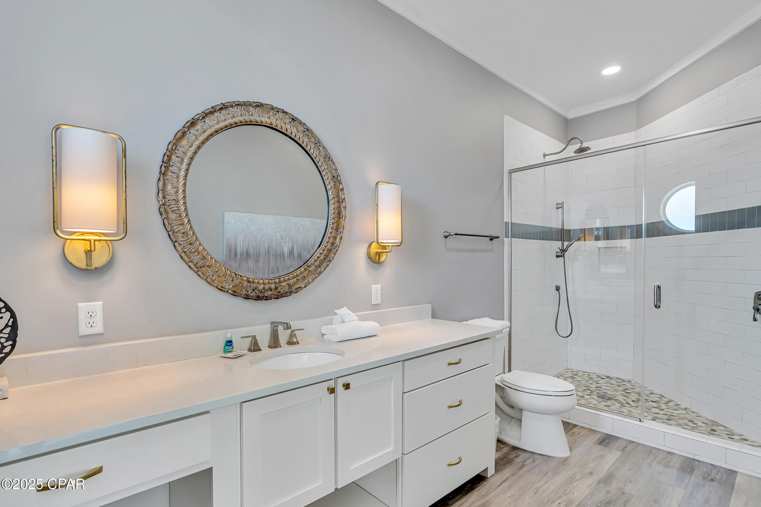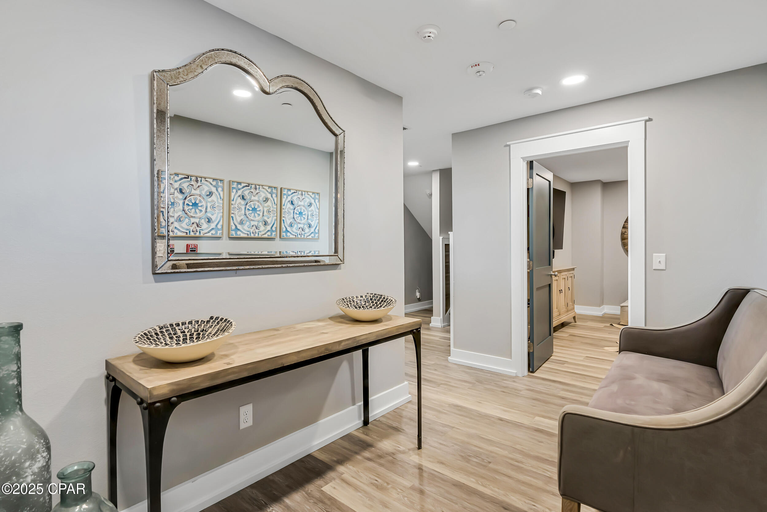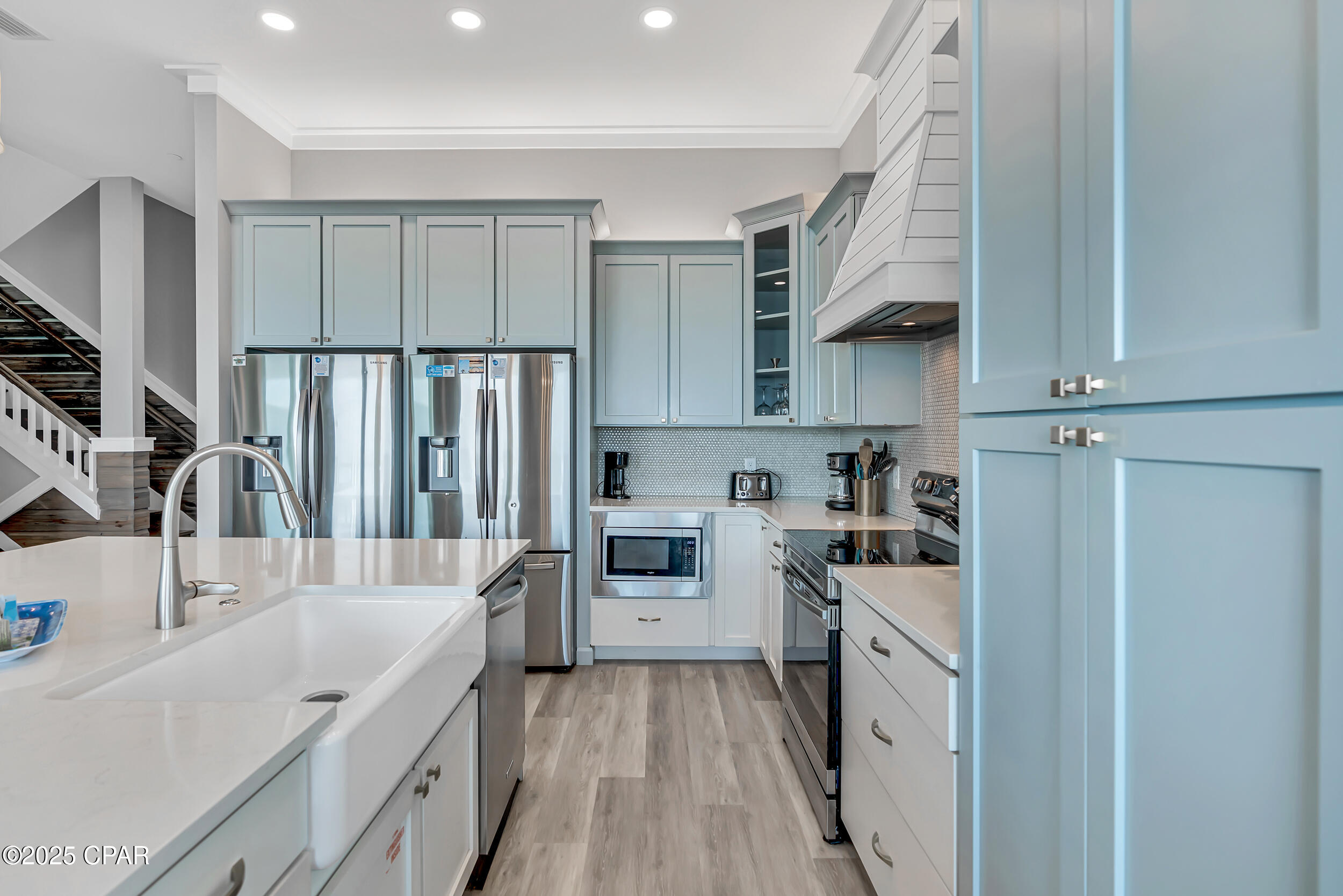 Welcome to Stay Salty, a Gulf-front luxury home located in one of the most desirable and peaceful stretches of Panama City Beach. Offered fully furnished and professionally designed, this extraordinary coastal residence delivers over 5,600 square feet of refined living space across four levels, with seven spacious bedrooms and seven and a half bathrooms. Built with longevity and comfort in mind, the home features hardwood, luxury vinyl plank, and tile flooring throughout--no carpet--and includes carefully selected furnishings, artwork, lighting, and decor that complement its elevated coastal style.