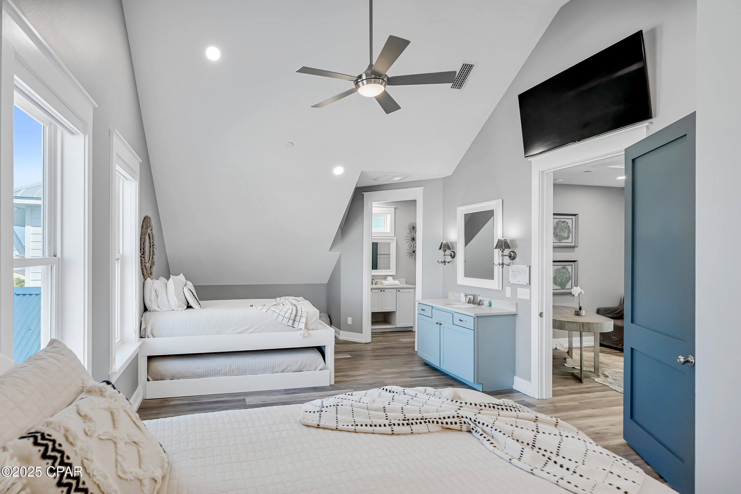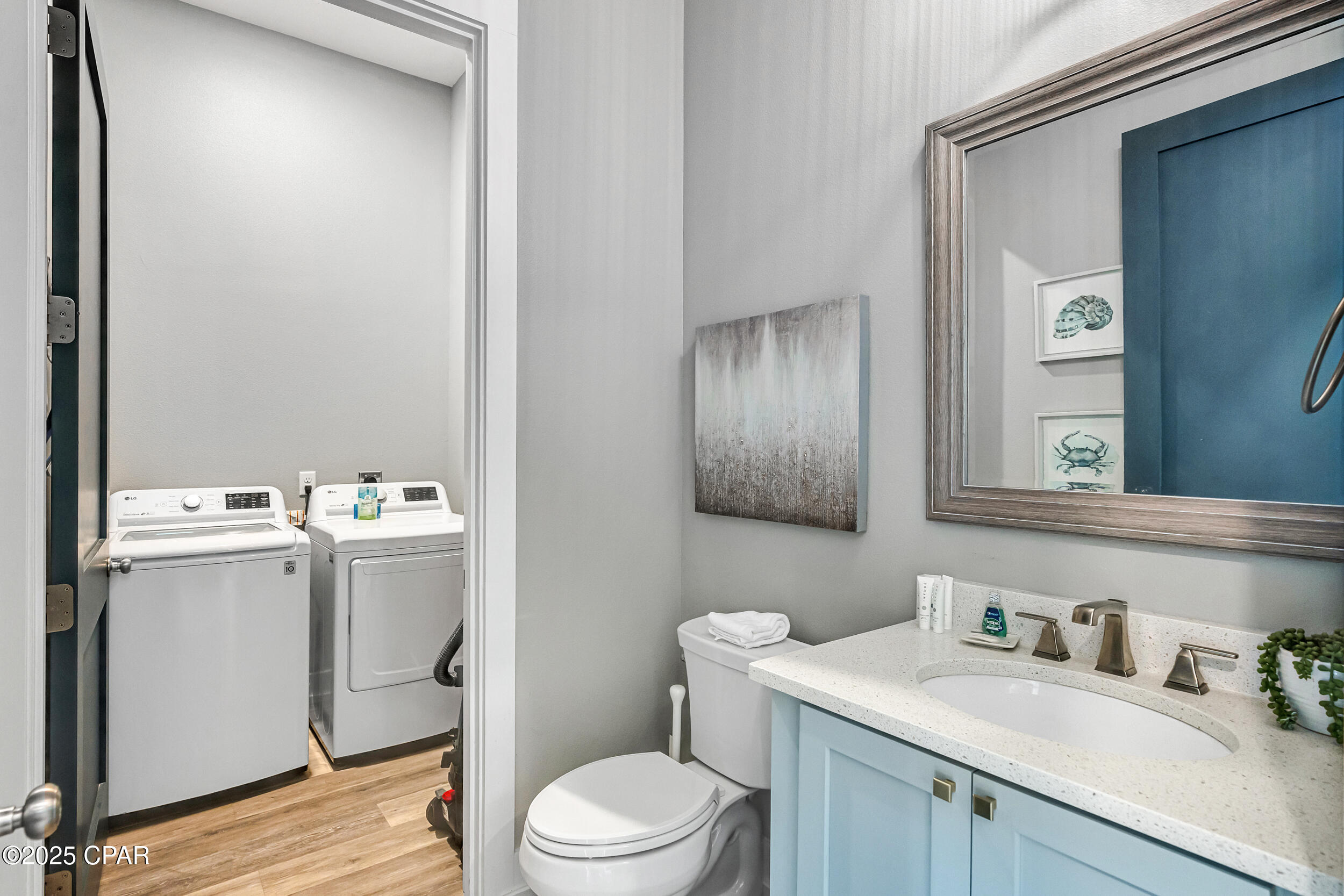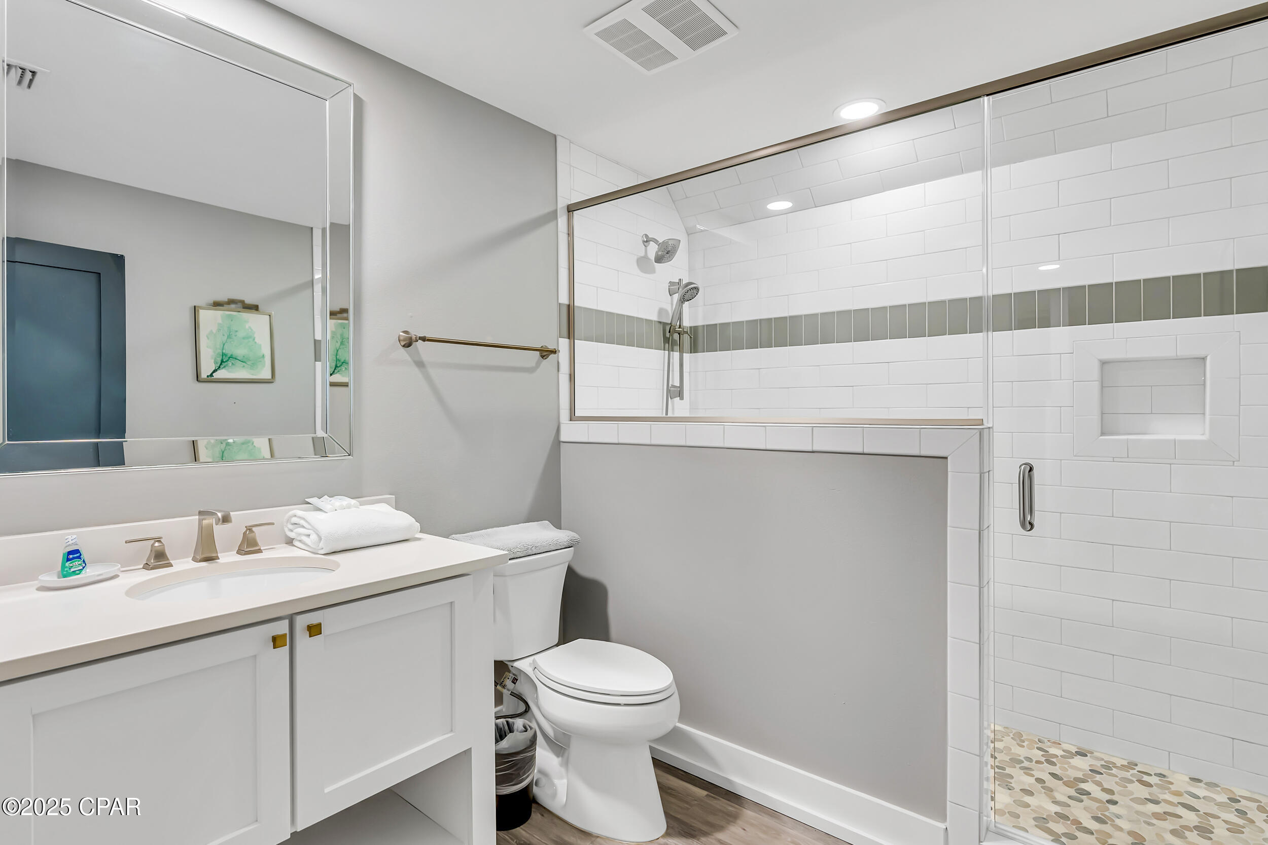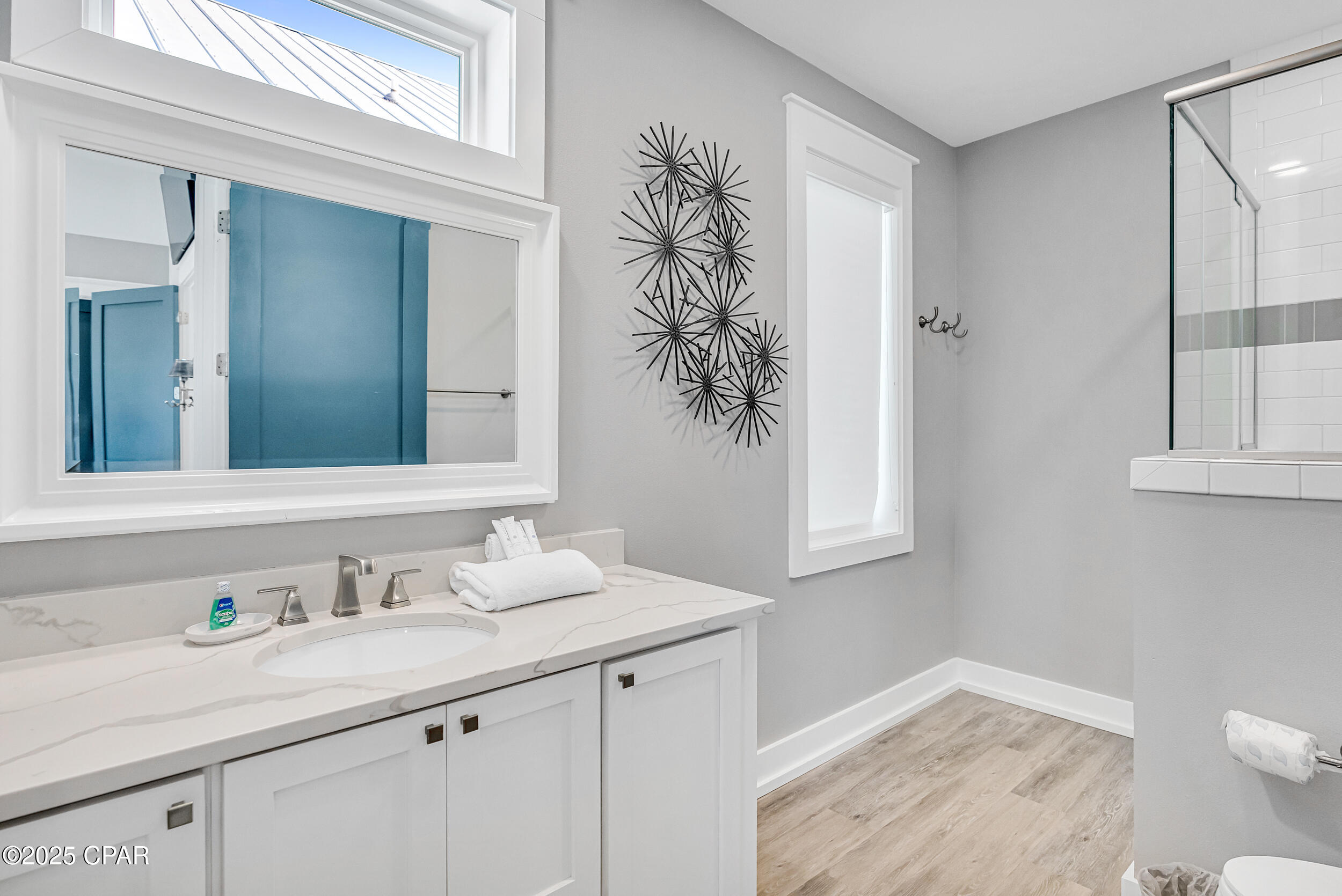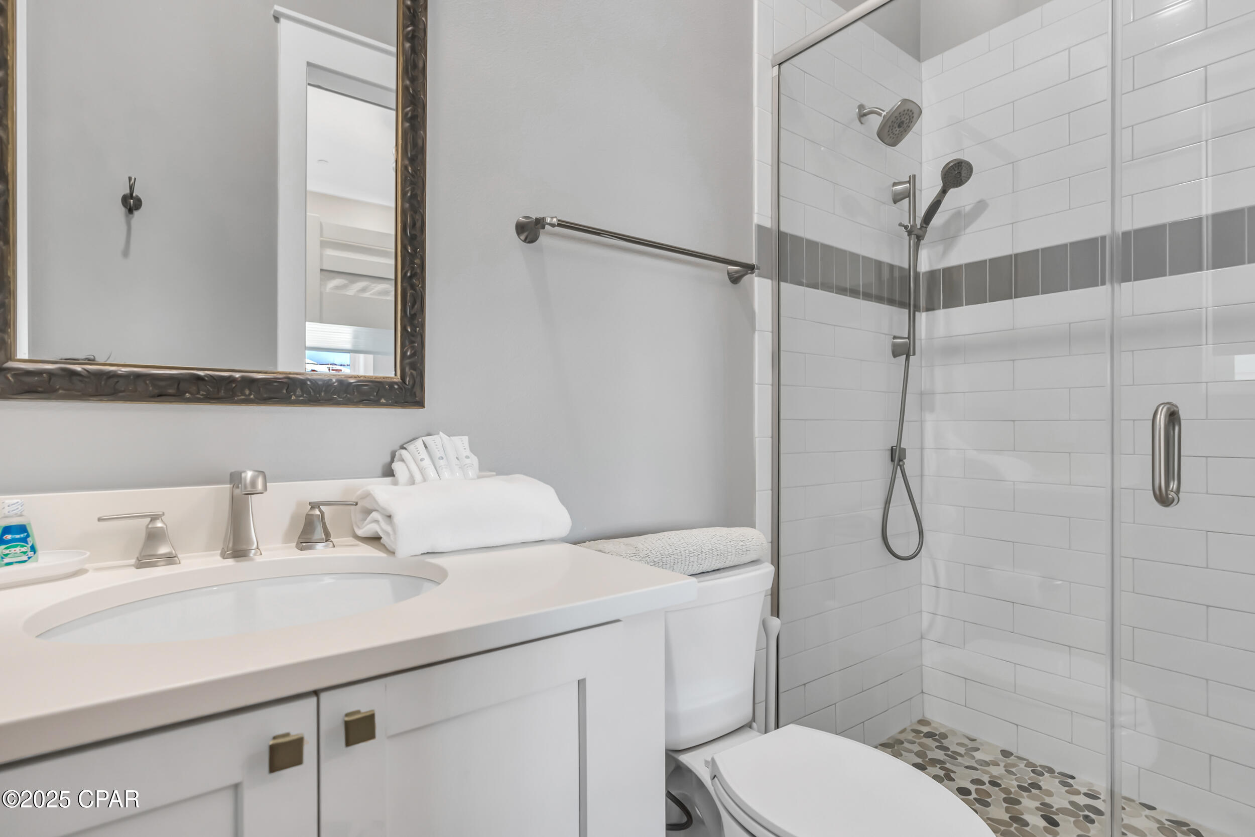 Welcome to Stay Salty, a Gulf-front luxury home located in one of the most desirable and peaceful stretches of Panama City Beach. Offered fully furnished and professionally designed, this extraordinary coastal residence delivers over 5,600 square feet of refined living space across four levels, with seven spacious bedrooms and seven and a half bathrooms. Built with longevity and comfort in mind, the home features hardwood, luxury vinyl plank, and tile flooring throughout--no carpet--and includes carefully selected furnishings, artwork, lighting, and decor that complement its elevated coastal style.