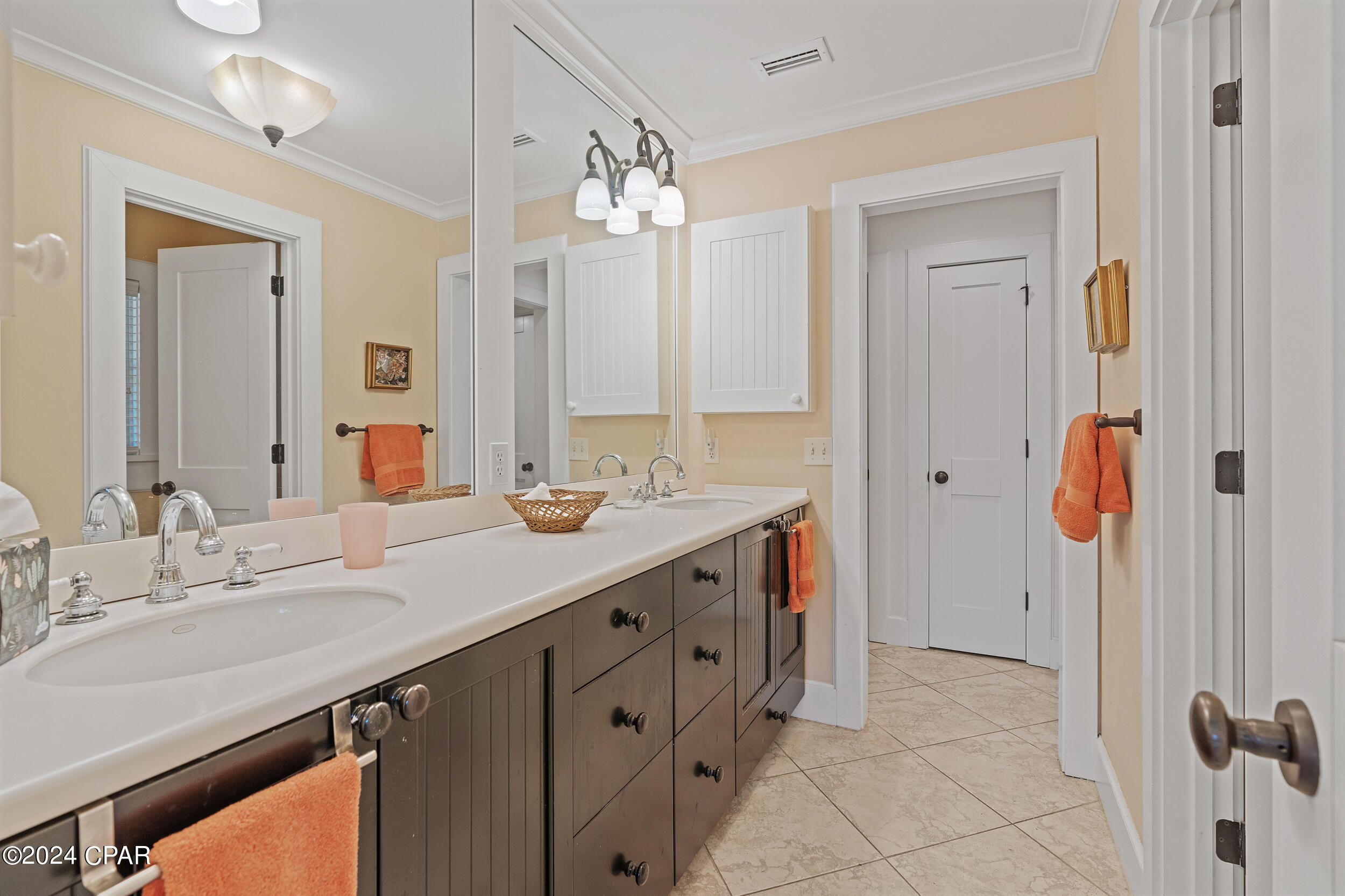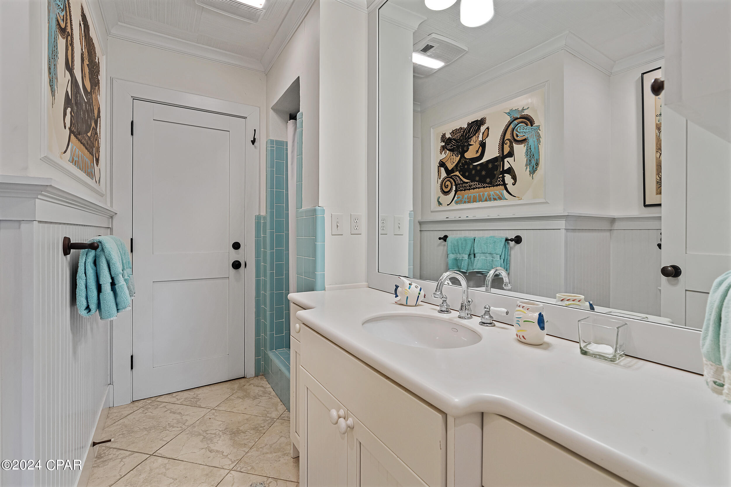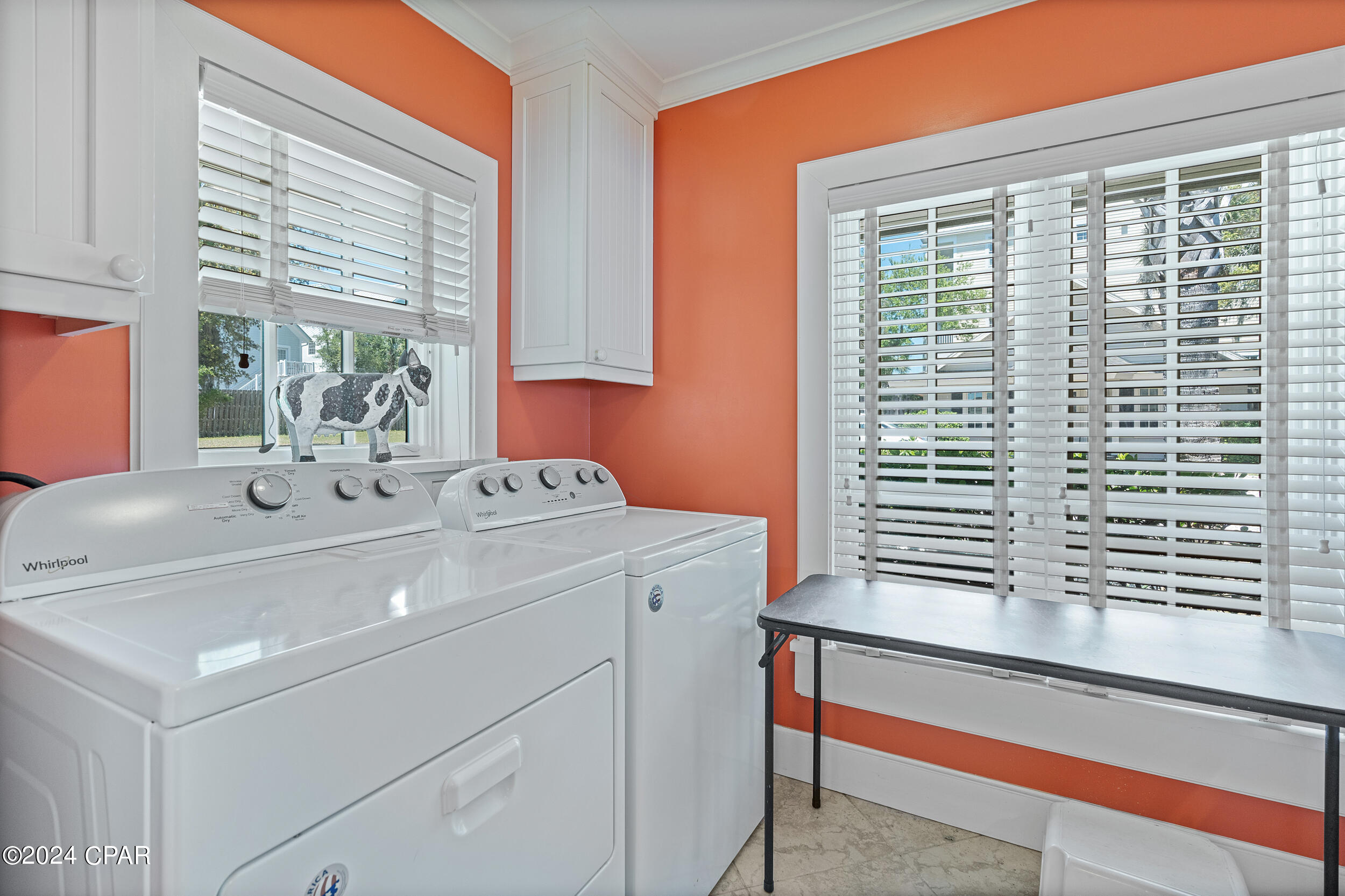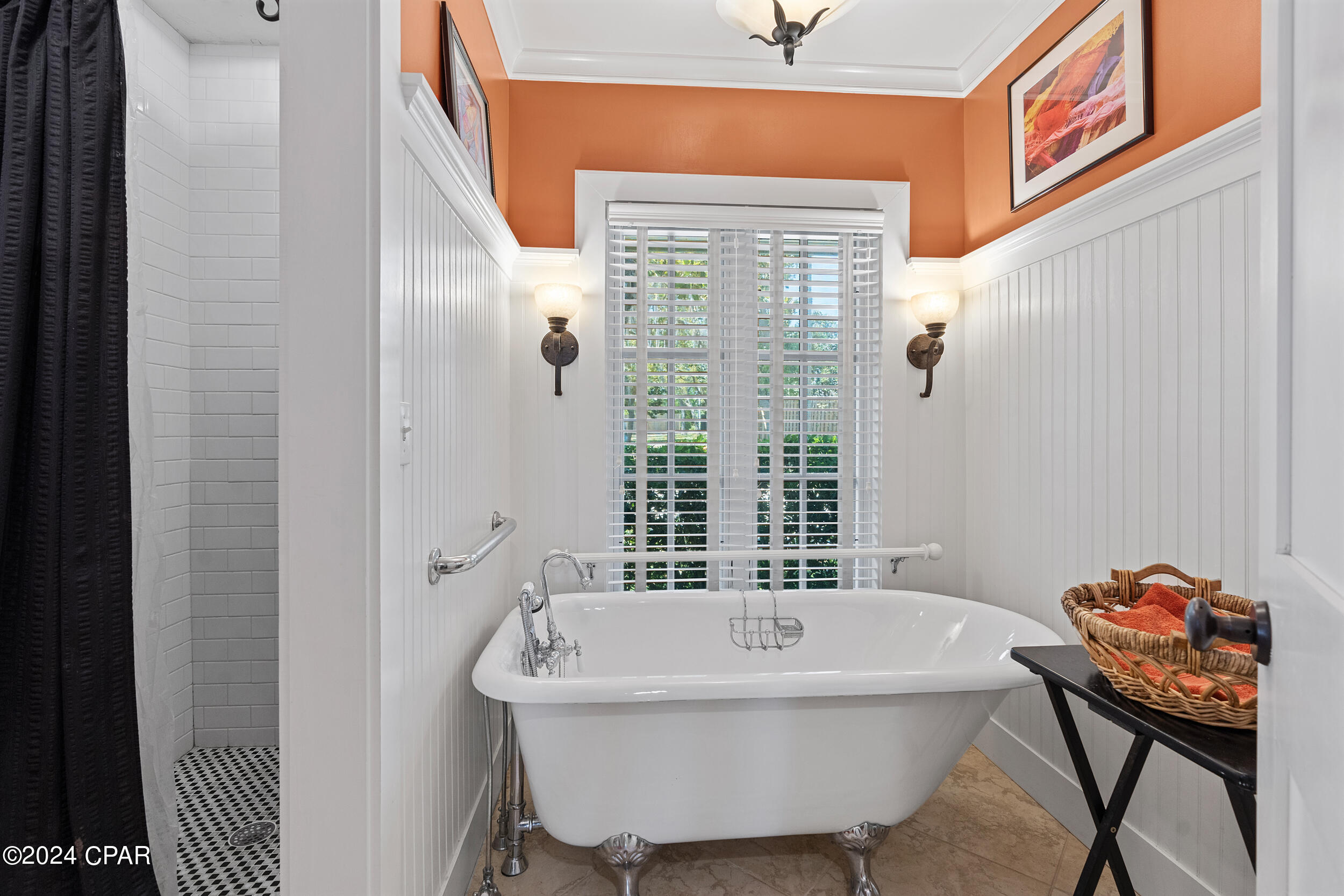 ------------ Nestled amid lush pines, oaks and magnolias, ''Fiddler's Green'' is a serene haven set on 2.98+ acres of coastal paradise. With an incredible 800 feet of water frontage, this idyllic retreat offers unparalleled views and direct access to enjoying fishing and boating in St. Andrews Bay, the Gulf beyond, or in the bayou out back. In 2005, the home was remodeled to enhance and modernize it for gracious living and easy entertaining, and now features a two-level, fan-shaped living room that elegantly divides the house into two distinct wings. Each of the three bedrooms, with private bath, is tucked within its respective wing to provide personal sanctuaries. The heart of the home lies within the spacious great room, seamlessly blending living, dining, and kitchen areas, anchored by the huge fireplace on one side and the copper-topped bar on the other. The standout feature is the expansive window wall, offering 180-degree panoramic views of the ever-changing sky, water, and shores from the comfort of home. Parades of fascinating watercraft enliven the water scene, while birds, deer and dolphins make regular appearances. With no HOA to restrict your lifestyle, a separate guest house, and a truly unique parcel of land, this extraordinary property stands as a rare find in the market. Aptly named for the perpetual joy it evokes, Fiddler's Green offers both seclusion and convenience. While providing privacy and peace, it is also just minutes away from St Andrews State Park, Bay Point amenities, and a plethora of the area's best restaurants. Schedule a viewing today to experience the romance and the magic of ''Fiddler's Green'' firsthand.