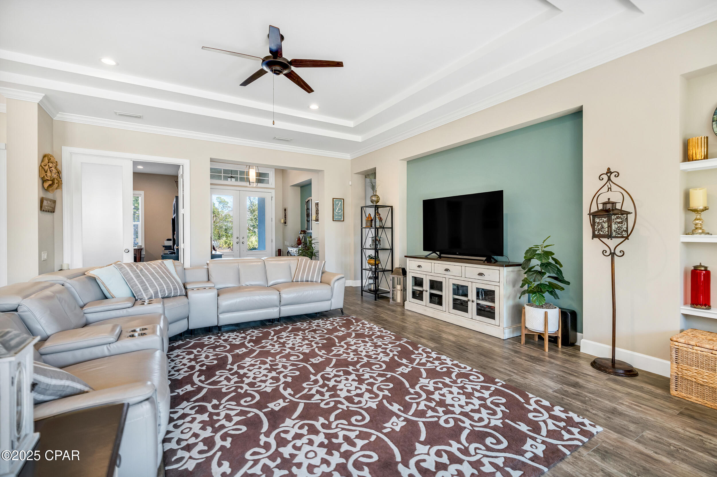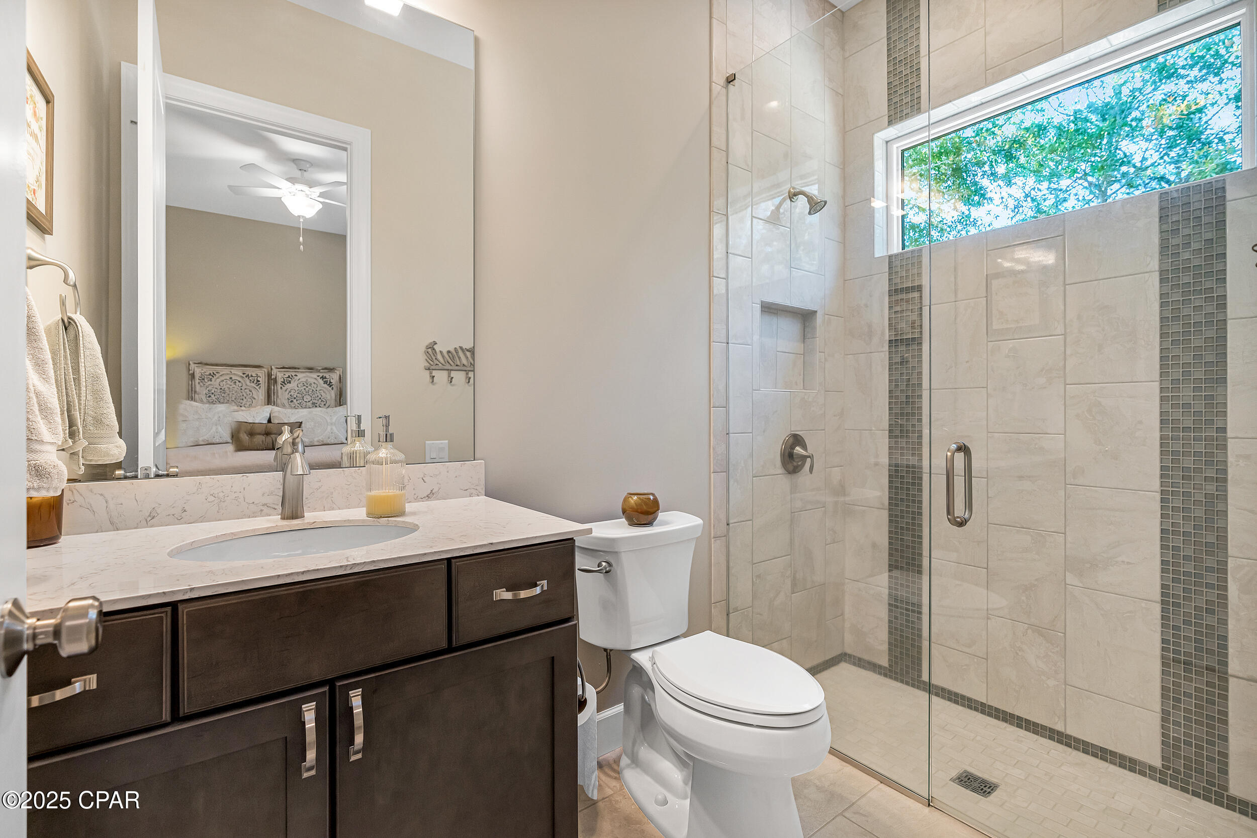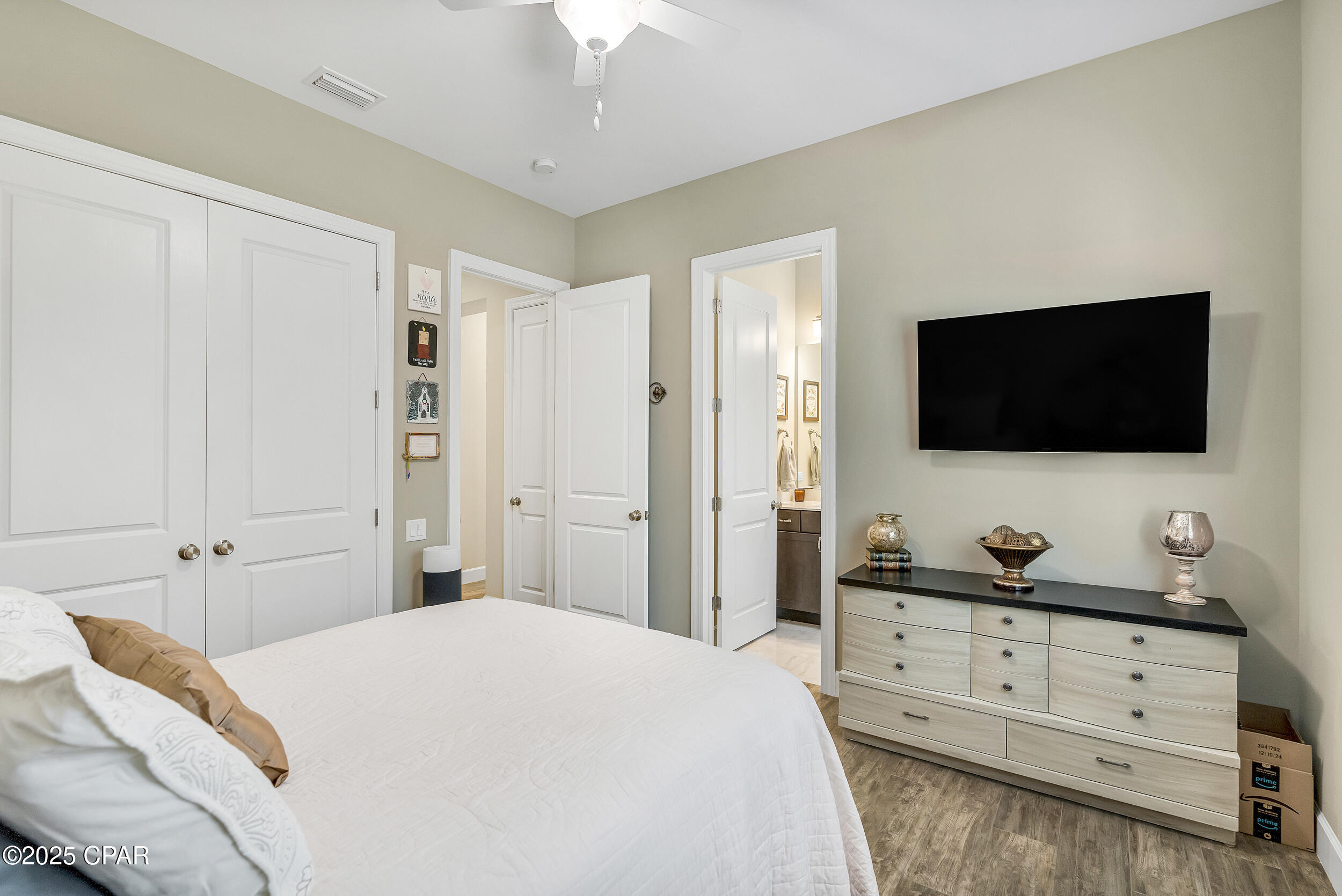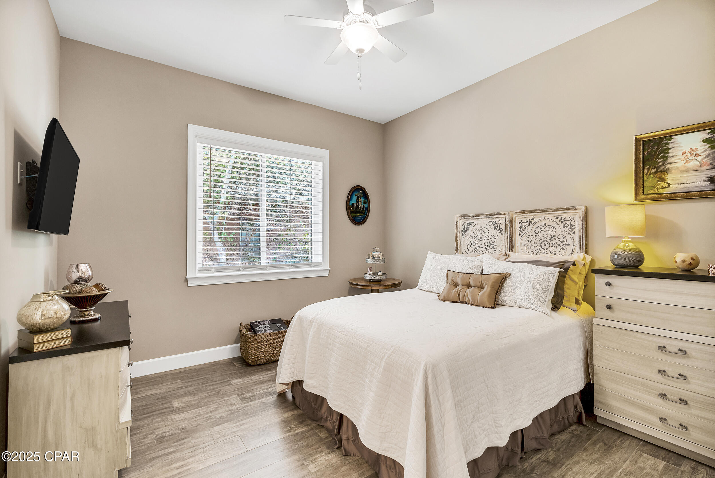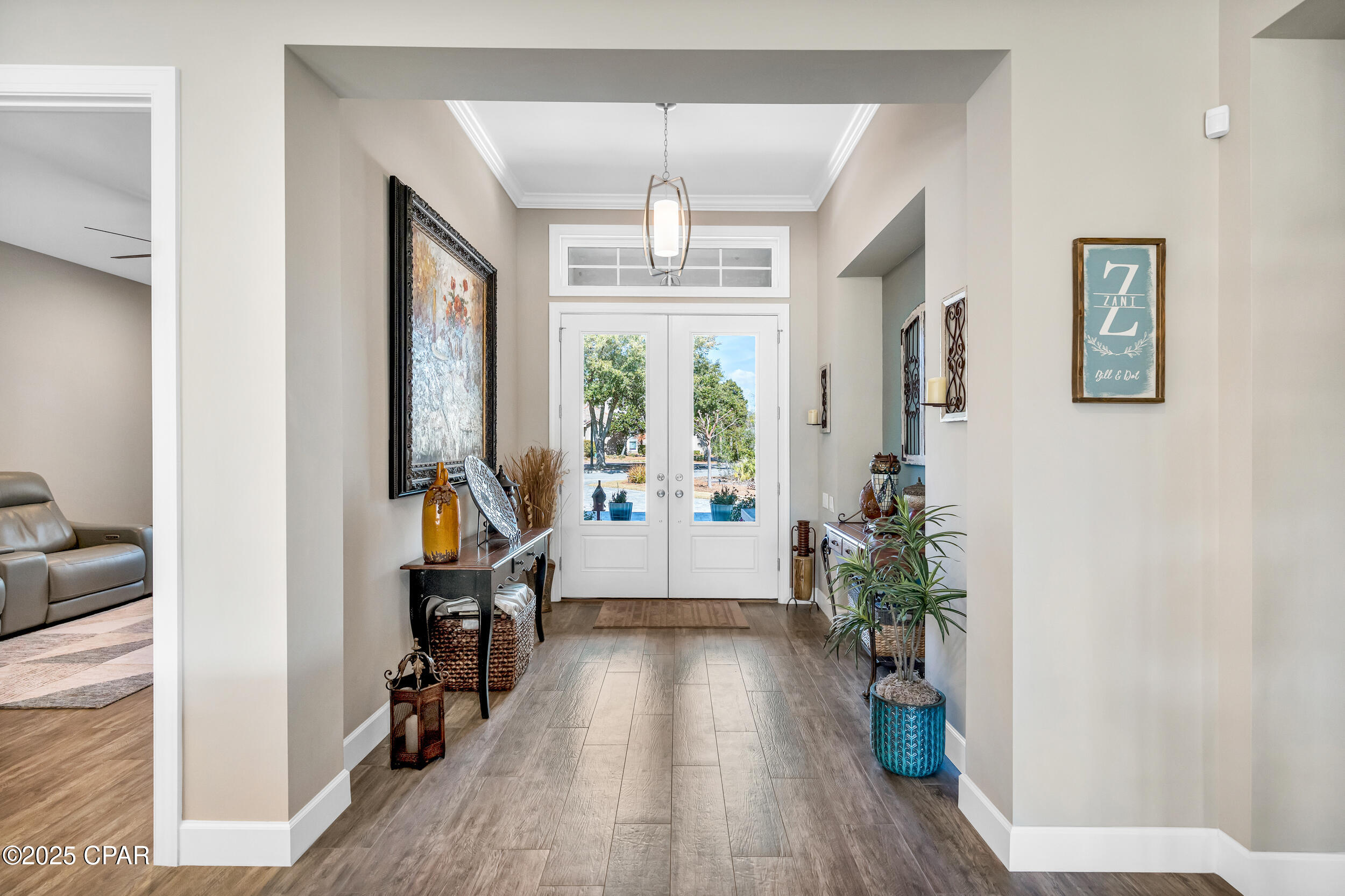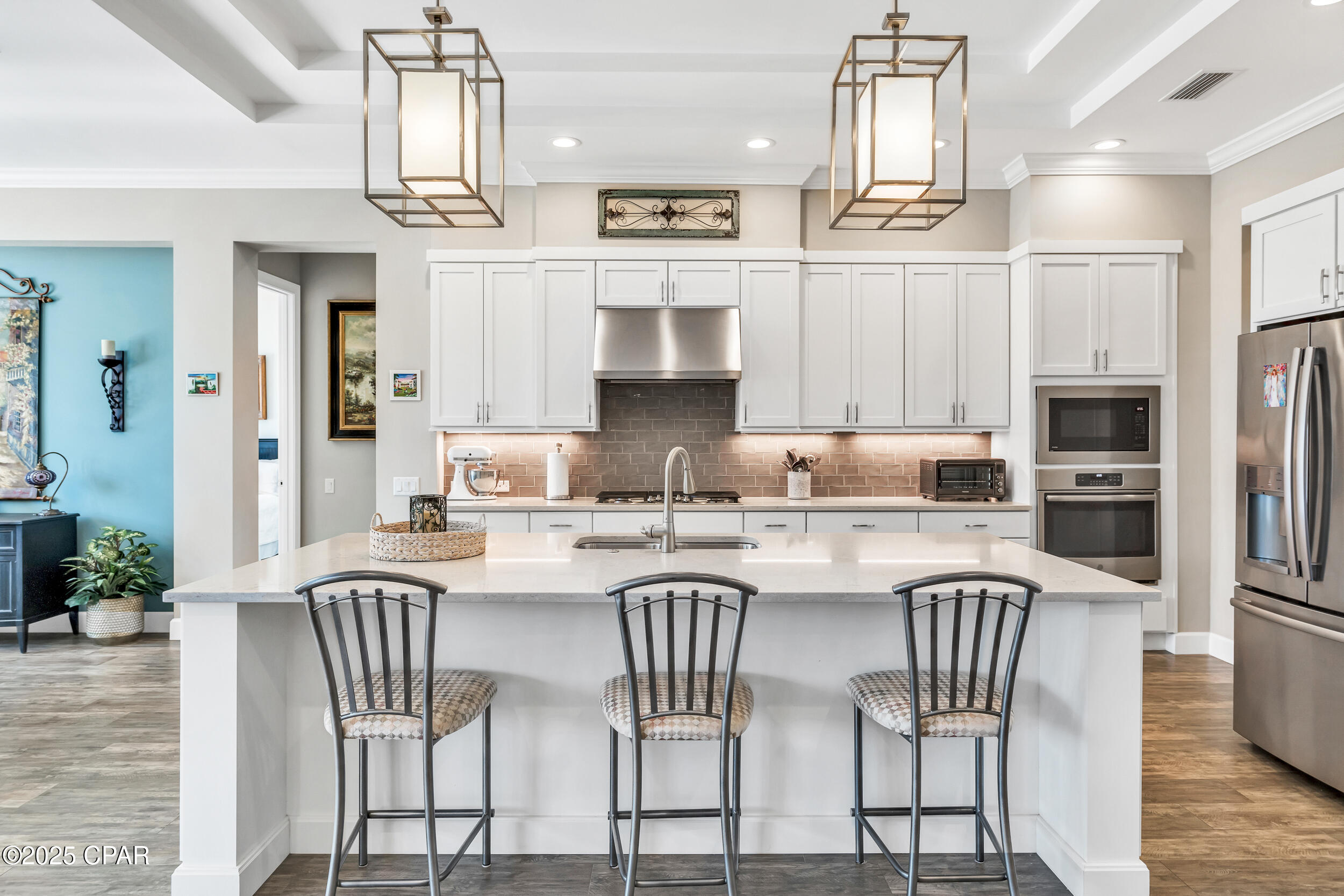This property has sold! Discover similar listings by reaching out to us for an updated list of available properties that match your preferences. **FOUR LARGE BEDROOMS WITH BONUS/OFFICE SPACE** This custom Arthur Rutenberg home is located in the exclusive, gated community of The Preserve on The Bay, where 24-hour staffed security ensures privacy and peace of mind. Built in 2019 and impeccably maintained by its single, pet-free, non-smoking owner, this home feels practically brand new. The thoughtfully designed split floor plan offers both openness and privacy, with a spacious primary suite tucked away on one side, featuring a luxurious bathroom with a walk-in shower, dual vanities, and an enviable custom closet. The three additional large bedrooms are on the opposite side, with two sharing a bath and one enjoying its own private ensuite. A versatile bonus room provides the flexibility to create a home office, entertainment space, or playroom. The gourmet kitchen boasts a five-burner gas cooktop, quartz countertops, a large island, abundant cabinetry, and a vent hood. A separate laundry room with a sink and space for an extra fridge adds even more convenience. Natural light pours in through a stunning four-panel sliding glass door that opens to the screened-in travertine lanai, overlooking the expansive .66-acre backyard - lush, private, and surrounded by mature trees and protected green space. This home is as energy-efficient as it is beautiful, featuring paid-off solar panels that keep utility costs impressively low - the average electric bill is just $45 per month and, there is even a well for the irrigation system.Additional smart energy features include foamed insulation and a Rinnai tankless water heater. The three-car garage, complete with EV charging and overhead storage, rounds out this exceptional home. A rare opportunity to own in one of Panama City Beach's most sought-after communities - schedule your private tour today.