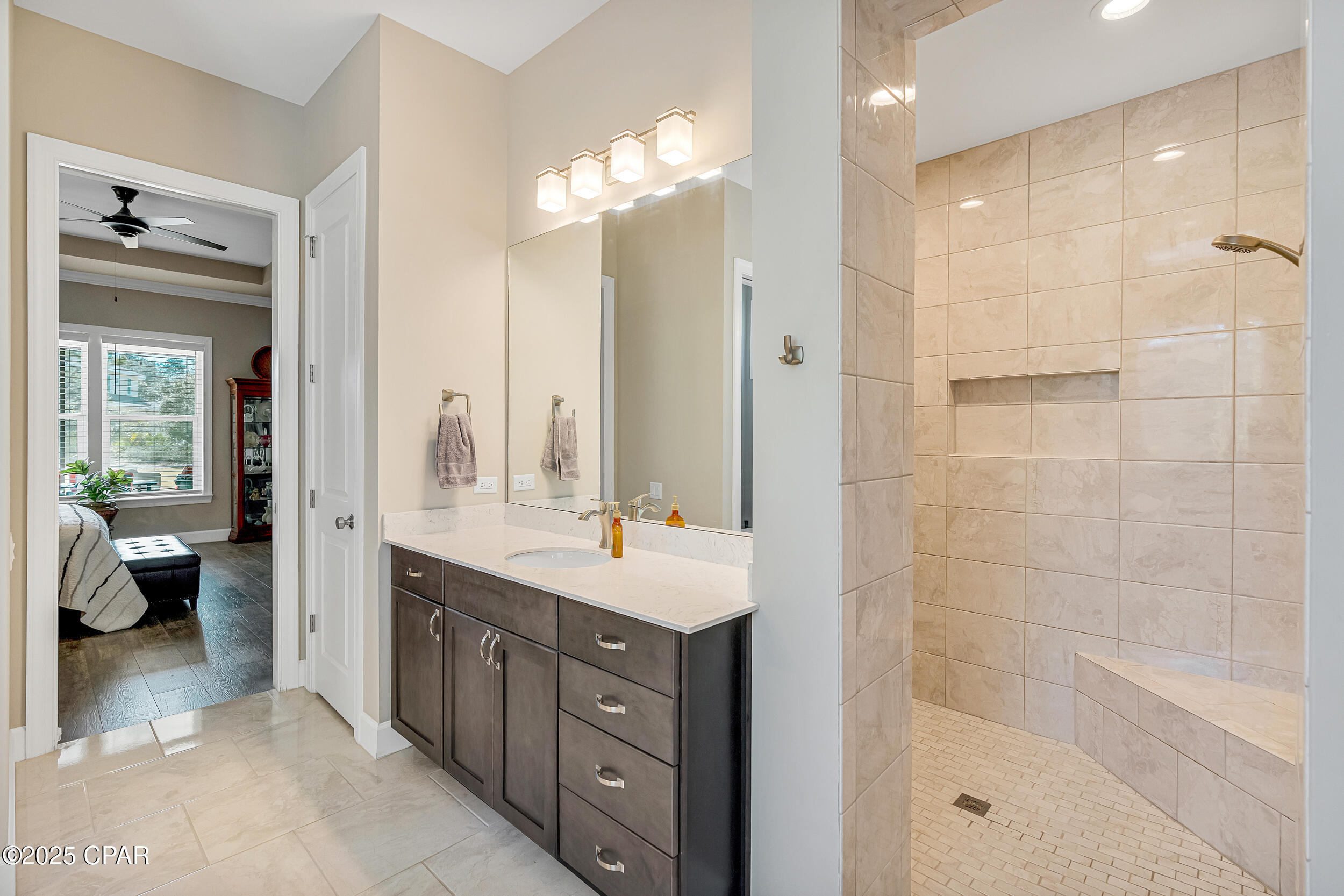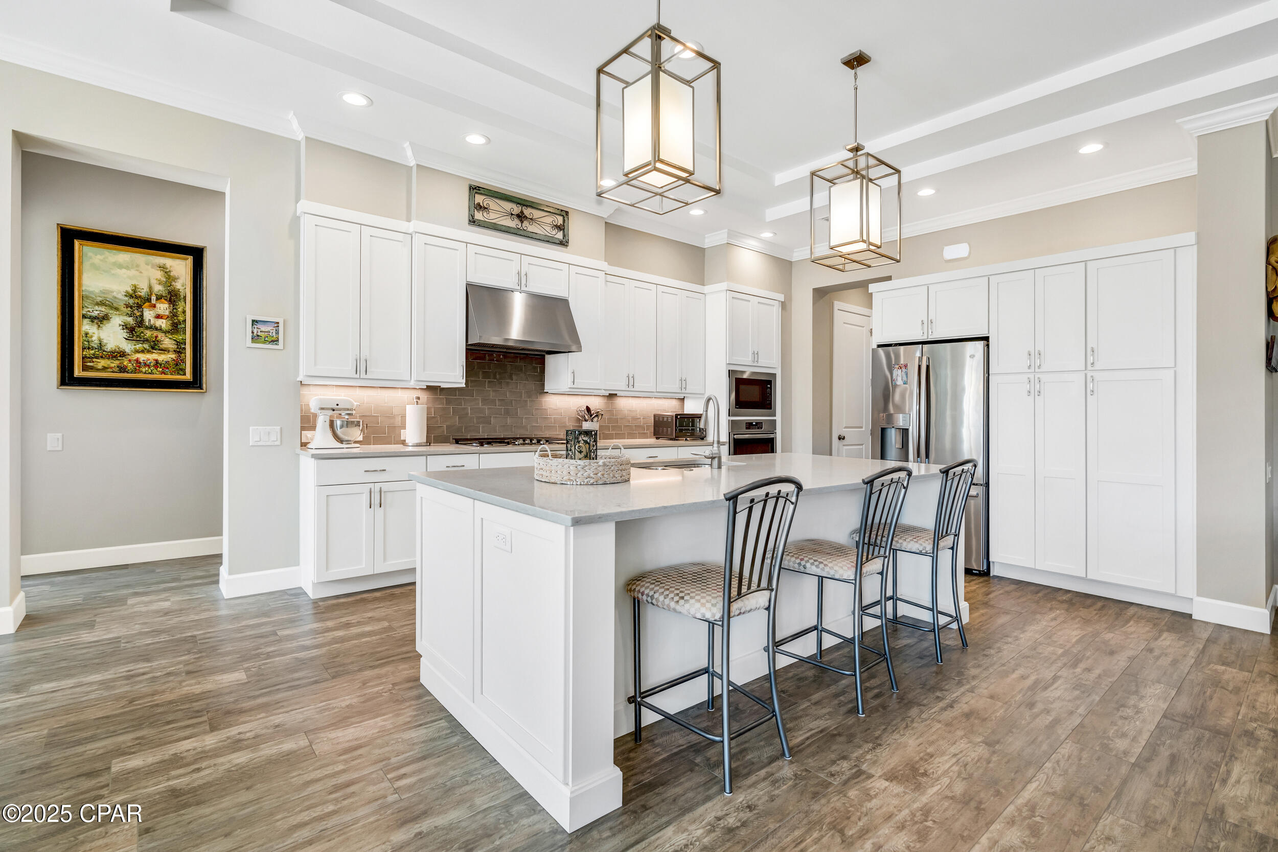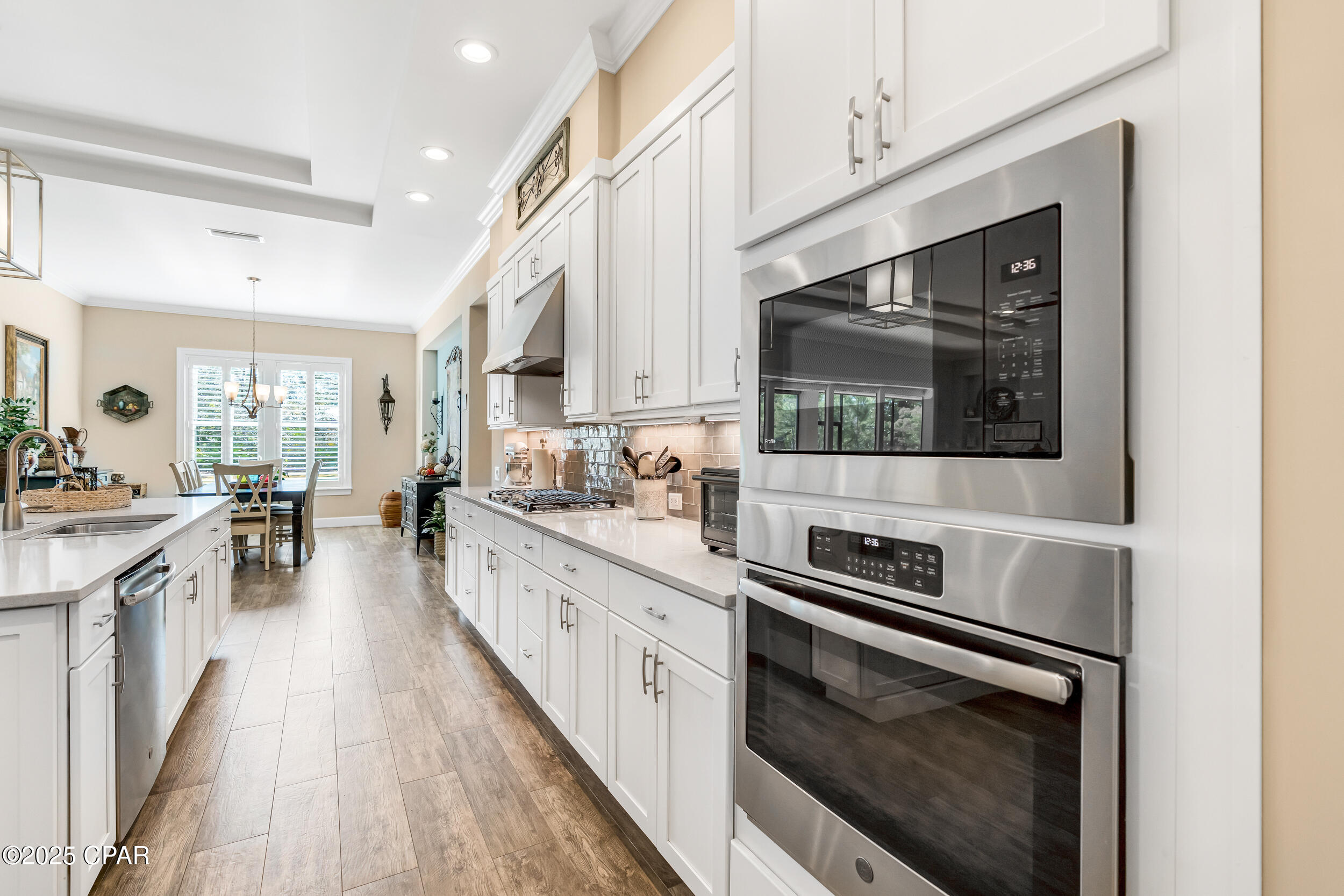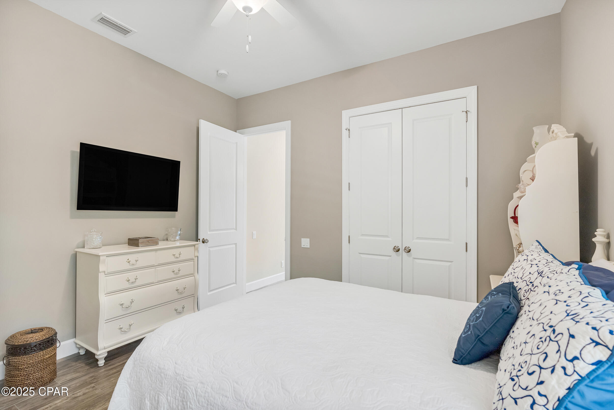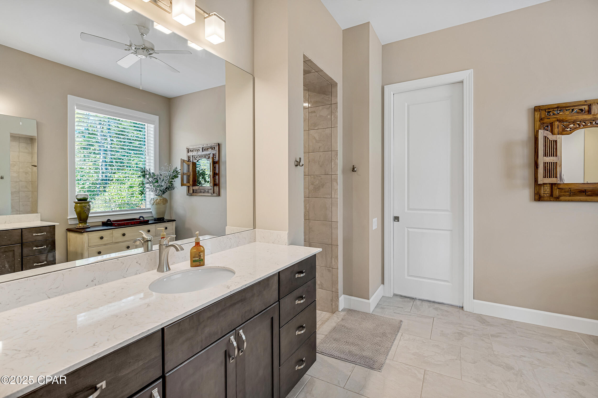 This property has sold! Discover similar listings by reaching out to us for an updated list of available properties that match your preferences. **FOUR LARGE BEDROOMS WITH BONUS/OFFICE SPACE** This custom Arthur Rutenberg home is located in the exclusive, gated community of The Preserve on The Bay, where 24-hour staffed security ensures privacy and peace of mind. Built in 2019 and impeccably maintained by its single, pet-free, non-smoking owner, this home feels practically brand new. The thoughtfully designed split floor plan offers both openness and privacy, with a spacious primary suite tucked away on one side, featuring a luxurious bathroom with a walk-in shower, dual vanities, and an enviable custom closet. The three additional large bedrooms are on the opposite side, with two sharing a bath and one enjoying its own private ensuite. A versatile bonus room provides the flexibility to create a home office, entertainment space, or playroom. The gourmet kitchen boasts a five-burner gas cooktop, quartz countertops, a large island, abundant cabinetry, and a vent hood. A separate laundry room with a sink and space for an extra fridge adds even more convenience. Natural light pours in through a stunning four-panel sliding glass door that opens to the screened-in travertine lanai, overlooking the expansive .66-acre backyard - lush, private, and surrounded by mature trees and protected green space. This home is as energy-efficient as it is beautiful, featuring paid-off solar panels that keep utility costs impressively low - the average electric bill is just $45 per month and, there is even a well for the irrigation system.Additional smart energy features include foamed insulation and a Rinnai tankless water heater. The three-car garage, complete with EV charging and overhead storage, rounds out this exceptional home. A rare opportunity to own in one of Panama City Beach's most sought-after communities - schedule your private tour today.