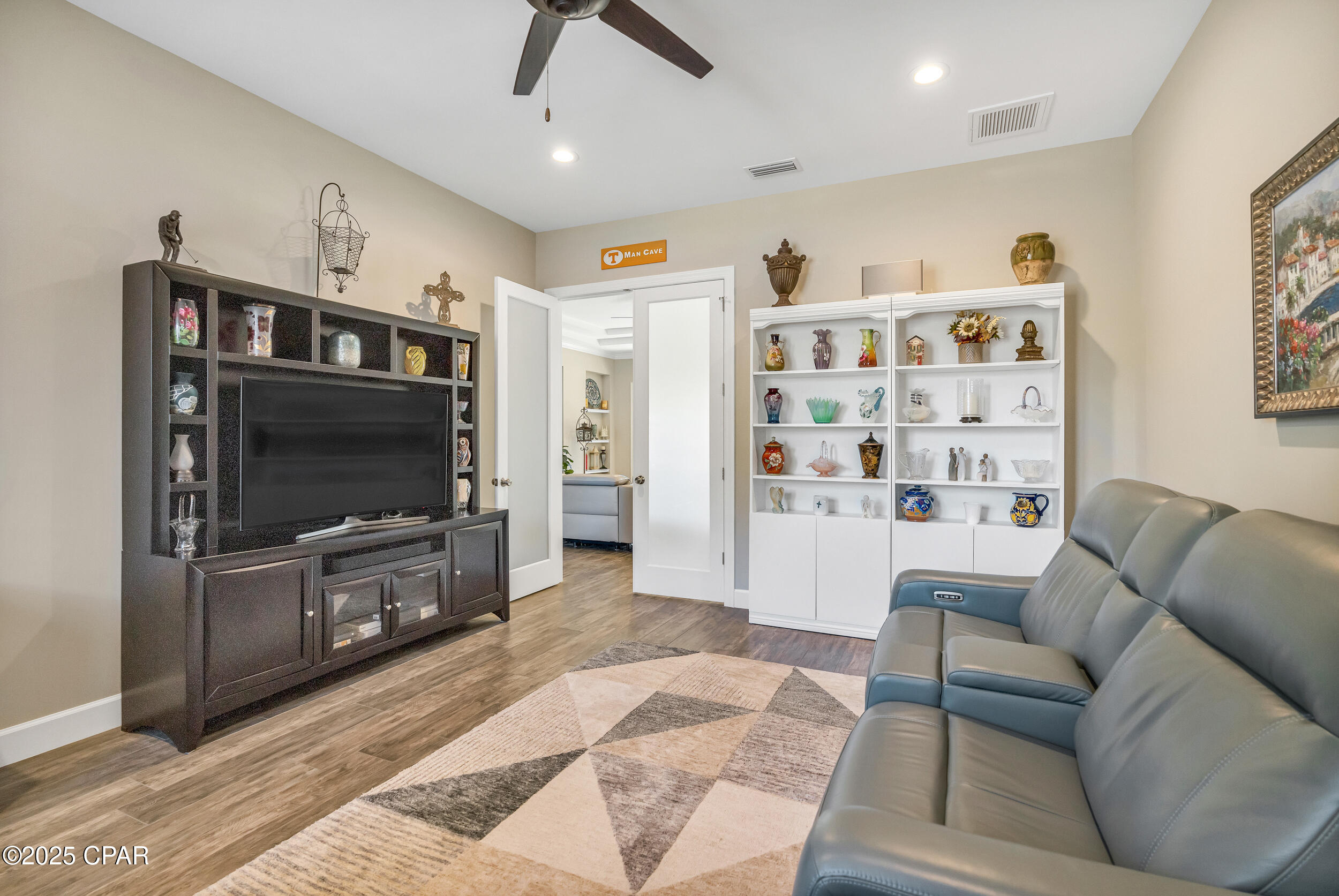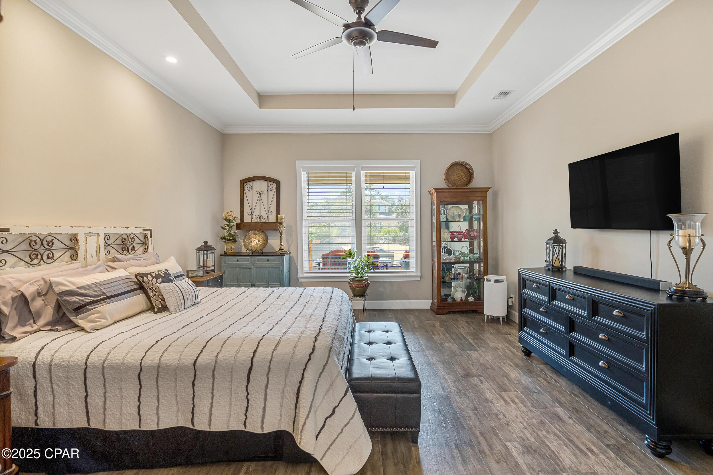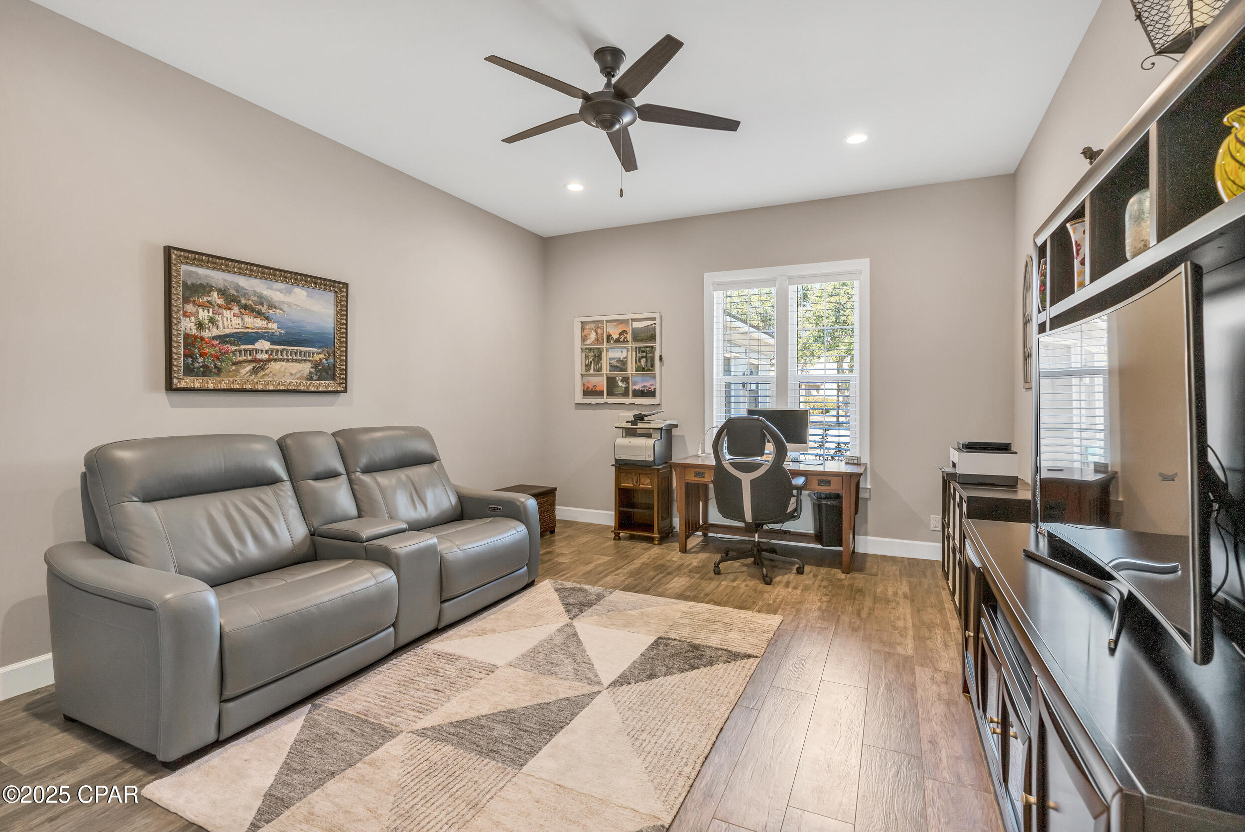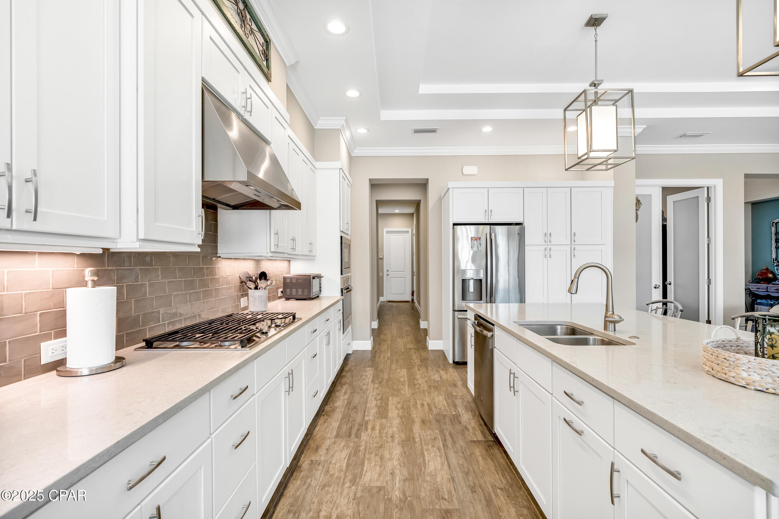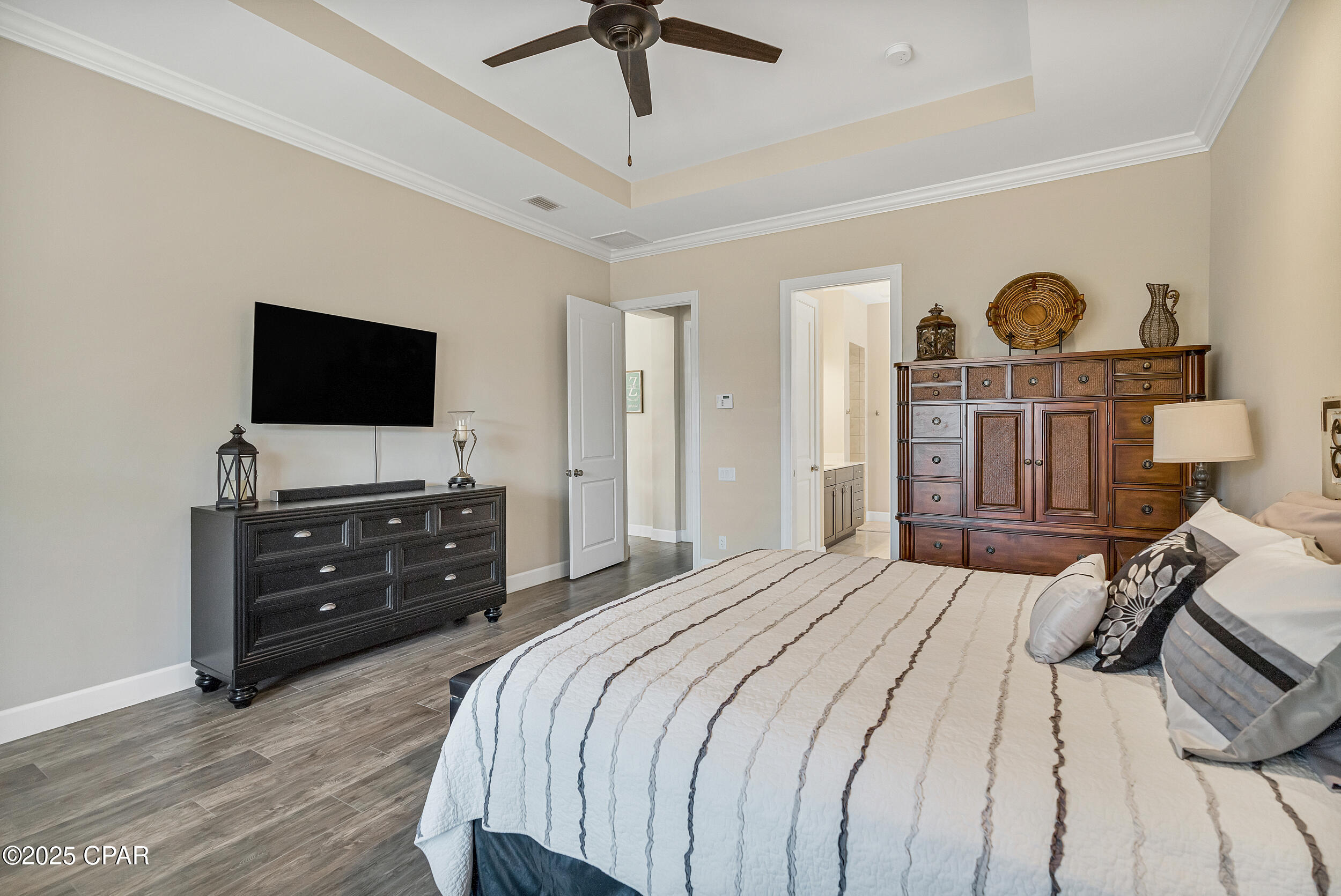 This property has sold! Discover similar listings by reaching out to us for an updated list of available properties that match your preferences. **FOUR LARGE BEDROOMS WITH BONUS/OFFICE SPACE** This custom Arthur Rutenberg home is located in the exclusive, gated community of The Preserve on The Bay, where 24-hour staffed security ensures privacy and peace of mind. Built in 2019 and impeccably maintained by its single, pet-free, non-smoking owner, this home feels practically brand new. The thoughtfully designed split floor plan offers both openness and privacy, with a spacious primary suite tucked away on one side, featuring a luxurious bathroom with a walk-in shower, dual vanities, and an enviable custom closet. The three additional large bedrooms are on the opposite side, with two sharing a bath and one enjoying its own private ensuite. A versatile bonus room provides the flexibility to create a home office, entertainment space, or playroom. The gourmet kitchen boasts a five-burner gas cooktop, quartz countertops, a large island, abundant cabinetry, and a vent hood. A separate laundry room with a sink and space for an extra fridge adds even more convenience. Natural light pours in through a stunning four-panel sliding glass door that opens to the screened-in travertine lanai, overlooking the expansive .66-acre backyard - lush, private, and surrounded by mature trees and protected green space. This home is as energy-efficient as it is beautiful, featuring paid-off solar panels that keep utility costs impressively low - the average electric bill is just $45 per month and, there is even a well for the irrigation system.Additional smart energy features include foamed insulation and a Rinnai tankless water heater. The three-car garage, complete with EV charging and overhead storage, rounds out this exceptional home. A rare opportunity to own in one of Panama City Beach's most sought-after communities - schedule your private tour today.