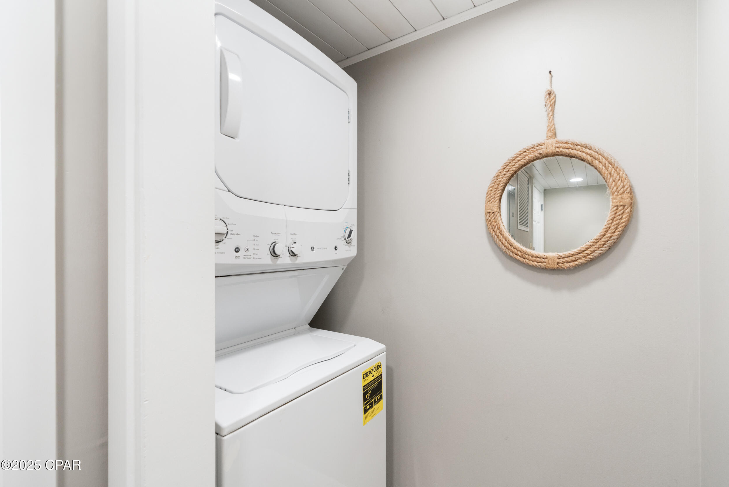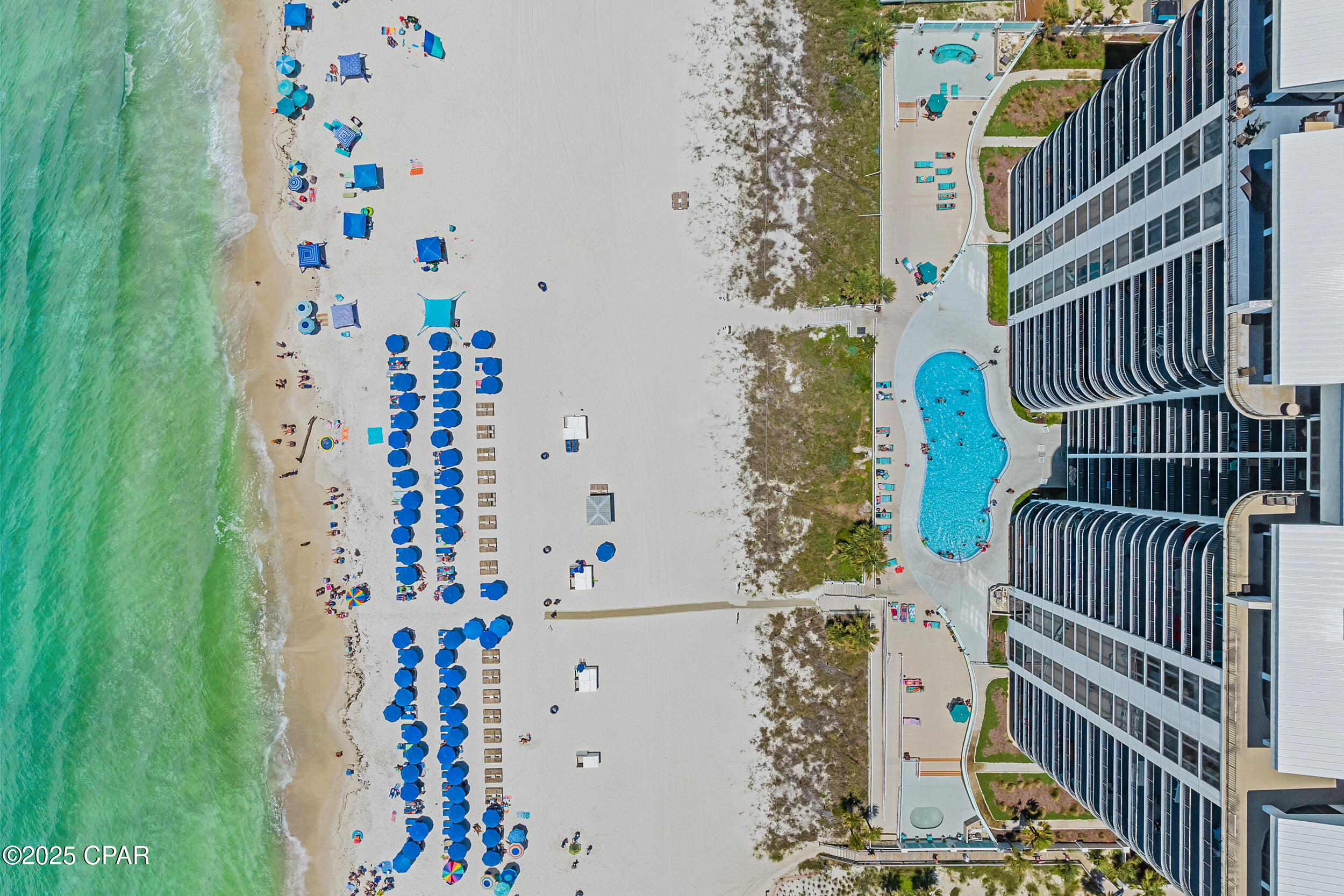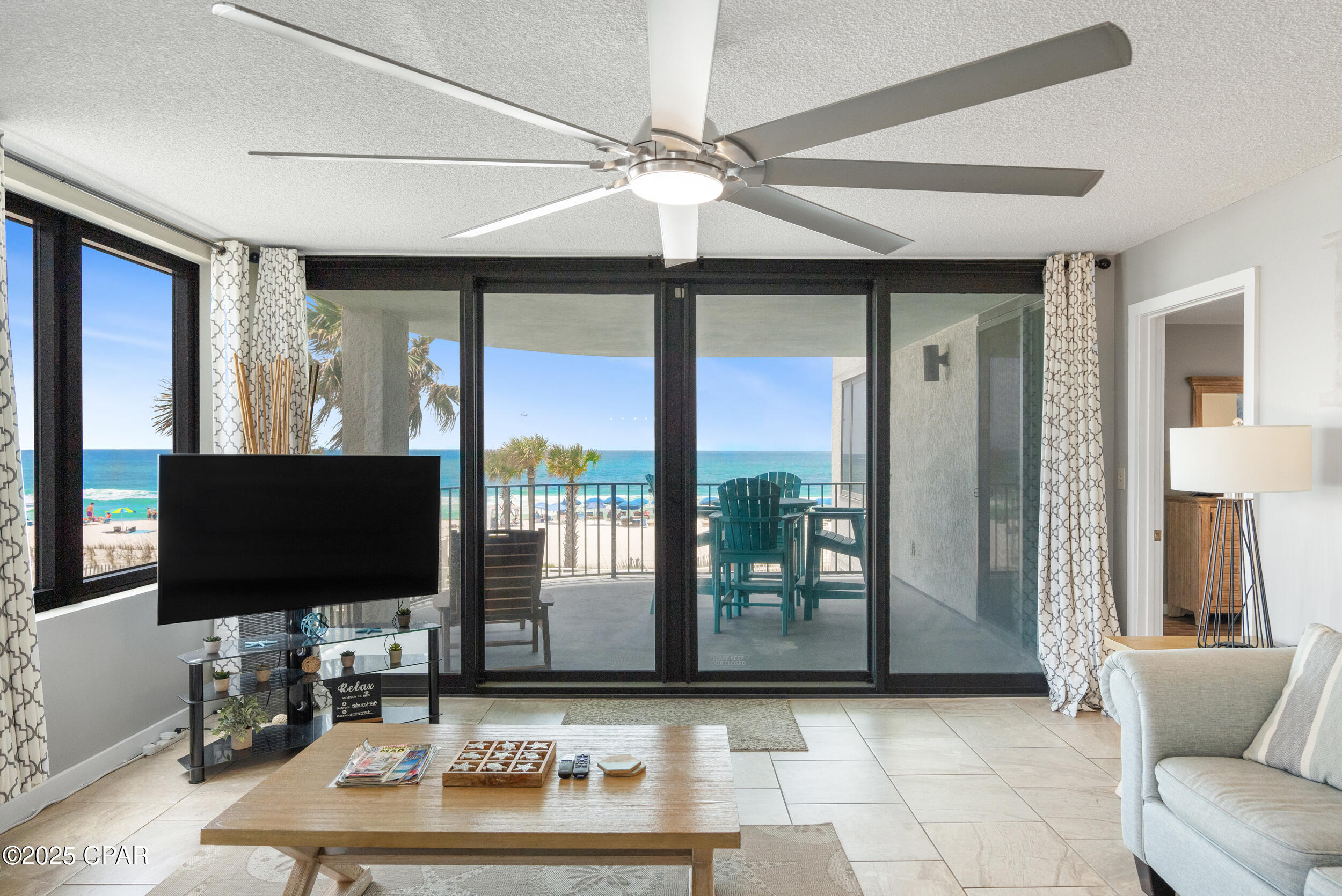 This is one of the most desirable units at Watercrest: a second-floor east-end condo that combines rare location, generous square footage, and unbeatable views. Skip the elevator and step right onto the sand or pool - this prime low-floor location makes beach days effortless and is popular with rentals. Inside, the spacious layout offers larger rooms than most 2-bedroom condos, and the end-unit positioning brings in extra windows that flood the space with natural light and stunning Gulf views from every angle. Sliding doors lead to an oversized corner balcony - one of the largest you'll find in Panama City Beach- with panoramic south and east views. The Gulf-front master suite with king bed also opens to the balcony, while the second bedroom fits two queen beds. The kitchen has been upgraded with oak cabinetry, granite countertops, stainless steel appliances, a newer sink and faucet, and a bar-height counter perfect for casual dining. Both bathrooms have also been updated with new cabinets and vanities, and tile runs throughout the living area, hallway, kitchen, and bathrooms. A separate laundry area provides a full-sized washer and dryer plus extra storage space. Sold fully furnished, the unit sleeps eight and is rental-ready. The unit's front door was replaced in 2024. Watercrest recently completed a $4.5 million renovation, including a new roof, windows, balcony doors, exterior paint, deck surfacing, and pool improvements - everything feels fresh and beautifully maintained. The well-managed HOA includes cable TV, internet, and a portion of the HVAC expenses in the monthly fees. Enjoy resort-style amenities like a heated pool, hot tubs, a kiddie pool, a poolside tiki bar, tennis, pickleball, racquetball, a fitness center, saunas, BBQ grills, an owner's lounge, beach rental service, covered parking, and 24/7 security. Tucked away on the quiet end of Panama City Beach near Schooners and St. Andrews State Park, this unit is a rare find with serious income potential. Don't miss your chance - schedule a private showing today!
