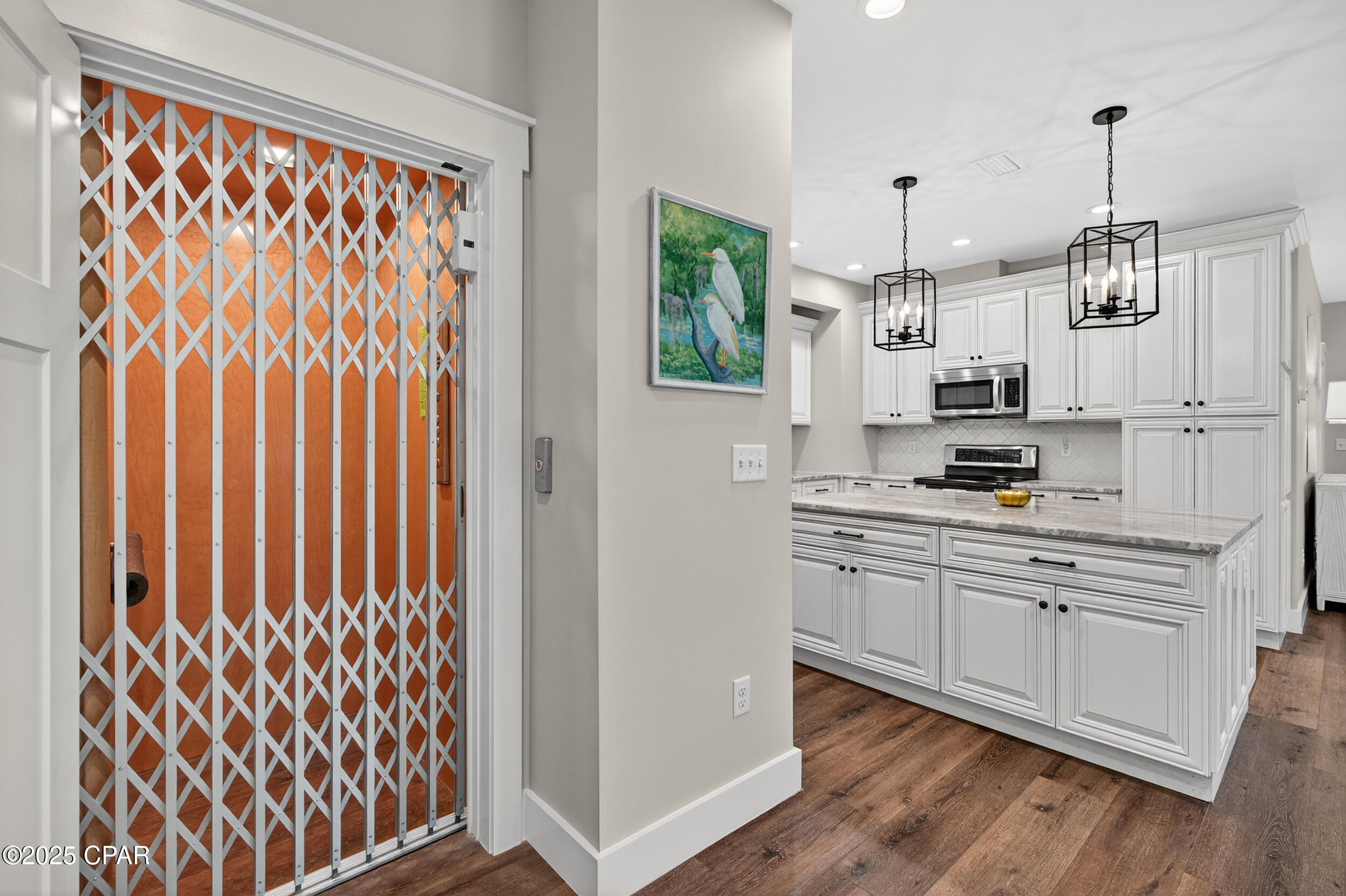 Inside, the home welcomes you with soaring ceilings, abundant natural light, and an open layout that connects the living, dining, and kitchen areas. The living room centers around a fireplace and flows into a modern kitchen featuring a large island, custom cabinetry, and stainless steel appliances. The spacious primary suite includes private deck access, a spa-inspired ensuite with a frameless glass shower, and double vanities. Two additional bedrooms, a versatile bonus room, and a lower-level oversized garage add flexibility for work, hobbies, or guests. An elevator provides easy access between levels. Multiple covered decks and a screened porch extend the living space outdoors, offering peaceful views and a place to unwind year-round.