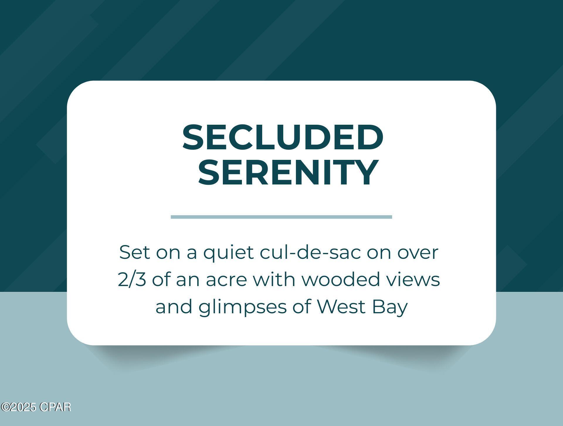 This thoughtfully designed 3BR/2BA home is tucked inside RiverCamps, one of Panama City Beach's most unique gated communities. Set on over two-thirds of an acre on a quiet cul-de-sac, this property offers wooded views, glimpses of West Bay, and a setting that feels worlds away...while putting you just minutes from everyday conveniences.