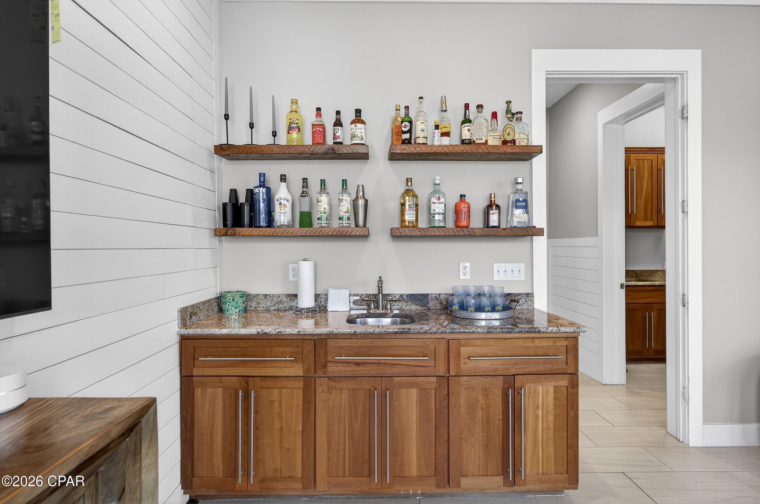 Outside, the Florida lifestyle takes center stage. The heated saltwater pool with sun shelf, bubblers, and umbrella ledge invites long afternoons in the sun, while the covered lanai and outdoor kitchen create the perfect setting for gathering. The private dock with remote-controlled boat lift (accommodating approximately up to a 10' beam and 30' vessel) includes shore power, water, and cable - putting Shell Island, St. Andrews Bay, and the Gulf just a short 15-minute ride away. Spend your days fishing, dolphin watching, or anchoring out for a beach day with the family.