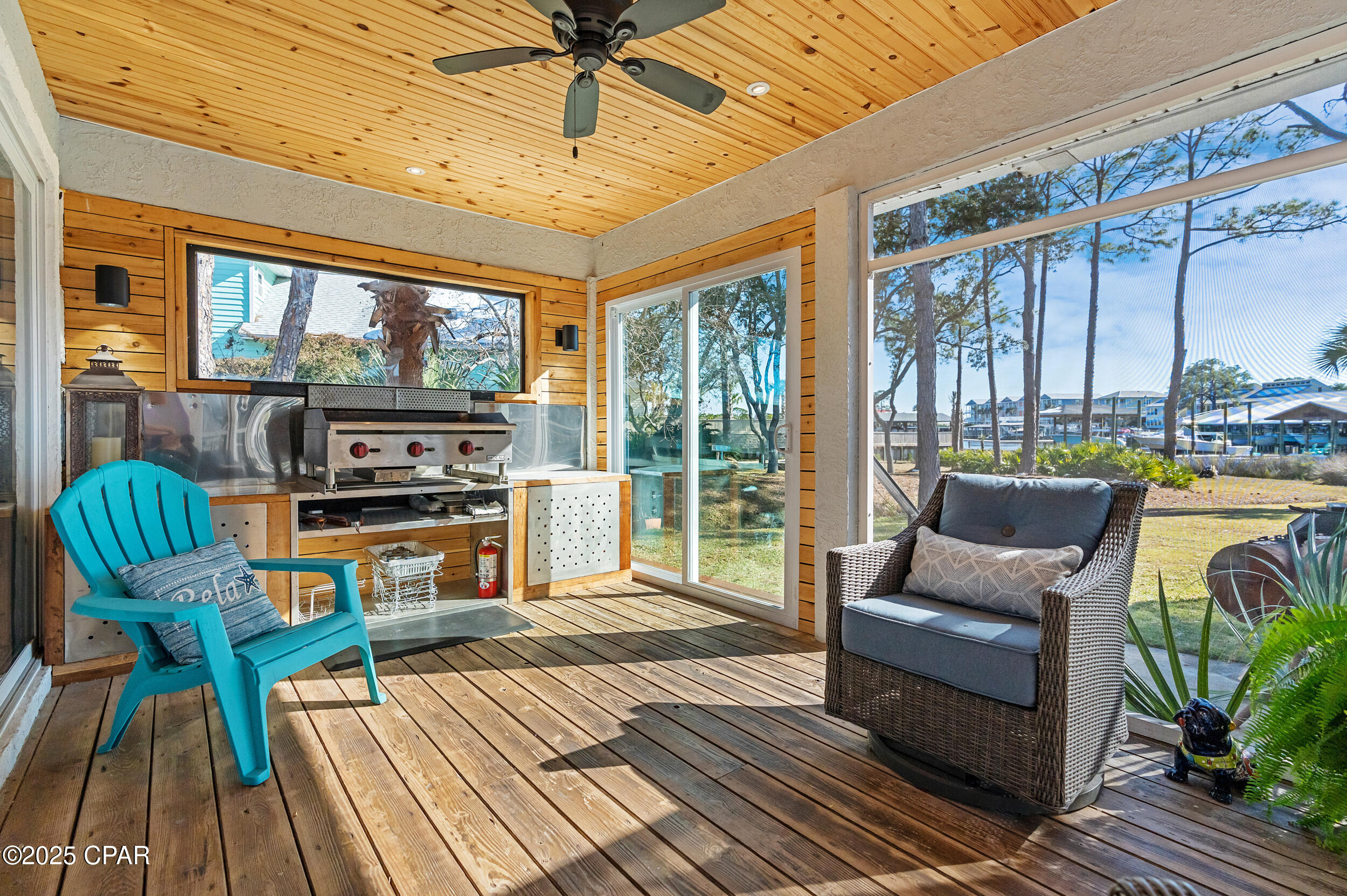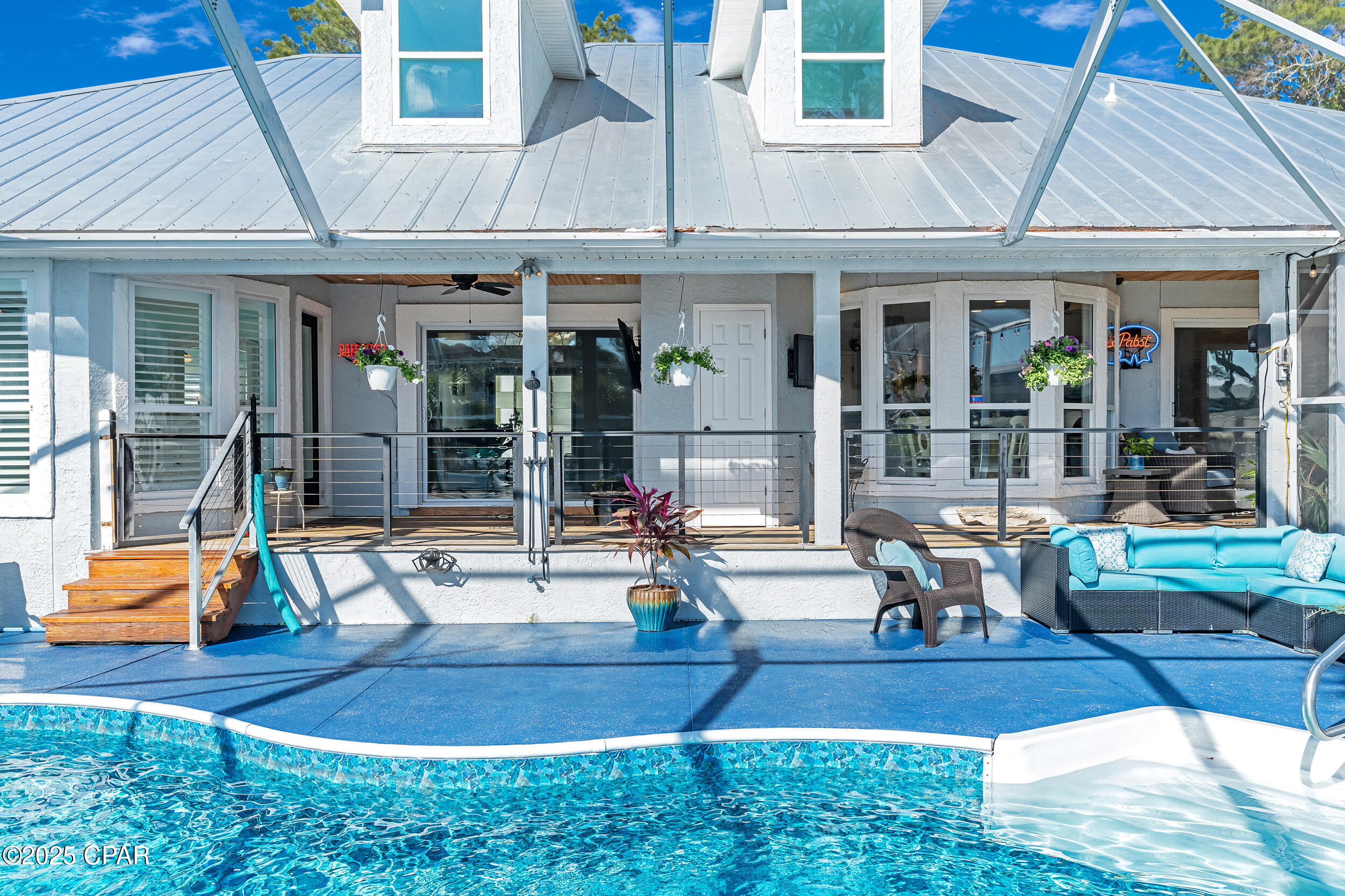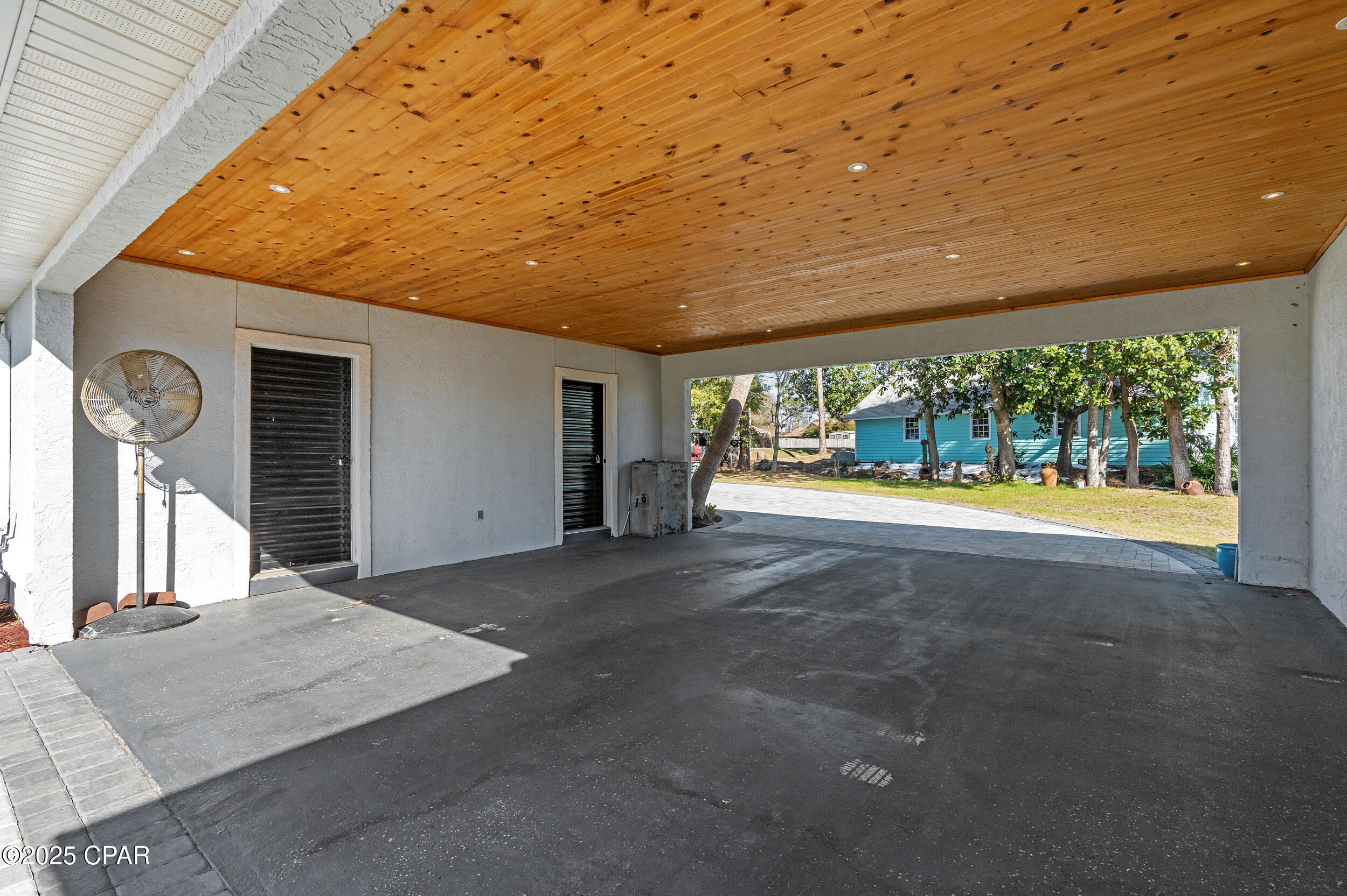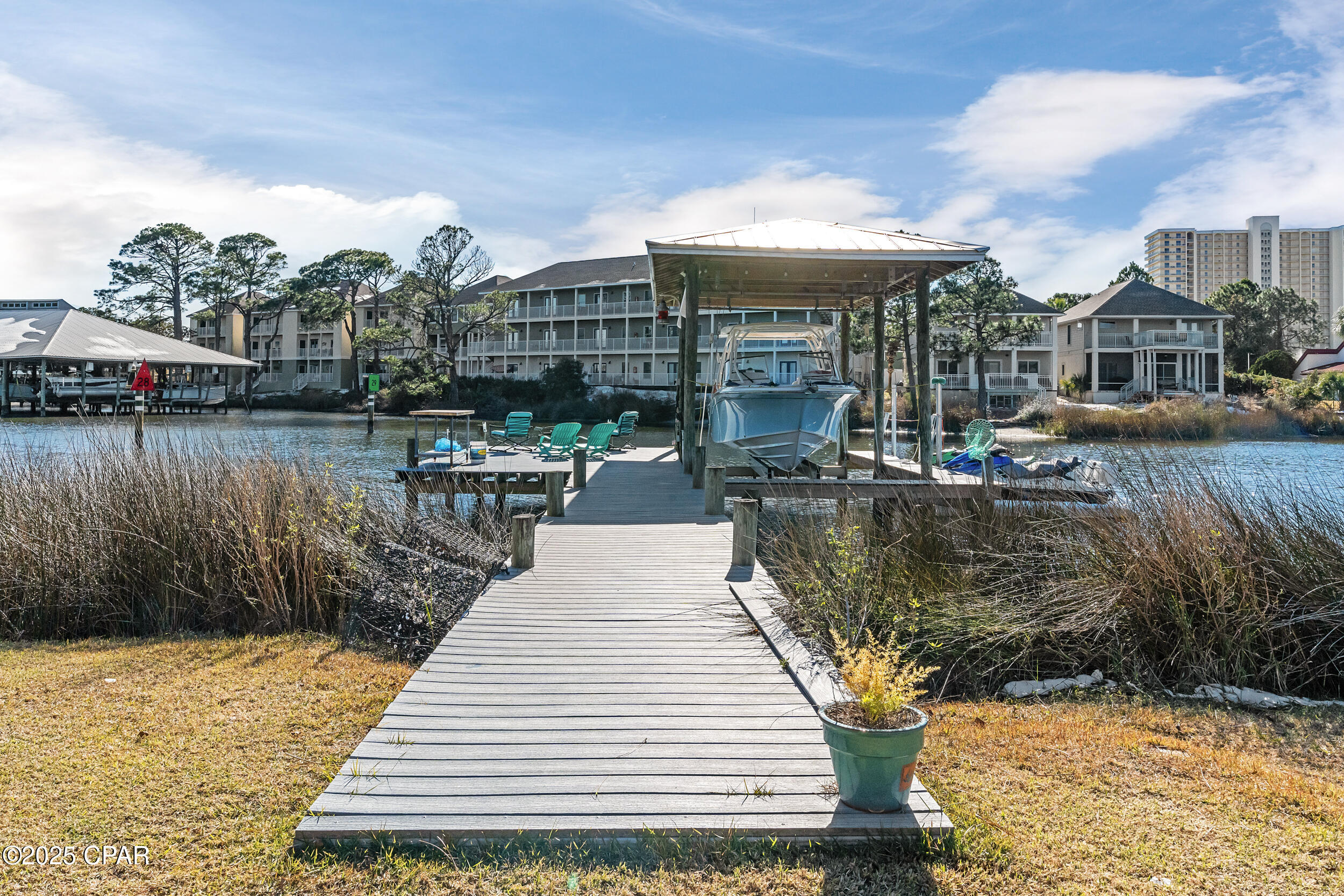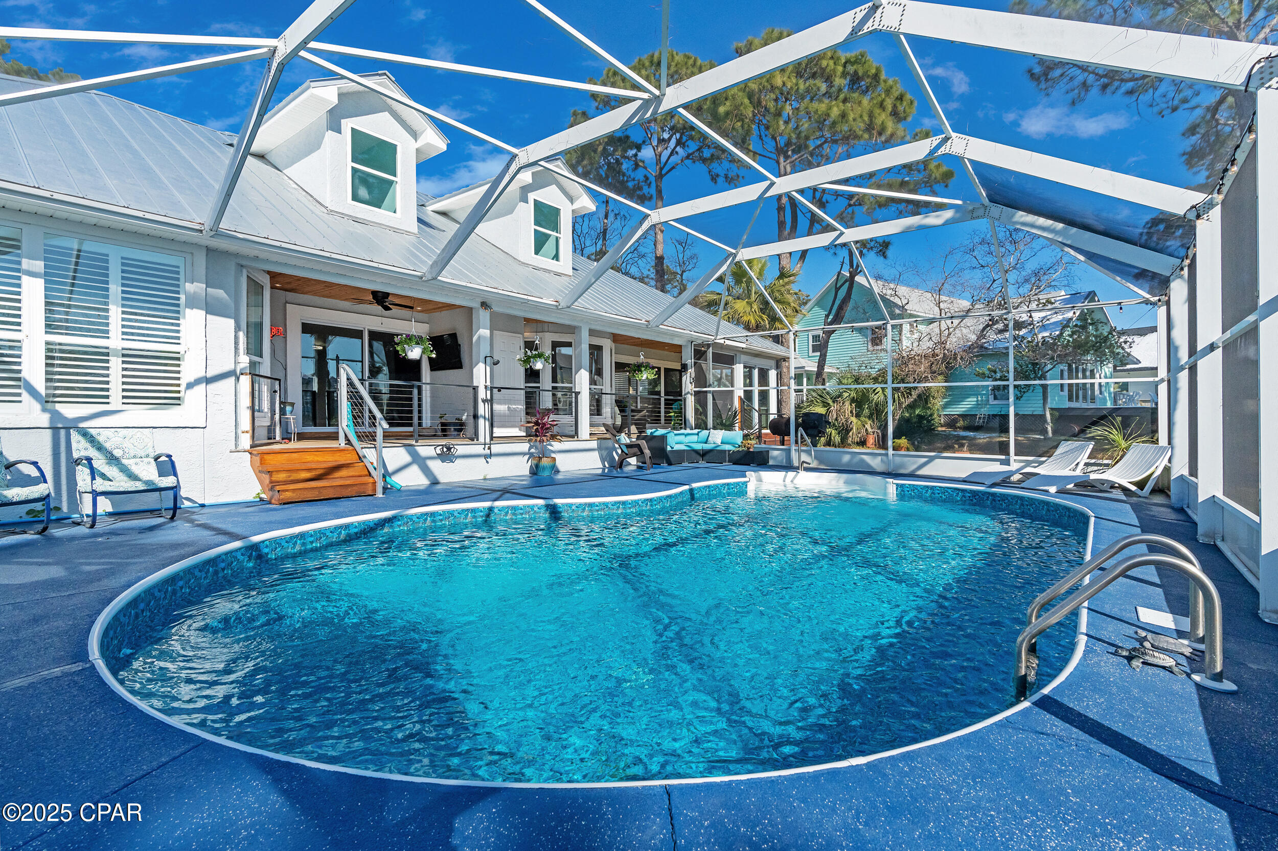 **WATERFRONT WITH GULF ACCESS** PRICED TO MOVE** ALL UPDATES DONE IN THE LAST THREE YEARS** Tucked away beneath a breathtaking canopy of towering Live Oaks, this exceptional waterfront estate creates a dramatic and lasting first impression. Offering the rare combination of private Gulf access and proximity to the beach, it provides the best of both worlds - launch your boat from your own dock or take a short stroll to Panama City Beach's sugar-white sands via Beach Access 24. Despite its serene waterfront setting, this home is located in the heart of PCB, keeping you just minutes from the area's best dining, shopping, and entertainment. A beautifully designed circular driveway, finished with high-end pavers and framed by lush greenery, sets the stage for the elegance within. Step inside to a refined yet inviting interior, where vaulted ceilings and an open-concept layout enhance the sense of space and light. Luxury vinyl plank flooring flows seamlessly throughout, leading to five generously sized bedrooms - each with a private bath featuring quartz counters, marble tile, and shiplap accents. The master suite is a true sanctuary, boasting a spa-like bath with a marble soaking tub and a walk-in glass shower. The kitchen impresses with an oversized island and bar, marble counters, stainless appliances, ample cabinets, and a striking ceiling pot rack, all offering style and functionality. A charming breakfast nook overlooks the lagoon and resort-style enclosed pool area, complete with a cabana, bath, and outdoor kitchen - perfect for effortless alfresco entertaining. The expansive backyard is a true waterfront oasis, offering plenty of space to relax, entertain, fish off the dock, or simply take in the views. Beyond, an updated boat dock with a 12,000 lb lift invites you to explore the area, with the Gulf just minutes away via the iconic Grand Lagoon. This is more than just a house - it's a dream home where lifelong memories are made. With short-term rentals allowed and no HOA, you'll have the flexibility to make it your full-time residence while still having options for the future. Schedule your private tour today and experience the best of Panama City Beach living.