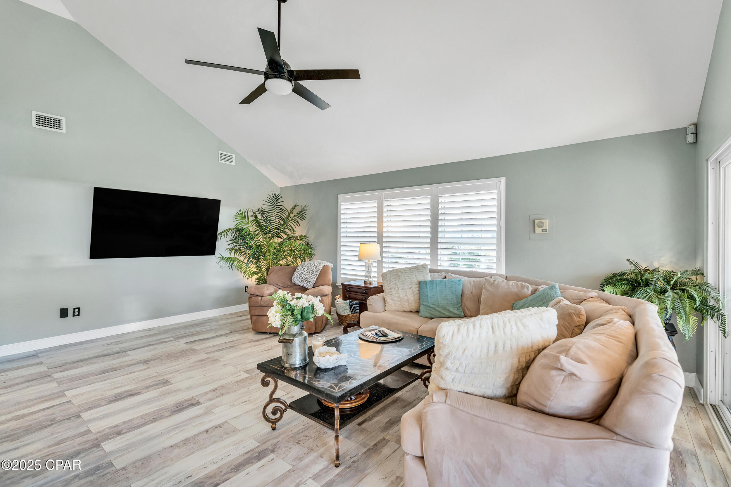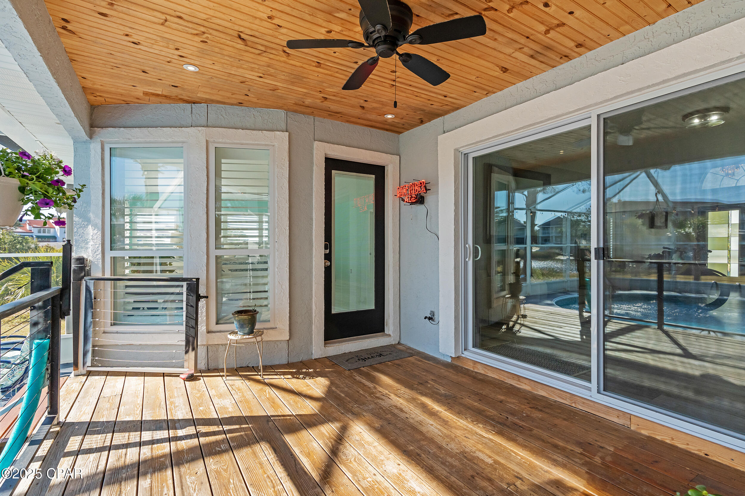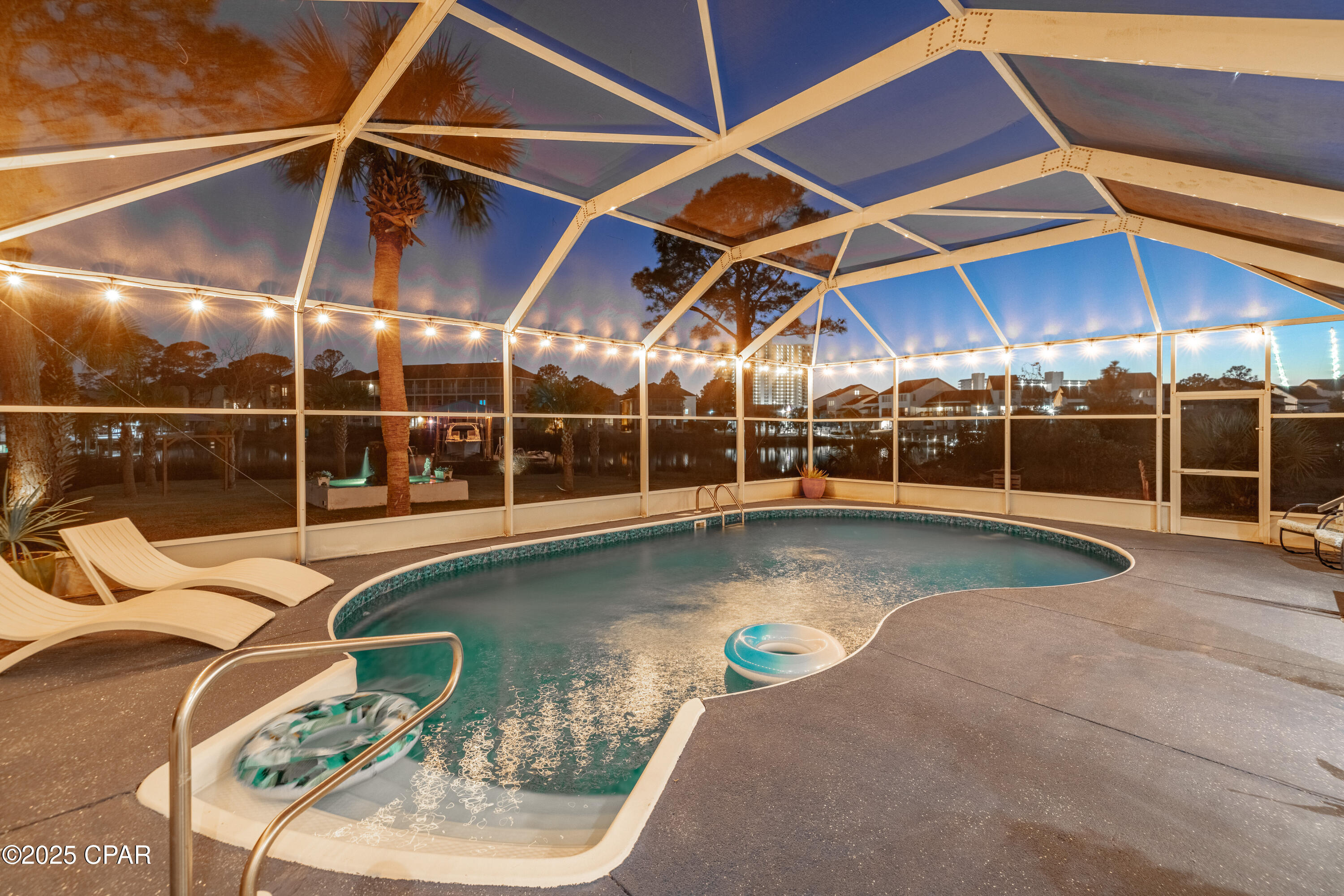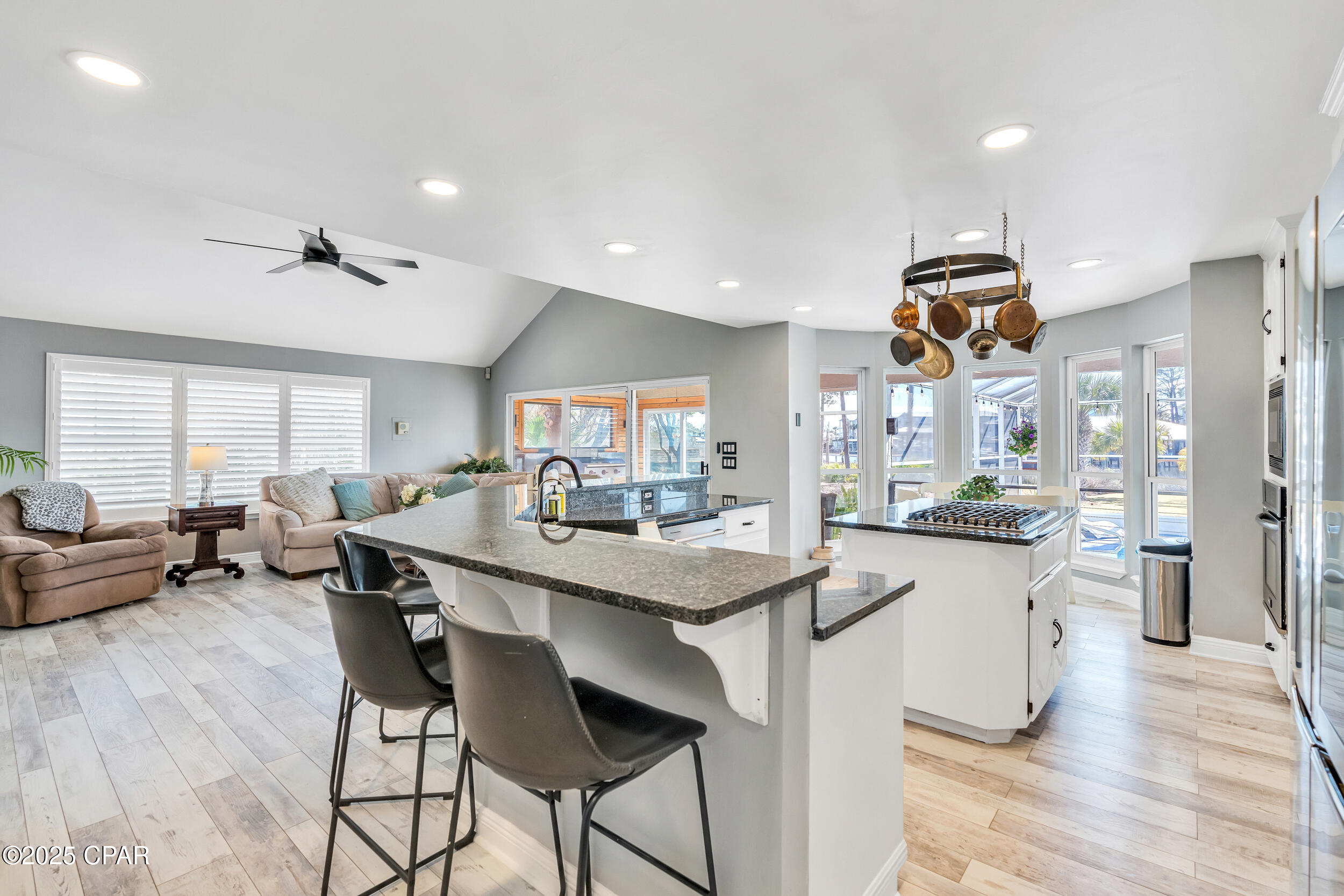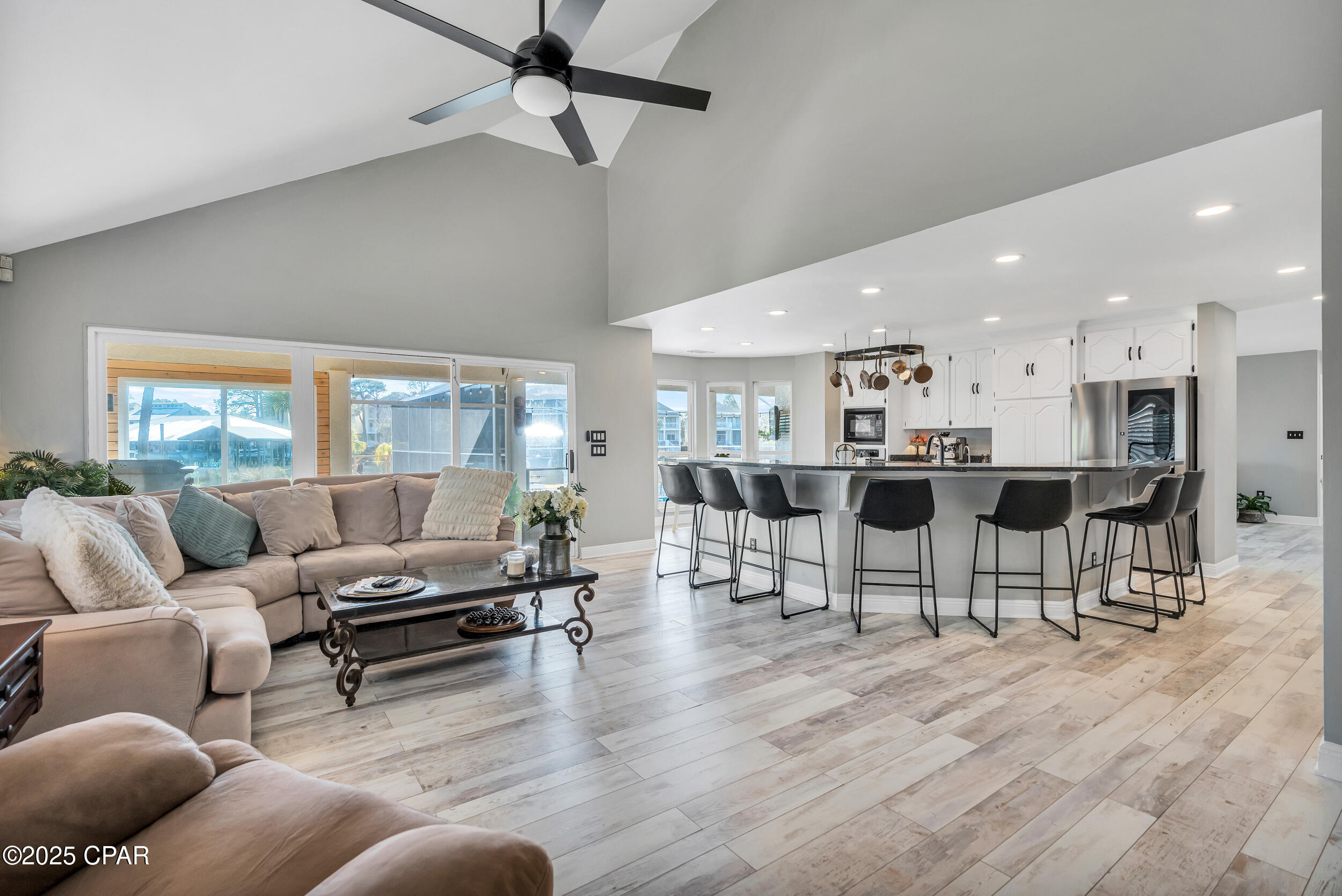 **WATERFRONT WITH GULF ACCESS** PRICED TO MOVE** ALL UPDATES DONE IN THE LAST THREE YEARS** Tucked away beneath a breathtaking canopy of towering Live Oaks, this exceptional waterfront estate creates a dramatic and lasting first impression. Offering the rare combination of private Gulf access and proximity to the beach, it provides the best of both worlds - launch your boat from your own dock or take a short stroll to Panama City Beach's sugar-white sands via Beach Access 24. Despite its serene waterfront setting, this home is located in the heart of PCB, keeping you just minutes from the area's best dining, shopping, and entertainment. A beautifully designed circular driveway, finished with high-end pavers and framed by lush greenery, sets the stage for the elegance within. Step inside to a refined yet inviting interior, where vaulted ceilings and an open-concept layout enhance the sense of space and light. Luxury vinyl plank flooring flows seamlessly throughout, leading to five generously sized bedrooms - each with a private bath featuring quartz counters, marble tile, and shiplap accents. The master suite is a true sanctuary, boasting a spa-like bath with a marble soaking tub and a walk-in glass shower. The kitchen impresses with an oversized island and bar, marble counters, stainless appliances, ample cabinets, and a striking ceiling pot rack, all offering style and functionality. A charming breakfast nook overlooks the lagoon and resort-style enclosed pool area, complete with a cabana, bath, and outdoor kitchen - perfect for effortless alfresco entertaining. The expansive backyard is a true waterfront oasis, offering plenty of space to relax, entertain, fish off the dock, or simply take in the views. Beyond, an updated boat dock with a 12,000 lb lift invites you to explore the area, with the Gulf just minutes away via the iconic Grand Lagoon. This is more than just a house - it's a dream home where lifelong memories are made. With short-term rentals allowed and no HOA, you'll have the flexibility to make it your full-time residence while still having options for the future. Schedule your private tour today and experience the best of Panama City Beach living.