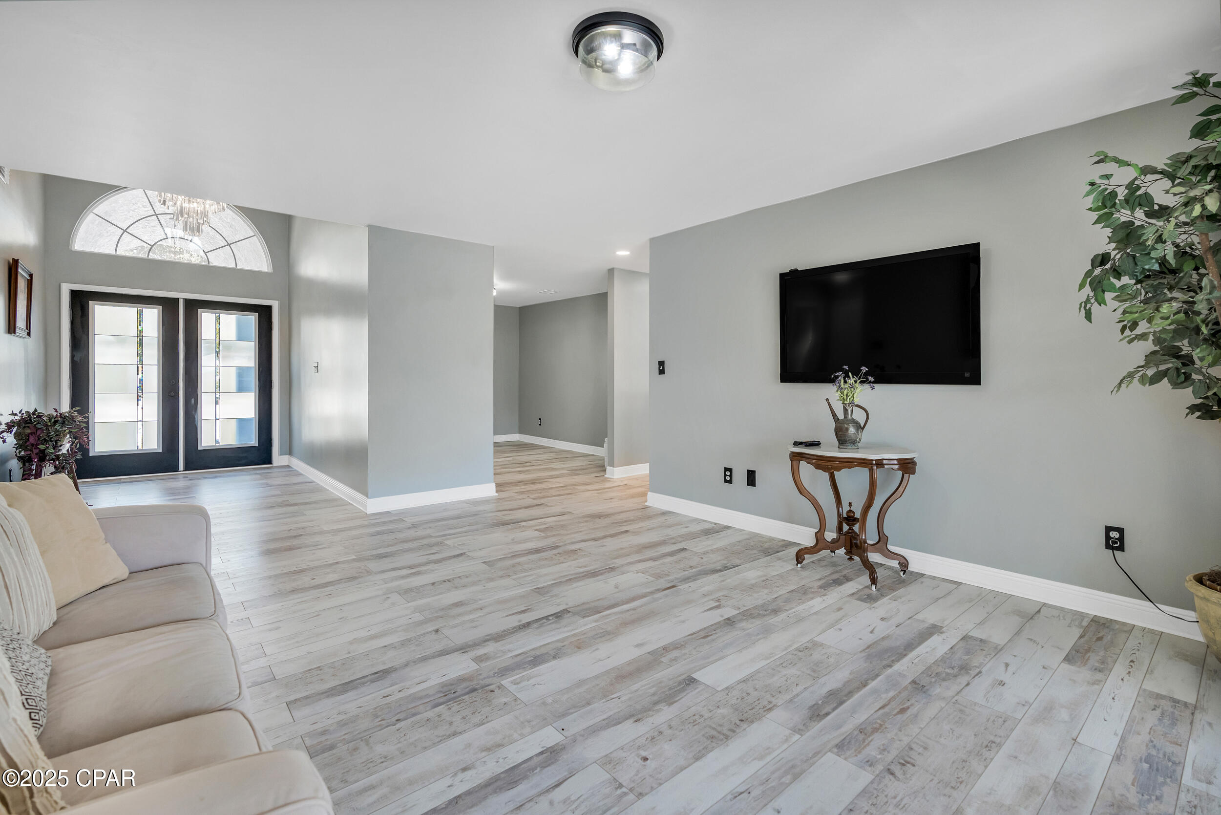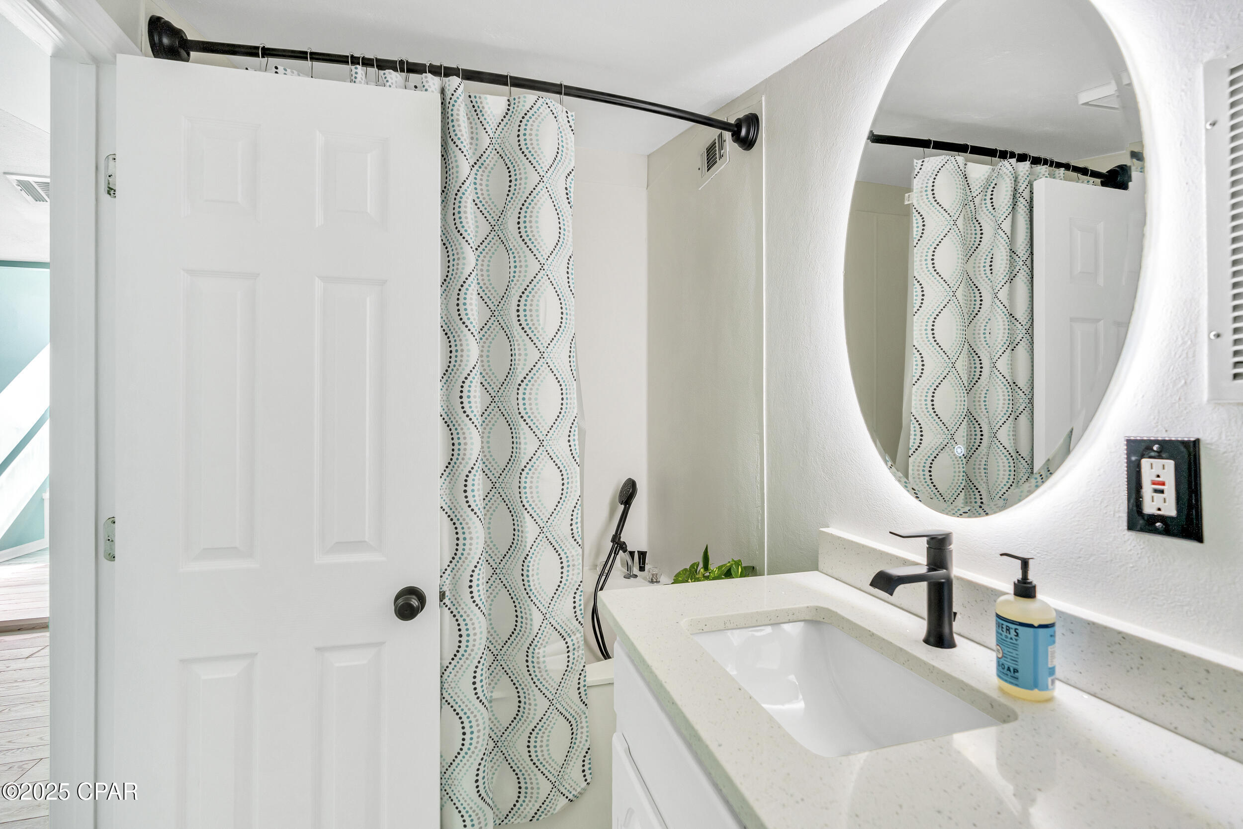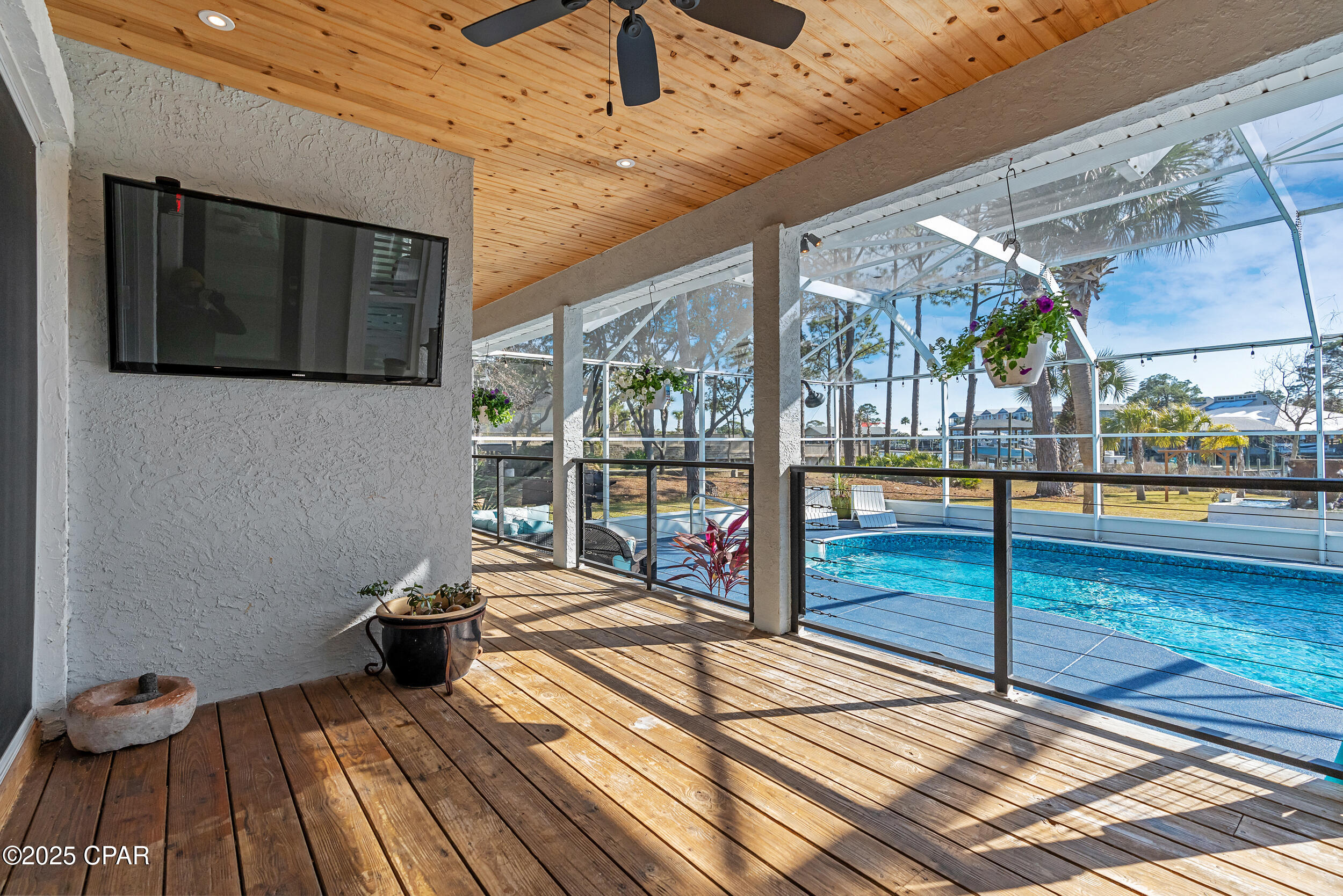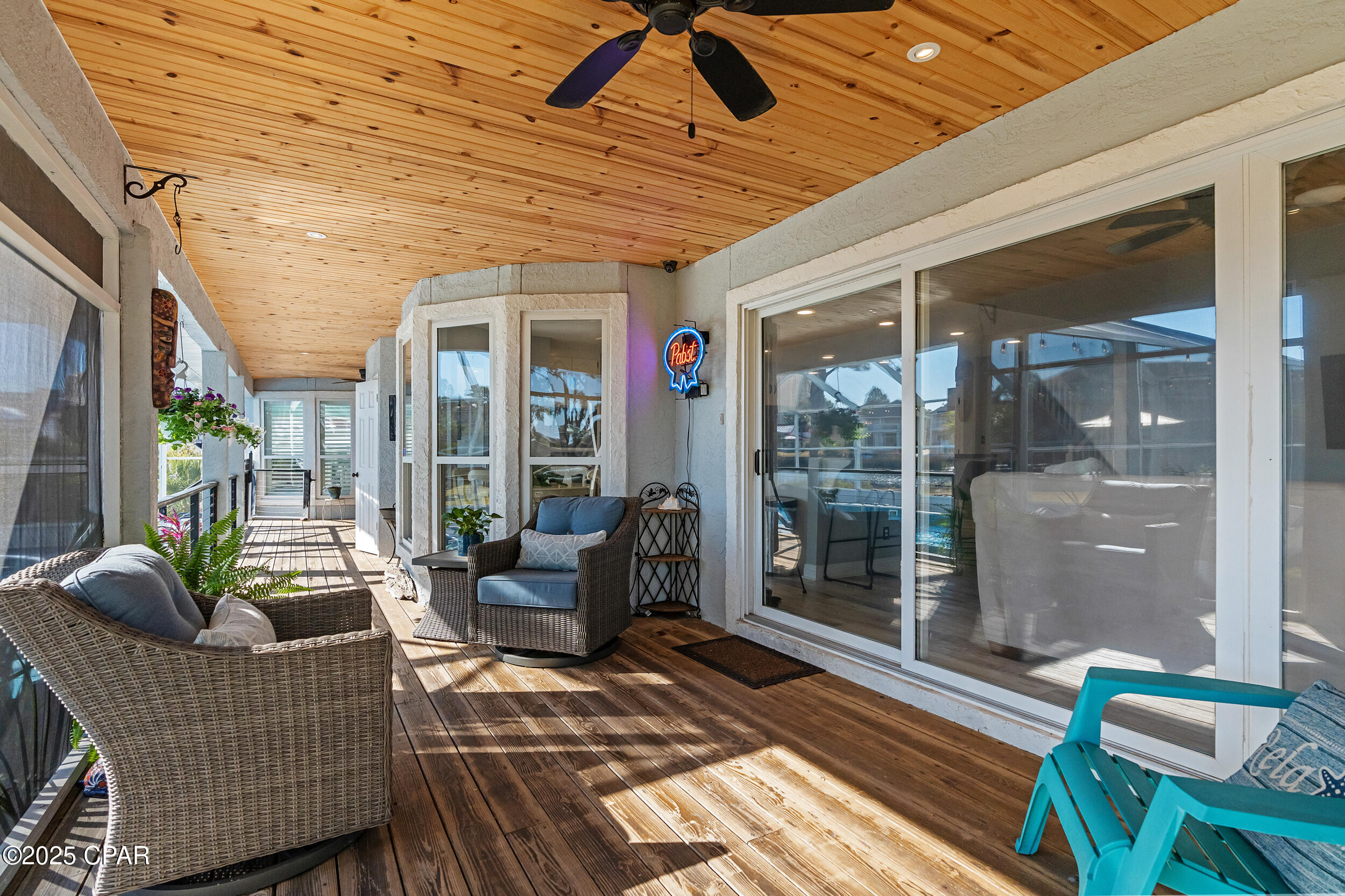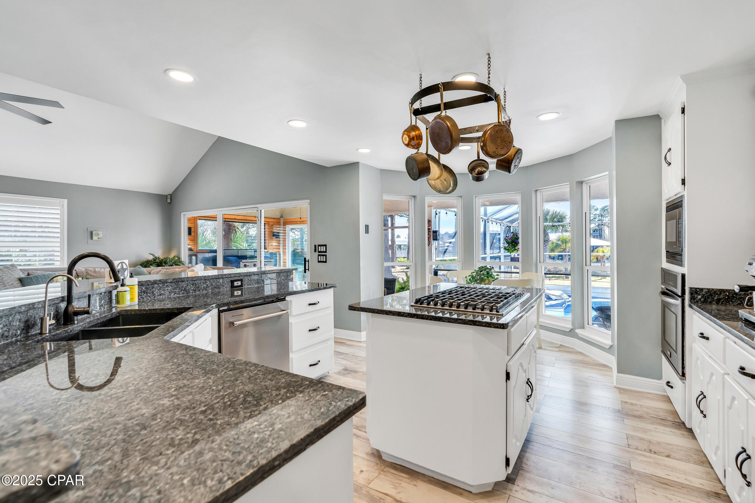 **WATERFRONT WITH GULF ACCESS** PRICED TO MOVE** ALL UPDATES DONE IN THE LAST THREE YEARS** Tucked away beneath a breathtaking canopy of towering Live Oaks, this exceptional waterfront estate creates a dramatic and lasting first impression. Offering the rare combination of private Gulf access and proximity to the beach, it provides the best of both worlds - launch your boat from your own dock or take a short stroll to Panama City Beach's sugar-white sands via Beach Access 24. Despite its serene waterfront setting, this home is located in the heart of PCB, keeping you just minutes from the area's best dining, shopping, and entertainment. A beautifully designed circular driveway, finished with high-end pavers and framed by lush greenery, sets the stage for the elegance within. Step inside to a refined yet inviting interior, where vaulted ceilings and an open-concept layout enhance the sense of space and light. Luxury vinyl plank flooring flows seamlessly throughout, leading to five generously sized bedrooms - each with a private bath featuring quartz counters, marble tile, and shiplap accents. The master suite is a true sanctuary, boasting a spa-like bath with a marble soaking tub and a walk-in glass shower. The kitchen impresses with an oversized island and bar, marble counters, stainless appliances, ample cabinets, and a striking ceiling pot rack, all offering style and functionality. A charming breakfast nook overlooks the lagoon and resort-style enclosed pool area, complete with a cabana, bath, and outdoor kitchen - perfect for effortless alfresco entertaining. The expansive backyard is a true waterfront oasis, offering plenty of space to relax, entertain, fish off the dock, or simply take in the views. Beyond, an updated boat dock with a 12,000 lb lift invites you to explore the area, with the Gulf just minutes away via the iconic Grand Lagoon. This is more than just a house - it's a dream home where lifelong memories are made. With short-term rentals allowed and no HOA, you'll have the flexibility to make it your full-time residence while still having options for the future. Schedule your private tour today and experience the best of Panama City Beach living.