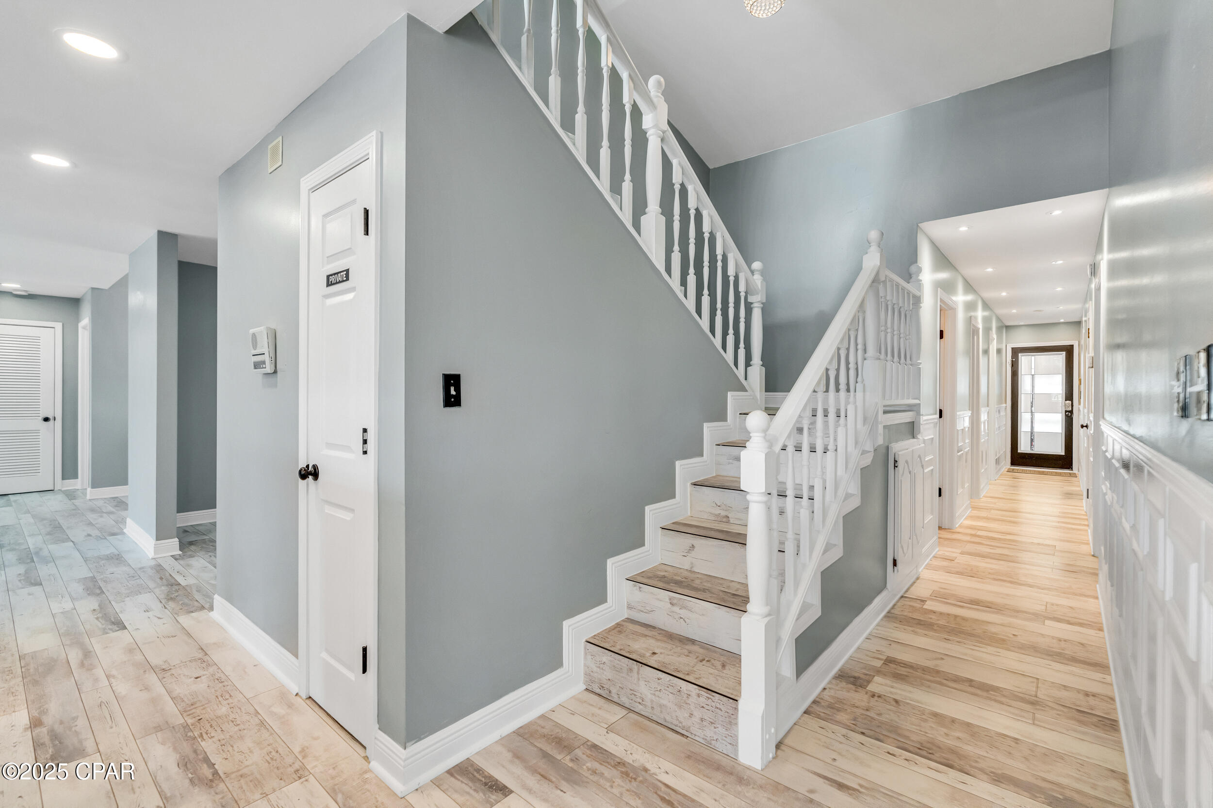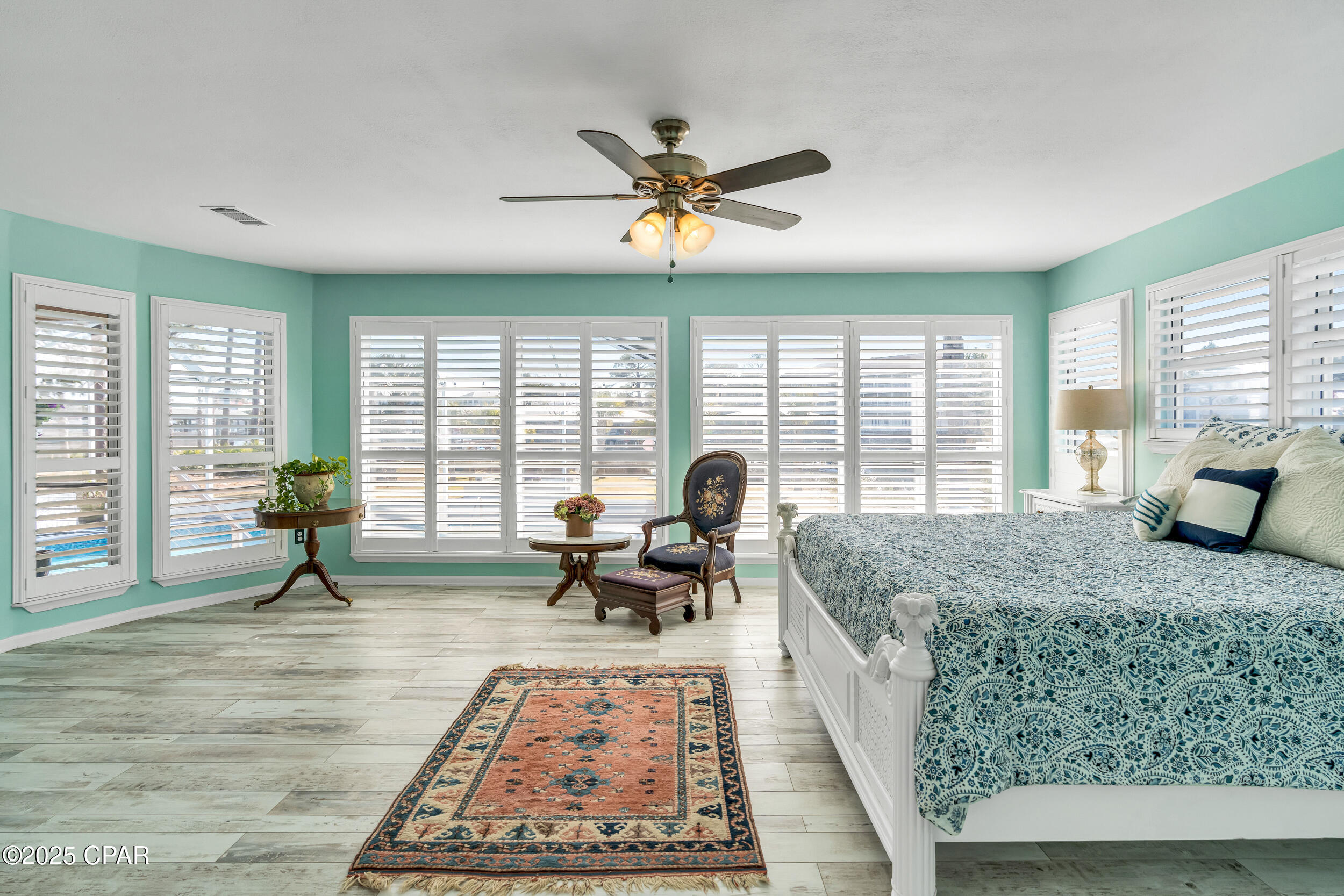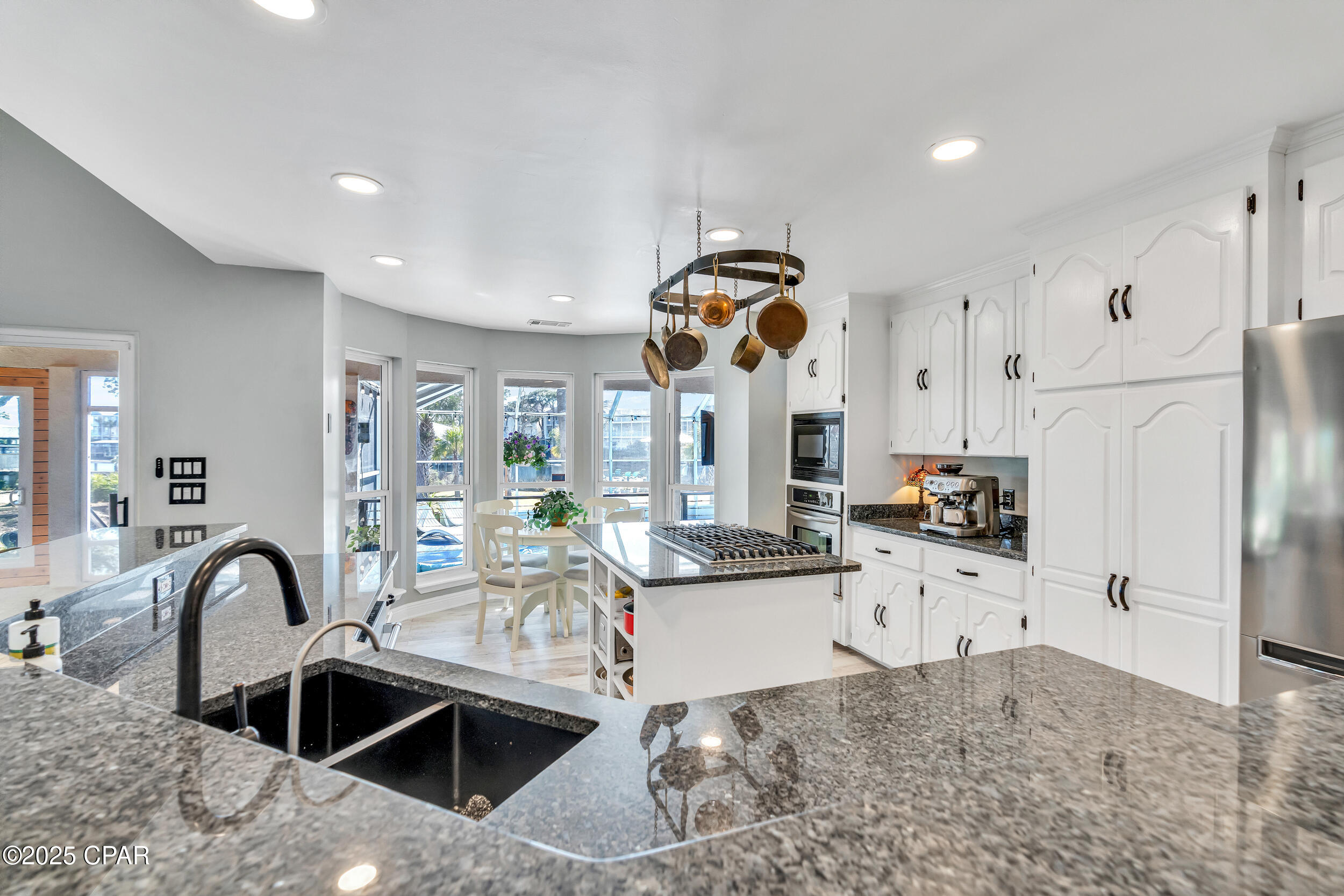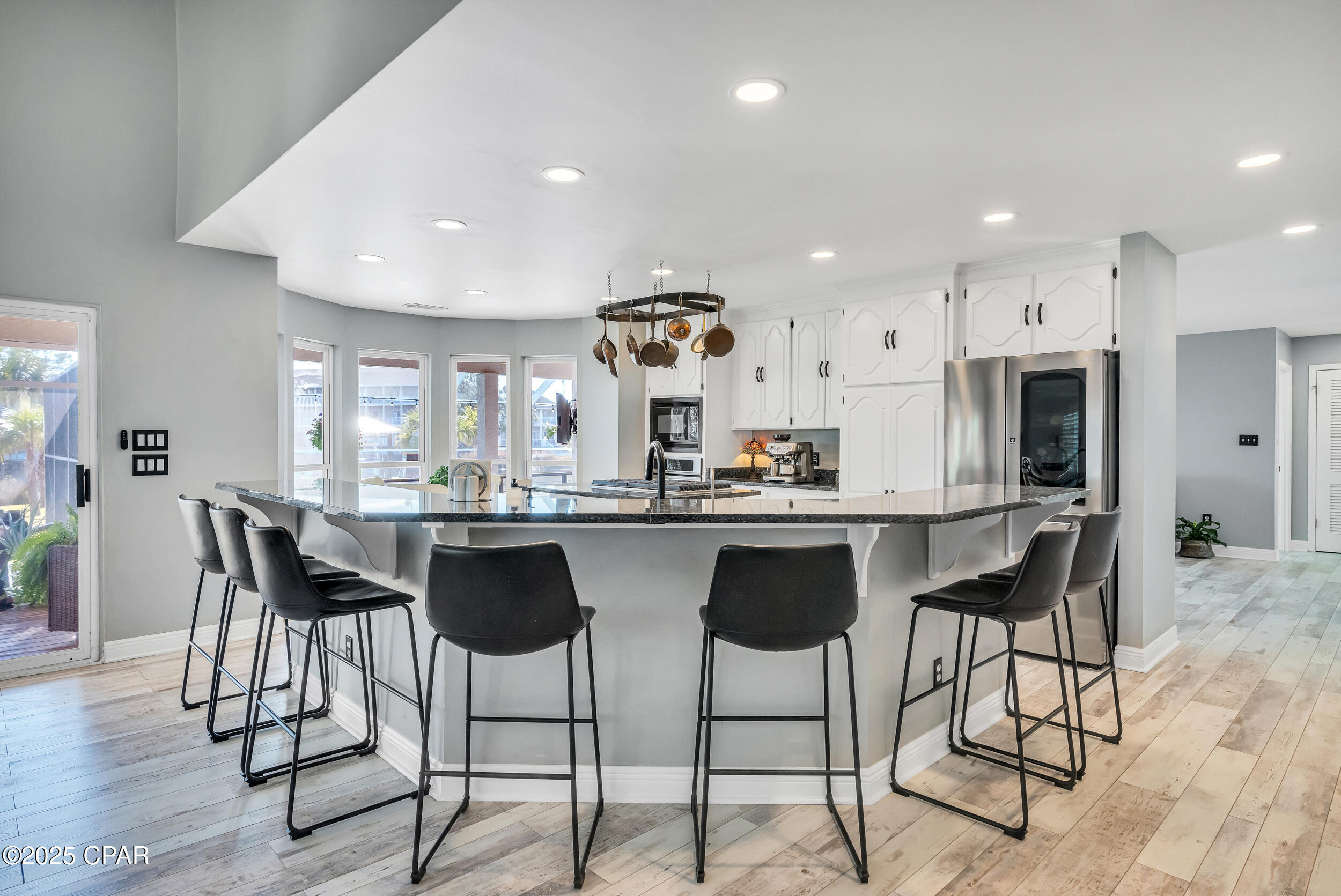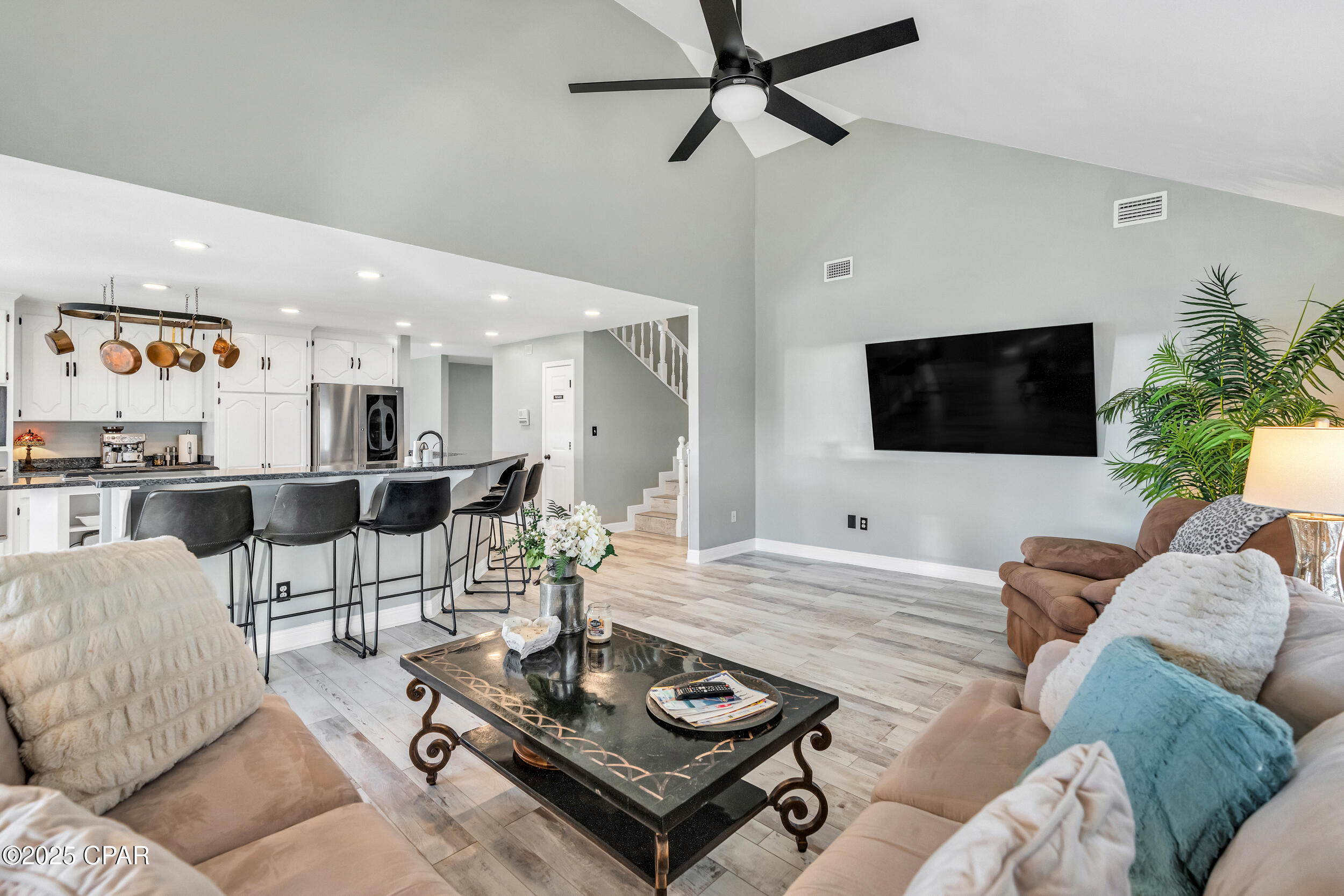 **WATERFRONT WITH GULF ACCESS** PRICED TO MOVE** ALL UPDATES DONE IN THE LAST THREE YEARS** Tucked away beneath a breathtaking canopy of towering Live Oaks, this exceptional waterfront estate creates a dramatic and lasting first impression. Offering the rare combination of private Gulf access and proximity to the beach, it provides the best of both worlds - launch your boat from your own dock or take a short stroll to Panama City Beach's sugar-white sands via Beach Access 24. Despite its serene waterfront setting, this home is located in the heart of PCB, keeping you just minutes from the area's best dining, shopping, and entertainment. A beautifully designed circular driveway, finished with high-end pavers and framed by lush greenery, sets the stage for the elegance within. Step inside to a refined yet inviting interior, where vaulted ceilings and an open-concept layout enhance the sense of space and light. Luxury vinyl plank flooring flows seamlessly throughout, leading to five generously sized bedrooms - each with a private bath featuring quartz counters, marble tile, and shiplap accents. The master suite is a true sanctuary, boasting a spa-like bath with a marble soaking tub and a walk-in glass shower. The kitchen impresses with an oversized island and bar, marble counters, stainless appliances, ample cabinets, and a striking ceiling pot rack, all offering style and functionality. A charming breakfast nook overlooks the lagoon and resort-style enclosed pool area, complete with a cabana, bath, and outdoor kitchen - perfect for effortless alfresco entertaining. The expansive backyard is a true waterfront oasis, offering plenty of space to relax, entertain, fish off the dock, or simply take in the views. Beyond, an updated boat dock with a 12,000 lb lift invites you to explore the area, with the Gulf just minutes away via the iconic Grand Lagoon. This is more than just a house - it's a dream home where lifelong memories are made. With short-term rentals allowed and no HOA, you'll have the flexibility to make it your full-time residence while still having options for the future. Schedule your private tour today and experience the best of Panama City Beach living.