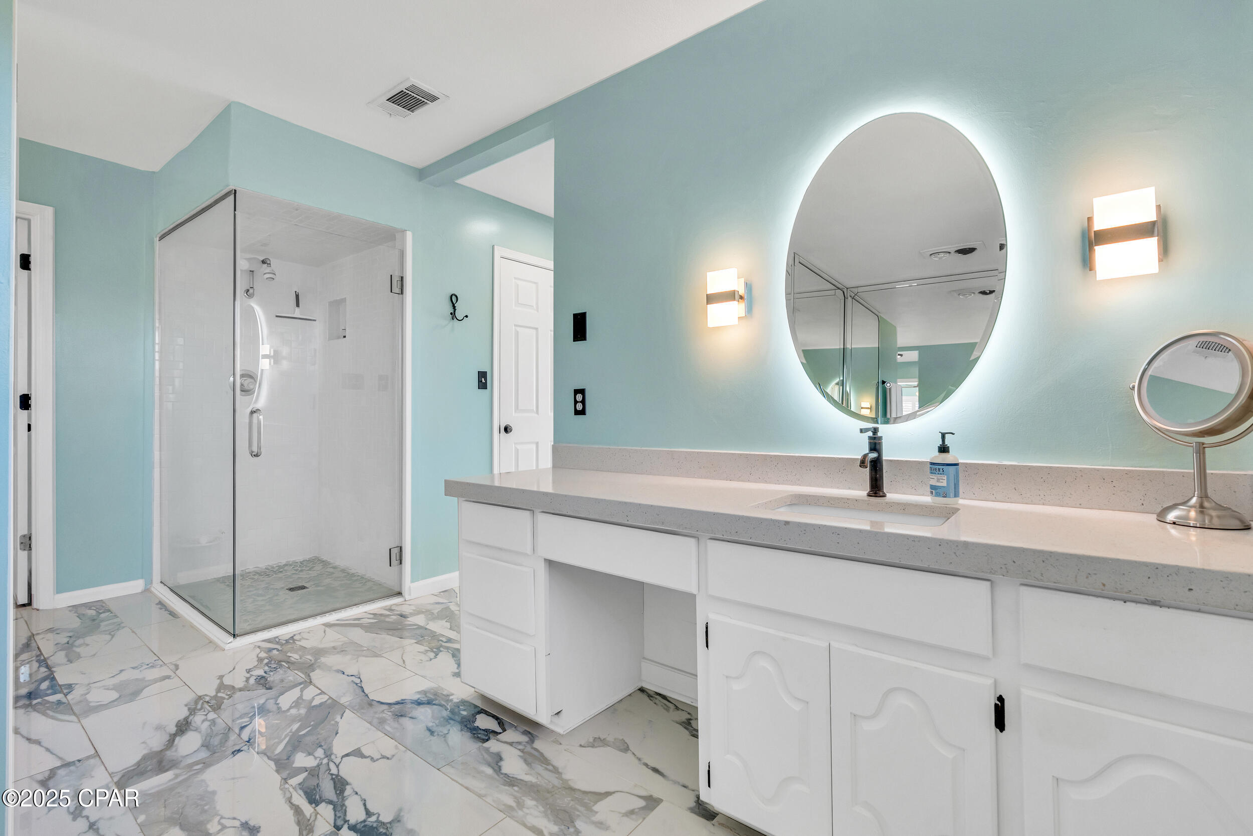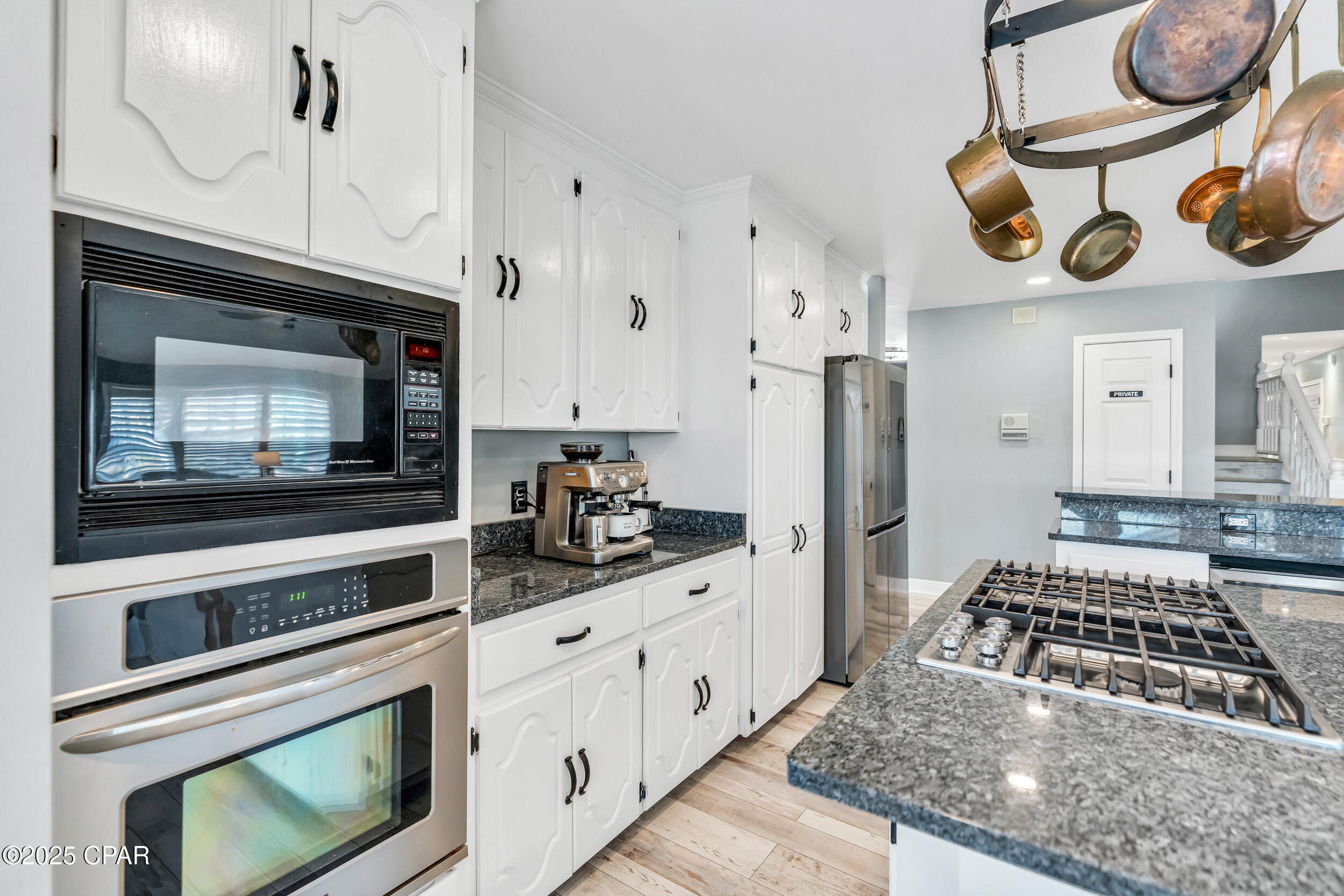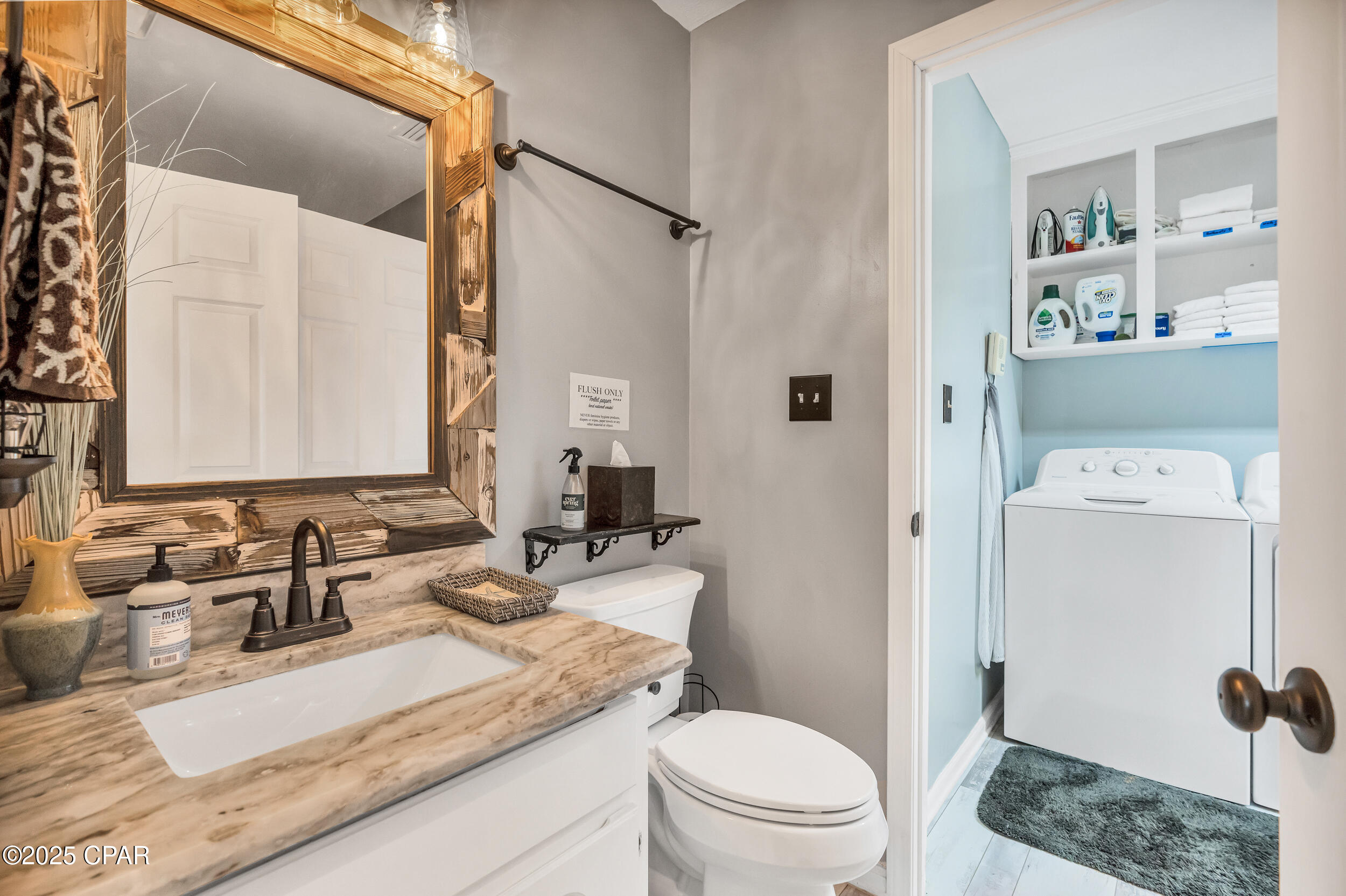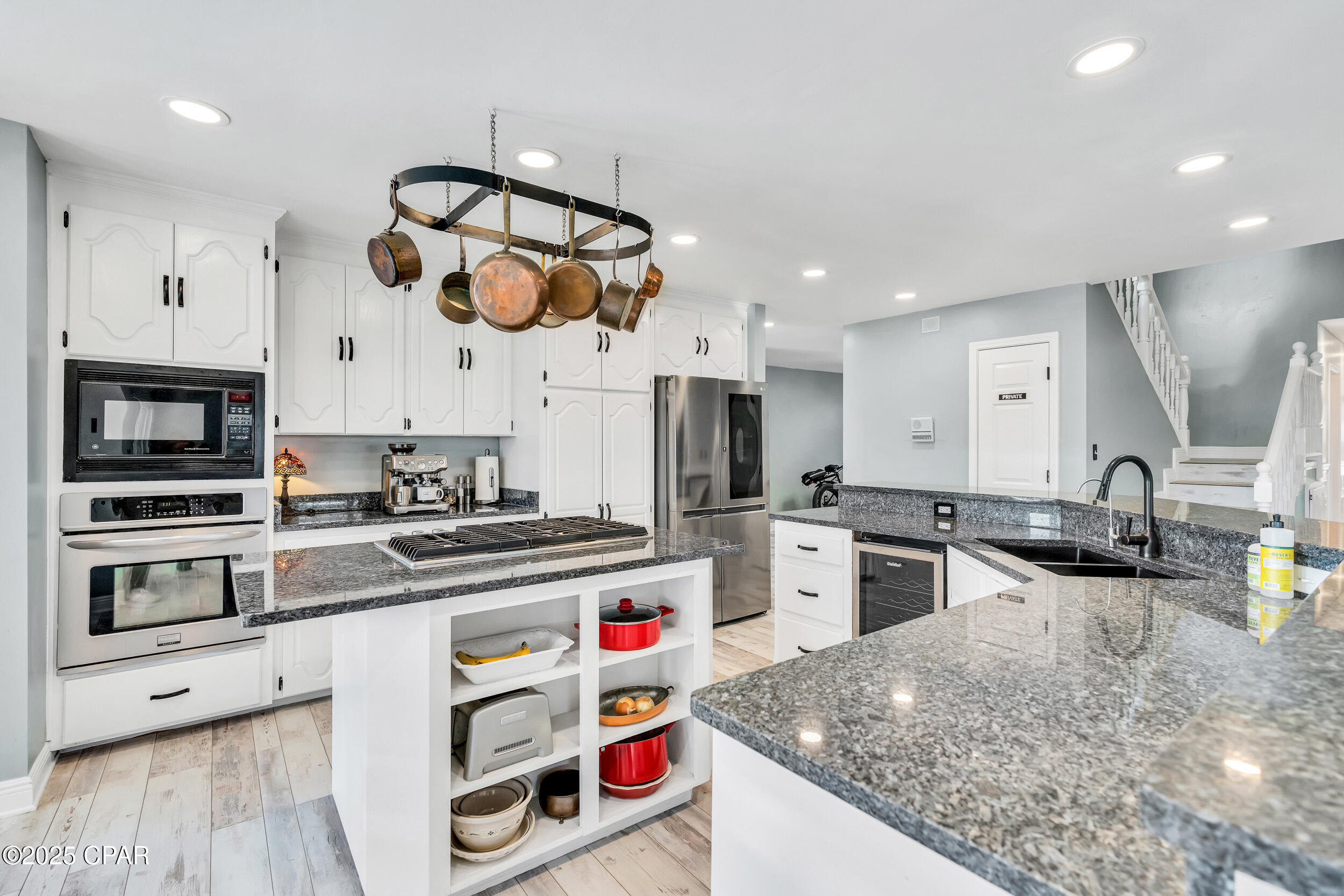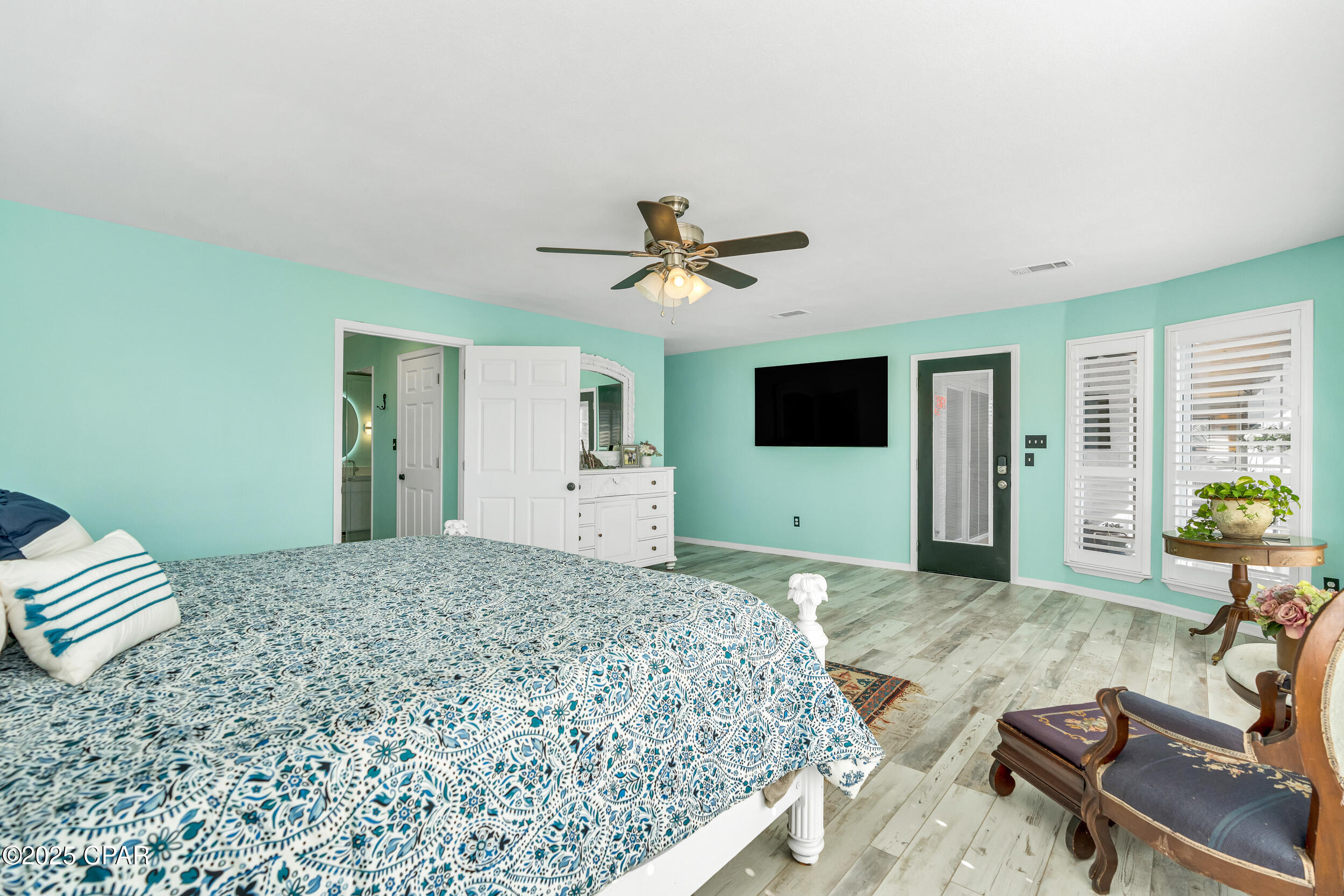 **WATERFRONT WITH GULF ACCESS** PRICED TO MOVE** ALL UPDATES DONE IN THE LAST THREE YEARS** Tucked away beneath a breathtaking canopy of towering Live Oaks, this exceptional waterfront estate creates a dramatic and lasting first impression. Offering the rare combination of private Gulf access and proximity to the beach, it provides the best of both worlds - launch your boat from your own dock or take a short stroll to Panama City Beach's sugar-white sands via Beach Access 24. Despite its serene waterfront setting, this home is located in the heart of PCB, keeping you just minutes from the area's best dining, shopping, and entertainment. A beautifully designed circular driveway, finished with high-end pavers and framed by lush greenery, sets the stage for the elegance within. Step inside to a refined yet inviting interior, where vaulted ceilings and an open-concept layout enhance the sense of space and light. Luxury vinyl plank flooring flows seamlessly throughout, leading to five generously sized bedrooms - each with a private bath featuring quartz counters, marble tile, and shiplap accents. The master suite is a true sanctuary, boasting a spa-like bath with a marble soaking tub and a walk-in glass shower. The kitchen impresses with an oversized island and bar, marble counters, stainless appliances, ample cabinets, and a striking ceiling pot rack, all offering style and functionality. A charming breakfast nook overlooks the lagoon and resort-style enclosed pool area, complete with a cabana, bath, and outdoor kitchen - perfect for effortless alfresco entertaining. The expansive backyard is a true waterfront oasis, offering plenty of space to relax, entertain, fish off the dock, or simply take in the views. Beyond, an updated boat dock with a 12,000 lb lift invites you to explore the area, with the Gulf just minutes away via the iconic Grand Lagoon. This is more than just a house - it's a dream home where lifelong memories are made. With short-term rentals allowed and no HOA, you'll have the flexibility to make it your full-time residence while still having options for the future. Schedule your private tour today and experience the best of Panama City Beach living.