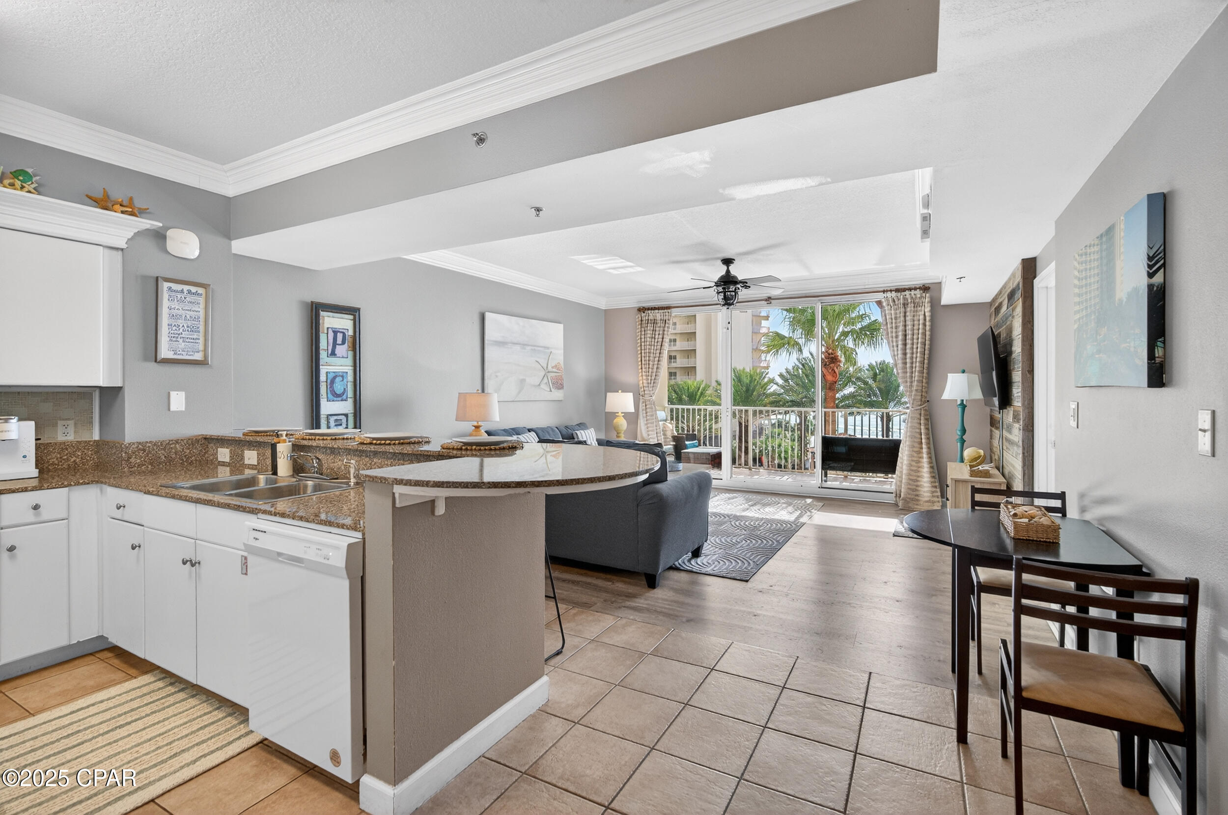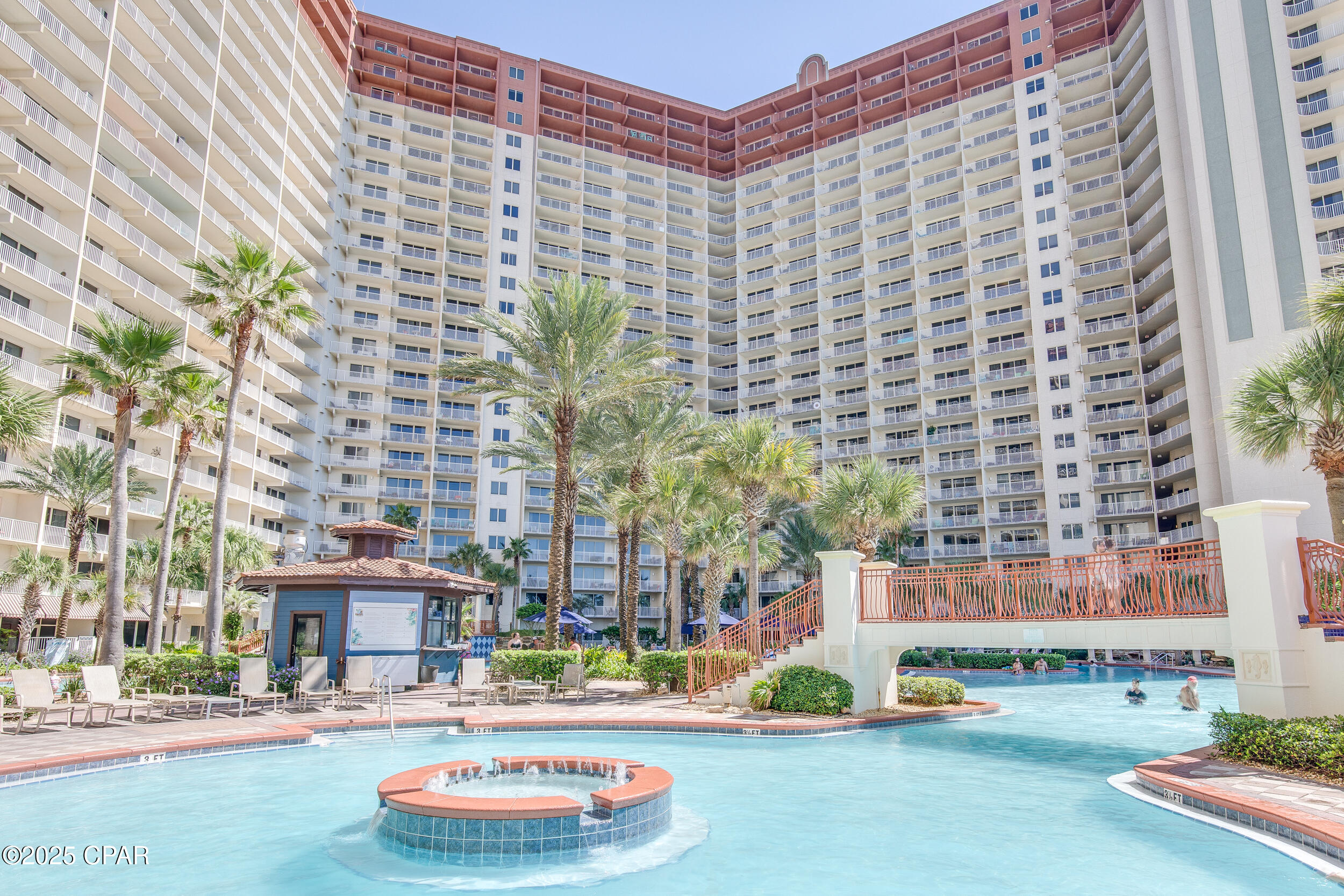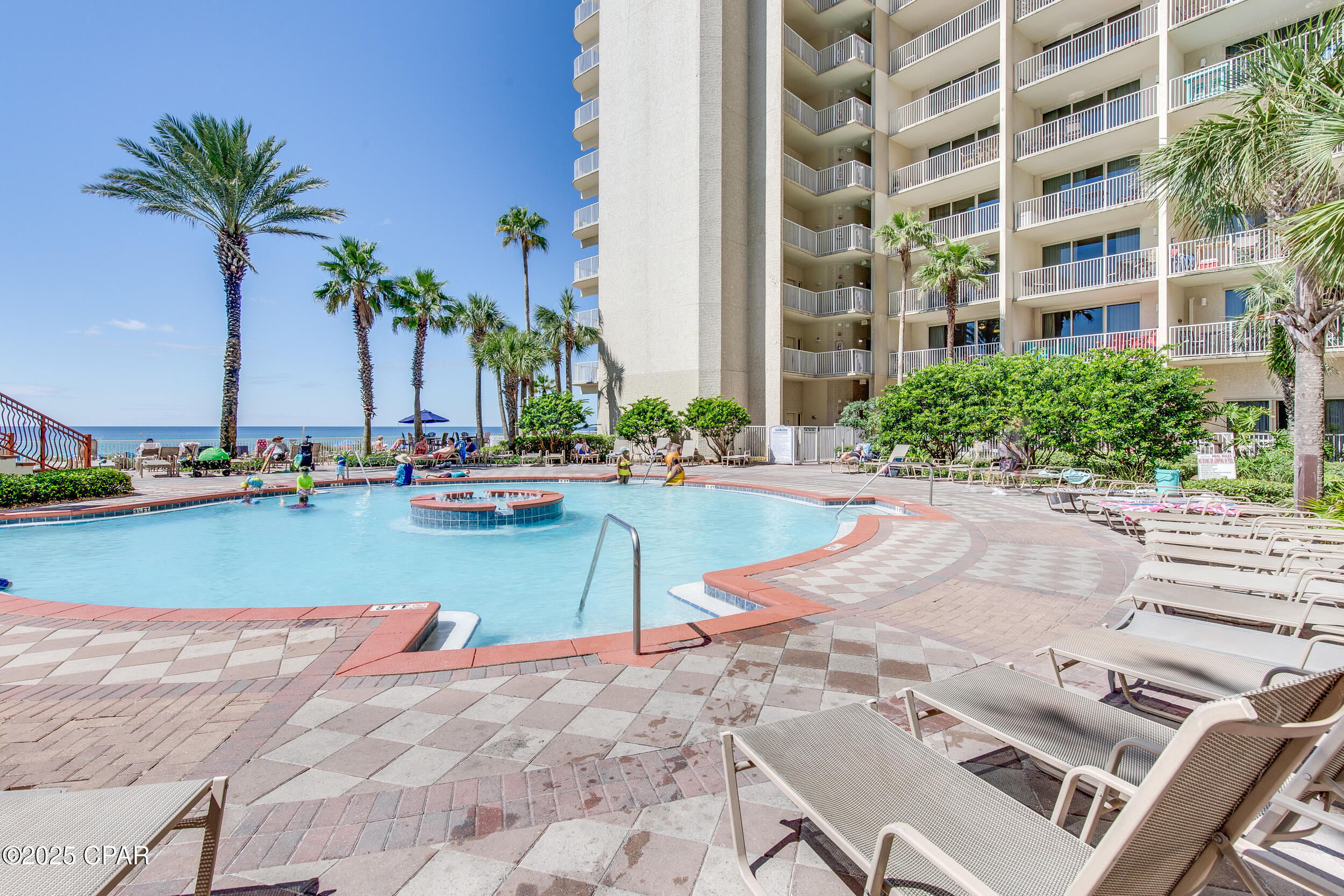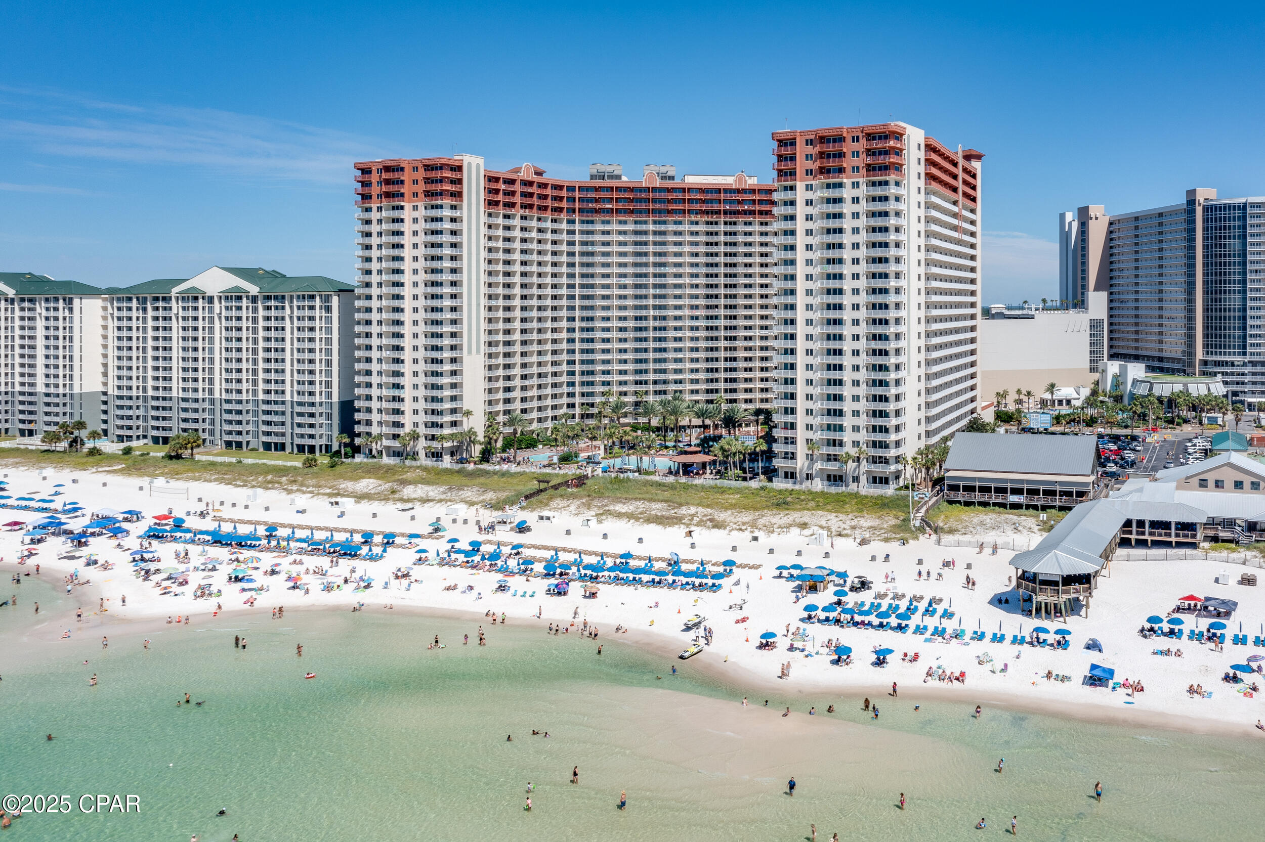 Shores of Panama offers nearly 500 feet of gulf frontage and resort amenities including the largest gulf-front pool on Panama City Beach, indoor and outdoor hot tubs, a seasonally heated indoor pool, fitness center, day spa, tiki bar, sundries store, grilling areas, and covered parking. Walk to dining, shopping, and attractions, with Pineapple Willy's right next door. The HOA covers electricity, cable TV, internet/WiFi, and trash, adding real value and predictability.
